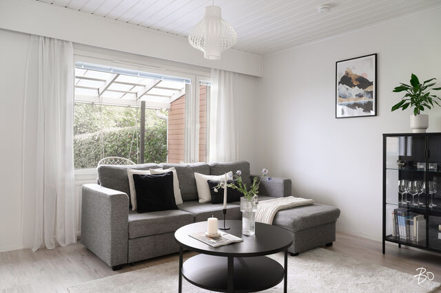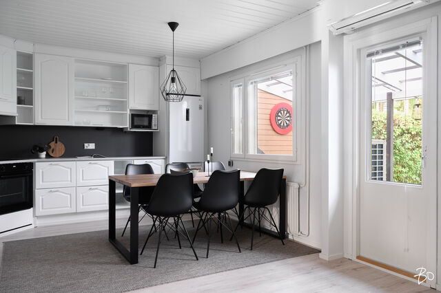 Etusivu / Pohjois-Pohjanmaa / Kempele / Tiilipellontie 2 1 / 1 Tiilipellontie 2 Sarkkiranta, Kempele | Rivitalo | 3h,k,kph,s,wc,vh,ak 108 000 € Velaton hinta 67,0 m2 Asuinpinta-ala 254,60 €/kk Hoitovastike 1980 Rakennusvuosi Tervetuloa tutustumaan tähän viehättävään vaaleasävyiseen kolmioon, jossa moderni avokeittiö yhdistyy tilavaan olohuoneeseen, luoden täydellisen tilan viihtyisälle asumiselle. Tämä Kempeleessä sijaitseva yksitasoinen rivitaloasunto on todellinen löytö!Asunnon sisätilat hurmaavat valoisuudellaan. Kauniin vaalea sisustus ja silmää miellyttävät pinnat tekevät tästä kodista ihanteellisen erilaisten sisustusunelmien toteuttamiseen. Iso olohuone on avoin tilavan keittiön kanssa. Keittiöön on tuotu modernia ilmettä 2023 tehdyllä remontilla. Kesän helteitä helpottaa olohuoneessa sijaitseva, vasta-asennettu ilmalämpöpumppu. Olohuoneesta on kulku suojaiselle takapihalle, jossa on reilunkokoinen, katettu terassi. Kummatkin kodin makuuhuoneista ovat niin ikään tilavia. Säilytystilasta huolehtii kaapistojen ja vaatehuoneen lisäksi ulkovarasto. Autokatospaikka aivan ulko-oven vieressä tekee arjen sujuvaksi ja helpottaa liikkumista.Taloyhtiö on rakennettu vuonna 1980 ja sijaitsee omalla tontilla, mikä tuo taloudellista vakautta. Lämmitysmuotona on edullinen ja ympäristöystävällinen kaukolämpö. Piha-alueella on runsaasti istutuksia, jotka tuovat vehreyttä ja viihtyisyyttä ympäristöön.Kempeleen asuinalue tarjoaa erinomaisia palveluita ja hyvät kulkuyhteydet myös Ouluun. Lähikaupat ja päivittäispalvelut ovat vain lyhyen kävelymatkan päässä, joten arki rullaa vaivattomasti. Tämä kohde sopii niin yksin kuin perheenkin kanssa elävälle!Tämä asunto on ehdottomasti tutustumisen arvoinen! Kodin sinulle myy:Julia Hakalaylempi kiinteistönvälittäjä YKV, LKV, KiAT, kaupanvahvistaja, partner044 218 7489julia.hakala@bo.fi Kiinnostaako tämä kohde?Ota meihin yhteyttä tai jätä viesti Julia Hakala ylempi kiinteistönvälittäjä YKV, LKV, KiAT, kaupanvahvistaja, partner 044 218 7489 julia.hakala@bo.fi Tutustu välittäjään Varaa aika kalenteristani HuoneistoOsakkeet1647-2929HallintamuotoAsunto-osakeyhtiöHuoneluku3h,k,kph,s,wc,vh,akKerros/Kerroksia1/1Asuinpinta-ala67,0 m2Muut tilat0,0 m2Lisätietoja pinta-alasta Isännöitsijäntodistuksen mukainen. Yhtiöjärjestyksen mukainen.Keittiön kuvaus, lisätiedot ja varustusVälitilassa laminaatti. Keittiötä uudistettu (maalattu ovet, vaihdettu tasot, allas, led-valoja) 2023.LiesiInduktioliesi, erillisuuni, liesitasoKeittiön työtasojen materiaaliLaminaattiKeittiön lattiamateriaaliLaminaattiPesutilojen kuvaus, lisätiedot ja varustusKylpyhuone maalattu 2023.Kylpyhuoneen varustusSuihkuseinä, pesukoneliitäntä, suihkuKylpyhuoneen lattiamateriaaliLaattaKylpyhuoneen seinämateriaaliKaakeliWC-tilojen kuvausWc:n seinässä laminaatti. WC:n kaapisto uusittu 2024. Peili.Varustus: bidee-suihkuLukumäärä: 1Lattiamateriaalit: laattaSaunan kuvaus, lisätiedot ja varustusLauteet vaihdettu 2023, valoja lisätty.Saunan lattiamateriaaliLaattaSaunan seinämateriaaliPuuMakuuhuoneen kuvaus, lisätiedot ja varustusLukumäärä: 2Lattiamateriaalit: laminaattiSeinämateriaalit: maalattuOleskelutilojen kuvaus, lisätiedot ja varustusLattiamateriaalit: laminaattiSeinämateriaalit: maalattuLattiamateriaalitLaminaattilattia uusittu 2025.KuntoHyvä Kiinteistö- ja yhtiötiedotYhtiön nimiAsunto Oy KangaskortetTontin omistusOmaTontin koko5 426,00 m2Käyttöönottovuosi1980RakennusmateriaaliPuu, tiiliKattotyyppiHarjakattoKatePeltikateLämmitysjärjestelmäKaukoEnergiatodistusKylläLisätietoja energiatodistuksestaEnergiatodistus voimassa 11.9.2034 asti.EnergialuokkaD2018Tehdyt korjaukset ja remontitLämmönjakokeskuksen remontti 2002. Vesikate/ullakko remontti 2009. Digikanavien lisäys 2010. Ulko-ovien uusiminen 2011. Taloyhtiön laajakaista 2013. Rakennuslupa katetuille terasseille 2014. Katettujen terassien lasitusmahdollisuus 2014. Antennivahvistimen uusiminen 2015. Taajuusmuutos tehty antennijärjestelmään 2015. B-talon sadevesikaivoihin lämpösaattokaapelit 2016. Takapihan väliaitojen tilalle paloseinät 2016. Pihlajat kaadettu A ja B talon edestä 2016. LJH vuosihuolto+säätömoottori uusittu 2018. Ikkunat uusittu 2018. Perustuksien kuntokartoitus 2021. Kuntokartoituksen pohjalta tehdyt korjaukset perustuksiin 2023. Pihasuunnitelman teettäminen 2024. Palovaroittimet uusittu 2024. Katon ja yläpohjan kuntokartoitus ja sen pohjalta tarvittavat korjaustyöt 2024.Tiedossa olevat tulevat korjaukset/remontitKunnossapitotarveselvityksessä 2025 olevat: Maan kallistusten korjaus ja asfalttien uusiminen 2025. Puuosien huoltomaalauksia voi jokainen maalata, maaleja hankitaan tarpeen mukaan. Rännien puhdistus / huolto vuosittain, lumiesteiden tarkistus vuosittain. Kaukolämmön alajakokeskuksen uusiminen tarvittaessa. Hulevesiviemäriin mahdollinen liittyminen piharemontin yhteydessä. Korvausilmaventtiileiden lisääminen tarvittaessa, saunan, ulkona olevan raitisilmaventtiileiden uusiminen 2025. Antennijärjestelmää päivitetään tarvittaessa. Lipputangon poistaminen 2025.Lainat985,00 €Kiinnitykset163 568,45 €IsännöitsijäIsännöinti Sarka, Ollilantie 1, 90440 Kempele, Sari Kamula-Gärding, p. 041 5054 331, isannointisarka@gmail.comKiinteistönhoitoAsukkaatYhtiön tilat ja varusteluHuoneistokohtaiset varastot. Muita tietojaLisätietoa kaavoituksestaKempeleen kunta, kaavoitus@kempele.fiVapautuuSopimuksen mukaan AsumiskustannuksetHoitovastike254,60 €/kk (3,80 €/m2)Yhtiövastike yhteensä254,60 €Vesi18,00 €/hlö/kkMuut maksut / lisätietoa maksuistaHallituksella on tarvittaessa valtuudet periä tai jättää perimättä kahden (2) kuukauden ylimääräinen hoitovastike. Sähköisen asuntokaupan (DIAS) kulusta vastaa ostaja, 96€/kauppa. Taloyhtiön osakeluettelo on ennen kaupantekoa siirretty huoneistotietojärjestelmään, ostajan tulee hakea omistusoikeuden rekisteröintiä M