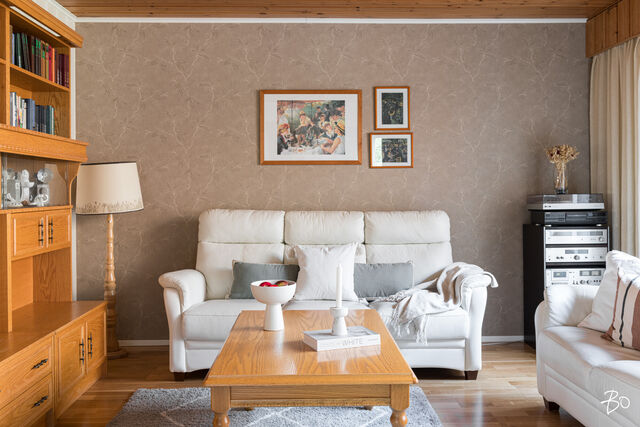 Etusivu / Pirkanmaa / Nokia / Perkiönkatu 12 1 / 1 Perkiönkatu 12 Ilkan alue, Nokia | Omakotitalo | 4h, k, kph, takkahuone, s, erill.wc, vh, at, 3 varastoa 247 000 € Velaton hinta 104,8 m2 Asuinpinta-ala 157,4 m2 Kokonaispinta-ala Tervetuloa tutustumaan yksitasoiseen kotiin, joka tarjoaa tilaa ja mukavuutta koko perheelle!Tämä vuonna 1986 valmistunut omakotitalo kätkee sisäänsä reilunkokoiset huoneet, jotka mahdollistavat miellyttävän asumisen ja arjen sujuvuuden. Talo käsittää tilavan keittiön, kolme makuuhuonetta, olohuoneen, takkahuoneen, kylpyhuoneen, saunan sekä erillisen wc:n. Lisäksi vaatehuone ja kolme varastotilaa tarjoavat runsaasti säilytysmahdollisuuksia, joten tilanpuute ei pääse yllättämään. Talon lämpötilaa säädellään energiatehokkaalla kaukolämmöllä ja ilmalämmityksellä. Tilan monikäyttöisyys korostuu erityisesti tilassa, johon on oma sisäänkäynti, mahdollistaen esimerkiksi erillisen työskentely- tai harrastetilan käytön. Kuntotarkastus on tehty, joten talosta ja piha-alueesta huolehtiminen on vaivatonta.Kiinteistö sijaitsee kalliopohjaisella ja hyvin hoidetulla 1400 m2 suuruisella tontilla, joka rajoittuu puistoalueeseen. Tämä oma rauhan tyyssija sisältää myös lämpöeristetyn autotallin. Suuren terassin ansiosta voit nauttia ulkoilmasta ja järjestää vaikka grillijuhlia ystäviesi kanssa.Nokian Perkiönkatu 12 sijaitsee rauhallisella ja lapsiperheille sopivalla alueella, jossa on erinomaiset ulkoilumahdollisuudet. Alue houkuttelee lenkkeilemään ja nauttimaan luonnosta. Lähettyviltä löytyvät koulut ja päiväkodit.Tartu tilaisuuteen ja varaa oma esittelyaikasi, niin pääset selvittämään voisiko tämä olla teidän perheenne uusi koti!Kohdetta myy:Minna Mollbergasuntomyyjä, KiLAT, KED040 167 1760minna.mollberg@bo.fi Kiinnostaako tämä kohde?Ota meihin yhteyttä tai jätä viesti Minna Mollberg asuntomyyjä, KiLAT, KED 040 167 1760 minna.mollberg@bo.fi Tutustu välittäjään Varaa aika kalenteristani RakennusKäyttöönottovuosi1986RakennusmateriaaliPuu, tiiliKattotyyppiHarjakattoKateTiilikateAsuinpinta-ala104,8 m2 (157,4 m2)Lisätietoja pinta-alastaAsuintilojen pinta-ala 104,8 m2 perustuen rakennuksen pohjapiirrustuksista saatuun tietoon. Asuintilat käsittävät lämpimät asuintilat mukaan lukien märkätilat, wc ja vaatehuone. Muut tilat 52,6 m2, jotka käsittävät autotallin, kaikki varastotilat sekä lämmönjakohuoneen. Rakennuslupapiirrustusten mukaan kerrosala on 189 m2. Pinta-alat eivät ole tarkistusmitattu, eikä hinta ole pinta-alaperusteinen. Edellä mainittu pinta-ala saattaa tämän ikäisessä kohteessa poiketa olennaisestikin rakennuksen nykyisten ja rakentamisaikaisten mittaustapojen ja standardien mukaan laskettavasta pinta-alasta. Kerrokset1Muut tilat52,6 m2Lämmitysjärjestelmän kuvausKauko, ilmalämpöpumppu, muuLämmön jakotapaMuuHuoneluku4h, k, kph, takkahuone, s, erill.wc, vh, at, 3 varastoaKeittiön kuvaus, lisätiedot ja varustusAEG:n kodinkoneet.Keittiön muut varusteetAstianpesukone, kiinteät valaisimet, liesituuletin / hormiLiesiInduktioliesiKeittiön työtasojen materiaaliLaminaattiKeittiön lattiamateriaaliLaminaattiKeittiön seinien materiaaliMaalattu, tapettiKylpyhuoneen varustusSuihkuseinä, lattialämmitys, suihku, kiinteät valaisimetKylpyhuoneen lattiamateriaaliLaattaKylpyhuoneen seinämateriaaliKaakeliSaunaAsunnossa on saunaSaunan kuvaus, lisätiedot ja varustusHarvian puukiuas.Saunan lattiamateriaaliLaattaSaunan seinämateriaaliPuuWC-tilojen kuvausVarustus: peilikaappiLukumäärä: 1Lattiamateriaalit: laattaSeinämateriaalit: kaakeliMakuuhuoneen kuvaus, lisätiedot ja varustusLukumäärä: 3Lattiamateriaalit: parkettiSeinämateriaalit: maalattuOleskelutilojen kuvaus, lisätiedot ja varustusLattiamateriaalit: parkettiSeinämateriaalit: tapettiTulisijaVaraava takkaTakkatiedotMuuMuut säilytystilatVaatehuoneTehdyt korjaukset2000 Wc remontoitu. 2010 Katon huolto ja maalaus, ulkolaudoitusten vaihto ja rännien vaihto. 2015 Keittiökalusteet ja kodinkoneet uusittu. 2015 Kaapistot uusittu (eteinen ja makuuhuoneet). 2015 Kaikkien huoneiden lattiapinnat vaihdettu (laminaatti/ parketti). 2015 Kaikki seinäpinnat uusittu (maalaus/ tapetti). 2016 Kylpyhuoneen laatoitus ja kalusteet vaihdettu. 2016 Saunan panelointi ja lauteet. Uusi kiuas. 2017 Takapihan terassin laajennus, sekä ulkoterassin kate. 2023 Ilmastointikanavien puhdistus. 2023 ilmalämpöpumppu. 2024 Ulkoterassien katteiden huolto. 2024 Kaukolämpökoneen ja ilmanvaihtokoneen huolto. KuntoTyydyttäväEnergiatodistusKylläEnergialuokkaB2018Lisätietoja energiatodistuksestaVoimassa 16.05.2035 asti. E-luku 125. KiinteistötiedotKiinteistötunnus536-9-35-4-L1TyyppiTonttiTontin tyyppiTasamaatonttiTontin koko1 392,00 m2Tontin omistusVuokrattuTontin vuokrasopimus päättyy31.01.2041Tontin vuokraajaNokian kaupunkiPanttikirjat230 228,19 €Lisätietoja tontistaVuokran määrä 547,26 € /v. Tontin lunastushinta n. 14 121,22 € vuonna 2025. Lisäksi ostaja vastaa lunastamisesta aiheutuvista kuluista.Tie perilleVesijohtoKunnanViemäriKunnanRakennusoikeus240,0 m2Lisätietoja rakennusoikeudestaRakennusoikeutta käytetty 190 m2 AsumiskustannuksetKiinteistövero331,86 €Muut maksut / lisätietoa maksuistaLämmityskustannukset noin 1000 € /v. Kaukolämmön kulutus 11.15 MWh vuonna 2024. Vesi- ja jätevesi kulutuksen mukaan. Hulevesimaksu paikallisen taksoituksen mukaan. HintaVelaton hinta247 000,00 €Myyntihinta247 000,00 € VapautuuHetiMaksuehtoKäteinen. Sinua voisi kiinnostaa Asunnon hinta-arvio ja arviokäynti Asunnon hinta-arvio ja arviokäynti Mitä hinta-arvio maksaa tai miten arviokäyntiä varten kannattaa valmistautua? Katso vastauksemme usein kysyttyihin ky… Sneak Peek® Sneak Peek® Sneak Peek® -palvelumme on askeleen edellä! Löydä alueesi uusimmat ja upeimmat asunnot jo ennen kuin ne ilmestyvät as… Asuntovahti Asuntovahti Etsimässä uutta asuntoa? Aseta itsellesi Bo-asuntovahti. Saat tiedon heti, kun 