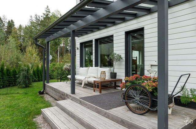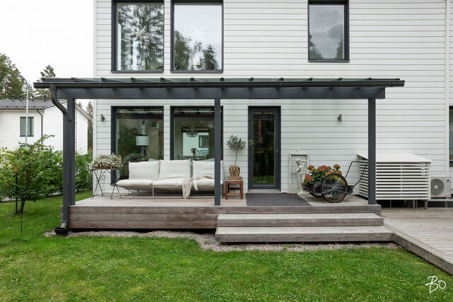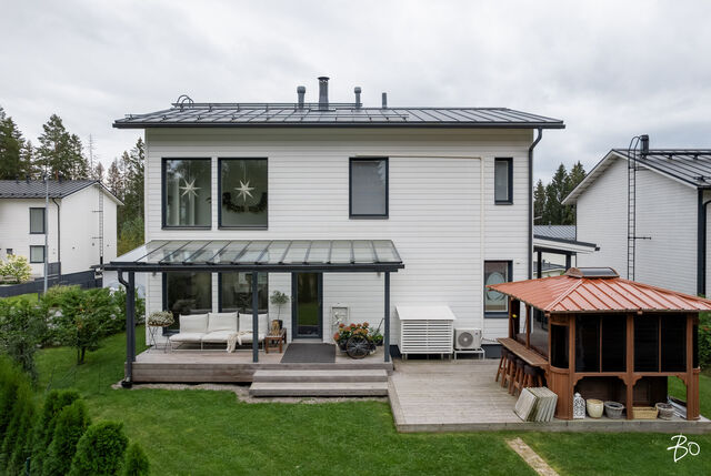 Etusivu / Pirkanmaa / Tampere / Kaipasenrinne 25 1 / 1 Kaipasenrinne 25 Kaukajärvi, Tampere | Omakotitalo | 4h, avok, khh, kph, 2 erill. wc, s, vh 449 000 € Velaton hinta 108,5 m2 Asuinpinta-ala 110,3 m2 Kokonaispinta-ala Tervetuloa unelmakotiinne Kaipasenrinne 25:teen!Talon alakerta on avara ja valoisa, käsittäen tilavan avokeittiön joka avautuu suoraan korkeaan olohuoneeseen, muodostaen kodikkaan yhteisen tilan. Neljän huoneen kokoonpano tarjoaa runsaasti tilaa perheen arkeen ja juhlaan. Nyt myytävässä asunnossa on kaksi erillistä wc:tä sekä ylellisesti varusteltu kylpyhuone ja kodinhoitohuone, jotka tekevät arjesta sujuvaa. Sauna antaa mahdollisuuden rentoutumiseen ja vaatehuone sekä varasto tuovat kaivattua säilytystilaa. Ilmavesilämpöpumppu ja aurinkopaneelit tukevat talon ekologisuutta. Kamiinatakka luo tunnelmaa viileneviin iltoihin.Tämä vuonna 2021 valmistunut kaksikerroksinen omakotitalo on huolella suunniteltu. Autokatos tarjoaa turvallisen säilytyspaikan ja talon eteen mahtuu monta autoa kerralla. Pihan ehdoton kruunu on poreamme mahonkikatoksella baarituoleineen, jonka äärellä voi nauttia rentouttavista hetkistä ympäri vuoden. Piha-alue tarjoaa myös loistavat puitteet ulkoilmapäivällisille huvimajassa, tehden siitä ihanteellisen paikan perheen ja ystävien yhteisiin hetkiin.Kaipasenrinne on rauhallinen ja vehreä asuinalue, jossa lapsiperheet viihtyvät erinomaisesti. Alue tarjoaa erinomaiset palvelut aivan lähietäisyydellä. Montessorikoulu on kävelyetäisyydellä, mikä tekee tästä kodista ihanteellisen vaihtoehdon lapsiperheelle. Lähikaupat, päiväkodit sekä julkiset kulkuyhteydet löytyvät käden ulottuvilta. Nämä helpottavat arkea huomattavasti. Tampereen keskustan vilinä on vain lyhyen ajomatkan päässä, mutta kotiin palatessa sinua odottaa rauhaisa ja turvallinen asuinympäristö.Tämä kohde on todellakin paikan päällä kokemisen arvoinen. Varaa oma esittelyaikasi ja tule tutustumaan tähän ainutlaatuiseen mahdollisuuteen löytää uusi kotisi!Kohdetta myy:Minna Mollberg040 167 1760minna.mollberg@bo.fi Kiinnostaako tämä kohde?Ota meihin yhteyttä tai jätä viesti Minna Mollberg asuntomyyjä, KiLAT, KED 040 167 1760 minna.mollberg@bo.fi Tutustu välittäjään Varaa aika kalenteristani RakennusRakennusvuosi (aloitettu)2020Käyttöönottovuosi2021RakennusmateriaaliPuuKattotyyppiHarjakattoKatePeltikateAsuinpinta-ala108,5 m2 (110,3 m2)Lisätietoja pinta-alastaRakennuspiirustusten mukainen asuinrakennuksen kerrosala 134 m2 ja huoneistoala 108,5 m2. Muut tilat tekninen tila 1,8 m2. Erillinen varasto 6 m2. Pinta-alat perustuvat myyjältä saatuihin tietoihin ja rakennuspiirustuksiin. Pinta-aloja ei ole tarkistusmitattu, mitattaessa pinta-alat saattavat olla ilmoitettua suurempia tai pienempiä. Kohteen kauppahinta ei ole osaksikaan pinta-alaperusteinen vaan perustuu kokonaisuuteen. Kerrokset2Muut tilat1,8 m2LämmitysVesikiertoinen lattialämmitys. HyväLämmitysjärjestelmän kuvausIlmavesilämpöpumppuHuoneluku4h, avok, khh, kph, 2 erill. wc, s, vhKeittiön kuvaus, lisätiedot ja varustusTyötaso massiivitammea. Aktiivihiili liesituuletin.Keittiön muut varusteetMikroaaltouuni, astianpesukoneLiesiInduktioliesiKeittiön lattiamateriaaliVinyyliKeittiön seinien materiaaliMaalattuKylpyhuoneen varustusLattialämmitys, suihkuKylpyhuoneen lattiamateriaaliLaattaKylpyhuoneen seinämateriaaliKaakeliSaunaAsunnossa on saunaSaunan lattiamateriaaliLaattaSaunan seinämateriaaliPuuWC-tilojen kuvausSeinät toisessa wc:ssä tapetti/maalattu ja toisessa maalattu.Varustus: lattialämmitysLukumäärä: 2Lattiamateriaalit: laattaKodinhoitohuoneVarustus: pesukoneliitäntä, pesuallas, lattialämmitys, lattiakaivo, pyykkikaapit, pöytätasoLattiamateriaalit: laattaSeinämateriaalit: maalattuMakuuhuoneen kuvaus, lisätiedot ja varustusLukumäärä: 3Lattiamateriaalit: vinyyliSeinämateriaalit: maalattuOleskelutilojen kuvaus, lisätiedot ja varustusLattiamateriaalit: vinyyliSeinämateriaalit: maalattuTakkatiedotTakkaMuut säilytystilatVaatehuone, ulkovarastoTehdyt korjaukset2023 Aurinkopaneliit 2023 KamiinatakkaMuuta kauppaan kuuluvaaPoreamme. Mahonkikatos baarituoleineen. Kameravalvonta. Huvimaja.KuntoHyväEnergiatodistusKylläEnergialuokkaB2018Lisätietoja energiatodistuksestaVoimassa 22.07.2031 asti. E-luku 100. KiinteistötiedotKiinteistötunnus837-60-6187-6-L2TyyppiTonttiTontin tyyppiTasamaatonttiTontin koko610,00 m2Tontin omistusVuokrattuTontin vuokrasopimus päättyy31.05.2069Tontin vuokraajaTampereen kaupunkiPanttikirjat407 528,23 €Lisätietoja tontistaTie perilleVesijohtoKunnanViemäriKunnan AsumiskustannuksetKiinteistövero331,86 €Muut maksut / lisätietoa maksuistaTontin vuokra 3004,08 euroa vuonna 2025. Biojäteastia viiden perheen yhteinen 14 eur/ kk. Hulevesimaksu 51,96 eur/ v. Vesi- ja jätevesi kulutuksen mukaan. HintaVelaton hinta449 000,00 €Myyntihinta449 000,00 € VapautuuViim. 1 kk kaupanteostaMaksuehtoKäteinen. Sinua voisi kiinnostaa Asunnon hinta-arvio ja arviokäynti Asunnon hinta-arvio ja arviokäynti Mitä hinta-arvio maksaa tai miten arviokäyntiä varten kannattaa valmistautua? Katso vastauksemme usein kysyttyihin ky… Sneak Peek® Sneak Peek® Sneak Peek® -palvelumme on askeleen edellä! Löydä alueesi uusimmat ja upeimmat asunnot jo ennen kuin ne ilmestyvät as… Asuntovahti Asuntovahti Etsimässä uutta asuntoa? Aseta itsellesi Bo-asuntovahti. Saat tiedon heti, kun unelmiesi asunto tulee myyntiin. Bo Match Bo Match Kun asuntounelmat ja unelmien asunnot kohtaavat, syntyy Bo Match. Tutustu uudenlaiseen tapaan käydä asuntokauppaa.