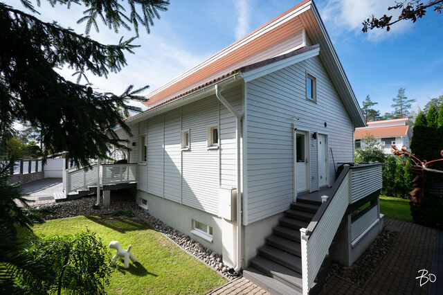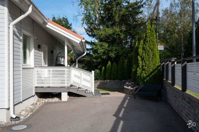 Etusivu / Uusimaa / Espoo / Turkistie 18 E 1 / 1 Turkistie 18 E Kauklahti, Espoo | Omakotitalo | 5h, k, s, khh, kotiteatteri, varasto, las.terassi 560 000 € Velaton hinta 102,0 m2 Asuinpinta-ala 204,0 m2 Kokonaispinta-ala Muuttovalmis unelmakoti KauklahdessaIdyllisen omakotialueen sydämestä löytyy tämä vuonna 2010 rakennettu, kaunis ja harmoninen koti, jossa arki ja juhla sulautuvat yhteen. Huolella suunniteltu kokonaisuus tarjoaa tilaa isommallekin perheelle, harrastuksille sekä yhteisiin hetkiin.Kodin sydän on valoisa olohuoneen, ruokailutilan ja keittiön muodostama yhtenäinen tila, jonka keskelle sijoittuva Uuniseppien varaava takka luo lämpöä ja tunnelmaa. Keittiössä on runsaasti säilytys- ja työskentelytilaa, mikä tekee siitä täydellisen sekä arkikokkailuun että suurempienkin illallisten valmisteluun. Tilava kodinhoitohuone, josta on käynti suoraan ulos, lisää arjen toimivuutta. Samasta kerroksesta löytyy myös kolme makuuhuonetta ja saunaosasto.Olohuoneesta tila jatkuu upealle lasitetulle terassille, jolta avautuu vihreät näkymät omalle pihalle. Piha on hyvin hoidettu ja suojainen, ja siellä viihtymisen kruunaa ulkoporeamme.Alakerrasta löytyy oma maailmansa: hulppea kotiteatterihuone baarinurkkauksella ja vesipisteellä sekä ylellinen kylpyhuone poreammeineen täydellinen paikka rentoutua tai viettää iltaa ystävien seurassa. Lisäksi täältä löytyy runsaasti muita tiloja, jotka sopivat esimerkiksi vieras-, harrastus-, pukeutumis- tai varastohuoneeksi; vain mielikuvitus on rajana.Tämä 2010 valmistunut kuntotarkastettu talo on erittäin hyvin pidetty ja vapautuu ensimmäisiltä omistajiltaan. Talo sijaitsee omalla tontilla, hallinnanjakosopimuksen mukaisella 600 neliön tonttiosuudella. Sijainti Kauklahden monipuolisten palvelujen lähellä on erinomainen. Alueelta löytyvät päiväkodit ja koulut, ja juna-asemakin on kävelyetäisyydellä.Varaa esittelyaika ja tule ihastumaan uuteen kotiisi!Esittelyt ja myynti:Tarja Oksanen, LKV, DI, IAT, Partnerp. 040 565 5567tarja@bo.fi Kiinnostaako tämä kohde?Ota meihin yhteyttä tai jätä viesti Tarja Oksanen kiinteistönvälittäjä LKV, DI, IAT 040 565 5567 tarja@bo.fi Tutustu välittäjään Varaa aika kalenteristani RakennusKäyttöönottovuosi2010RakennusmateriaaliPuu, muuKattotyyppiMurrettu harjakattoKateTiiliAsuinpinta-ala102,0 m2 (204,0 m2)Lisätietoja pinta-alastaRakennuslupapiirustusten mukaan huoneistoala on 102 m2. Espoon kaupungin rakennus- ja huoneistorekisteriotteen mukaan huoneistoala on 102 m2, kellarin pinta-ala 116 m2 ja kokonaisala 232 m2. Pinta-aloja ei ole tarkistusmitattu.Muut tilat102,0 m2Lämmitysjärjestelmän kuvausSähkö, ilmalämpöpumppuLämmön jakotapaSähköpatterilämmitys, sähköinen lattialämmitys, uuni/takka, ilmalämpöpumppuHuoneluku5h, k, s, khh, kotiteatteri, varasto, las.terassiKeittiön muut varusteetLiesituuletin, astianpesukoneLiesiInduktioliesi, erillisuuniKeittiön työtasojen materiaaliLaminaattiKeittiön lattiamateriaaliVinyyliKeittiön seinien materiaaliMaalattuKylpyhuoneen varustusPoreamme, lattialämmitys, suihkuKylpyhuoneen lattiamateriaaliLaattaKylpyhuoneen seinämateriaaliKaakeliSaunaAsunnossa on saunaSaunan lattiamateriaaliLaattaSaunan seinämateriaaliPuuWC-tilojen kuvausLattiamateriaalit: laattaSeinämateriaalit: maalattuKodinhoitohuoneVarustus: pesukoneliitäntä, pesuallas, lattialämmitys, lattiakaivoLattiamateriaalit: laattaSeinämateriaalit: lasikuitutapettiMakuuhuoneen kuvaus, lisätiedot ja varustusLattiamateriaalit: laminaatti, vinyyliSeinämateriaalit: lasikuitutapettiOleskelutilojen kuvaus, lisätiedot ja varustusLattiamateriaalit: vinyyliSeinämateriaalit: lasikuitutapettiMuut tilatAlakerrassa on laminaattilattia ja lattialämmitys, maalatut seinät.TakkatiedotTakkaMuut säilytystilatVaatehuoneTehdyt korjauksetTerassi rakennettu ja lasitettu 2018KuntoHyväEnergiatodistusKylläEnergialuokkaC2018 KiinteistötiedotKiinteistötunnus49-44-24-6TyyppiMääräosaTontin tyyppiTasamaatonttiTontin koko3 106,00 m2Tontin omistusOmaPanttikirjat500 000,00 €Rasitukset ja rasitteetHallinnanjakosopimus 1.12.2011: Talo E vastaa 1/5 talokaivopumppaamon käyttö- ja huoltokuluista. Lisätietoja tontistaTonttiosuus hallinnanjakosopimuksen mukaan 600 m2. Myydään 1/5 määräosa. Hallinnanjakosopimuksen karttaliitteen mukainen alue E.VesijohtoKunnanViemäriKunnanRakennusoikeus, e-luku0.20 AsumiskustannuksetVesi ja jätevesi72,00 €Puhtaanapito22,70 €Kiinteistövero922,50 €Muut maksut / lisätietoa maksuistaSähkönkulutus sisältää taloussähkön ja sähköauton lataussähkön. Esitetyt sähkön kulutusmäärät/ asumiskustannukset perustuvat nykykäyttöön ja voivat siten olla suurempia tai pienempiä riippuen riippuen asukasmäärästä, asumistottumuksista sekä palveluntarjoajasta. Vedenkulutus 4-henkiselle perheelle v. 2024. Varainsiirtovero 3%. Hallinnanjakosopimuksen mukaan talo E vastaa 1/5 jaettavista yhteisistä kustannuksista (esim. jätehuolto, pumppaamo). HintaVelaton hinta560 000,00 €Myyntihinta560 000,00 € VapautuuSopimuksen mukaan Sinua voisi kiinnostaa Asunnon hinta-arvio ja arviokäynti Asunnon hinta-arvio ja arviokäynti Mitä hinta-arvio maksaa tai miten arviokäyntiä varten kannattaa valmistautua? Katso vastauksemme usein kysyttyihin ky… Sneak Peek® Sneak Peek® Sneak Peek® -palvelumme on askeleen edellä! Löydä alueesi uusimmat ja upeimmat asunnot jo ennen kuin ne ilmestyvät as… Asuntovahti Asuntovahti Etsimässä uutta asuntoa? Aseta itsellesi Bo-asuntovahti. Saat tiedon heti, kun unelmiesi asunto tulee myyntiin. Bo Match Bo Match Kun asuntounelmat ja unelmien asunnot kohtaavat, syntyy Bo Match. Tutustu uudenlaiseen tapaan käydä asuntokauppaa.