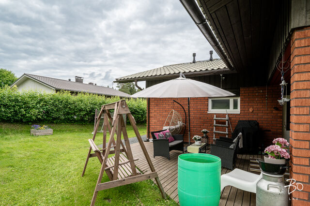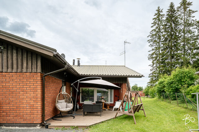 Etusivu / Pohjois-Savo / Siilinjärvi / Huuhkajantie 12 1 / 1 Huuhkajantie 12 Räisälä, Siilinjärvi | Omakotitalo | 4h+k+s 145 000 € Velaton hinta 127,0 m2 Asuinpinta-ala 1974 Rakennusvuosi Siilinjärven Räisälästä läheltä palveluja ja urheilukenttiä vapautuu seuraavalle omistajalle talo, jonka pinnat on kauttaaltaan läpi käyty vuosien saatossa. Talo on alunpitäen valmistunut vuonna 1974 ja sittemmin laajentunut kodinhoitohuoneen ja yhden makuuhuoneen verran 1990- luvun alkupuolella. Makuuhuoneita löytyy siis tätä nykyäkodista neljä, joten täällä on tilaa isommallekkin perheelle.Vasta maalattujen seinien lisäksi on kodissa uusittu myös teknistä puolta. Muun muassa: Katto on muuttunut harjakatoksi -90 luvun alkupuolella, pintaputket on uusittu 2020 ja ikkunat sekä ovet on vaihdettu 2017. Talolämpiää sähköllä pattereiden ja lattialämmityksen voimin. Lämmitysmuotoa tukemassa on olohuoneessa varaava takka sekä ilmalämpöpumppu. Tämä koti on helppo sisustaa mieleisekseen vaaleiden ja kauniiden pintojen ansiosta.Puurakenteinen ja tiiliverhoiltu omakotitalo seisoo jykevänä kulmatontilla. Pihat on aidattu tieltä päin, joten täällä on lasten ja lemmikkien turvallista temmeltää. Lapsiperheelle kodin sijainti on mitä hanteellisin. Ahmon lampi ja urheilualueet, koulut, päiväkodit, harrastusmahdollisuudet sekä kaikki Siilinjärven palvelut ovat vain kävelyetäisyydellä.Olisiko tässä teidän perheen seuraava koti?Ota yhteyttä Laura Airaksinen, LKV, LVV, KiAT I 0405515800 I laura.airaksinen@bo.fija lähdetään tutustumaan! Kiinnostaako tämä kohde?Ota meihin yhteyttä tai jätä viesti Laura Airaksinen kiinteistönvälittäjä LKV, LVV, KiAT, partner 040 551 5800 laura.airaksinen@bo.fi Tutustu välittäjään Varaa aika kalenteristani RakennusKäyttöönottovuosi1974RakennusmateriaaliPuu, tiiliRakennusmateriaalien kuvausPuurunko, tiilivuorausKattotyyppiHarjakattoKatePeltiKaton kuntoRakennuslupa 1999, katto muutettu tasakatosta harjakatoksiAsuinpinta-ala127,0 m2 (127,0 m2)Lisätietoja pinta-alastaHuoneistoala on: 127m2 Rakennus- ja huoneistorekisteriotteen mukaan kerrosala on 153m2.Kerrokset1Muut tilat0,0 m2Lämmitysjärjestelmän kuvausSähköLämmön jakotapaSähköpatterilämmitys, sähköinen lattialämmitysHuoneluku4h+k+sKeittiön kuvaus, lisätiedot ja varustusKeittiön kaapit uusittu 2006. Keittiön hana ja kaakelit 02/20. Varustus: Jääviileäkaappi, keraaminen liesitaso, liesituuletin, erillisuuni, astianpesukone (v.2019), kiinteä ruokapöytä Lattia: Laatta Seinät: MaaliPesutilojen kuvaus, lisätiedot ja varustusVarustus: 2x suihku (uusittu 01/2019) wc-istuin Lattia: laatta Seinät: kaakeliSaunaAsunnossa on saunaSaunan kuvaus, lisätiedot ja varustusSähkökiuas ja lauteet uusittu 2014Saunan lattiamateriaaliLaattaSaunan seinämateriaaliPuuWC-tilojen kuvausWc:tä uusittu 03/2020 ja 03/2024 Varustus: peilikaappi, allaskaappi, seinäkaappi, wc-istuin Lattia: laatta. Seinät: puolipaneeli, osalaatoitus.Lukumäärä: 2KodinhoitohuoneKodinhoitohuone 04/2020. Varustus: kaapistot, pesukoneliitäntä, pesuallas, pakastin, lattiakaivo kulku suoraan ulos.Makuuhuoneen kuvaus, lisätiedot ja varustusLukumäärä: 4Lattiamateriaalit: laminaattiSeinämateriaalit: maalattuOleskelutilojen kuvaus, lisätiedot ja varustusLattiamateriaalit: laattaSeinämateriaalit: maalattuTulisijaVaraavatakkaSeinämateriaalitMaalaus 2024LattiamateriaalitKodinhoitohuoneen vieressä olevan makuuhuoneen laminaattilattia uusittu 2020. Makuuhuone 1 ja 2 laminaatit vaihdettu 04/24Tehdyt korjaukset-Laajennus -90 luvun lopussa -Ikkunat 08/2017 ja ovet 08/2017 -Pesuhuoneen suihkut 2019 -Pintaputket, ei wc 04/2020 -Keittiön hana ja kaakelit 02/2020 -Kodinhoitohuone 04/2020 -Wc 03/2020 +03/2024 -Maalaus 03/2024Muuta kauppaan kuuluvaaMaton tamppausteline, pyöräteline, kiinteä ruokapöytä, kohdevalaisimet, lämminvesivaraaja, eteisen seinä- ja kattolamput, tuulikaapin hattuhylly/naulakko, ilmalämpöpumppu, verhotangot, sälekaihtimet, pukuhuoneen pöytätaso + laatikosto ja korkeakaappi, päämakuuhuoneen puinen seinähylly, rullaverhotKauppaan ei kuuluIrtokalusteet, huone 1 vaatekaappi, pyykinpesukone ja kuivausrumpuKuntoHyväLisätietoja energiatodistuksestaTeetätetään ennen kauppoja KiinteistötiedotKiinteistötunnus749-402-14-45-L10TyyppiOmakotitaloTontin tyyppiTasamaatonttiTontin koko999,00 m2Tontin omistusVuokrattuTontin vuokrasopimus päättyy31.12.2073Tontin vuokra469,57 €Tontin vuokraajaSiilinjärvenkuntaRasitukset ja rasitteetKts. rasitustodistus ja kiinteistörekisterioteLisätietoja tontistaTie perilleVesijohtoKunnanViemäriKunnan AsumiskustannuksetKiinteistövero207,64 €Muut maksut / lisätietoa maksuistaSähkön kulutus vuonna 2023: 24546,03 kWh HintaVelaton hinta145 000,00 €Myyntihinta145 000,00 € VapautuuSopimuksen mukaanMaksuehtoKäteinen. Sinua voisi kiinnostaa Asunnon hinta-arvio ja arviokäynti Asunnon hinta-arvio ja arviokäynti Mitä hinta-arvio maksaa tai miten arviokäyntiä varten kannattaa valmistautua? Katso vastauksemme usein kysyttyihin ky… Sneak Peek® Sneak Peek® Sneak Peek® -palvelumme on askeleen edellä! Löydä alueesi uusimmat ja upeimmat asunnot jo ennen kuin ne ilmestyvät as… Asuntovahti Asuntovahti Etsimässä uutta asuntoa? Aseta itsellesi Bo-asuntovahti. Saat tiedon heti, kun unelmiesi asunto tulee myyntiin. Bo Match Bo Match Kun asuntounelmat ja unelmien asunnot kohtaavat, syntyy Bo Match. Tutustu uudenlaiseen tapaan käydä asuntokauppaa.