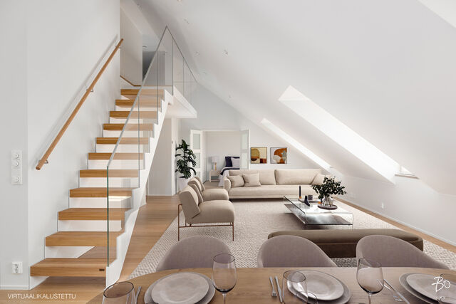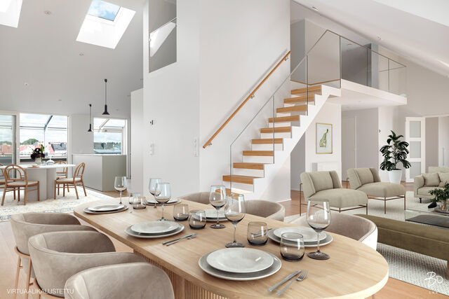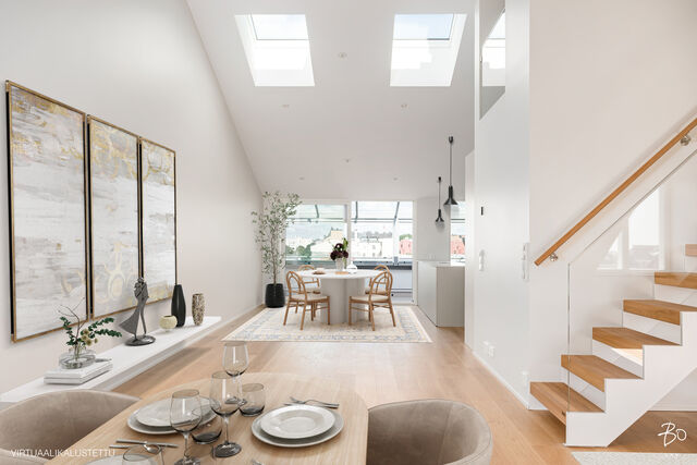 Etusivu / Uusimaa / Helsinki / Tehtaankatu 25 1 / 1 Tehtaankatu 25 Punavuori, Helsinki | Kerrostalo | 4h, avok, parvi, kph, s, wc, terassi (4h+kt+kh/khh+wc+parvi+terassi) 2 170 000 € Velaton hinta 166,5 m2 Asuinpinta-ala 499,50 €/kk Hoitovastike 1931 Rakennusvuosi Fantastinen ylimmän kerroksen asunto huippunäkymillä!Asunnossa on mahtava huonekorkeus ja paljon upeaa avointa ja valoisaa tilaa. Modernia designia henkivässä huoneistossa on saarekkeellinen avokeittiö yhdistettynä ruokailutilaan ja olohuoneeseen. Avokeittiö yhdistettynä ruokailutilaan ja olohuoneeseen on moderni ja käytännöllinen ratkaisu. Se luo sosiaalisen keskuksen, jossa voi valmistaa ruokaa samalla kun seurustelee vieraiden kanssa. Keittiön ja ruokailutilan yhteydessä on suuri lasitettu parveke, josta avautuvat upeat avarat kaupunkinäkymät.Asunnosta löytyy kolme makuuhuonetta, jotka tarjoavat runsaasti tilaa perheelle tai työ- ja harrastekäyttöön. Tilava parvi tuo lisäksi joustavasti lisäneliöitä, joita voi hyödyntää esimerkiksi vierashuoneena, työtilana tai lepopaikkana. Lisäksi huoneistossa on upea kylpyhuone saunalla varustettuna sekä erillinen wc. Huoneistosta aukeaa mahtavat merelliset näkymät yli vanhan Eiran. Asunnon varustelutaso on todella korkealuokkainen ja siinä on huoneistokohtainen viilennys.Hyvä taloyhtiö, jossa isot korjaukset on tehty, mm. linjasaneeraus uusittuine kylpyhuoneineen, putkistoineen ja viemäreineen. Ullakkorakentamisen yhteydessä taloyhtiö on uusinut myös sisäpihan. Uutta on myös hissit ja katto.Varaa oma yksityisesittelysi.Sakari MattilaLaillistettu kiinteistönvälittäjä, LVV, KiLAT sakari.mattila@bo.fi+358445340037Mika Suonsilta, Bo LKVLKV, Partnermika.suonsilta@bo.fi+358400224553Matias von Schantz, Bo LKVOsakasmatias@bo.fi+35850087087 Kiinnostaako tämä kohde?Ota meihin yhteyttä tai jätä viesti Mika Suonsilta kiinteistönvälittäjä LKV, partner 0400 224 553 mika.suonsilta@bo.fi Tutustu välittäjään Varaa aika kalenteristani HuoneistoOsakkeet4325-4482HallintamuotoAsunto-osakeyhtiöHuoneluku4h, avok, parvi, kph, s, wc, terassi (4h+kt+kh/khh+wc+parvi+terassi)Kerros/Kerroksia8/8Asuinpinta-ala166,5 m2Muut tilat0,0 m2Lisätietoja pinta-alastaAsunnon pinta-ala on tarkistusmitattu 07.07.2023. Tarkistusmitattu pinta-ala (166,5 m2) poikkeaa rekisteröidyn yhtiöjärjestyksen pinta-alasta. Tarkistusmitattu pinta-ala viedään yhtiöjärjestykseen. Isännöitsijäntodistuksen mukainen. Tarkistusmitattu.NäkymätKookas terassi vehrein sisäpihanäkymin. Teräsrunkoinen lasikate ja avattava kaidelasitus. Seinäpinnoissa rapattu sementtikuitulevy. Lattiassa sähkölämmitys ja laatoitettu pinta. Asunnosta näkymät Vanhaan Eiraan, merimaisemia ja vehreitä sisäpihanäkymiä.HissiTaloyhtiössä on hissiKeittiön kuvaus, lisätiedot ja varustusLaadukkaat, italialaiset keittiökalusteet Snaidero. Kivitasot, integroidut kodinkoneet (Miele, Siemens, Bora). Keittiössä varaus kaasuliedelle.Pesutilojen kuvaus, lisätiedot ja varustusSeinät ja lattia laatoitettu, allaskaappi, peilikaapisto, suihkuseinä. Pesukoneelle ja kuivausrummulle erillinen tila.WC-tilojen kuvausLattiamateriaalit: laattaSeinämateriaalit: kaakeliSaunan kuvaus, lisätiedot ja varustusTaloyhtiön sauna maantason kerroksessa sisäpihan puolella.Saunan lattiamateriaaliLaattaSaunan seinämateriaaliPuuMakuuhuoneen kuvaus, lisätiedot ja varustusLukumäärä: 3Lattiamateriaalit: parkettiSeinämateriaalit: maalattuOleskelutilojen kuvaus, lisätiedot ja varustusLattiamateriaalit: parkettiSeinämateriaalit: maalattuKuntoHyvä Kiinteistö- ja yhtiötiedotYhtiön nimiAsunto Oy Tehtaankatu 25 - Bostads Ab FabriksgatanTontin omistusOmaTontin koko1 526,00 m2Käyttöönottovuosi1931RakennusmateriaaliTiiliKattotyyppiHarjakattoKatePelti / tiiliLämmitysjärjestelmäKauko, muuEnergiatodistusKylläEnergialuokkaD2018Tehdyt korjaukset ja remontitKUNNOSSAPITO- JA MUUTOSTYÖHISTORIA / MERKITTÄVIMMÄT KORJAUKSET: 1971 Ikkunat kadunpuoli 1979 Ikkunat pihanpuoli 1980 Sähköpääkeskus, puhelinverkko, HTV 1980, 1992 Sähkönousut 1992 Asbestin poisto 1994 Ulko-ovet kadunpuoli / kunnostus 1993-1994 Julkisivut 1996-1998 Vesikatto 1996-1997 Porrashuoneiden maalaus 1997 Parvekkeet 1999 Hormien puhdistus 2000 Pohjaviemäri 2001 Vesikaton maalaus, syöksytorvet/kaapelointi 2004 Pystyviemärien painepesu 2005 Hissien peruskorjaus 2009-2010 Pihanpuolen julkisivu, kadunpuolen ikkunoiden huoltomaalaus 2012 LVIS-saneerauksen hankesuunnittelu 2013-2014 LVIS-saneerauksen suunnittelu 2015-2017 LVIS-saneeraus (perinteinen putkiremontti: käyttövesiputket, viemärit, asuntojen kylpyhuoneet, sähköpääkeskus 2016, sähkökaapit asunnoissa, taloyhtiön saunanosasto, iv-hormien sukitus pääosin, kellarit remontoitu ja uudet häkkivarastot asunnoille. Remontin vastaanottotarkastus oli 1/2017). 2015 Lukituksen uusiminen / Iloq-järjestelmä 2016 Lämmönjakokeskus uusittu, sähköpääkeskus uusittu, sauna uusittu 2017 Katon Tehtaankadun puoleisen jalkarännin kunnostus 2018 Ajoportin automatisointi, liiketilojen yhdenmukaiset markiisit, sisäpihan rapun ulko-ovien maalaus ja kunnostus, sisäänkäyntien numerovalaisimien uusinta, liiketilan nro 3 etuosan keittiön putkien uusiminen (ei tehty LVIS-remontissa), A-rapun yhteen hormilinjaan asennettu vedonparantajat 13 kpl 2019 Ravintolatilan tuulikaappipuhallin asennettu, liikehuoneistojen (7 kpl) ovien ja ikkunoiden uusiminen 2020 Huoneistoihin erillis-wc-tilaan asennettu sähköpatteri, ullakon haitta-ainetutkimukset, kellarin kosteustutkimus, pihalla pohjatutkimus ja pinnantasaussuunnitelma 2021 Porraskäytävän kadun puolen ulko-ovien uusiminen, hormikartoitus ullakolla, ylimmän kerroksen asunnoissa, liiketiloissa ja n. 10 muussa asunnossa 2022 Sisäpihan kunnostus (sisäpihan vedenohjaus, sokkeleiden vedeneristys, salaojajärjestelmä, pihan rakennekerrokset, pihan kiveys ja asfaltointi, viheralueet ja istutukset, viherkattoinen pyöräkatos, palonkestävät jätesuoj