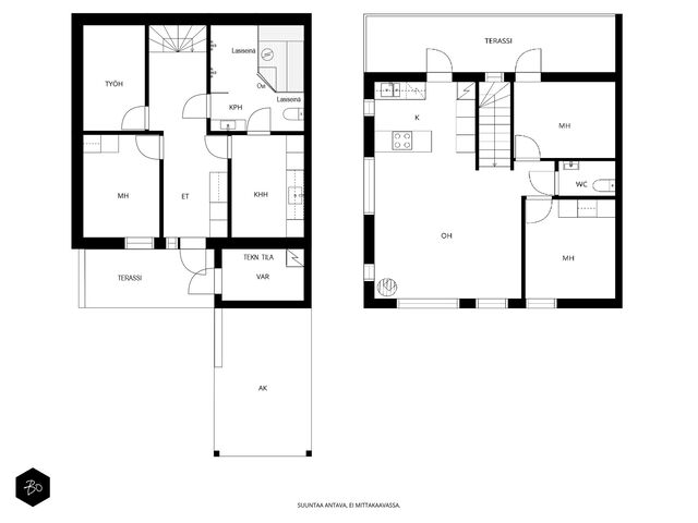Etusivu / Varsinais-Suomi / Naantali / Tähkäkuja 5 1 / 1 Tähkäkuja 5 Venka, Naantali | Paritalo | 4h+k+th+ak+terassi+lämmin varasto 437 000 € Velaton hinta 108,0 m2 Asuinpinta-ala 112,9 m2 Kokonaispinta-ala 2026 Rakennusvuosi Villa Aurinkohirsi modernin luksuksen ja luonnon täydellinen liittoA-energialuokan uudishirsikodit ovat Suomessa harvinaisia, joten Villa Aurinkohirsi edustaa energialuokaltaan ja vakiovarustelultaan hirsirakentamisen ehdotonta kärkeä. Kuusamo Hirsitalojen laadukkaasta hirrestä Rakennuspalvelu Tähtinen Oy:n toteuttama koti yhdistää hirsirakentamisen arvokkuuden, uusimman teknologian ja ekologisen elämäntavan. Hirsi on paitsi aikaa kestävä ja kaunis myös terveellinen sen luonnollinen hengittävyys ja erinomaiset sisäilmaominaisuudet tukevat asukkaidensa hyvinvointia.Elämys jo ensisilmäykselläAurinkogolfin laidalle sijoittuva Villa Aurinkohirsi kietoo yhteen luonnonrauhan ja modernin tyylikkyyden. Tummasävyinen hirsijulkisivu sulautuu harmonisesti kallioiseen ympäristöön, ja sen ajaton arkkitehtuuri huokuu arvokkuutta. Takaterassilta avautuva näkymä metsän syvään rauhaan tekee jokaisesta päivästä elämyksen täällä yksityisyys ja luonnon läheisyys ovat aina osa arkea.Älykkään energiatehokasta asumistaVilla Aurinkohirsi on kodin ja teknologian täydellinen symbioosi. Sen sydämenä toimii markkinoiden huipputasoa edustava NIBE S735 -poistoilmalämpöpumppu (SCOP 4,75), jota tukee SAM 42-yksikkö lähes äänettömään ja tasapainoiseen ilmanvaihtoon.Kokonaisuuden viimeistelevät:Vesikiertoinen lattialämmitys takaa tasaisen lämmön ja mukavuuden.Ilmalämpöpumppu tuo lisätehoa lämmitykseen ja viilennystä kesäpäiviin.4,5 kWh aurinkosähköjärjestelmä pienentää energiakuluja (vuosituottoarvio n. 3839 kWh).Näiden ratkaisujen ansiosta kodin ostoenergiantarve jää arviolta vain noin 7700 kWh vuodessa tuloksena on poikkeuksellisen kustannustehokas ja ekologinen asuminen.Tyylikästä arkea, elämyksellisiä hetkiäSisätiloissa yhdistyvät moderni estetiikka ja hirsikodin lämmin tunnelma:Yläkerran korotettu huonekorkeus ja rimapaneelikatto tuovat näyttävyyttä ja avaruutta.Puustellin laadukas keittiö tarjoaa huippuluokan toiminnallisuutta ja ajattoman designin.Kylpyhuoneen suuret laatat ja huomaamaton linjakaivo huokuvat modernia eleganssia.Saunan lasiseinät kahteen suuntaan avaavat näkymän jokainen löylyhetki on elämys.Arjen sujuvuutta tukevat autokatos, lämmin varasto ja lisäautopaikka. Lisäksi kustannuksia keventää se, ettei asunto-osakeyhtiön hallintokuluja ole.Villa Aurinkohirsi, jossa golfkentän tunnelma, metsän rauha ja moderni hirsiasuminen muodostavat ainutlaatuisen, aikaa kestävän kokonaisuuden.Esittelyt ja lisätiedot:Mauno Heinonen040 937 2247 | mauno.heinonen@bo.fi Kiinnostaako tämä kohde?Ota meihin yhteyttä tai jätä viesti Mauno Heinonen kiinteistönvälittäjä LKV, KiAT, partner 040 937 2247 mauno.heinonen@bo.fi Tutustu välittäjään Varaa aika kalenteristani RakennusRakennusvuosi (aloitettu)2025Käyttöönottovuosi2026RakennusmateriaaliHirsiKattotyyppiHarjakattoKateLukkosaumakateKaton kuntoUusiAsuinpinta-ala108,0 m2 (112,9 m2)Lisätietoja pinta-alastaIlmoitettu asuintilojen pinta-ala on rakennusoikeuslaskelman mukainen huoneistoala 108 m2 ja muut tilat on rakennuspiirustusten mukainen lämpimän varaston pinta-ala 4,9 m2. RAKENNUSOIKEUSLASKELMA: TONTIN PINTA-ALA 1 685 m2 RAK.OIKEUS 250 + 25 m2 RAKENNETTAVA KERROSALA 250 + 13 m2 RAKENNETTAVA KERROSALA (seinä 250 mm) 241 + 13 m2 RAKENNETTAVA KOKONAISALA 256 + 13 m2 RAKENNETTAVA HUONEISTOALA 108 + 108 = 216 m2 RAKENNETTAVA TILAVUUS 860 m3 JÄLJELLE JÄÄVÄ RAK.OIKEUS 9 + 12 m2 Muut tilat4,9 m2LämmitysVesikiertoinen lattialämmitys, muu. UusiLämmitysjärjestelmän kuvausPoistoilmalämpöpumppu, ilmalämpöpumppu, muuHuoneluku4h+k+th+ak+terassi+lämmin varastoKeittiön kuvaus, lisätiedot ja varustusLaadukas puustellin keittiö. Mahdollisuus vaikuttaa materiaaleihin. Astianpesukone iQ100 kalustepeitteinen, 60cm Kylmälaite kaappipakastin/jääkaappi iQ300 186cm, no frost, teräs Liesitaso iQ300 combi induktiokeittotaso integroidulla liesituulettimella, 80cm Uuni iQ100 kalusteisiin sijoitettava, musta Mikroaaltouuni iQ300, 60cm, musta Pesuallashana Oras Vega. Lattia, Laadukas vinyylilankku.Pesutilojen kuvaus, lisätiedot ja varustusTyylikäs moderni kylpyhuone 600x600 laatta integroitu linjakaivo, kaksi suihkua Oras Optima, Oras Apollo suihkusetit, pesuallashana Oras Vega, Bidetta käsisuihku, WC-istuin IDO huuhtelukaulukseton, valkoinen. Lattia ja seinät laattaa. Mahdollisuus vaikuttaa materiaaleihin.SaunaAsunnossa on saunaSaunan kuvaus, lisätiedot ja varustusSaunankaksi seinää lasia ja kaksi seinää hirsipaneeli, lauteet lämpöhaapa. Harvia Cilindro intregroitu kiuas etäohjauksella. Lattia laattaa. Mahdollisuus vaikuttaa materiaaleihin.WC-tilojen kuvausPesuallashana Oras Vega, Bidetta käsisuihku, WC-istuin IDO huuhtelukaulukseton, valkoinen. Lattiat ja seinät 600x600 laattaa. Mahdollisuus vaikuttaa materiaaleihin.Lukumäärä: 1KodinhoitohuonePesuallashana Oras Vega, lattia 600x600 laattaa. Mahdollisuus vaikuttaa materiaaleihin.Makuuhuoneen kuvaus, lisätiedot ja varustusLaadukas vinyylilankkuLukumäärä: 3Oleskelutilojen kuvaus, lisätiedot ja varustusLaadukas vinyylilankkuMuut tilatLaattalattia. Terassilauta painekyllästetty 28x120 mm ruskeaMuuta kauppaan kuuluvaaKiintokalusteet Puustelli, erillisen suunnitelman ja kuvien mukaisesti. Asiakas voi vaikuttaa kiintokalusteratkaisuihin niin pitkään, kunnes tuotteet tilattuKuntoUusiEnergiatodistusKylläEnergialuokkaA2018 KiinteistötiedotKiinteistötunnus529-25-5-4Kortteli/Kiinteistön nimi5TyyppiTonttiTontin tyyppiTasamaatonttiTontin koko1 967,00 m2Tontin omistusOmaPanttikirjat0,00 €Lisätietoja tontistaHallinnanjakosopimuksen mukainen määräosa 1/2 tontista ja sillä sijaitseva rakennuksen osa. Sitova tonttijako.Tie perilleVesijohtoKunnanViemäriKunnanRakennusoikeu