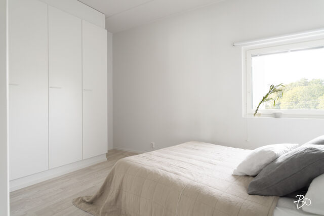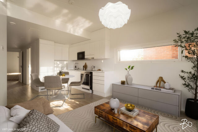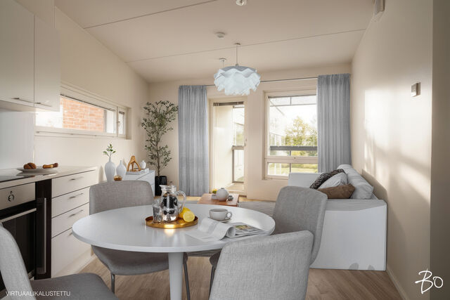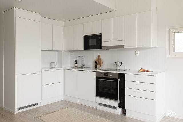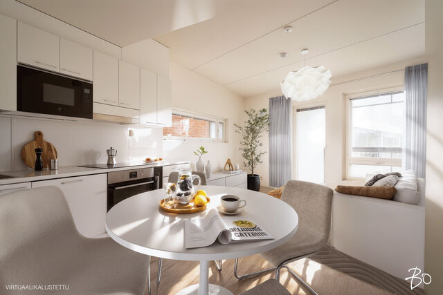 Etusivu / Uusimaa / Helsinki / Veräjä 8 1 / 1 Veräjä 8 Oulunkylä, Helsinki | Kerrostalo | 3h+avok+kph+s+wc+vh+lasitettu parveke (yj:n mukaan 3h+kk+s) 229 000 € Velaton hinta 59,0 m2 Asuinpinta-ala 407,10 €/kk Hoitovastike 2021 Rakennusvuosi Tarjolla upea moderni kolmio Veräjämäessä juna-aseman ja Raidejokerin läheisyydessäTämä vuonna 2021 valmistunut koti ei ole se tylsä tavallinen uudisasunto, vaan tarjoaa persoonallisilla ratkaisuillaan ja hieman epätavallisella arkkitehtuurillaan kivan omanlaisensa tunnelman. Uuden talon moderni tekniikka tekee tästä helpon kohteen asua ja saa unohtamaan taloremonttihuolet pitkäksi aikaa tulevaisuuteen. Mielenkiintoinen pohjaratkaisu kätkee sisäänsä kaksi hyvänkokoista makuuhuonetta, joihin saa mahdutettua tarvittaessa myös mm. etätyöpisteen. Olohuone avokeittiöineen yhdistää mukavasti kokkailun, ruokailun ja oleskelun, ja täältä pääsee tilavalle lasitetulle parvekkeelle, josta avaran vehreät näkymät pihapiiriin. Avokeittiön raikkaan valkoiset kaapistot integroituine kodinkoneineen sulautuvat kauniisti tilaan muodostaen harmonisen kokonaisuuden.Kylpyhuone on tilava ja sen yhteydessä löylyttelet omassa saunassasi omien aikataulujen mukaisesti. Tässä modernissa saunassa on ikkuna ja lasiseinä tuomassa ilmavuutta ja valoa tilaan. Valaistusta on mahdollisuus säätää eri tunnelmiin sopivaksi. Lisäksi asunnossa on toinen erillinen wc tuomassa sujuvuutta arkeen. Tämän päivän hienouksia ja asumismukavuutta lisääviä ominaisuuksia ovat lisäksi vesikiertoinen lattialämmitys ja -viilennys, jotka on mahdollista säätää huonekohtaisesti (lämmitys/viilennys/ilmankosteus). Hissitalon 2. kerrosOulunkylän kupeessa sijaitseva Veräjämäki on rauhallinen ja pidetty asuinalue, josta on erinomaiset liikenne yhteydet mm. junalla. Luonto ja upeat liikuntamahdollisuudet ovat täällä lähellä, ja Oulunkylän palveluita on helppo käyttää.Valinnainen vuokratontti, joka on mahdollista lunastaa omaksi.Tämä koti vapautuu käyttöösi jo kaupanteossa.Voisiko tämä olla Sinun uusi viihtyisä kotisi? Ole pian yhteydessä ja kysy lisätietoja sekä kysy esittelyaikoja tähän upeaan kotiin. TÄMÄN KOHTEEN MYY Susanna Arnall LKV LVV | 0400-884448 | susanna@bo.fiService also in English. http://www.susannaarnall.comhttp://www.facebook.com/susannaarnalllkv/IG: @susannaarnallHarkitsetko oman asuntosi myyntiä? Pyydä minut sitoumuksetta maksuttomalle arviokäynnille. Kerron samalla lisää tämänhetkisestä asuntomarkkinatilanteesta, palveluistani ja Bo:n loistavasta välityskonseptista sekä miten asunnonvaihdon suhteen kannattaa edetä. Autan mielelläni! Kiinnostaako tämä kohde?Ota meihin yhteyttä tai jätä viesti Susanna Arnall kiinteistönvälittäjä LKV, LVV, partner 0400 884 448 susanna@bo.fi Tutustu välittäjään Varaa aika kalenteristani HuoneistoOsakkeet7662-9036HallintamuotoAsunto-osakeyhtiöHuoneluku3h+avok+kph+s+wc+vh+lasitettu parveke (yj:n mukaan 3h+kk+s)Kerros/Kerroksia2/5Asuinpinta-ala59,0 m2Muut tilat0,0 m2Lisätietoja pinta-alastaPinta-alaa ei ole tarkistusmitattu. Toimeksiantajan ilmoittama. Yhtiöjärjestyksen mukainen. Isännöitsijäntodistuksen mukainen.NäkymätNäkymä avaralle sisäpihalle.ParvekeLasitettuParvekkeen ilmansuuntaKoillinenHissiTaloyhtiössä on hissiKeittiön kuvaus, lisätiedot ja varustusTyylikäs, moderni ja raikas Topi keittiö. Keittiössä hyvin kaappitilaa. Kaikki kodinkoneet ovat integroituja (Electorlux) paitsi viinikaappi on AEG. Induktio liesi, liesituuletin, astianpesukone, jääkaappi/pakastin, mikro. Välitila levytetty ja valonauha kaappien alla. Lattia: vaalea laminaattia Seinät: valkoiseksi maalattu LiesiIntegroitu liesi, induktioliesiKeittiön työtasojen materiaaliLaminaattiKeittiön lattiamateriaaliLaminaattiKeittiön seinien materiaaliMaalattuPesutilojen kuvaus, lisätiedot ja varustusAvara kylpyhuone johon pääsee myös luonnonvaloa. Pesukoneen lisäksi tilaa myös pesutornille. Wc-istuin, bidee käsisuihku, allaskaappi, peilikaappi, sademetsäsuihku. Lattia: musta laatta Seinät: valkea laatta Katto: tervaleppäpaneeliaKylpyhuoneen varustusSuihkuseinä, pesukone, pesukoneliitäntä, lattialämmitys, wc-istuin, suihku, peilikaappiKylpyhuoneen lattiamateriaaliLaattaKylpyhuoneen seinämateriaaliKaakeliWC-tilojen kuvausAsumismukavuutta lisää erillinen wc makuuhuoneiden läheisyydessä. Wc-istuin, bidee käsisuihku, allaskaappi, peilikaappi. Lattia: musta laatta Seinät: valkea kaakelointi ja maalattu Katto: tervaleppäpaneeliaVarustus: lattiakaivo, peilikaappiLattiamateriaalit: laattaSeinämateriaalit: kaakeliSaunan kuvaus, lisätiedot ja varustusIkkunallinen moderni sauna, yhdistetty lasiseinällä kylpyhuoneeseen. Mahdollisuus kolmeen eri tunnelmavalaistukseen. Ajastettava Harvian sähkökiuas ja tähtivalaistus. Kiuas vaihdettu muutama kuukausi sitten, Lattia: musta laatta Seinät: tervaleppäpaneelia Katto: tervaleppäpaneeliaSaunan lattiamateriaaliLaattaSaunan seinämateriaaliPuuMakuuhuoneen kuvaus, lisätiedot ja varustusKaksi makuuhuoneetta joissa hyvin säilytystilaa. Kummassakin makuuhuoneessa tilaa työpisteelle ja mahdollisuus tv-liitännälle. Lattia: vaalea laminaatti Seinät: valkea maalattu Katto: valkea ruiskutasoiteLattiamateriaalit: laminaattiSeinämateriaalit: kivi, maalattuOleskelutilojen kuvaus, lisätiedot ja varustusOlohuone yhdistyy kivasti keittiöön ja lasitettuun parvekkeeseen. Kesäaikaan iso lasitettu parveke luo asuntoon yhden lisähuoneen. Täysin esteetön näkymä viheralueelle. Koko asuntoon on luotu modernilla/leikkisällä arkkitehtuurilla omintakeinen tunnelma. Tilaa löytyy mukavasti ruokailuryhmälle ja isolle taulutelevisiolle sekä kahdelle kattovalaisimelle. Lattia: vaalea laminaatti Seinät: valkea maalattu Katto: valkea ruiskutasoiteLattiamateriaalit: laminaattiSeinämateriaalit: kivi, maalattuSeinämateriaalitMaalattu kiviseinä.LattiamateriaalitKoko huoneistossa kylpyhuonetta ja WC:tä lukuun ottoma