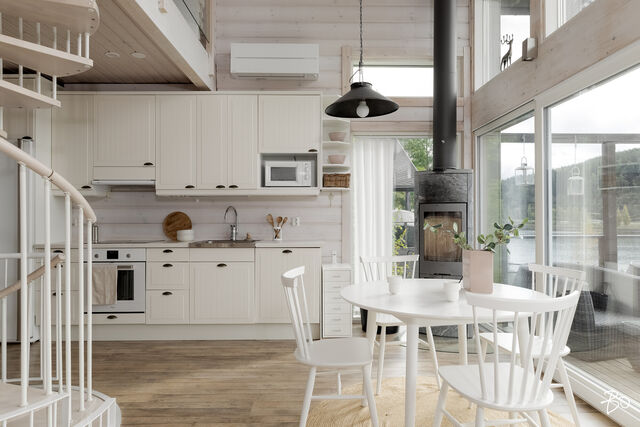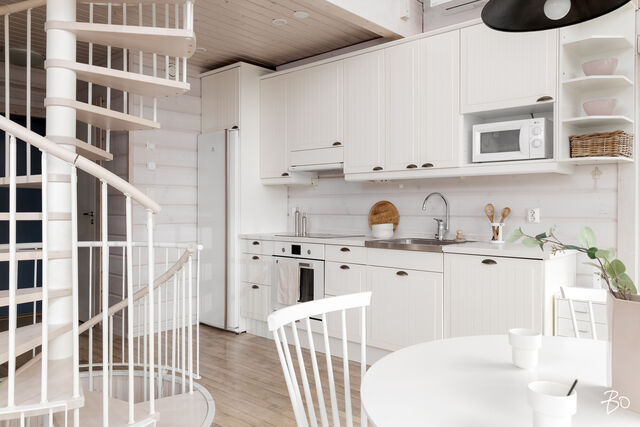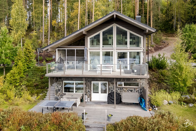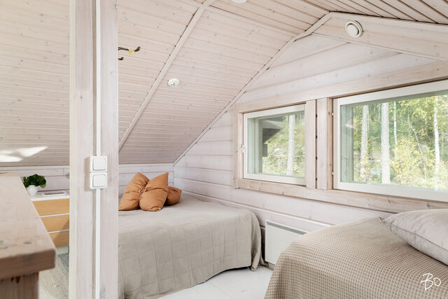 Etusivu / Keski-Suomi / Jämsä / Himosrannantie 40 1 / 1 Himosrannantie 40 Himos, Jämsä | Lomahuoneisto | 1 mh, 1 mt, k, kph, s, khh, parvi, lasitettu parveke, terassi, autokatos 340 000 € Velaton hinta 98,0 m2 Asuinpinta-ala 2013 Rakennusvuosi Omarantainen ja harvinainen yhtiömuotoinen huvila Himokselta! Tervetuloa Himosrannantielle! Tämä 2013 rakennettu hirsihuvila vapautuu seuraavalle modernia mökkielämää etsivälle perheelle tai pariskunnalle hyväkuntoisena ja helppohoitoisena tyyssijana. Rinnetontilta näkymät ovat esteettömät järvelle, hiekoitettua rantaa koristaa laituri ja tontti on pengerretty niin, että sinne ollaan saatu sijoitettua vielä siisti grillikota. Sisään saavutaan yläkertaan, jossa sijaitsevat avoin keittiö ja olohuone, erillinen wc sekä makuuhuone. Suuri parveke on sekä avointa että katettua ja katettu osuus on vieläpä lasitettu mahdollistaen mahdollisimman pitkäaikainen käyttö. Nätteinä päivinä aamukahvit tarjoillaan parvekkeelle ja saunajuomat nautitaan alakerran terassilla rauhallisissa näkymissä. Alakerrassa ovat saunatilat sekä tilava kylpyhuone. Koko saunan levyiset ikkunat järvelle päin kutsuvat löylyihin. Alakerran avoin tila on hyödynnetty makuuhuonekäyttöön ja myös alakerrasta löytyy erillinen wc tuomaan käytännöllisyyttä. Alakerrassa on myös hyvät varastotilat, tekninen tila sekä kodinhoitohuone. Kiinteistö Oy Himoksen Pihlajanranta koostuu neljästä vastaavasta huvilasta. Oma päälle 3000 neliön tontti on jaettu samansuuruisiin lohkoihin kullekin huvilalle. Vastike on edullinen ja huvilalla on oma vesi- ja sähkömittaus, jonka perusteella kulut tulevat omistajalle kulutuksen mukaisesti. Vastikkeeseen sisältyy kiinteistöveron lisäksi talviaikaan lumenaurausta ja hiekoitusta ostopalveluna sekä hallinnointi. Osakkeen omistajalla on laaja vastuu oman huvilansa huollosta ja kunnossapidosta. Tärkeänä huomioitavana seikkana tätä huvilaa harkitessa on se, että yhtiöjärjestys kieltää huvilan lyhytaikaisen vuokraustoiminnan pitääkseen naapuruston rauhallisena. Tällä kirjauksella toki todella hyvänä puolena tulee käytäntöön se, että pääset viettämään omalla porukalla tai perheellä rauhallista mökkielämää hulppeissa olosuhteissa. Himos palveluineen on kivenheiton päässä. Talvisin Himos toimii laskettelijoiden lomanviettopaikkana, kesällä taas alueella on loistavat puitteet aktiiviseen retkeilyyn sekä golfiin ja padeliin. Tältä huvilalta voit päästä rinteille vaikka järven yli hiihtäen tai kävellen. Himoksen aluetta kehitetään edelleen yhä paremmin ympärivuotiseen lomailuun panostaen. Tapahtumakirjo ympäri vuoden on laaja ja myös ravintolapalvelut löytyvät alueelta. Alueen mökkitarjonta keskittyy suurilta osin eri alueille ja tämä huvila erottuu omalla laadukkaalla rannallaan muusta tarjoomasta. Varaa oma esittelyaikasi! Tätä kokonaisuutta välittää: Antti Saleva Bo LKV 041 315 3527 antti.saleva@bo.fi Kiinnostaako tämä kohde?Ota meihin yhteyttä tai jätä viesti Antti Saleva asuntomyyjä, KTM, partner 041 315 3527 antti.saleva@bo.fi Tutustu välittäjään Varaa aika kalenteristani RakennusKäyttöönottovuosi2013RakennusmateriaaliPuuKattotyyppiHarjaKateHuopaAsuinpinta-ala98,0 m2 (98,0 m2)Lisätietoja pinta-alastaPinta-alatieto saatu yhtiöjärjestyksestä sekä isännöitsijäntodistuksesta. Rakennuspiirustusten mukainen huoneistoala 44,5 m2. Huoneistoselitelmässä alakerran KHH/tekninen tila on kirjattu makuuhuoneena nykyisen huoneen käyttötarkoituksen mukaan, isännöitsijäntodistuksessa 2 h+k. Yläkerrassa olohuoneen yhteydessä syvennetty makuutila MT (6 m2) Kerrokset2Muut tilat0,0 m2Lämmitysjärjestelmän kuvausSähkö, ilmalämpöpumppuHuoneluku1 mh, 1 mt, k, kph, s, khh, parvi, lasitettu parveke, terassi, autokatosKeittiön kuvaus, lisätiedot ja varustusI-mallinen keittiö olohuoneen ohessa. Keittiön muut varusteetAstianpesukone, kiinteät valaisimet, liesituuletin / hormiLiesiKeraaminen liesiKeittiön työtasojen materiaaliLaminaattiKeittiön lattiamateriaaliLaminaattiKeittiön seinien materiaaliPuuPesutilojen kuvaus, lisätiedot ja varustusKylpyhuoneessa myös erillinen naulakko ja istuintilaa. Kylpyhuoneen varustusSuihkuseinä, lattialämmitys, suihku, kiinteät valaisimetKylpyhuoneen lattiamateriaaliLaattaKylpyhuoneen seinämateriaaliKaakeliSaunan kuvaus, lisätiedot ja varustusTilava sauna vastakkaisilla lauteilla ja leveät näkymät järvelle. Harvia pylväskiuas sekä saunassa oma kaivo. Tehty modernisti suurilla ikkunoilla kylpyhuoneen suuntaan. Saunan lattiamateriaaliLaattaSaunan seinämateriaaliPuuWC-tilojen kuvausAlakerran wc:ssä pöytätaso, allas, allaskaappi sekä peilikaappi. Varustus: lattialämmitys, lattiakaivo, peilikaappi, bidee-suihkuLukumäärä: 2Lattiamateriaalit: laattaSeinämateriaalit: puuKodinhoitohuoneKodinhoitohuoneen yhteydessä tekniikka (ilmanvaihtokone, lämminvesivaraaja, sähkötaulu). Varustus: pesukoneliitäntä, lattiakaivo, pyykkikaapit, pöytätasoLattiamateriaalit: laattaSeinämateriaalit: maalattuMakuuhuoneen kuvaus, lisätiedot ja varustusSyvennetty makuutila (6 m2) yläkerrassa olohuoneen yhteydessä. Alakerrassa makuuhuonekäytössä rakennuspiirustuksiin kirjattu khh/tekninen tila. Tekninen tila on eriytetty verholla. Lattiamateriaalit: laatta, laminaattiSeinämateriaalit: puuOleskelutilojen kuvaus, lisätiedot ja varustusKorkea olohuonetila, josta näkyvyys suurista ikkunoista suoraan järvelle. Olohuoneesta kulku avoimelle parvekkeelle sekä lasitetulle parvekkeelle. Olohuonetta koristaa takka. Olohuoneen ohessa nukkumasoppi (MH). Lattiamateriaalit: laminaattiSeinämateriaalit: puuMuut tilatTilava ja valoisa parvi, jossa tilaa useammalle sängylle. TakkatiedotTakkaSeinämateriaalitValkeakuullotetut hirsiseinät.LattiamateriaalitAlakerrassa laattalattia ja yläkerrassa laminaatti. Muuta kauppaan kuuluvaaIstutukset, parvekelasituksetKuntoHyvä KiinteistötiedotTontin koko3 166,00 