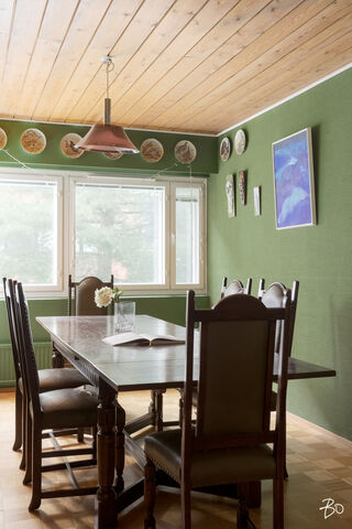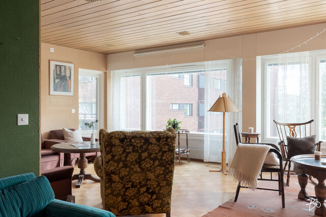 Etusivu / Keski-Suomi / Jyväskylä / Aatoksenkatu 8 1 / 1 Aatoksenkatu 8 Nisula, Jyväskylä | Kerrostalo | 5h, k, kph, s, 3 wc, th, var, uima-allas 295 000 € Velaton hinta 284,0 m2 Asuinpinta-ala 885,50 €/kk Hoitovastike 1974 Rakennusvuosi Harvinaisuus loistavalta sijainnilta Nisulasta! Tässä olisi tarjolla uniikki kohde hyvästä yhtiöstä. Valtavan kokoinen 283 neliön asunto on poikkeuksellisen suuri. Tilat sijoittuu kolmeen kerrokseen, joista kaksi ylintä kerrosta ovat asumiskäytössä. Viiden huoneen ja keittiön lisäksi tiloja on vaikka muille jaettavaksi. Kruununa toimii oma uima-allasosasto, valtava kylpyhuone sekä kabinetti uima-allasosaston kyljessä. Kahdelta parvekkeelta on näkymät pitkälle Viitaniemen montun suuntaan. Asunto sijaitsee omassa siivessään kerrostalon kyljessä vailla naapureita. Alakerrasta on suora kulku autotalliin, joka osake myydään erikseen asunto-osakkeen yhteydessä. Myös toinen autotalli on myynnissä ja sen voi myös hankkia samalla asunto-osakkeen yhteydessä. Kunto on pääosin alkuperäinen ja välttävä, mutta tämä asunto on osaavalle mielenkiintoinen projekti sekä harvinainen tilaisuus tuoda arkkitehtuurisesti hienoa tyyliä kunnioittaen asunto tähän päivään. Paikanpäällä koet tämän 70-luvulle tyypillisen värimaailman sekä materiaalit henkivän ajan tyylikkyyttä. Asunto on vuokrattuna viidelle erilliselle henkilölle. Osa vuokralaisista ovat pitkäaikaisia, joten omaan käyttöön ostettaessa tulee varautua maksimissaan 6 kuukauden irtisanomisaikaan. Tässä isossa omatonttisessa yhtiössä on toteutettu ikkunoiden ja parvekeovien uusiminen 2021, ulko-ovien uusiminen 2020, tämän C-siiven huopakaton uusiminen 2020, käyttövesijohtojen uusiminen sekä sahkö- ja tietoliikennesaneeraus 2017. Hyvin hoidettu kaukolämpöyhtiö kohtuullisella vastikkeella. Ota yhteyttä ja kysy lisää! Tätä harvinaisuutta välittää: Antti Saleva Bo LKV Jyväskylä 041 315 3527 antti.saleva@bo.fi Kiinnostaako tämä kohde?Ota meihin yhteyttä tai jätä viesti Antti Saleva asuntomyyjä, KTM, partner 041 315 3527 antti.saleva@bo.fi Tutustu välittäjään Varaa aika kalenteristani HuoneistoOsakkeet14167-15276HallintamuotoAsunto-osakeyhtiöHuoneluku5h, k, kph, s, 3 wc, th, var, uima-allasKerros/Kerroksia1-3/3Asuinpinta-ala284,0 m2Muut tilat0,0 m2Lisätietoja pinta-alastaYhtiöjärjestyksen mukaan 160 m2 ja uima-allas+saunaosasto 124 m2. Isännöitsijäntodistuksessa 284 m2. Isännöitsijäntodistuksen mukainen. Yhtiöjärjestyksen mukainen.NäkymätVehreät näkymät ja Nisulan kenttä. Kaksi parveketta. ParvekeSisäänvedettyParvekkeen ilmansuuntaLuodeHissiTaloyhtiössä on hissiKeittiön kuvaus, lisätiedot ja varustusKeittiön ohessa oven takana kodinhoitotila. Tiikkiovet. LiesiKeittolevyKeittiön työtasojen materiaaliLaminaattiKeittiön lattiamateriaaliMuoviKeittiön seinien materiaaliMaalattu, tapetti, osalaatoitusPesutilojen kuvaus, lisätiedot ja varustusKylpyhuone käyttöiän päässä. Tilava kylpyhuone, josta kulku uima-allasosastolle. Kylpyhuoneen ohessa erillinen wc. Yläkerran kylpyhuoneen ohessa erillinen wc. Tilasta löytyy kaapistot, kylpyamme sekä alapesuallas.Kylpyhuoneen varustusWc-istuin, suihku, kiinteät valaisimet, asennettuja erikoisvarusteitaKylpyhuoneen lattiamateriaaliLaattaKylpyhuoneen seinämateriaaliKaakeliWC-tilojen kuvausVarustus: bidee-suihkuLukumäärä: 3Lattiamateriaalit: muoviSeinämateriaalit: tapettiKodinhoitohuoneVarustus: pesukoneliitäntä, kuivauskaappi, pesuallas, lattiakaivo, pöytätasoLattiamateriaalit: muoviSeinämateriaalit: osalaatoitusSaunan kuvaus, lisätiedot ja varustusHarvian pylväskiuas. 6-8 hengen sauna. Sauna alkuperäinen kiuasta lukuunottamatta. Seinäpatterit.Saunan seinämateriaaliPuuMakuuhuoneen kuvaus, lisätiedot ja varustusYläkerran makuuhuoneessa iso vaatehuone (käytössä nukkumatilana). Kulku parvekkeelle. Lattiamateriaalit: muovi, parkettiSeinämateriaalit: tapetti, muuOleskelutilojen kuvaus, lisätiedot ja varustusKangasseinä. Olohuone jaettu rulo-ovella jolloin saatu yksi makuuhuonekäytössä oleva huone lisää. Olohuoneesta hyvät näkymät Viitaniemen kentän suuntaan. Lattiamateriaalit: parkettiSeinämateriaalit: muuKuntoVälttäväTakkatiedotTakka Kiinteistö- ja yhtiötiedotYhtiön nimiAsunto Oy Jyväskylän Aatoksenkatu 8Tontin omistusOmaTontin koko7 807,90 m2Käyttöönottovuosi1974RakennusmateriaaliTiili, betoniKattotyyppiTasakattoKateHuopaLämmitysjärjestelmäKaukoEnergiatodistusKylläEnergialuokkaF2013Tehdyt korjaukset ja remontitIkkunoiden ja parvekeovien uusiminen 2021. Ilmanvaihdon perusparannus 2021. Autotallien nosto-ovet ja talojen ulko-ovet 2020. Vesikatot B- ja C-talo 2020. Lukkojen sarjoitus Abloy Sento - avaimelle 2018. Sähkösaneeraus ja käyttövesijohtojen uusiminen ja sahkösaneeraus 2017. Saunojen perusparannus 2012. Jätekatoksen uusiminen ja parvekekaidesaneeraus 2008. Autokannen perusparannus 2005. Hissien peruskunnostus 2002. Lukituksen uusiminen 1998. Lämmitysverkoston tasapainotus ja hanojen uusiminen 1995. Sääetuikkunoiden asennus 1993. Ulkomaalaus 1989. Tiedossa olevat tulevat korjaukset/remontitHallituksen selvitys kunnossapitotarpeista vuosille 2025-2029: Pihan perusparannus, autkannen betonivaurioiden korjaus, kerrostaso-vien uusiminen, kaidehissit/esteettömyys. Kustannuksia myöhemmin aiheuttavat velvoitteetJälkikäteen rakennetut huoneistokohtaiset parvekelasit ja saunat osakkaan vastuulla, lisätietoja YJ17§.Autotallit37Kiinnitykset1 842 000,00 €IsännöitsijäOiva Isännöinti Noste Oy Heikki Valkonen Alasinkatu 1-3, 40320 Jyväskylä KiinteistönhoitoTalonmiesYhtiön tilat ja varusteluSauna, talopesula, mankeli, urheiluvälinevarasto, askarteluhuone, väestönsuoja. Ilmanvaihto: koneellinen/poistoilma. Muita tietojaLisätietoa kaavoituksestaLisätietoja: kartta.jkl.fi AsumiskustannuksetHoitovastike885,50 €/kk (3,12 €/m2)Rahoitusvastike263,12 €/kk (0,93 €/m2)Yhtiövastike yhteensä1 148,62 