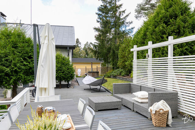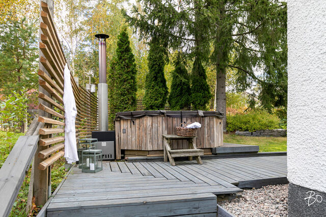 Etusivu / Uusimaa / Espoo / Rakentajaintie 24c 1 1 / 1 Rakentajaintie 24c 1 Kattilalaakso, Espoo | Omakotitalo | 8h, k, rt, s/psh, 2 x wc, khh, terassit, ak, 249 m2 698 000 € Velaton hinta 162,0 m2 Asuinpinta-ala 249,0 m2 Kokonaispinta-ala Lapsiperheiden suosimalla Kattilalaakson alueella, rinteen päällä sijaitsee tämä tilava ja viihtyisä rapattu kivitalo. Vuonna 1967 rakennettu ja 2006 peruskorjattu koti tarjoaa perheelle kaikki arjen ja yhdessäolon puitteet, ja noin 249 m² kokonaisala antaa runsaasti tilaa niin lapsille kuin aikuisillekin.Sisääntulokerroksessa olohuone ja ruokailutila yhdistyvät kirjastohuoneeseen, ja keittiö on iso ja valoisa, täydellinen perheen ruoanlaittoon ja arjen touhuihin. Keittiön vieressä ollut veranta on muutettu lämpimäksi ruokailuhuoneeksi, josta pariovet johtavat suojaisalle ja vehreälle pihalle sekä parvekkeelle. Samassa kerroksessa on kaksi makuuhuonetta, ja yläkerrasta löytyy kaksi tilavaa makuuhuonetta vanhemmille tai lastenhuoneiksi.Kellarikerros on monikäyttöinen: saunalliset pesutilat, kodinhoitohuone, arki-/nuorison olohuone ja harrastehuone, jota on käytetty myös makuutilana. Varastotilaa on runsaasti, joten urheilu- ja harrastusvälineet pysyvät järjestyksessä. Kulku ulos tekee tilasta käytännöllisen arjessa.Talon ympärillä kiertävät suuret terassit ja parvekkeet, ja suojaisa, vehreä piha kutsuu niin lasten leikkeihin kuin aikuisten rentoutumiseen. Ulkotakka, palju ja kauniisti hoidettu piha-alue viimeistelevät kokonaisuuden. Iso autokatos lisää käytännöllisyyttä arkeen.Sijainti on erinomainen: päiväkodit, koulut ja kaupat ovat lähellä, mikä tekee arjesta helppoa. Tämä koti tarjoaa lapsiperheelle turvallisen ja toimivan ympäristön, tilaa kasvaa ja monipuoliset puitteet niin arkeen kuin juhlaankin.Varaa oma esittelyaikasi ja tule ihastumaan!Katariina AhlbäcklKV, KiAT, partner050 521 2508kata@bo.fiIG @katalkv_living Kiinnostaako tämä kohde?Ota meihin yhteyttä tai jätä viesti Katariina Ahlbäck kiinteistönvälittäjä LKV, KiAT, partner 050 521 2508 katariina.ahlback@bo.fi Tutustu välittäjään Varaa aika kalenteristani RakennusKäyttöönottovuosi1967KattotyyppiHarjakattoKatePeltiKaton kuntoVesikate uusittu 2010Asuinpinta-ala162,0 m2 (249,0 m2)Lisätietoja pinta-alastaHuoneiston neliöt perustuvat myyjän omaan ilmoitukseen, eivät virallisiin mittauksiin tai rekisteritietoihin. Rakennus- ja huoneistorekisteriotteen mukaan kerrosala 162 m2 ja huoneistoala 130 m2. Ei tarkistusmitattu.Kerrokset3Muut tilat87,0 m2Lämmitysjärjestelmän kuvausPuu, sähkö, ilmalämpöpumppu, muuLämmön jakotapaSähköpatterilämmitys, sähköinen lattialämmitys, ilmalämpöpumppu, muuHuoneluku8h, k, rt, s/psh, 2 x wc, khh, terassit, ak, 249 m2Keittiön kuvaus, lisätiedot ja varustusVuonna 2013 remontoitu keittiö tarjoaa runsaasti lasku- ja säilytystilaa. Valkoiset kaapistot ja käytännöllinen laattalattia tekevät tilasta valoisan ja helppohoitoisen, ja kivitasot tuovat kokonaisuuteen laadukasta viimeistelyä Varustus: täysikorkea jääkaappi ja pakastin, astianpesukone, keraaminen liesi, kalusteuuni, mikroaaltouuni, liesituuletin (aktiivihiili), käynti ruokailutilaan.Pesutilojen kuvaus, lisätiedot ja varustusAjattomasti vuonna 2006 remontoidut pesutilat huokuvat spa-tunnelmaa ja tarjoavat arkeen ripauksen ylellisyyttä. Varustus: 2 suihkua, allas/allakaapisto/taso, peili, seinä wc-istuin, laatoitettu, lattialämmitys.Kylpyhuoneen lattiamateriaaliLaattaKylpyhuoneen seinämateriaaliKaakeliSaunaAsunnossa on saunaSaunan kuvaus, lisätiedot ja varustusSauna on tilava ja varustettu lasiseinällä, joka avartaa tilaa ja yhdistää sen tyylikkäästi pesutiloihin.Saunan lattiamateriaaliLaattaSaunan seinämateriaaliPuuWC-tilojen kuvausAsunnossa on kaksi erillistä wc:tä, molemmat remontoitu vuonna 2006. Keskikerroksen wc on laatoitettu ja varustettu allaskaapistolla, peilikaapilla sekä tyylikkäällä seinäwc:llä. Yläkerran wc:ssä on myös allaskaapisto ja peili, tarjoten käytännöllisen ja yhtenäisen ilmeen koko kotiin. Lattialämmitys.Varustus: lattiakaivoLukumäärä: 2Lattiamateriaalit: laattaSeinämateriaalit: kaakeliKodinhoitohuoneTilava kodinhoitohuone, jossa pintarakenteet uusittu 2006. Varustus: kaapistot, taso altaalla, pesukoneliitäntä, tilaa pesutornille, lattiakaivo, laattalattia, lattialämmitys.Makuuhuoneen kuvaus, lisätiedot ja varustusYläkerrassa on kaksi reilun kokoista makuuhuonetta, keskikerroksessa kaksi pienempää makuuhuonetta. Alakerrassa on iso harrastehuone, joka on palvellut makuutilana, sekä tilava arki-/nuorison olohuone, joka tarjoaa monikäyttöistä oleskelutilaa.Oleskelutilojen kuvaus, lisätiedot ja varustusTilava olohuone ja ruokailutila muodostavat yhtenäisen kokonaisuuden, josta on avara yhteys tunnelmalliseen kirjastoon.TakkatiedotTakkaSeinämateriaalitMaalattuLattiamateriaalitYläkerrassa puualttia, keskikerroksessa laminaatti, kellarikerroksessa laatta, Tehdyt korjaukset2024 asennettu uudet ilmalämpöpumput 3 kpl joka kerrokseen. 2010 Vesikatemateriaali uusittu, 2010 yläpohjaan lisätty mineraalivilla, 2009 ikkunat uusittu, 2009 ulko-ovet uusittu. 2006 Ulkoverhouksen maalaus, puuosien maalaus ja vaurioituneiden osien uusiminen. 2006 Salaojien asennusvuosi. 2006 Maanpinnan muokkaaminen, maamassan vaihtaminen, lattiarakenteen korjaaminen/uusiminen, lattian lämmöneristeen lisääminen, kellarin seinien lämmöneristeen lisääminen, sokkelin vedeneristäminen. 2006 Saunan ja pesuhuoneen vedeneristys uusittu. 2006 Erillisen wc:n ja kodinhoitohuoneen vedeneristys uusittu. 2006 Sähköpattereiden uusiminen ja lattialämmityksen asennus/uusiminen. 2006 Käyttövesiputkiston asennusvuosi. 2006 Viemäreiden asennusvuosi. 2006 Sähköjärjestelmää on uusittu. Kaikista v.2006 korjaushankkeen toimenpiteistä on valvontaraportti 20.10.2006 saatavilla välittäjältä.Lisätietoa kunnosta249 m2 kivirakenteisen 3 kerroksisen omakotitalon täydellinen perusk