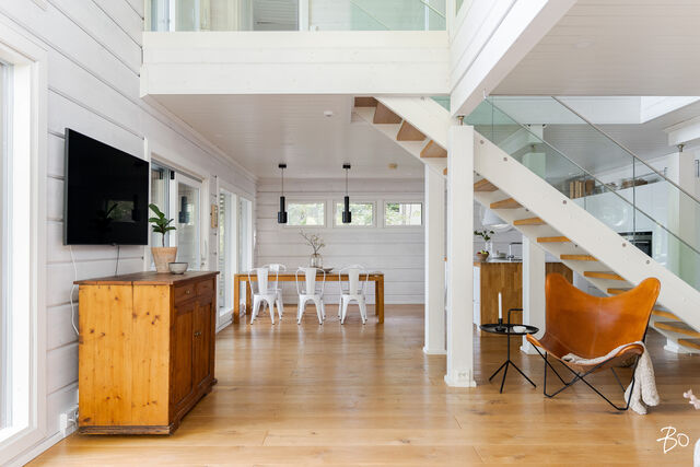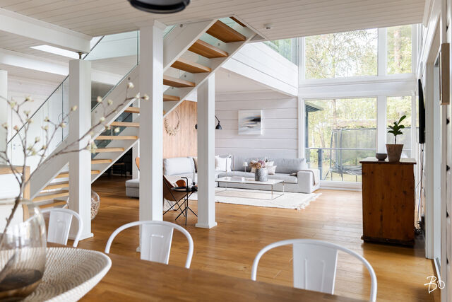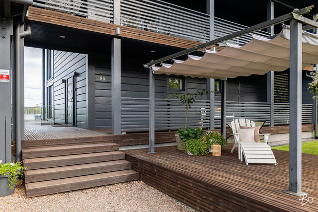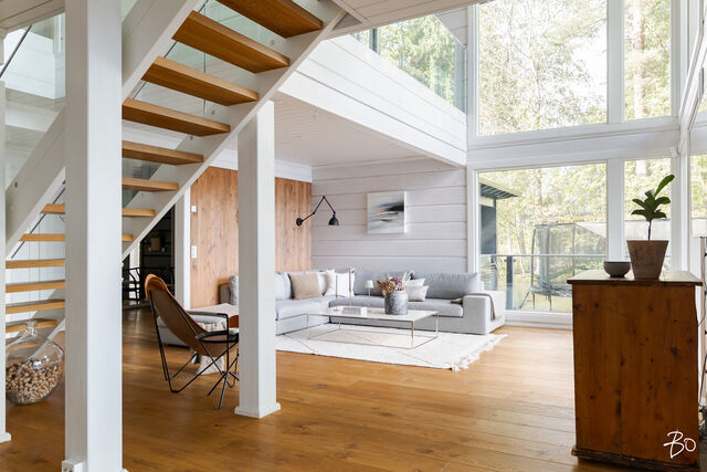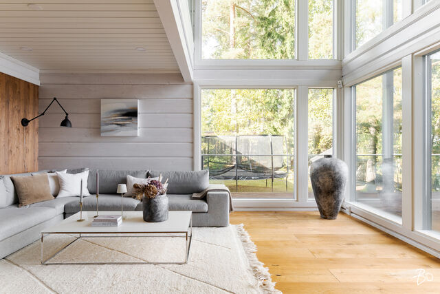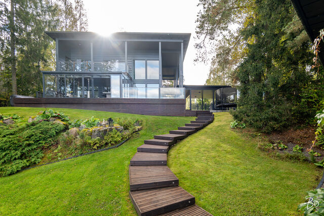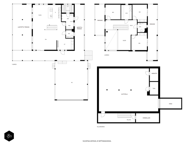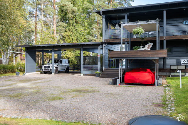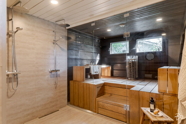 Etusivu / Pirkanmaa / Hämeenkyrö / Mammankuja 185 1 / 1 Mammankuja 185 Jumesniemi, Hämeenkyrö | Omakotitalo | 3mh, oh, k, rt, pkh, psh, s, khh, erill. wc, kph, olesk., viinikellari, autotalli + rantasauna/tupa, savusauna 1 370 000 € Velaton hinta 178,5 m2 Asuinpinta-ala 435,1 m2 Kokonaispinta-ala 2015 Rakennusvuosi Luksusta järven rannalla - uniikki Kontion hirsihuvila MahnalanselälläUpea kokonaisuus omalla rannalla, vain 30 min Tampereelta! Tässä kodissa yhdistyvät luonnon rauha, huippuluokan varustelu ja arjen ylellisyys - tämä on paikka, jossa unelmat muuttuvat todeksi.2015 rakennettu Kontion hirsitalo sijaitsee Mahnalanselän rantamaisemissa Jumesniemessä. Asuintilaa on hulppeat 178,5 m², ja lisäksi yli 100 m² autotalli- ja harrastetilaa, johon autot kulkevat oman autohissin avulla. Tämä tila muuntautuu helposti kuntosaliksi, leffahuoneeksi tai työ-/harrastetilaksi - vain mielikuvitus on rajana.Upeat järvinäkymät avautuvat suoraan olohuoneesta ja lähes kaikista huoneista on kulku ulos. Terassit ja parvekkeet kiertävät miltei koko talon - lasitettu järvinäkymin ja poreamme viimeistelevät elämyksen.Tontilta löytyvät myös: Saneerattu rantasauna (2014), jossa keittiö, makuutilat ja tunnelmatakka. Perinteinen savusauna. Oma laituri ja hiekkaranta.Huippuluokan tekniikkaa ja laatua: Kaksi maalämpökaivoa (Lämpöässä 17 kW). Maaviileä viilennys kesähelteille Vesikiertoinen lattialämmitys kaikissa tiloissa. 240 mm leveä tammilankkulattia - kestävää kauneutta. Liukuovelliset uloskäynnit kaikista makuuhuoneista.Tarkkaan harkittu ja suunniteltu kokonaisuus tarjoaa poikkeuksellista asumismukavuutta, esteettömyyttä ja mahdollisuuksia. Jumesniemen kylä on elävä ja lämmin yhteisö, jossa on tapahtumia ympäri vuoden. Tämä ei ole vain koti - tämä on elämäntapa.Varaa oma esittelyaikasi ja tule kokemaan, miltä täydellisyys tuntuu.Kohteessa järjestetään vain yksityisesittelyitä!KOHDETTA VÄLITTÄÄMikko Lamu 0400 357 100 | mikko.lamu@bo.fi Kiinnostaako tämä kohde?Ota meihin yhteyttä tai jätä viesti Mikko Lamu asuntomyyjä, partner 0400 357 100 mikko.lamu@bo.fi Tutustu välittäjään Varaa aika kalenteristani RakennusKäyttöönottovuosi2015RakennusmateriaaliHirsi, betoniRakennusmateriaalien kuvausAsuintilat 1. ja 2. kerros Kontion hirsitalo (lamelli hirsi 205x275) Kellari (autotalli) erikoissuunnitelman mukainen, Lakka-kivi (lämpöharkko 400) KattotyyppiPulpettiKateHuopaKaton kuntoHyväAsuinpinta-ala178,5 m2 (435,1 m2)Lisätietoja pinta-alasta- Lämmin huoneistoala kellari 134m², 1. krs. 93,5m², 2. krs. 85m² yht. 313m² - Kerrosala yht. 352m² - Autokatos 50,3m² - Pyöräkatos 12,3m² - Rantasaunan kerrosala n. 50m² - Vaja/ulkovarasto kerrosala n. 10m² Rakennusoikeutta käytetty 412m²Kerrokset3Muut tilat256,6 m2IlmanvaihtojärjestelmäMaalämpöpiirin kytketty maaviileä kattosisäyksikölläLämmitysVesikiertoinen lattialämmitys. Hyvä. Maalämpöpumppu Lämpöässä 17kW, kaksi erillistä maalämpökaivoa. Lämmitysjärjestelmän kuvausMaalämpöHuoneluku3mh, oh, k, rt, pkh, psh, s, khh, erill. wc, kph, olesk., viinikellari, autotalli + rantasauna/tupa, savusaunaKeittiön kuvaus, lisätiedot ja varustusLattia: lankku, Novafloor Trinity tammi 250mm, harjattu ja öljyvahattu. Seinät: hirsi Työtaso: massiivipuu Tanskalainen korkeatasoinen KVIK-keittiö. Malli: Mano, vetimettömät hidastuksella. Kalusteisiin integroidut kodinkoneet: jääkaappi, pakastekaappi, erillisuuni, induktioliesi, liesituuletin, mikroaaltouuni-uuni -yhdistelmä, kahvikone, astianpesukone. Kiinteät valaisimet, himmennettävät. Pesutilojen kuvaus, lisätiedot ja varustusLattia: laatta, Aitokivi Lappato Ferrari 60x60 Seinät: laatta, Aitokivi Lappato Ferrari 60x60 Sadesuiku + käsisuihku 2 kpl, seinäkaivot 2 kpl, lasiseinä. Vesikiertoinen lattialämmitys. SaunaAsunnossa on saunaSaunan kuvaus, lisätiedot ja varustusLattia: laatta, Aitokivi Lappato Ferrari Seinät: hirsipaneeli Lauteet: Radiata mänty Vesikiertoinen lattialämmitys. WC-tilojen kuvaus1. KRS Lattia: laatta, Laattapisteen marokkolaistyylinen. Seinät: hirsi, hirsipaneeli, laatta; Aitokivi Snow White matta. Seinä WC-istuin, pesuallas, hana, allaskaapisto, peili, kiinteät valaisimet. 2. KRS Lattia: laatta, Aitokivi Carrara White 60x60 Seinät: laatta, Aitokivi Carrara White 60x60 Seinä WC-istuin, bidee, pesuallas 2 kpl, hana 2 kpl, allaskaapisto, peili, kiinteät valaisimet. Vesikiertoinen lattialämmitys.Lukumäärä: 2KodinhoitohuoneLattia: laatta, Aitokivi Lappato Ferrari 60x60 Seinät: hirsi, tapetti Pesukone ja kuivausrumpu liitännät, asennettu käyttömukavuus korkeudelle, pesuallas, hana, säilytyskaapisto, liukuovikaapisto, pöytätaso. Makuuhuoneen kuvaus, lisätiedot ja varustusKaikki makuuhuoneet sijoittuvat 2. kerrokseen missä on myös kodinhoitohuone. Näkymät huoneista on joko järvelle tai pellolle. Kaikista makuuhuoneissa liukuovi terassille. Lattia: parketti, Novafloor Trinity tammi 190mm Seinät: hirsiLukumäärä: 3Oleskelutilojen kuvaus, lisätiedot ja varustusOlohuoneen isoista ikkunoista avautuu esteettömät näkymät takapihalle ja Mahnalanselälle. Olohuone on suurelta osin korkeaa tilaa aina 2. krs:n kattoon saakka. Yläkerrassa on erillinen oleskelutila esim. tv:n katselua varten tai rauhalliseksi harrastetilaksi. Lattia: lankku, Novafloor Trinity tammi 250mm Seinät: hirsiMuut tilatEteinen: Liukuovikaapisto Parveke: katettu parveke etu- ja takapihalla Terassi: katettu terassi etu- ja takapihalla Lasitettu terassi, siirrettävät lasiseinät. Viinikellari Autotalli 107,7 m2 sis. autohissin. Lattia: laatta. Seinät: maalattu Autokatos 50,3 m2 Pyöräkatos 12,3 m2 Rantasauna - keittiö, oleskelutila, makuuhuone, avotakka - pesuhuone, sauna, AITO puukiuas, lauteet ja seinät: haapa - rantasauna saneerattu kokonaisuudessaan vuonna 2014 Savusauna Varasto/vaja SeinämateriaalitHirsi, käsitelty Tikkurilan valkokuultolakalla, erikoisvahvaseos sivelty kolme kerta