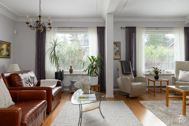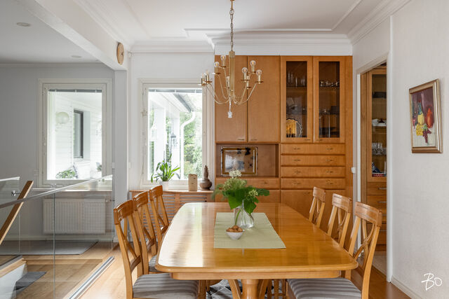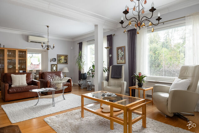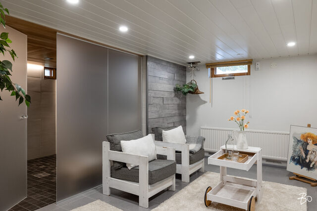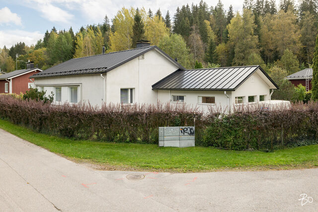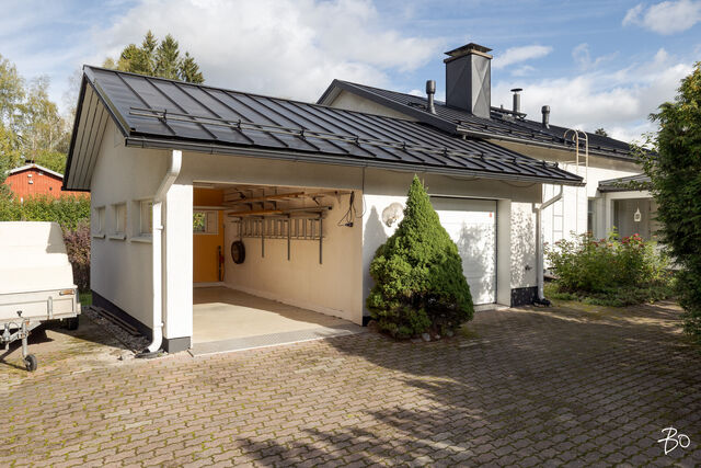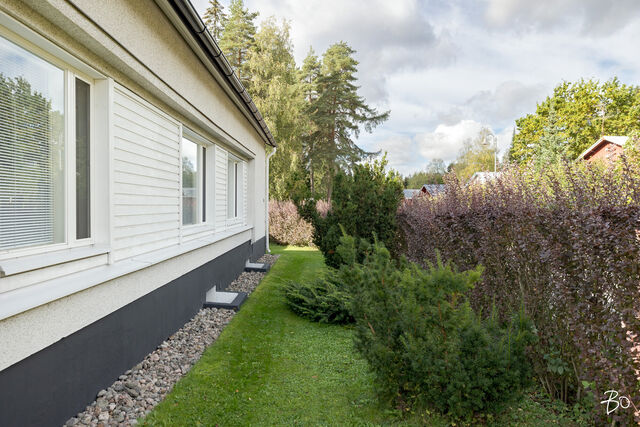 Etusivu / Päijät-Häme / Lahti / Ruotsinkatu 5 1 / 1 Ruotsinkatu 5 Kivimaa, Lahti | Omakotitalo | YK: Oh, rt, k, 3 mh, 2 wc, et, askartelutila. sis.tulo terassi, katettu patio AK: s, ph, khh, oleskelutila, makuutila, wc, tekninen tila 249 000 € Velaton hinta 127,0 m2 Asuinpinta-ala 190,0 m2 Kokonaispinta-ala 1942 Rakennusvuosi Mainiolla sijainnilla, Lahden Vesteråsissa alunperin vuonna 1941-42 rakennettu liikekiinteistö, jossa toimi Lahden Osuuskauppa vuodesta 1950 alkaen palvellen alueen asukkaita ruokakauppana.1976 rakennus myytiin ja rakennus muutettiin luvallisesti asuinrakennukseksi. Nykyiset omistajat ovat ostaneet talon vuonna 1981 ja tehneet siitä ihanan kodin itselleen ja perheelleen. Vuosina 2001-02 talossa on tehty merkittävästi remonttia. Talon sisääntulopäähän rakennettiin uusi autotalli ja autokatos ja vanhasta autotallista talon emännälle työtila/harrastetila ja uusi ulkoeteinen. Lisäksi olohuoneeseen asennettiin varaava takka. Samalla tehtiin myös piharemonttia ja asennettiin rakennuksen ympärille salaojat tarkastuskaivoineen. Rakennuksen ikkunat uusittiin 2010 (kahta ikkunaa lukuun ottamatta). 2014 olikin vuorossa lämmitysremontti, jolloin liityttiin kaukolämpöön ja samalla uusittiin lämpöpatterit ja -lämmityksen putkistot. 2015 taloon tuli ilmalämpöpumppu sekä viilennykseen että lämmitykseen. Talon viemärit sukitettiin 2018. Päärakennukseen tehtiin laaja kattoremontti 2021. 2022 olikin vuorossa saunan ja pesuhuoneen remontointi. Nyt kun talossa on isommat remontit takanapäin, niin tässä kohtaa myyjät päättivät, että nyt on oikea aika jättää talo seuraaville itseään kenties vähän nuoremmille asukkaille, jotka jatkavat talon tarinaa toivottavasti vuosikymmeniä ja tekevät taloon haluamiaan valintoja keittiöön ja sisäpintoihin niiltä osin kuin näkevät tarpeelliseksi. Talo on kuntotarkastettu 30.9.2025 ja raportin saa tutustumiskäynnin jälkeen, mikäli kohde kiinnostaa. Talon aidattu pihapiiri on kerrassaan viehättävä ja siitä näkee, että pihaa on rakastettu ja siitä on pidetty huolta. Talon päädyssä oleva patio on todella kiva paikka lounastaa tai istua iltaa perheen tai ystävien kanssa. Patiota suojaa mm. viinirypäleköynnökset, jotka tuottavat myös ihan oikeita rypäleitä ihan mukavasti. Tervetuloa tutustumaan tähän kohteeseen yksityisesittelynä. Soita tai laita whatsappia Marjo Hurskainen p. 040-9322892 tai meilaa marjo@bo.fi Kiinnostaako tämä kohde?Ota meihin yhteyttä tai jätä viesti Marjo Hurskainen kiinteistönvälittäjä LKV 040 932 2892 marjo@bo.fi Tutustu välittäjään RakennusRakennusvuosi (aloitettu)1941Käyttöönottovuosi1942RakennusmateriaaliPuu, betoniRakennusmateriaalien kuvausAlakerta ja välipohja betonia. Yläkerta puurunko ja tiiliverhous. Tiiliverhous on pinnoitettu Lemmikäisen toimesta kenitex-pinnoitteella (rapattu pinta)KattotyyppiHarjakattoKateKonesaumattu peltikateKaton kuntoHyväAsuinpinta-ala127,0 m2 (190,0 m2)Lisätietoja pinta-alastaAsuinpinta-alan lisäksi ulkoeteinen ja askartelutila yläkerrassa ovat yhteensä 29 m2. Lämmin autotalli ja katos ovat 28 m2. Kerrokset2Muut tilat63,0 m2LämmitysVesikiertoinen patterilämmitys, sähköinen lattialämmitys, uuni/takka, ilmalämpöpumppu, muu. HyväLämmitysjärjestelmän kuvausKaukoHuoneluku YK: Oh, rt, k, 3 mh, 2 wc, et, askartelutila. sis.tulo terassi, katettu patio AK: s, ph, khh, oleskelutila, makuutila, wc, tekninen tilaKeittiön kuvaus, lisätiedot ja varustusKeittiön kalusteet vuodelta -86. Keittiössä on valkoiseksi maalattu lastulevykatto. Seinät on maalattu valkoiseksi. Lattiassa on vinyylilankku (Alla on korkkilattia ja muovimatto). Liesituuletin Savo -20, induktioliesi AEG -24. Astianpesukone Bosch -24. Korkeat valkoiset Siemensin jää- ja pakastinkaappi -17. Erillisuuni Siemens 2012. SaunaAsunnossa on saunaSaunan kuvaus, lisätiedot ja varustusSaunan seinät ja katto on lämpökäsiteltyä haapaa. Lauteet lämpökäsiteltyä leppää. Saunan/pesuhuoneen seinä on osittain lasiseinää. Harvian sähkökiuas 6,8 kW.WC-tilojen kuvausWC 1 (keittiön vieressä) Seinät on valkoiseksi maalattua lasikuitutapettia. Katto on valkoista sisustuspaneelia. Lattiassa on laatoitus. Peilikaappi, allaskaappi, wc-istuin. WC 2 (sisääntuloaulan vieressä) Seinät ja lattia on laatoitettu, sähköinen lattialämmitys. Katto on valkoista sisustuspaneelia. Allaskaappi, peilikaappi, korkea kaappi. WC 3. (alakerrassa) Katto on valkoiseksi maalattua paneelia. Seinät on laatoitettu/paneloitu. Peili valolla, allashyllykkö, wc-istuin.Lukumäärä: 3KodinhoitohuoneValkoiseksi maalattu levykatto. Seinät on valkolakattua kuusipaneelia/laatoitettu. Lattia on laatoitettu. Pesukoneliitäntä. Suihku.Makuuhuoneen kuvaus, lisätiedot ja varustusMH 1. katto on valkoista haltexlevyä. Seinät on valkoiseksi maalattua lasikuitutapettia. Lattiassa on 3-sauvianen koivuparketti. MH 2. katto on valkoista haltexlevyä. Seinät on tapetoitu. Lattia on korkkia. Vaatekaapistoa. MH 3. katto on valkoista haltexlevyä. Seinät on tapetoitu. Lattiassa on 3-sauvainen koivuparketti. Vaatekaapistoa. Alakerran makuutiloissa/työtiloissa 2 kpl toisen huoneen lattiassa on muovimatto ja toisen lattiassa on laattalattia. Molempien huoneiden seinissä on valkoiseksi maalatut lasikuitutapetit. Toisen makuutilan katossa on kuusipaneelit ja toisen makuu-/työtilan katossa on valkoinen sisustus-paneeli.Lukumäärä: 3Oleskelutilojen kuvaus, lisätiedot ja varustusOlohuoneen katto on maalattu valkoiseksi. Seinät on maalattu vaaleaharmaaksi/yksi seinä beigellä, lasikuitutapettia. Lattiassa on leveä yksisauvainen tammiparketti. Ruokailutilan katto on maalattu valkoiseksi. Seinät on maalattu valkoiseksi. lattiassa on leveä yksisauvainen tammiparketti.TulisijaVaraava takkaTakkatiedotMuuTehdyt korjauksetNykyiset omistajat ostaneet kiinteistön 1981. Vuokratontin lunastus 22.5.1990. Rakennettu varaava takka 2001. Autotallin ja katoksen rakentaminen, salao