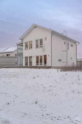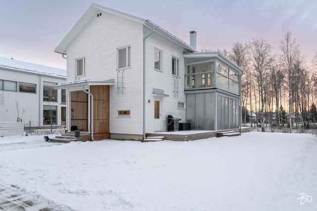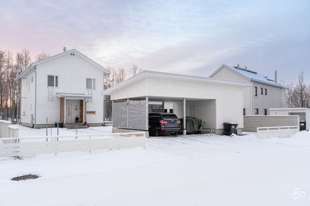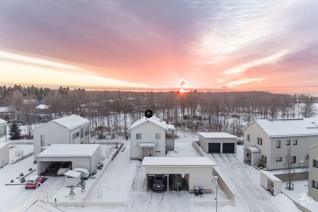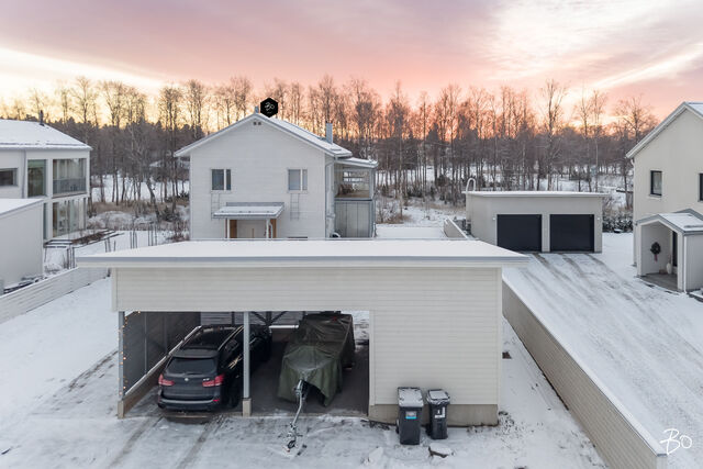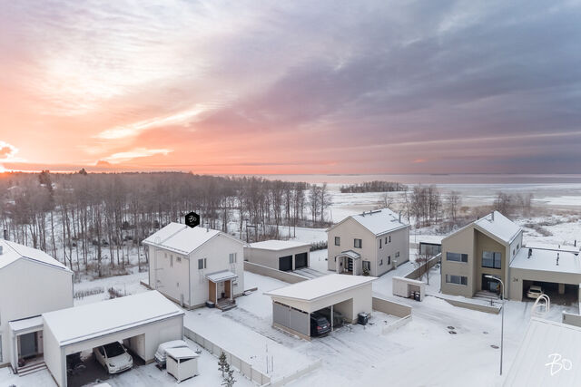 Etusivu / Pohjois-Pohjanmaa / Oulu / Parkkilaivankaari 28 1 / 1 Parkkilaivankaari 28 Pateniemenranta, Oulu | Omakotitalo | 5h, k, wc, khh, 2x kph, s, parveke, las. terassi 542 000 € Velaton hinta 134,0 m2 Asuinpinta-ala 143,0 m2 Kokonaispinta-ala 2023 Rakennusvuosi Ylellinen omakotitalo meren äärellä Pateniemenrannassa - sujuva arki yksityiskohdista tinkimättä!Tervetuloa kotiin, jossa yhdistyvät merellinen asuinalue, moderni arkkitehtuuri ja ensiluokkainen asumismukavuus. Tämä vuonna 2023 valmistunut omakotitalo Parkkilaivankaarella tarjoaa kaiken, mitä nykyaikaiselta kodilta voi toivoa - energiatehokkuutta, laadukkaita materiaaleja ja viimeisteltyjä yksityiskohtia. Keittiöön saumattomasti yhdistyvän olohuoneen näyttävä huonekorkeus valaisee tilan kauniisti. Jokaisesta makuuhuoneesta avautuu merinäköala, ja päämakuuhuoneessa näkymä on upeimmillaan. Sen yhteydessä on lisäksi tilava, liukuovien taakse kätkeytyvä vaatehuone, joka tuo arkeen ripauksen ylellisyyttä.Kodin sisätilat on suunniteltu toimiviksi ja viihtyisiksi. Avarassa olohuonekeittiötilassa yhdistyvät valoisuus, vaaleat sävyt ja rauhallinen tunnelma. Tilaa täydentää Valmistuli-kiertoilmatakka, joka tuo lämpöä ja tunnelmaa syysiltoihin sekä parantaa entisestään kodin energiatehokkuutta. Neljä makuuhuonetta tarjoavat tilaa ja yksityisyyttä jokaiselle perheenjäsenelle. Arkea helpottavat tilava kodinhoitohuone, kaksi kylpyhuonetta, reilunkokoinen sauna sekä alakerran erillinen wc. Kodin mukavuutta lisäävät modernit ratkaisut: maalämpö yhdistettynä maaviilennykseen pitää sisäilman miellyttävänä myös kesän hellepäivinä, ja ikkunoihin asennetut moottoroidut Screen-kaihtimet suojaavat auringolta - helposti kaukosäätimellä ohjattuna.Ulkotilat tarjoavat tilaa niin rentoutumiselle kuin yhdessäololle. Lähes 60 neliön terassikokonaisuus, josta osa on lasitettu, toimii täydellisenä kesäolohuoneena. Terassille on myös tehty varaus poreammeelle. Yläkerrasta avautuu kulku lasitetulle parvekkeelle, josta voi ihailla merimaisemaa kaikessa rauhassa. Tontti rajautuu takapihalta puistoon, mikä tuo pihaan yksityisyyttä ja luonnonläheisyyttä. Lisäksi pihapiirissä on kahden auton katos sekä sen yhteydessä lämmin varasto, joka tarjoaa runsaasti säilytystilaa perheen harrastuksille.Pateniemenranta on asuinalue, jossa luonto ja arjen luksus kohtaavat. Rauhallinen asuinalue tunnetaan ulkoilumahdollisuuksistaan ja kauniista maisemistaan. Lähistöllä sijaitsevat päiväkodit, koulut ja palvelut tekevät arjesta helppoa, ja hyvät liikenneyhteydet takaavat vaivattoman kulkemisen keskustaan ja muualle Ouluun.Tämä koti yhdistää ainutlaatuisella tavalla modernin asumisen sekä suvujan arjen - tule tutustumaan ja ihastu!Järjestämme tässä kodissa ainoastaan yksityisesittelyjä, joten varaathan pian omasi.Nelli Hänninenkiinteistönvälittäjä LKV, partner050 323 2300nelli.hanninen@bo.fi Kiinnostaako tämä kohde?Ota meihin yhteyttä tai jätä viesti Nelli Hänninen kiinteistönvälittäjä LKV, partner 050 323 2300 nelli.hanninen@bo.fi Tutustu välittäjään Varaa aika kalenteristani RakennusKäyttöönottovuosi2023RakennusmateriaaliPuu, betoniKattotyyppiHarjakattoKatePeltikateAsuinpinta-ala134,0 m2 (143,0 m2)Lisätietoja pinta-alastaRakennuslupapiirroksien mukaan: asuinrakennuksen huoneistoala (sis. tekninen tila 3,5m2) on 134m2 ja kerrosala on 159m2, autokatos/varastorakennuksen kerrosala on 14m2 ja varaston huoneistoala on 9m2.Kerrokset2Muut tilat9,0 m2Lämmitysjärjestelmän kuvausMaalämpöLämmön jakotapaVesikiertoinen lattialämmitysHuoneluku5h, k, wc, khh, 2x kph, s, parveke, las. terassiKeittiön kuvaus, lisätiedot ja varustusKeittiössä saareke sekä aamiaiskaappi, joissa pistorasiat. Liesituuletin on integroitu induktiolieteen, joka sijaitsee keittiösaarekkeessa.Keittiön muut varusteetLiesituuletin, mikroaaltouuni, astianpesukoneLiesiInduktioliesi, erillisuuniKeittiön työtasojen materiaaliLaminaattiKeittiön lattiamateriaaliLaminaattiKeittiön seinien materiaaliMaalattuPesutilojen kuvaus, lisätiedot ja varustusAlakerran kylpyhuoneessa wc-istuin sekä kaksi suihkua. Yläkerran kylpyhuoneessa wc-istuin, yksi suihku, allaskaluste sekä seinäpeili. Molemmissa kylpyhuoneissa seinäänrakennetut saippuahyllyt.Kylpyhuoneen varustusWc-istuin, suihkuKylpyhuoneen lattiamateriaaliLaattaKylpyhuoneen seinämateriaaliKaakeliSaunaAsunnossa on saunaSaunan kuvaus, lisätiedot ja varustusSaunassa lauteeseen upotettu pilarikiuas, jota säädetään kodinhoitohuoneessa sijaitsevasta ohjainpaneelista.Saunan lattiamateriaaliLaattaSaunan seinämateriaaliPuuWC-tilojen kuvausAlakerran wc:ssä seinän mittainen allaskaluste, seinäpeili sekä bidee-suihku.Lukumäärä: 1Lattiamateriaalit: laattaSeinämateriaalit: maalattu, tapettiKodinhoitohuoneKodinhoitohuoneessa tilavaraus pesutornille.Varustus: pesukoneliitäntä, pesuallas, lattiakaivo, pyykkikaapit, pöytätasoLattiamateriaalit: laattaSeinämateriaalit: maalattuMakuuhuoneen kuvaus, lisätiedot ja varustusLukumäärä: 4Lattiamateriaalit: laminaattiSeinämateriaalit: maalattuOleskelutilojen kuvaus, lisätiedot ja varustusLattiamateriaalit: laminaattiSeinämateriaalit: maalattuMuut tilatAvoterassia noin 60m2, jossa varaus poreammeelle (viemäri+sähköt)TulisijaKotimainen Valmistuli ULLA -kiertoilmatakka TakkatiedotTakkaMuut säilytystilatVaatehuone, muu erillinen varastoMuuta kauppaan kuuluvaaMoottoroidut, auringonvaloa ja lämpöä suodattavat Arctic Store Screen -rullaverhot. Rullaverhojen auki ja kiinni -asentoa pystyy säätelemään kaukosäätimen avulla. Kaihtimet suodattavat auringon lämmöstä jopa 90% ja suojaavat liialliselta auringon lämmöltä.KuntoHyväEnergiatodistusKylläEnergialuokkaB2018Lisätietoja energiatodistuksestaVoimassa 15.03.2032 saakka. KiinteistötiedotKiinteistötunnus564-76-243-6TyyppiTonttiTontin tyyppiTasamaatonttiTontin koko693,00 m2Tontin omistusOmaPanttikirjat600 000,00 €Lisätietoja
