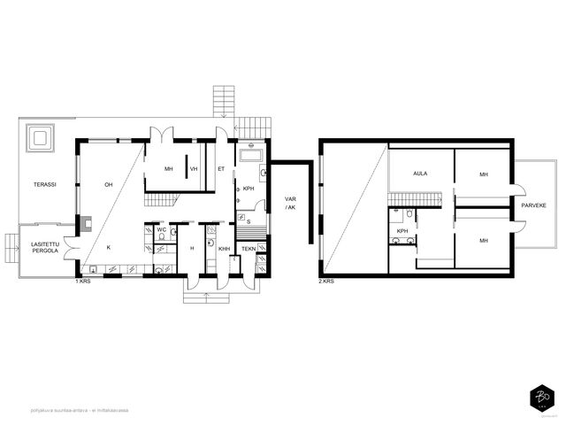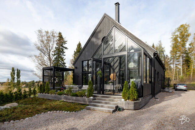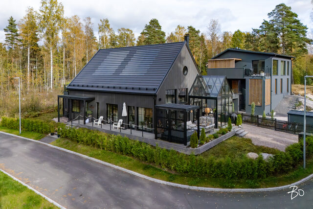 Etusivu / Uusimaa / Helsinki / Kölikuja 7 1 / 1 Kölikuja 7 Karhusaari, Helsinki | Omakotitalo | 5h, avok, pantry, aula, pesutilat, s, kh, wc, terassi, varasto/ak 1 150 000 € Velaton hinta 165,0 m2 Asuinpinta-ala 2023 Rakennusvuosi Tervetuloa tutustumaan tähän uuteen, vuonna 2023 valmistuneeseen Designtalon moderniin omakotitaloon, jossa yhdistyvät ajaton tyylikkyys, arjen käytännöllisyys ja ripaus luksusta.Kaksikerroksinen koti avautuu valoisaan olohuoneeseen, jonka korkea tila ja suuret ikkunat tuovat luonnonvalon kauniisti osaksi sisustusta. Olohuone sulautuu saumattomasti tyylikkääseen avokeittiöön, jossa on runsaasti lasku- ja säilytystilaa, käytännöllinen pantry sekä laadukkaat, integroidut kodinkoneet. Viisi huonetta antavat joustavasti tilaa niin perhe-elämään, työntekoon kuin harrastuksiinkin.Pesutilat ja sauna on suunniteltu hemmottelua varten laadukkaat materiaalit ja harkitut ratkaisut tekevät arjesta erityisen mukavaa. Lisäksi erillinen wc lisää käytännöllisyyttä. Suojaisa osittain lasitettu terassi ja huoliteltu, helppohoitoinen piha tarjoavat upeat puitteet rentoutumiselle ja yhdessäololle ympäri vuoden.Arkea helpottaa iso varasto, joka tarjoaa runsaasti säilytystilaa pyörille, harrastusvälineille ja muulle tarpeelliselle. Talo on rakennettu energiatehokkuus ja ympäristöystävällisyys edellä, mikä takaa matalat käyttökustannukset ja pitkäaikaisen asumismukavuuden.Ota yhteyttä ja varaa oma esittelyaikasi,Katariina AhlbäckLKV, KiAT, partner050 5212508kata@bo.fiIG @katalkv_living Kiinnostaako tämä kohde?Ota meihin yhteyttä tai jätä viesti Katariina Ahlbäck kiinteistönvälittäjä LKV, KiAT, partner 050 521 2508 katariina.ahlback@bo.fi Tutustu välittäjään Varaa aika kalenteristani RakennusRakennusvuosi (aloitettu)2023Käyttöönottovuosi2023RakennusmateriaaliPuu, elementtiRakennusmateriaalien kuvausDesigntalon muunneltava taloKattotyyppiHarjakattoKateTiilikate (Ormax evo, laattamainen betonikatto)Asuinpinta-ala165,0 m2 (165,0 m2)Lisätietoja pinta-alastaAsemapiirroksen mukaan: Huoneisto-ala 158 m2 (111,5 + 46.5) + Muut tilat 7 m2 = 165 m2 Kerrosala (250 mm mukaan) 180 m2 (130 + 52)Kerrokset2Lämmitysjärjestelmän kuvausMaalämpö, muuLämmön jakotapaVesikiertoinen lattialämmitys, muuHuoneluku5h, avok, pantry, aula, pesutilat, s, kh, wc, terassi, varasto/akKeittiön kuvaus, lisätiedot ja varustusTyylikäs avokeittiö tarjoaa runsaasti säilytys- ja laskutilaa. Kiintokalusteet ovat Novartin ja kodinkoneet Siemensin, jotka on integroitu kalusteisiin. Arkea helpottavat lisäksi käytännöllinen pantry ja kätevä aamiaiskaappi. Varustus: jääkaappi, pakastin ja astianpesukone pantryn puolella, (lisäksi sähkövaraus toiselle astianpesukoneelle), induktio-/kaasuliesi, kalusteuuni, mikro, huuva (aktiivihiili), saareke, viinikaappi, Emperador dark marmoritasot ja lisäksi äänentoistojärjestelmä. Pesutilojen kuvaus, lisätiedot ja varustusAlakerran pesutilat varustus: 2x sadesuihku, allas/allaskaappi, peili, amme hanalla, kivitasot, linjakaivot (Viacer), pyyhekuivain, äänentoistojärjestelmä, laatoitettu. Yläkerran kylpyhuone varustus: suihku, suihkuseinät, seinä wc-istuin, bideesuihku, 2x allas/allaskaapit, taso, peili, pyyhekuivain, laatoitettu. Kaikki vesikalusteet Grohe ja mustat hanat ja suihkut Damixat.SaunaAsunnossa on saunaSaunan kuvaus, lisätiedot ja varustusPuusepän valmistama tyylikäs sauna jossa Tulikiven sähkökiuas (Usva), lasiseinä, saunapaneelit ja lauteet Amerikan Tulipuu (tulppaanipuu). WC-tilojen kuvausAlakerran erillinen wc varustus: seinä wc-istuin, allas/allaskaappi, valopeli, betonilattia, maalattu/paneloitu. KodinhoitohuoneVarustus: pyykkikuilu, allas, pesukoneliitäntä, tilaa pesutornille (integroitu kaappiin), kaapistot, lattiakaivo, kurasyöppö (120x 60), suihku, pyyhekuivain, lattia laatoitettu, välitila laatoitettu/maalattu, käynti ulos. Makuuhuoneen kuvaus, lisätiedot ja varustusYläkerrasta löytyvät kaksi makuuhuonetta, aula sekä arkioleiluun sopiva oleskelutila. Molemmista makuuhuoneista on käynti parvekkeelle. Alakerrassa sijaitseva päämakuuhuone hurmaa omalla vaatehuoneellaan ja käytännöllisellä uloskäynnillä suoraan terassille - lattiaa peittää helposti poistettava kokolattiamatto. Lisäksi myös työhuoneesta on oma kulku ulos.Oleskelutilojen kuvaus, lisätiedot ja varustusOlohuone hurmaa jopa seitsemän metriin kohoavalla korotetulla katollaan. Tilaa rytmittävät akustoivat rimapaneelit, ja tunnelmaa luo Valmistulen kiertoilmatakka (korvausilma hormin kautta). Olohuoneesta/keittiöstä avautuvat tyylikkäät pariovet suoraan terassille. Myös olohuoneessa äänentoistojärjestelmä (oma äänialue). Gradon portaat.Muut tilatEteisessä kaapistot. TakkatiedotTakkaLattiamateriaalitBetonilattiatMuuta kauppaan kuuluvaaAkkukäyttöiset ikkunaverhot etelä- ja länsisuuntaisissa ikkunoissa. 2 kpl ilmalämpöpumppuja etäohjaimella. Jätekatos. Sähköauton latausasema. Veriusure hälytysjärjestelmä, sähkölukot Yale (kauko-ohjaus ja avaimettomat lukot). KuntoHyväEnergiatodistusKylläEnergialuokkaA2018Lisätietoja energiatodistuksestaViimeinen voimassaolopäivä 2.3.2033 KiinteistötiedotKiinteistötunnus91-58-105-9TyyppiTonttiTontin tyyppiTasamaatonttiTontin koko612,00 m2Tontin omistusOmaPanttikirjat1 000 000,00 €Rasitukset ja rasitteetSähköisiä panttikirjoja 4kpl siirretään lainoittamattomina. Ostaja vastaa siirtomaksuista.Lisätietoja tontistaTie perilleVesijohtoKunnanViemäriKunnanKäyttö- ja luovutusrajoituksetAO, Erillispientalojen korttelialueRakennusoikeus200,0 m2Lisätietoja rakennusoikeudestaSallittu kerrosala 200 m2 Lukuun sisältyy rakennusten kerrosala (asuin-, sauna- ja talousrakennukset) ja rakennelmien pinta-ala (autotallit ja -katokset sekä muut katetut rakennelmat). AO-korttelialueella autopaikkojen vähimmäismäärä tontilla on 1ap/asunto ja lisäksi 1ap/asunto auton tilapäistä säilyttämistä varten. Asuntoa kohden vähin
