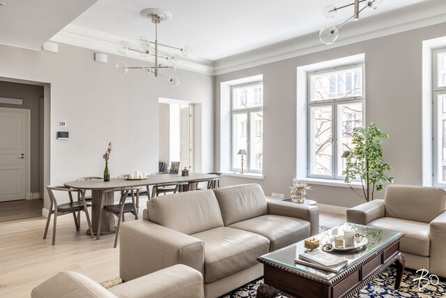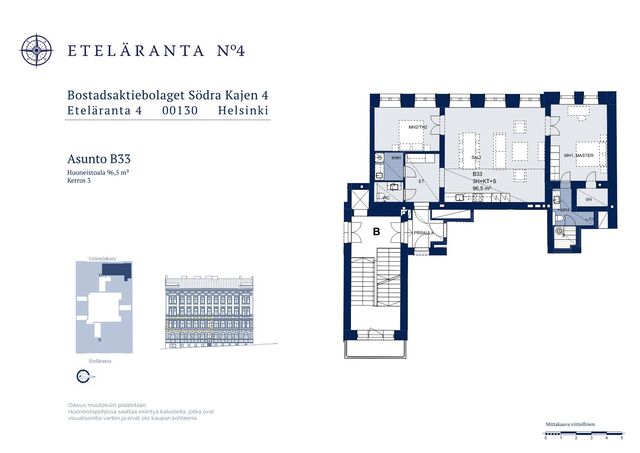 Etusivu / Uusimaa / Helsinki / Eteläranta 4 1 / 1 Eteläranta 4 Kaartinkaupunki, Helsinki | Kerrostalo | 3h, avok, s, kph, eril.wc, khh, eteinen 1 585 000 € Velaton hinta 96,5 m2 Asuinpinta-ala 598,30 €/kk Hoitovastike 1896 Rakennusvuosi Juuri valmistunut, varaa oma esittelyaikasi!Tervetuloa tutustumaan Helsingin yhteen upeimmista kohteista, arvostetun arkkitehdin Waldemar Aspelinin suunnittelemaan ja alun perin 1896 valmistuneeseen rakennukseen. Nyt tämä upea ja historiallinen arvokiinteistö on valmistunut kokonaisuudessaan alkuperäisen käyttötarkoituksensa mukaisesti korkeatasoisiksi asunnoiksi. Erittäin toimiva ja tehokas pohjaratkaisu.Tämän kodin suuret ikkunat avautuvat vehreän Unioninkadun puolelle. Laadukkaista keittiöistään tunnetun italialaisen Scavolinin valmistama tyylikäs avokeittiö Mielen kodinkoneilla, iso olohuone, kaksi makuuhuonetta. Tilava kylpyhuone ja sauna, sekä erillinen wc ja kodinhoitotila. Kaikissa yhtiön huoneistoissa on ensiluokkaisen laadukkaat, harmoniset ja korkeatasoiset materiaalivalinnat, tarkoin harkitut yksityiskohdat sekä nykyaikainen tekniikka, kuten esimerkiksi vesikiertoinen lattialämmitys sekä kaukojäähdytyksellä toteutettava vesikiertoinen lattiaviilennys ja koneellinen ilmanvaihto.Sijainti, joka paranee vuosi vuodeltaAsunto sijaitsee Kaartinkaupungin Etelärannassa, alueella joka on parhaillaan suuressa muutoksessa. Helsingin kaupunki uudistaa Eteläsataman aluetta kunnianhimoisesti: satamatoiminnot siirtyvät ja tilalle rakentuu kaupunkilaisille avoin, merellinen olohuone, joka yhdistää taiteen, kulttuurin, kaupunkivihreän ja tapahtumat.Tulevaisuudessa tämä ympäristö tarjoaa asukkaille viihtyisän kävelyalueen, uuden arkkitehtuuri- ja designmuseon sekä perheystävällisiä palveluita, jotka nostavat alueen houkuttelevuutta entisestään.Bostadsaktiebolaget Södra Kajen 4 sijaitsee omalla tontilla arvostetussa kaupunginosassa vain muutaman askeleen päässä Esplanadilta ja kauppatorilta.Tervetuloa tutustumaan tähän poikkeukselliseen kotiin varaa oma yksityisesittelysi jo tänään.Tiedustelut ja esittelyt - Förfrågningar och bokning av visning Inquiries and booking of viewings:Lisätiedot ja esittelyt: Sebastian Rostedt 0400 373 620 // sebastian@bo.fiPetri Ehrstén 040 680 7714 /7 petri.ehrsten@bo.fi Kiinnostaako tämä kohde?Ota meihin yhteyttä tai jätä viesti HuoneistoOsakkeet25706-26670HallintamuotoAsunto-osakeyhtiöHuoneluku3h, avok, s, kph, eril.wc, khh, eteinenKerros/Kerroksia3/6Asuinpinta-ala96,5 m2Muut tilat0,0 m2Lisätietoja pinta-alasta Isännöitsijäntodistuksen mukainen. Yhtiöjärjestyksen mukainen.NäkymätUnioninkadulleHissiTaloyhtiössä on hissiKeittiön kuvaus, lisätiedot ja varustusUpea keittiö Scavolinin mallistosta. LiesiInduktioliesiKeittiön lattiamateriaaliParkettiKeittiön seinien materiaaliMaalattuPesutilojen kuvaus, lisätiedot ja varustusTilava kylpyhuone.Kylpyhuoneen varustusLattialämmitys, wc-istuin, peiliKylpyhuoneen lattiamateriaaliLaattaKylpyhuoneen seinämateriaaliKaakeliWC-tilojen kuvausErillinen wc, sekä wc-istuin kylpyhuoneessa.Lukumäärä: 2Lattiamateriaalit: laattaKodinhoitohuoneKodinhoitotila.Varustus: pesukoneliitäntä, pesuallas, lattialämmitys, pöytätasoSaunan lattiamateriaaliLaattaSaunan seinämateriaaliPuuMakuuhuoneen kuvaus, lisätiedot ja varustusLukumäärä: 2Lattiamateriaalit: parkettiSeinämateriaalit: maalattuOleskelutilojen kuvaus, lisätiedot ja varustusLattiamateriaalit: parkettiSeinämateriaalit: maalattuKuntoUusi Kiinteistö- ja yhtiötiedotYhtiön nimiBostadsaktiebolaget Södra Kajen 4Tontin omistusOmaTontin koko1 454,00 m2Käyttöönottovuosi1896RakennusmateriaaliTiiliKattotyyppiHarjakattoKatePeltiLämmitysjärjestelmäKauko, muuLisätietoja energiatodistuksestaKohteelle ei lain mukaan tarvita energiatodistusta.Tehdyt korjaukset ja remontitOsittainen peruskorjaus 2022-2025 rakennusluvan mukaisesti. Lisätty lattialämmitys ja asuntokohtaiset ilmanvaihtolaitteet, julkisivut uusittu, ullakko rakennettu asunnoiksi. Yhtiö liitetty kaukojäähdytysverkkoon.Autotallit2Lunastusoikeus osakkaillaKylläMuut rajoituksetKts. yhtiöjärjestys 18 §: Asuinhuoneiston käyttö majoitus- tms. toimintaan. Yhtiön tiloissa, yleisissä tiloissa, yleisillä alueilla, varastoissa sekä parvekkeilla on tupakointi kielletty. Lainat25 715 331,84 €Kiinnitykset33 600 000,00 €IsännöitsijäIsännöintitoimisto Suomen Kiinteistöyhtymä Oy /Rauli Pirinen Kauppatie 8, 04300 TUUSULA KiinteistönhoitoHuoltoyhtiöYhtiön tilat ja varusteluSauna, kellarikomero, urheiluvälinevarasto, kaapeli-tv. pyörävarasto Muita tietojaLisätietoa kaavoituksestaAlueella kaavamuutoksia vireillä, esim. designmuseo, Eteläranta ja Makasiiniranta. Makasiinirantaa kehitetään kulttuuri- ja museorakennusten sijoittumispaikkana sekä museotoimintaa tukevien toimintojen alueena. Suunnittelun tavoitteena on vahvistaa keskustan vetovoimaisuutta sekä liittää alue paremmin osaksi keskustan kaupunkirakennetta, merellisiä julkisia kaupunkitiloja ja kävelykeskustaa.VapautuuSopimuksen mukaan AsumiskustannuksetHoitovastike598,30 €/kk (6,20 €/m2)Rahoitusvastike4 294,25 €/kk (44,50 €/m2)Yhtiövastike yhteensä4 024,01 €Vesi28,00 oma mittariMuut maksut / lisätietoa maksuistaVesimaksu on ennakko/hlö/kk, tasaus oman mittarin mukaisesti. HintaMyyntihinta955 570,22 € (9 902,28 €/m2)Velkaosuus629 429,78 € (6 522,59 €/m2)Velaton hinta1 585 000,00 € (16 424,87 €/m2)MaksutapaKäteinen. Sinua voisi kiinnostaa Asunnon hinta-arvio ja arviokäynti Asunnon hinta-arvio ja arviokäynti Mitä hinta-arvio maksaa tai miten arviokäyntiä varten kannattaa valmistautua? Katso vastauksemme usein kysyttyihin ky… Sneak Peek® Sneak Peek® Sneak Peek® -palvelumme on askeleen edellä! Löydä alueesi uusimmat ja upeimmat asunnot jo ennen kuin ne ilmestyvät as… Asuntovahti Asuntovahti Etsimässä uutta asuntoa? Aseta itsellesi Bo-asuntovahti. Saat tiedon heti, kun unelmiesi asunto tu