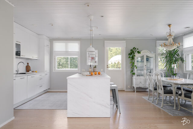 Etusivu / Uusimaa / Vantaa / Tammirinteentie 12 1 / 1 Tammirinteentie 12 Seutula, Vantaa | Omakotitalo | 4h,k,rt,tk,khh,kph,s,2xerill.wc,et,tk,at,ak,ps 459 000 € Velaton hinta 135,0 m2 Asuinpinta-ala 216,0 m2 Kokonaispinta-ala 1994 Rakennusvuosi Pääkaupunkiseudun kätketty helmi Vantaan Seutulassa! Harvinainen ja upea kokonaisuus Vantaan Seutulassa, Tammirinteentie 12 löydä unelmiesi koti rauhalliselta ja vehreältä alueelta pääkaupunkiseudun kätketystä helmestä, jossa on harvoin tarjolla asuinpaikkoja. Vanhaa kulttuurimaisemaa edustava ja valtakunnallisesti suojeltu ympäristö tekee tästä kodista paikan, jossa viihdytään ja asutaan pitkään.Tämä kaunis ja valoisa omakotitalo on valmistunut vuonna 1994 ja ollut siitä lähtien vain yhdellä omistajalla. Koti on rakkaudella hoidettu ja huolellisesti ylläpidetty ja remontoitu. Asukkailleen talo tarjoaa runsaasti tilaa ja useita huoneita rauhallisena kaksikerrosratkaisuna. Tilat soveltuvat joustavasti eri käyttöihin, niin kodikkaaseen oleskeluun, useammankin henkilön etätyöskentelyyn, kuin myös edustustilaisuuksiin. Suurista ikkunoista ja kahdelta korkealta terassilta avautuvat henkeäsalpaavan kauniit maalaismaisemat täällä sielu lepää.Kiinteistön suuri, oma tontti tarjoaa runsaasti tilaa puuhailuun sekä aikuisille, että lapsille. Pihalta löytyy hedelmäpuita, istutuksia sekä hurmaava pergola, mikä tekee tästä pihapiiristä täydellisen kesäpäiviin. Ihanimmat löylyt tarjoaa täysin remontoitu pihasauna, josta voi pulahtaa drop-altaaseen arjen luksusta parhaimmillaan. Kiinteistön kuntoa on huolellisesti ylläpidetty, ja useita kunnostuksia on tehty vuosien varrella. Autotalli ja autokatos tuovat lisää käytännöllisyyttä sekä tilaa ajoneuvoille ja säilytykseen.Kiinteistö 3600 m² jaetaan kaupan yhteydessä hallinnanjakosopimuksella, jonka yksityiskohdat määritellään yhdessä ostajan kanssa. (kumpikin vastaa omasta puolestaan jne.) Ostajan tontin koko 2000 m² ja myyjälle jäävä alue 1600 m².Sijainti on ihanteellinen perheelle, joka arvostaa rauhallista ympäristöä, aitoa yhteisöllisyyttä ja hyviä palveluita lähellä asut maalla, mutta kaupungissa. Koulut ja päiväkodit löytyvät kivenheiton päästä. Loistavat liikenneyhteydet takaavat sujuvan arjen ja helpottavat kulkemista. Kauppakeskus Jumboon pääset vartissa ja Kivistöön 5 minuutissa. Täällä asutte vanhan kulttuurimaiseman äärellä, mutta samalla kätevästi lähellä Vantaan monipuolisia palveluja sekä harrastus- ja vapaa-ajanviettomahdollisuuksia. Lähistöllä mm. hiihtoladut, urheilukenttä, kotieläinpuisto sekä Katriinan kartanon yhteisötila. Tämä alue on todellinen rauhan keidas, jossa viihdytään ja nautitaan elämän hyvistä puolista.Nykyinen perhe on viihtynyt upeassa kodissaan jo 31 vuoden ajan. Olisiko juuri teidän perheellenne kunnia olla toinen omistaja tälle kiinteistölle? Varaa oma esittelyaikasi ja tule kokemaan itse tämän ainutlaatuisen kodin seesteinen tunnelma ja kaikki sen tarjoamat mahdollisuudet. Astu sisään kotiin, josta olet aina haaveillut maalaisunelmasi odottaa toteutumistaan!Yhteydenotot ja yksityisesittelyt:Pia Lauronen | 050 540 1070 | pia.lauronen@bo.fiTHIS IS WHERE THE STORY BEGINS. Kiinnostaako tämä kohde?Ota meihin yhteyttä tai jätä viesti Pia Lauronen asuntomyyjä 050 540 1070 pia.lauronen@bo.fi Tutustu välittäjään Varaa aika kalenteristani RakennusRakennusvuosi (aloitettu)1992Käyttöönottovuosi1994RakennusmateriaaliPuu, muuRakennusmateriaalien kuvausUlkoseinät: alakerrassa lecaharkkorakenteinen, yläkerrassa puupaneeliverhoilu, puurunkoinen ulkoseinärakenne, eristeenä mineraalivilla 200 mm. Ikkunat kolmipuitteisia ja kolmelasisia. Yläpohja: eristeenä puhallusvilla 350 mm. Alapohja: maanvastainen betonilaatta, styrox-eriste reunoilla 150 mm, keskellä 100 mmKattotyyppiHarjakattoKateTiiliKaton kuntoHyväAsuinpinta-ala135,0 m2 (216,0 m2)Lisätietoja pinta-alastaMuut tilat sisältää: alakerran sauna, pesuhuone, kodinhoitohuone, porrasalue ja takkahuone. Yhteensä asuintiloja käytettävissä epävirallisesti 216 m2 (kokonaisala). Edellä mainittu pinta-ala saattaa tämän ikäisessä kohteessa poiketa olennaisestikin huoneiston nykyisen ja rakentamisaikaisen mittaustapojen ja standardien mukaan laskettavasta pinta-alasta. Huoneiston todellinen pinta-ala voi siis olla esitteessä mainittua pienempi tai suurempi. Kerrokset2Muut tilat81,0 m2LämmitysHyväLämmitysjärjestelmän kuvausSähkö, muuHuoneluku4h,k,rt,tk,khh,kph,s,2xerill.wc,et,tk,at,ak,psKeittiön kuvaus, lisätiedot ja varustusNoblesse keittiökalusteet ja laitteet myös sieltä. Integroidut laitteet. Keittiön varustus: 2xjääkaappi/pakastin, liesituuletin, mikroaaltouuni, astianpesukone, integroitu induktioliesi.Keittiön työtasojen materiaaliLaminaattiKeittiön lattiamateriaaliParkettiKeittiön seinien materiaaliMaalattuPesutilojen kuvaus, lisätiedot ja varustusKylpyhuoneen varustus: suihku, lattialämmitys.Kylpyhuoneen lattiamateriaaliLaattaKylpyhuoneen seinämateriaaliKaakeliSaunaAsunnossa on saunaSaunan lattiamateriaaliLaattaSaunan seinämateriaaliPuuWC-tilojen kuvaus1. Yläkerrassa suihku ja suihkukaappi sekä laatoitus myös seinillä 2. Alakerrassa vain wc ja kaakeli pesualtaan päällä, muuten maalatut seinätVarustus: lattialämmitys, lattiakaivo, suihku, suihkukaappi, peilikaappiLukumäärä: 2Lattiamateriaalit: laattaSeinämateriaalit: kaakeli, maalattuKodinhoitohuoneVarustus: pesukone, kuivausrumpu, pesuallas, lattialämmitys, pyykkikaapit, pöytätasoLattiamateriaalit: laattaSeinämateriaalit: kaakeli, maalattuMakuuhuoneen kuvaus, lisätiedot ja varustusLukumäärä: 3Lattiamateriaalit: parkettiSeinämateriaalit: maalattuOleskelutilojen kuvaus, lisätiedot ja varustusLattiamateriaalit: parkettiSeinämateriaalit: maalattuMuut tilat1. Takkahuone, jossa takka, aula ja tuulikaappi (ovi aulaan poistettu) 2. Terassi/parveke 3. Patio 4. Ruokailutilan TulisijaVaraava takka, vi