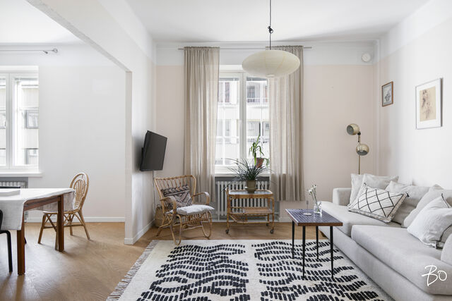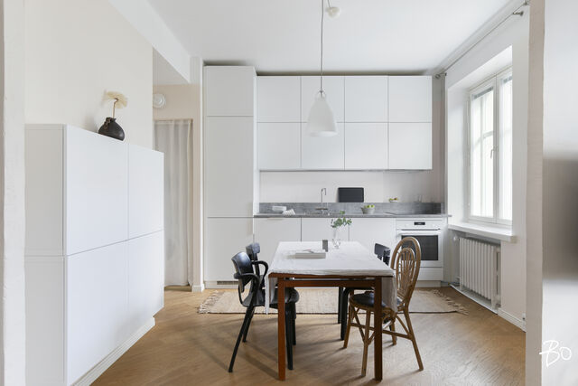 Etusivu / Uusimaa / Helsinki / Iso Roobertinkatu 41 1 / 1 Iso Roobertinkatu 41 Punavuori, Helsinki | Kerrostalo | 2h, avok, kph 369 000 € Velaton hinta 42,0 m2 Asuinpinta-ala 260,40 €/kk Hoitovastike 1928 Rakennusvuosi Valoisa kaksio Punavuoren paraatipaikallaTässä neljännen kerroksen kodissa jokainen asuinneliö on viisaasti hyötykäytössä ja laadukkaat materiaalivalinnat soveltuvat vaativaankin tyyliin. Klassinen 1920-luvun arkkitehtuuri ja kauniit yksityiskohdat muodostavat upean pohjan, josta jalostaa helposti omaan makuun sopivan. Vaalea avokeittiö on varustettu integroiduin kodinkonein ja kaappi- sekä laskutilaa löytyy runsaasti. Kätevänä lisänä toimii hyvin toteutettu paikka pesutornille. Ruokailutila yhdistyy harmonisesti olohuoneeseen, jossa suuret ruutuikkunat tuovat luonnonvalon ihastuttavasti sisätiloihin. Alkovin saa tarvittaessa erotettua esimerkiksi lasiseinällä ja säilytysratkaisuja helpottavat tilavat vaatekaapit. Asunnon kaunis tyyli jatkuu kylpyhuoneessa, jossa jokaiselle varusteelle löytyy oma looginen paikkansa. Laadukasta taloyhtiötä on ylläpidetty järjestelmällisesti, laaja talotekninen saneeraus ja putkiremontti suoritettiin v. 2018-2019. Osakkaiden käytössä ovat viihtyisät yhteistilat, piha- ja autohallipaikkoja sekä talosauna. Loistava sijainti Punavuoren ytimessä tarjoaa kaiken mitä kaupunkiasumiseen voikaan toivoa. Lähettyvillä sijaitsevat perinteikkäät kivijalkaliikkeet, ruokakaupat ja kahvilat sekä suositut kortteliravintolat. Ratikalla kulkee keskustaan muutamassa minuutissa ja merelliset ulkoilumahdollisuudet sijaitsevat kivenheiton päässä.Mahdollisuus upeaan kotiin, ota yhteyttä ja sovi aikasi esittelyyn!MYYNTI | SALES:Ronny Roslöf, LKV040 661 0011ronny@bo.fi Kiinnostaako tämä kohde?Ota meihin yhteyttä tai jätä viesti Ronny Roslöf kiinteistönvälittäjä LKV, KED, partner 040 661 0011 ronny@bo.fi Tutustu välittäjään Varaa aika kalenteristani HuoneistoOsakkeet668-723HallintamuotoAsunto-osakeyhtiöHuoneluku2h, avok, kphKerros/Kerroksia4/5Asuinpinta-ala42,0 m2Muut tilat0,0 m2NäkymätIso RoobertinkadulleHissiTaloyhtiössä on hissiKeittiön kuvaus, lisätiedot ja varustusKVIK XXL-kaapistot, täyskorkea jääkaappi/pakastin (integroitu AEG), uuni höyrytoiminnolla (AEG), induktioliesi (power-pikakuumennus -toiminto, AEG), astianpesukone (integroitu, SilencePlus, Bosch), rosterihana ( Tapwell), liesituuletin (Savo), säädettävä profiilivalo (Savo iLed), työtaso kivijäljitelmää, Custom-hylly väliseinällä. Tammiparketti (Kährs).Pesutilojen kuvaus, lisätiedot ja varustusLaatat Villeroy&Boch Hudson sand, iso suihkutila (kääntyvä lasisuihkuseinä), sadesuihku (Hans Grohe, 40cm halkaisijalla), pesuallas mattavalkoinen, pesuallashana (Oras), bidee-suihku (Hans Grohe), spottivalaistus himmentimellä, valopeili (Grand Lux, 60cm), lattialämmitys.Makuuhuoneen kuvaus, lisätiedot ja varustusAlkovimaiseen makuuhuoneeseen käynti olohuoneesta ja eteisestä. Automaattivalaistus vaatekaapit. Seinät maalattu, tammiparketti (Kährs).Oleskelutilojen kuvaus, lisätiedot ja varustusSeinät maalattu, tammiparketti (Kährs).Muut säilytystilatKellarikomeroMuutostyöt huoneistossaHuoneisto remontoitu 2018-2019: parketti uusittu, seinät hiottu ja maalattu, ikkunalaudat ja katot kaarteineen ja koristelistoineen maalarimestarin uusimat. Keittiö uusittu kokonaisuudessaan 2018-2019, huoneiston sisäiset sähköt uusittu ja pistorasioita lisätty. Kylpyhuone remontoitu 2018-2019. Alkovin kevyt väliseinä purettu 2025.KuntoHyvä Kiinteistö- ja yhtiötiedotYhtiön nimiAsunto-osakeyhtiö Iso-Roobertinkatu 41Tontin omistusOmaTontin koko1 214,10 m2Käyttöönottovuosi1928RakennusmateriaaliTiiliKattotyyppiHarjakattoKatePeltikateLämmitysjärjestelmäKaukoEnergiatodistusKylläLisätietoja energiatodistuksestaVoimassa 26.06.2034 saakka. EnergialuokkaE2018Tehdyt korjaukset ja remontit2024 Asuinhuoneistojen ikkunoiden rikkinäisten pokaliukujen vaihdot ja rikkinäisten tiivisteiden vaihto sekä puuttuvien tiivisteiden lisäys ulkopokaan, Sisäpihalle johtavien ulko-ovien pintakäsittely, Katujulkisivun sekä sisäpihojen julkisivujen kuntotutkimus, Asuinhuoneistojen ikkunoiden kuntokartoitus 2023-2024 Kiinteistön yleisten tilojen, teknisten tilojen, liiketilojen sekä asuinhuoneistojen lukitus saneerattu 2023 Parvekkeiden kuntotutkimus 2021-2022 B- ja C-porrashuoneiden hissien uusiminen ja jatkaminen ullakko- ja kellarikerrokseen 2021 Parvekekorjaukset, Esteettömyyskartoitus 2021- Ullakkorakentaminen 2018-2019 Talotekninen peruskorjausurakka (sis. putkiremontti) 2017 Autotallin ovi uusittu ja asennettu kauko-ohjaus, Toteutussuunnitelmat taloteknisen peruskorjauksen osalta valmistunut 2016 Automatiikka ajoporttiin, Hankesuunnitelma valmistunut ja hyväksytetty yhtiökokouksessa 2015 Hankesuunnitelman teon jatkaminen, Kylpyhuoneiden kuntokartoitus, Haettu ja saatu lupa jätehuoneen rakentamiselle 2014 Hissin uusiminen ja vanhan purkaminen, Parvekelattioiden paikkakorjaustyö, Ullakkorakennusoikeus lupa myönnetty, Taloteknisen peruskorjauksen hankesuunnittelu aloitettu, A-portaaseen porraskaiteiden lisääminen 2013 A-portaan hissin peruskorjauksen suunnittelu, Ullakkorakennusoikeuden selvitys- ja suunnittelutyöt valmiit ja rakennuslupa jätetty sisään 2013 Lämmitysjärjestelmän patteriventtiilien, venttiilien uusimistyö ja perussäätö 2012 Lämmitysjärjestelmän patteriventtiilien, venttiilien uusimisen ja lämmitysjärjestelmän perussäätötyösuunnitelmat ja urakka-asiakirjat, Ullakkorakennusoikeuden selvitys- ja suunnittelutyöt, tarvittavine suunnitelmineen ja mittauksineen 2008 Porrashuoneiden ikkunoiden ja parvekeovien maalauskunnostus, Ilmanvaihtohormien kunnostus- ja putkitustyöt 2009 Asuinhuoneistojen ikkunoiden ja porrashuoneiden ikkunoiden ja ovien uusiminen 2007 Korvausilmaventtiilien asennus kaikkiin huoneistoihin 2006 Lukituksen muuttaminen Exec-sarjaan 2006 Pääviemäriliitosjohto kaupungin viem