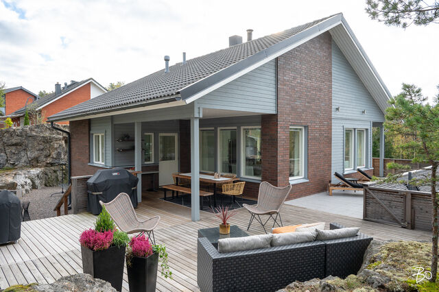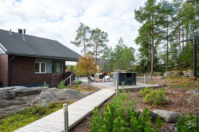Etusivu / Varsinais-Suomi / Naantali / Lamminkedonrinne 6 1 / 1 Lamminkedonrinne 6 Immanen, Naantali | Omakotitalo | oh, avok, 4 mh, 2kph, s, khh, 2xwc, tkh, aula, varasto+autotalli 447 000 € Velaton hinta 192,0 m2 Asuinpinta-ala 252,0 m2 Kokonaispinta-ala 2008 Rakennusvuosi Tyylikäs koti NaantalissaVuonna 2008 valmistunut omakotitalo kohoaa ylväänä päättyvän kadun varressa halutulla Immasen alueella ja täyttää vaativammankin asukkaan kriteerit.Kodin pohjaratkaisu on toimiva ja palvelee hyvin arjessa. Pääovesta tullaan suoraan alimmaiseen kerrokseen. Täältä löytyy kodin tv-tilana toimiva aulatila, saunaosasto, kodinhoitohuone, erillinen wc, yksi makuuhuone sekä varastotilaa ja autotalli. Toisen kerroksen näyttävän avotilan, joka on tämän kodin sydän, suuret ikkunapinnat tuovat luonnonvaloa ja tilan tuntua koko taloon. Tunnelmaa ja lämpöä luo varaava takka. Olohuoneesta aukeava ajaton ja vaalea Kvik -keittiö, jonka kruunaa massiivinen saareke. Keittiöstä on kulku suojaiselle takapihalle.Kodin makuuhuoneista kolme on yläkerrassa. Samassa kerroksessa sijaitsee myös toinen kylpyhuone, erillinen wc sekä tilava vaatehuone. Kodin pinnat ovat laadukkaat, tarkkaan mietittyjä ja harmonisen sävyisiä ajattomia valintoja. Talossa on vesikiertoinen lattialämmitys ja lämmitysmuotona nykyaikainen ilmavesilämpöpumppu.Laaja viihtyisä terassialue levittäytyy talon takana ja sivulla, jossa on tilaa niin grillailuun, ruokailuun ja suurelle istuskeluryhmälle. Tässä kodissa piha on erittäin helppohoitoinen ja etupiha on asfaltoitu. Suuremmallekin perheelle sopivan kodin sijainti on loistava. Kodin läheisyydestä lähtevät pururadat, hiihtoladut sekä luontopolut ja täältä on vain lyhyt matka Naantalin keskustan palveluihin ja päiväkoti ja koulukin sijaitsevat lähietäisyydellä. Lisätiedot ja esittelytMikko AholaKiinteistönvälittäjä, LKV, LVV, PartnerBo LKV Oy040 553 2121 | mikko.ahola@bo.fiAutan mielelläni myös oman asuntosi myynnissä Kiinnostaako tämä kohde?Ota meihin yhteyttä tai jätä viesti Mikko Ahola kiinteistönvälittäjä LKV, LVV, partner 040 553 2121 mikko.ahola@bo.fi Tutustu välittäjään Varaa aika kalenteristani RakennusRakennusvuosi (aloitettu)2006Käyttöönottovuosi2009RakennusmateriaaliPuu, tiiliKattotyyppiHarjakattoKateTiiliAsuinpinta-ala192,0 m2 (252,0 m2)Lisätietoja pinta-alastaRakennuslupakuvien mukainen huoneistoala 192 m2. Kerrosala 233 m2. Kokonaisala 233 m2 + 60 m2. Pinta-aloja ei ole tarkistusmitattu.Kerrokset2Muut tilat60,0 m2LämmitysVesikiertoinen lattialämmitys, uuni/takka, ilmalämpöpumppu. Ilmavesilämpöjärjestelmä asennettu 2021Lämmitysjärjestelmän kuvausIlmavesilämpöpumppuHuonelukuOh, avok, 4 mh, 2kph, s, khh, 2xwc, tkh, aula, varasto+autotalliKeittiön muut varusteetMikroaaltouuni, astianpesukoneLiesiKaasuliesi, integroitu liesi, erillisuuniKeittiön lattiamateriaaliLaattaKeittiön seinien materiaaliMaalattuPesutilojen kuvaus, lisätiedot ja varustusKaksi seinäsuihkua.Kylpyhuoneen varustusLattialämmitys, wc-istuin, suihkuKylpyhuoneen lattiamateriaaliLaattaKylpyhuoneen seinämateriaaliKaakeliSaunaAsunnossa on saunaSaunan lattiamateriaaliLaattaSaunan seinämateriaaliPuuWC-tilojen kuvausLukumäärä: 3Lattiamateriaalit: laattaKodinhoitohuoneLattiamateriaalit: laattaSeinämateriaalit: maalattuMakuuhuoneen kuvaus, lisätiedot ja varustusLukumäärä: 3Lattiamateriaalit: parkettiSeinämateriaalit: maalattu, tapettiOleskelutilojen kuvaus, lisätiedot ja varustusLattiamateriaalit: laattaSeinämateriaalit: maalattuMuut tilatKylpyhuoneita 2 kpl. pukuhuone, vaatehuone 2 kpl.TulisijaVaraava takka.TakkatiedotTakkaMuut säilytystilatVaatehuone, muu erillinen varastoKuntoHyvä KiinteistötiedotKiinteistötunnus529-28-13-3TyyppiTonttiTontin tyyppiRinnetonttiTontin koko1 060,00 m2Tontin omistusVuokrattuTontin vuokrasopimus päättyy31.12.2054Tontin vuokra1 868,47 €Tontin vuokraajaNaantalin kaupunkiPanttikirjat350 000,00 €Lisätietoja tontistaTontin lunastushinta elokuun 2025 kuluttajahintaindeksillä laskettuna on 30 944 euroa. Lopullinen hinta selviää kuitenkin vasta siinä vaiheessa, kun vapaamuotoinen lunastushakemus saapuu kirjaamon sähköpostiin.Tie perilleVesijohtoKunnanViemäriKunnan AsumiskustannuksetKiinteistövero705,34 €Muut maksut / lisätietoa maksuistaKokonaissähkönkulutus n. 16.000 kWh, hälytysjärjestelmä 62,50€ / kk, valoo-kuitu 29,90€ / kk. DNA-kaapeli-TV 10€ / kk.Vedenkulutus 3 henkilön taloudessa ollut n. 100 m3 / vuosi. HintaVelaton hinta447 000,00 €Myyntihinta447 000,00 € Sinua voisi kiinnostaa Asunnon hinta-arvio ja arviokäynti Asunnon hinta-arvio ja arviokäynti Mitä hinta-arvio maksaa tai miten arviokäyntiä varten kannattaa valmistautua? Katso vastauksemme usein kysyttyihin ky… Sneak Peek® Sneak Peek® Sneak Peek® -palvelumme on askeleen edellä! Löydä alueesi uusimmat ja upeimmat asunnot jo ennen kuin ne ilmestyvät as… Asuntovahti Asuntovahti Etsimässä uutta asuntoa? Aseta itsellesi Bo-asuntovahti. Saat tiedon heti, kun unelmiesi asunto tulee myyntiin. Bo Match Bo Match Kun asuntounelmat ja unelmien asunnot kohtaavat, syntyy Bo Match. Tutustu uudenlaiseen tapaan käydä asuntokauppaa.