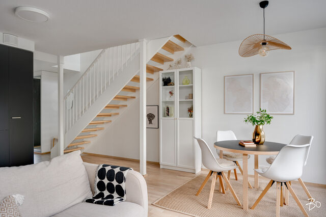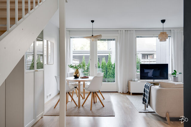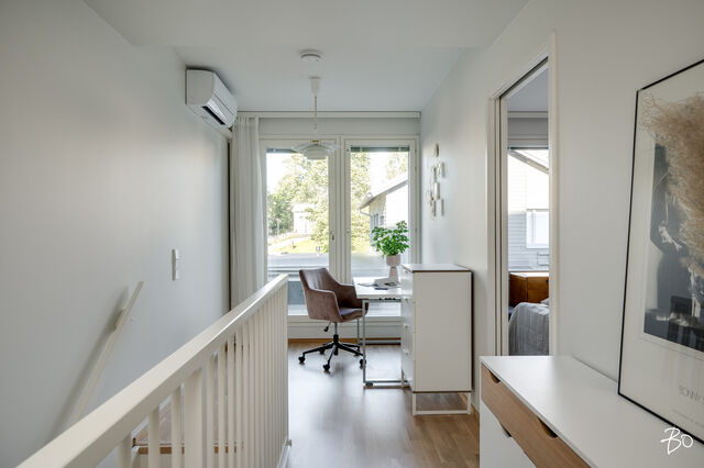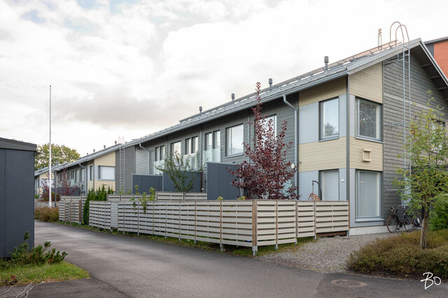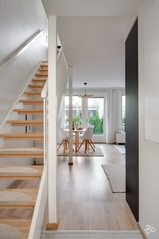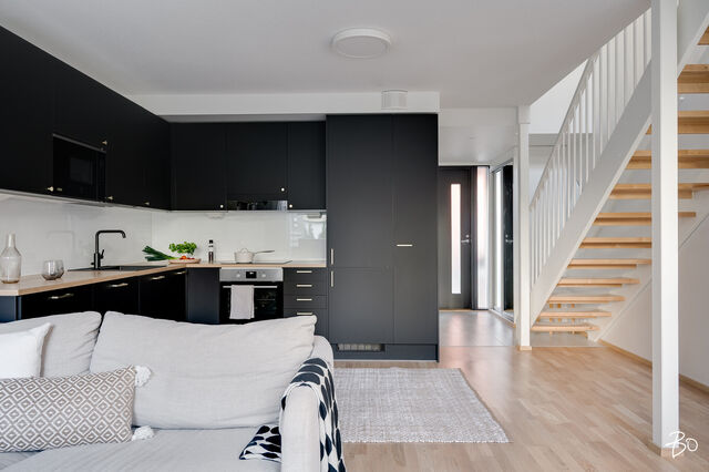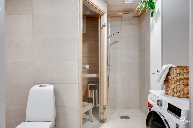 Etusivu / Varsinais-Suomi / Turku / Alfankatu 5 1 / 1 Alfankatu 5 Raunistula, Turku | Rivitalo | 3h+k+2 kph+s+aula+et+terassi (yj 3h+kt+s) 338 000 € Velaton hinta 74,0 m2 Asuinpinta-ala 222,00 €/kk Hoitovastike 2021 Rakennusvuosi Seuraava esittely: 08.10.2025 klo 18.00-18.30Tervetuloa ensiesittelyyn! Uudehko rivitalohuoneisto maalämmöllä vuonna 2021 valmistuneesta Asunto Oy Turun WänninmäestäOmalle tontille vuonna 2021 valmistunut yhtiö sijaitsee vain viiden minuutin ajomatkan päässä Turun kauppatorilta. Rauhaisaa puutalomiljöötä katsellessa ei uskoisi, että on vain pienen kävelymatkan päässä keskustan kaikista palveluista. Alue on turvallinen ja mieluisa myös lapsille, sillä läheltä löytyy kattavien palveluiden lisäksi leikkipaikat ja harrastusmahdollisuudet. Vain pienen matkan päässä sijaitseva Aurajoen rantareitti tarjoaa upean ympäristön ulkoiluun vuoden ympäri.Kahdesta makuuhuoneesta rakentuva koti on toteutettu kahteen tasoon ja suuren ikkunapinta-alan ansiosta koti pääsee kylpemään valossa. Lämmitysmuotona yhtiössä on maalämpö vesikiertoisella lattialämmityksellä. Kotiin on asennettu 2022 ilmalämpöpumppu viilennystä varten. Sisään saapuessa eteisaulan jatkeena aukeaa kodin näyttävät ja avarat oleskelutilat. Tyylikäs mattamusta avokeittiö on varusteltu integroiduin kodinkonein. Oleskelutilan isot ikkunat maksimoivat luonnonvalon määrän. Oleskelutilasta on kulku suoraan terassille ja sen jatkeena olevalle suojaisalle aidatulle piha-alueelle, joka kesän tullen kutsuu grillailemaan ja viettämään aikaa.Kodissa on kaksi makuuhuonetta, jotka sijaitsevat yläkerrassa. Molempiin makuuhuoneisiin on toteutettu säilytystila kiintein kaapistoin. Yläaulan aulan yhteydessä oleva ranskalainen parveke tuo asuntoon kivan lisän!Kodin molemmissa kerroksissa on wc sekä oma kaunis ja ajaton kylpyhuone. Alakerran kylpyhuoneen yhteydessä sijaitsee lisäksi sauna. Lisää säilytystilaa on huoneistokohtaisessa tilavassa varastossa.Huoneistoon kuuluu oma autokatospaikka, jonka lisäksi on mahdollisuus ostaa erillisosakkeena oleva tolppapaikka. Autokatospaikan yhteyteen on mahdollista toteuttaa sähköauton latausasema. Tervetuloa tutustumaan tähän upeaan kotiin huippusijainnilla!TAINA VUORI | 050 527 4106 | taina.vuori@bo.fifacebook: BO LKV Taina Vuoriinstagram: tainavuoribolkv_____________________________________Harkitsetko oman asuntosi myyntiä? Pyydä minut sitoumuksetta maksuttomalle arviokäynnille. Kerron samalla lisää tämänhetkisestä asuntomarkkinatilanteesta, palveluistani ja Bo:n loistavasta välityskonseptista sekä miten asunnonvaihdon suhteen kannattaa edetä. Autan mielelläni! Kiinnostaako tämä kohde?Ota meihin yhteyttä tai jätä viesti Taina Vuori kiinteistönvälittäjä LKV, eMBA, partner 050 527 4106 taina.vuori@bo.fi Tutustu välittäjään Varaa aika kalenteristani HuoneistoOsakkeet9091-9830HallintamuotoAsunto-osakeyhtiöHuoneluku3h+k+2 kph+s+aula+et+terassi (yj 3h+kt+s)Kerros/Kerroksia1, 2/2Asuinpinta-ala74,0 m2Muut tilat0,0 m2Lisätietoja pinta-alastaPinta-aloja ei ole tarkistusmitattu, huoneiston todellinen pinta-ala voi siis olla yhtiöjärjestyksessä, isännöitsijäntodistuksessa ja esitteessä mainittua pienempi tai suurempi. Isännöitsijäntodistuksen mukainen. Yhtiöjärjestyksen mukainen.NäkymätJokaisen asuinhuoneiston hallintaan kuuluu ranskalainen parveke. Osakkeenomistajat ovat velvollisia huolehtimaan kustannuksellaan asuinhuoneistoihin kuuluvien parvekkeiden asianmukaisesta turvallisuudesta, huollosta ja hoidosta mm. huolehtimalla mahdollisen lumen ja jään sekä puiden lehtien yms. poistosta ko. alueilta asianmukaisesti siten, että ne eivät aiheuta vaurioita rakenteille. Terassin ulkolattiat painekyllästetty ruskea, sileä. Terassilauta 28x120.ParvekeRanskalainenKeittiön kuvaus, lisätiedot ja varustusPöytäkaapit, seinäkaapit ja komerot Petra Thea 441, musta supermatta laminaattiovi. Työpöytätaso Petra WT lämmin tammi (629), tammi puusyy laminaatti. Allas Sirius SID 610 Carbon Black komposiittiallas. Kehyksetön induktiotaso. Teräksen värinen kalusteuuni, kiertoilma, paistolämpömittari ja ajastusmahdollisuus. Kalusteeseen sijoitettava TouchOpen mikroaaltouuni. Väri musta/teräs. Astianpesukone EMS4732OL, kokonaan kalustepeitteinen. Jääkaappipakastin ENN2853COW, ovi thea 441, kylmälaite integroituna, kalusteisiin integroitu, energialuokka G, käyttötilavuus 319l, automaattisulatus, turvalasihyllyt ja pulloteline. Liesikupu, Suvi-säädinkupu.Pesutilojen kuvaus, lisätiedot ja varustusKylpyhuone 1. krs: Katto tervaleppäpaneeli. Seinälaatta Piazen Ivory 300x600 mm R3657F, vaalea hiekka, himmeä laatta. Peilikaappi. Nova allaskaappi YBM4HCN, pesuallas NOBA4035, valkoinen, keraaminen Pyykkikaappi Nova Ronja 681A. Suihkuhana ja suihkusetti Silhouet 579543035 kromi, sadesuihkusetti. Wc-istuin Nautic 1500 Hygienic flush-huuhtelu. Kylpyhuone 2. krs: Kh katto Tervaleppäpaneeli 15x90 STP. Seinälaatta White kiiltävä 300x600 mm R826F Valkoinen kiiltävä laatta. Peilikaappi Peilikaappi YWM6PESL, varrellinen ledvalaisin LSLED50K (Novart Nova). Allaskaappi ja pesuallas Nova allaslaatikosto YBM6KYZ6B, pesuallas ALDINA6V, valkoinen valumarmori. Pöytäkaapit ja komerot Nova Ronja 681A. työpöytätaso Petra WT lämmin tammi (629), tammi puusyy laminaatti. Pesuallashana käsisuihkulla. Suihkuhana ja suihkusetti LionX 391100 suihkuhana ja LionX 130390 suihkusetti. Suihkuseinä Vihtan, Pisara 3. Wc-istuin Nautic 1500 Hygienic flush-huuhtelu.Saunan kuvaus, lisätiedot ja varustusSaunan seinät ja katto, tervaleppäpaneeli 15x90 STP. Tervaleppälauteet. Kiuas The Wall 6/8 kW teräs, manuaalinen ohjaus. Täyslasiovi, kirkas. Makuuhuoneen kuvaus, lisätiedot ja varustusLattia parkettia, seinät maalattu, kalusteovet Petra Milka 969. Vetimet Petra SK12.Lukumäärä: 2Oleskelutilojen kuvaus, lisätiedot ja varustusLattia parkettia, seinät maalattu.Muuta kauppaan kuuluvaaJäähdyttävä 