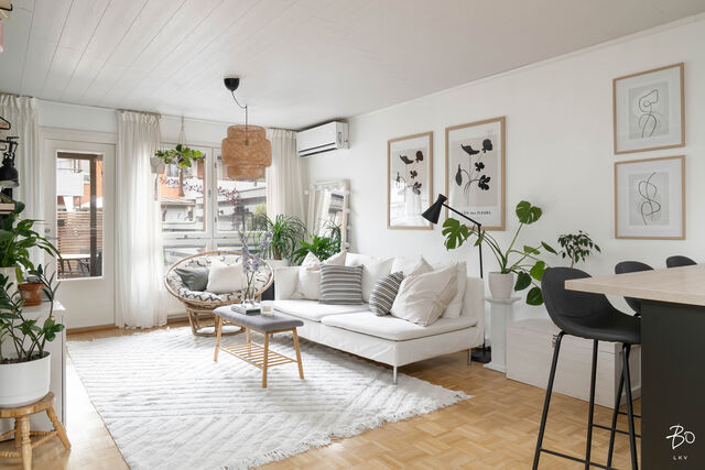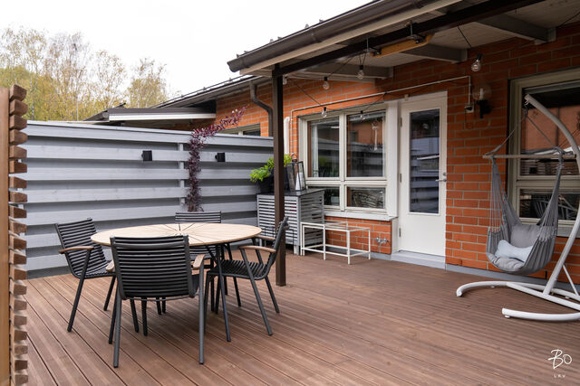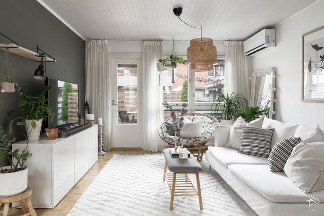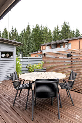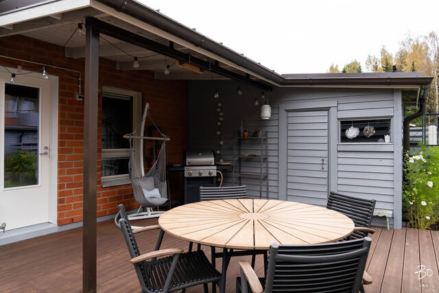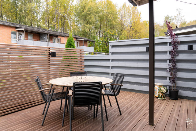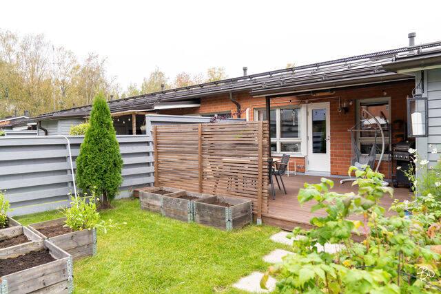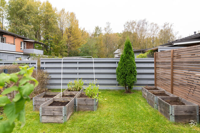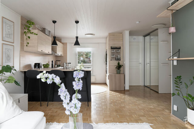 Etusivu / Uusimaa / Helsinki / Saramäentie 35 1 / 1 Saramäentie 35 Paloheinä, Helsinki | Rivitalo | 2h+k+s (yj mukaan 2h+k+s) 269 000 € Velaton hinta 58,5 m2 Asuinpinta-ala 327,60 €/kk Hoitovastike 1985 Rakennusvuosi Tervetuloa tutustumaan kauniisti pintaremontoituun rivitalokaksioon rauhallisella ja luonnonläheisellä Saramäentiellä, Helsingissä! Tässä kodissa nautitaan modernista estetiikasta ja avarista tiloista, jotka täyttävät vaativammankin kodinetsijän toiveet.Asunnon sisätilat hurmaavat heti sisään astuessa. Tilavat huoneet ja suuret ikkunat takaavat, että valo tulvii sisälle ympäri vuoden. Tähän 58,5 neliön kotiin on tehty kattava sisätilojen remontti vuonna 2021. Olohuone muodostaa yhdessä avokeittiön kanssa viihtyisän ja avaran oleskelualueen, josta avautuvat vehreät näkymät aurinkoisen kaakkoispihan suuntaan. Tilavan makuuhuoneen yhteydestä löytyy runsaasti kaappitilaa. Oma sauna tarjoilee makoisat löylyt kiireisen päivän päätteeksi ja asunnon yksitasoinen pohjaratkaisu tuo mukavaa helppoutta asumiseen.Takapihalta avautuu kutsuva terassi, jossa järjestät helposti kesäiset grillijuhlat tai nautit vain rauhallisesta aamukahvihetkestä luonnon helmassa. Suojaisalla aidatulla pihalla on tilaa lasten leikeille, lemmikeille tai viherpeukalon istutuksille. Ulkovarasto huoneiston yhteydessä tarjoaa kaivattua lisäsäilytystilaa. Huoneistolle kuuluu autokatospaikka.Asunto Oy Saramäentie 35 on pienehkö ja hyvin hoidettu taloyhtiö. Ystävällinen naapurusto sekä yhtiön siistit ja vehreät piha-alueet luovat miellyttävän asuinympäristön.Asunnon keskeinen sijainti Paloheinässä on ihanteellinen, sillä alue on tunnettu luonnonläheisyydestään, mutta kuitenkin hyvien liikenneyhteyksien ulottuvissa. Koulut, päiväkodit ja kattavat kaupalliset palvelut löytyvät kävelyetäisyydeltä. Hyvät julkisen liikenteen yhteydet takaavat helpon pääsyn keskustaan ja muihin Helsingin kaupunginosiin.Tämä avara kaksio sopii mainiosti yksineläjälle, pariskunnalle, pienelle perheelle, eläkepäiviksi tai vaikkapa ensiasunnoksi. Tule ja ihastu tähän valmiiseen pakettiin, jossa yhdistyvät luonnonläheinen sijainti, toimiva pohjaratkaisu, ajaton eleganssi - tänne haluat muuttaa heti! Ota pian yhteyttä, esittelyt järjestyvät joustavasti.Pia Lauronen | asuntomyyjä | 050 540 1070 | pia.lauronen@bo.fiTHIS IS WHERE THE STORY BEGINS. Kiinnostaako tämä kohde?Ota meihin yhteyttä tai jätä viesti Pia Lauronen asuntomyyjä 050 540 1070 pia.lauronen@bo.fi Tutustu välittäjään Varaa aika kalenteristani HuoneistoOsakkeet20907-26113HallintamuotoAsunto-osakeyhtiöHuoneluku2h+k+s (yj mukaan 2h+k+s)Kerros/Kerroksia1/1Asuinpinta-ala58,5 m2Muut tilat0,0 m2Lisätietoja pinta-alastaIsännöitsijäntodistuksessa mainittua huoneiston pinta-alaa ei ole tarkistusmitattu rakennusten pinta-aloja määrittävän standardin SFS 5139 mukaisesti. Isännöitsijäntodistuksen mukainen. Yhtiöjärjestyksen mukainen.NäkymätOsittain katettu terassi ja vehreä sisäpiha. Ilmansuunta kaakko.Keittiön kuvaus, lisätiedot ja varustusKeittiöremontti tehty 2021. Kaunis ja toimiva kokonaisuus integroituine kodinkoneineen. Varustus: integroitu mikro, integroitu uuni, integroitu jääkaappi/pakastin, integroitu astianpesukone, liesituuletin, induktioliesi. Keittiön työtasojen materiaaliLaminaattiKeittiön lattiamateriaaliParkettiKeittiön seinien materiaaliMaalattuPesutilojen kuvaus, lisätiedot ja varustusKylpyhuoneen ja saunan erottaa lasiovi ja puoliksi kaakeloitu ja puoliksi lasinen seinä.Kylpyhuoneen varustusSuihkukaappi, pesukoneliitäntä, lattialämmitys, wc-istuin, suihku, peilikaappiKylpyhuoneen lattiamateriaaliLaattaKylpyhuoneen seinämateriaaliKaakeliSaunan kuvaus, lisätiedot ja varustusSauna remontoitu kokonaisuudessaan v. 2020-2021. 1/2024 vesivahingon yhteydessä vaihdettu saunan panelointi sekä villoja siltä osin kun kastuneet, poistettiin vanha käyttövesiputken pätkä, joka vahingon aiheutti. Korjaus tehty taloyhtiön tilaamana työnä. Seinät ja katto tervaleppä-sormipanelia. Lauteisiin upotettu Harvian ikikiuas.Saunan lattiamateriaaliLaattaSaunan seinämateriaaliPuuMakuuhuoneen kuvaus, lisätiedot ja varustusLukumäärä: 1Lattiamateriaalit: parkettiSeinämateriaalit: maalattu, puuOleskelutilojen kuvaus, lisätiedot ja varustusLattiamateriaalit: parkettiSeinämateriaalit: maalattuSeinämateriaalitSeinät maalattu kipsilevy. LattiamateriaalitLattia mosaiikkiparketti. KattomateriaalitKattopanelointi uusittu 2021.Muuta kauppaan kuuluvaaHalutessaan istutuslaatikot. Kylpyhuoneen säilytyskaapit.Kauppaan ei kuuluPesukone.Muutostyöt huoneistossaPiha-aita 2025. Ikkunakarmien sisäosien maalaus 2024. Vesivahingon korjaustyö saunaan 2023 (panelointi ja saunan eristeet vaihdettu) Ilmalämpöpumpun asennus 2022. (ILP huolto osakkaan vastuulla)KuntoHyvä Kiinteistö- ja yhtiötiedotYhtiön nimiAsunto Oy Saramäentie 35Tontin omistusVuokrattuTontin koko5 545,00 m2Tontin vuokraajaHelsingin kaupunkiTontin vuokra12 256,45 €Käyttöönottovuosi1985RakennusmateriaaliPuu, tiiliKattotyyppiHarjakattoKatePeltiLämmitysjärjestelmäSähkö, ilmalämpöpumppuEnergiatodistusKylläLisätietoja energiatodistuksestaVoimassa 24.11.2033 asti.EnergialuokkaE2018Tehdyt korjaukset ja remontit2005 Sadevesikaivojen kaatojen korjaus 2009 Vesikattojen huoltomaalaus 2010 Märkätilojen kosteusmittaukset 2010 Kuntoarvion PTS teettäminen 2011 Lämmityspattereiden uusiminen 2012 Kattosiltojen, räystäiden ja syöksytorvien korjaus 2014 Asuinrakennusten vesikaton läpivientien tiivistys 2014 Ulko-ovien tiivistys 2014 Autokatosten vesikatteen uusinta 2016 Salaojajärjestelmän huuhtelu ja kuvaus 2016 IV-kanaviston nuohous, ilmamäärien mittaus 2016 Lämminvesivaraajan vaihto huoneisto D 2017 Lämminvesivaraajan vaihto huoneisto K 2018 Taloyhtiön kuntoarvio ja alapohjatutkimus talo F 2019 Ylä- ja alapohja korjausten suunnittelu 2019 Lämminvesivaraajan vaihto huoneisto O 2020 Lä