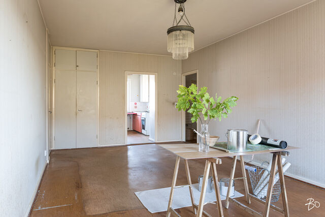 Etusivu / Pirkanmaa / Tampere / Teiskontie 15 1 / 1 Teiskontie 15 Kaleva, Tampere | Kerrostalo | 2h, k, kph, et 158 000 € Velaton hinta 62,5 m2 Asuinpinta-ala 322,40 €/kk Hoitovastike 1956 Rakennusvuosi Myyntiin saapunut ylimmän kerroksen kaksio suositusta Kalevasta, ratikkareitin varrelta!Asunto on pitkälti alkuperäisessä kunnossa ja vaatii remontin, mutta pohjaratkaisu on toimiva. Laatoitettu kylpyhuone on uusittu putkiremontin yhteydessä. Erillinen keittiö, erittäin tilava olohuone ja makuuhuone vaatehuoneella tarjoavat hyvin tilaa. Lisäksi asunnolle kuuluu vintti- sekä kellarikomero.Asunto Oy Teiskontie 15 on vuonna 1956 valmistunut taloyhtiö, johon kuuluu yhteensä 54 asuntoa. Yhtiö on liitetty kaukolämpöön ja sijaitsee kaupungin vuokratontilla, jonka vuokrasopimus on jo uusittu. Yhtiössä on tehty isoja remontteja, joista mainittakoon vuonna 2000 tehty käyttövesiputkistojen ja viemäreiden uusiminen sekä vuonna 2013 tehty julkisivujen sekä parvekkeiden kunnostus ja ikkunoiden uusiminen.Sijainti on loistava, sillä keskustan palvelut ovat kävelymatkan päässä ja kulkuyhteydet ovat mainiot. Rautatieasemalle on n. 1,3 km ja lähimmälle bussi- ja ratikkapysäkille n. 100 m. Asunto vapautuu heti kaupanteosta. Varaa oma esittelyaikasi ja tule tutustumaan!Henri MajuriKiinteistönvälittäjä LKV, KiAT, partner040 8121 957henri@bo.fiKotisivut: henrimajuri.fiInstagram: henrimajuriFacebook: henrimajuribolkv#majurimyy Kiinnostaako tämä kohde?Ota meihin yhteyttä tai jätä viesti Henri Majuri kiinteistönvälittäjä LKV, KiAT, partner 040 812 1957 henri@bo.fi Tutustu välittäjään Varaa aika kalenteristani HuoneistoOsakkeet965-1026HallintamuotoAsunto-osakeyhtiöHuoneluku2h, k, kph, etKerros/Kerroksia6/6Asuinpinta-ala62,5 m2Muut tilat0,0 m2Lisätietoja pinta-alastaHuoneiston pinta-alaa ei ole tarkistusmitattu SFS 5139 mukaisesti. Huoneistoselitelmä 2h+k. Isännöitsijäntodistuksen mukainen. Yhtiöjärjestyksen mukainen. Toimeksiantajan ilmoittama.NäkymätLäpitalon huoneisto, maisema molemmille puolille taloa.HissiTaloyhtiössä on hissiLiesiSähköliesiKeittiön työtasojen materiaaliLaminaattiKeittiön lattiamateriaaliMuoviKeittiön seinien materiaaliMaalattuKylpyhuoneen varustusPesukoneliitäntä, wc-istuin, suihku, peilikaappiKylpyhuoneen lattiamateriaaliLaattaKylpyhuoneen seinämateriaaliKaakeliMakuuhuoneen kuvaus, lisätiedot ja varustusLukumäärä: 1Lattiamateriaalit: muoviSeinämateriaalit: maalattuOleskelutilojen kuvaus, lisätiedot ja varustusLattiamateriaalit: muoviSeinämateriaalit: tapettiMuut säilytystilatKellarikomero, vinttikomeroKuntoVälttäväLisätietoa kunnostaAsunto on pitkälti alkuperäiskuntoinen / remonttikuntoinen Kiinteistö- ja yhtiötiedotYhtiön nimiAsunto Oy Teiskontie 15Tontin omistusVuokrattuTontin koko3 776,30 m2Tontin vuokraajaTampereen kaupunkiTontin vuokrasopimus päättyy31.05.2064Tontin vuokra59 727,24 €Käyttöönottovuosi1956RakennusmateriaaliTiili, betoniKattotyyppiHarjakattoKateMuovitettu peltiLämmitysjärjestelmäKaukoEnergiatodistusKylläLisätietoja energiatodistuksestaRakennuksen laskennallinen kokonaisenergiankulutus (E-luku): 205 kWhE/(m2vuosi) - Energiatodistuksen viimeinen voimassaolopäivä: 18.12.2024 - Energiatodistus perustuu lakiin rakennuksen energiatodistuksesta (50/2013).EnergialuokkaF2013Tehdyt korjaukset ja remontit1987 Patteri- ja linjasulkuventtiilit 1988 Etuikkunat 1991 Porraskäytävien maalaus 1993 Kaukolämpölaitteiden uusiminen 1995 A-rapun hissin saneeraus 2000 Käyttövesiputkistojen ja viemäreiden uusiminen, linjasulkuventtiilit 2001 B- ja C-portaan hissien saneeraus; autopaikkojen sähköjen uusiminen 2003 Kellarikerroksen ikkunat uusittu 2005 Jätekatos 2009 Etupihan sadevesijärjestelmän ja salaojituksen uusiminen; pihan asfaltointi 2011 Toissijaisen sisäänkäynnin rakentaminen 2013 Julkisivujen ja parvekkeiden kunnostus; ikkunoiden, parvekeovien ja takapihan ulko-oven uusiminen 2014 IV-hormien nuohous 2015 Lämmityksen tasapainotus ja patteriventtiilien vaihto 2021 Kaikki lukostot uudistettiin Abloy Pulse -järjestelmään; kuivaushuoneen sähkökeskus uusittiin 2022 Kondenssikuivaimen hankinta pesulaan; ikkunoiden raitisilmasuodattimien vaihto 2023 Julkisivujen korjauksia 2024 IV-hormien nuohous ja korvausilmaventtiilien suodattimien vaihto; parvekkeiden rakenteiden korjauksia 2025 Palovaroittimien asennus asuntoihinTiedossa olevat tulevat korjaukset/remontitTulevien korjaustarpeiden selvitys (1-5 vuotta): 2025 Lisäautopaikkojen rakentaminen, yksi tai kaksi paikkaa 2025 Vesikalusteiden tarkastus ja korjaukset 2024-2026 Rappukäytävien ulko-ovien uusiminen / kunnostus - Sähkösaneerauksen tarpeellisuuden selvitys (yleiskaapelointi) - Lämmönsiirtimien uusiminenKustannuksia myöhemmin aiheuttavat velvoitteetIsännöitsijäntodistus 29.09.2025 - Yhtiökokouksessa 29.5.2024 päätettiin antaa hallitukselle valtuudet periä osakkailta 1-2 ylimääräistä hoitovastiketta maksuvalmiuden turvaamiseksi. Valtuutus on voimassa seuraavaan varsinaiseen yhtiökokoukseen asti. - Päätettiin rahastoida lainaosuuksien kertasuoritukset lainan lyhennysrahastoon vuonna 2024.Pihapaikkoja30Lainat144 804,12 €Kiinnitykset1 300 410,00 €IsännöitsijäIsännöitsijä Sami Nurmi 0440475008 Sarvijaakonkatu 5b A 33540 Tampere Pirkanmaan Ammatti-Isännöinti Oy / Sami Nurmi Sarvijaakonkatu 5b A (4. kerros) 33540 Tampere KiinteistönhoitoHuoltoyhtiöYhtiön tilat ja varusteluSauna, kuivaushuone, mankeli, vinttikomero, kellarikomero, urheiluvälinevarasto, askarteluhuone, kaapeli-tv. - Ilmanvaihtojärjestelmät: Painovoimainen. - Tietoliikennejärjestelmät: Ethernet; Yhtiön laajakaista: Elisa huoneistokaista 50M yhtiövastikkeellinen - Antennijärjestelmä: Kaapeli-tv (DVB-C) - Rakennusten lukumäärä yhteensä 1. Asuntojen osakelukumäärä yhteensä 3057. Kukin osake tuottaa yhden äänen. - Muut osakkeenomistajien käytössä olevat tilat: Juttutupa, mankelihuone, pesutupa, sauna, ulkoiluv