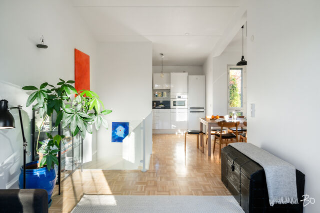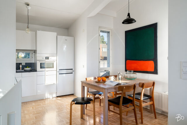 Etusivu / Uusimaa / Espoo / Näkinkaari 9 1 / 1 Näkinkaari 9 Laurinlahti, Espoo | Rivitalo | 2h, avok, kph/s, piha, terassi, ulkovarasto (Yj mukaan 2h+k+sauna) 265 000 € Velaton hinta 52,0 m2 Asuinpinta-ala 260,00 €/kk Hoitovastike 1985 Rakennusvuosi Moderni, valoa tulviva pikkukoti halutussa yhtiössä aivan meren tuntumassa odottaa uusia onnellisia asukkaita.Merellinen Espoo ja Laurinlahti, ihana vehreä ympäristö ja kaunis rivitalokaksio. Kehittyvä alue ja monipuoliset palvelut, metro lähellä. Kuulostaako erinomaisen hyvältä?Tämä asunto on aivan täydellinen, ja varsinkin sen yläkerta suorastaan kylpee upeassa luonnonvalossa. Tämän kodin yläkerrassa asutaan, oleskellaan ja viihdytään keittiön, ruokailutilan ja olohuoneen avoimessa yhteistilassa. Alakerrassa on makuuhuone omassa rauhassaan sekä oma sauna kylpyhuoneen yhteydessä. Kylpyhuone on remontoitu nykypäivän vaatimustasolle ja se on saanut samalla modernin ilmeen.Erityisesti tässä ihanassa kodissa miellyttää tilankäyttö, neliöt on käytetty todella hyvin ja pohja on erittäin toimiva. Tämä asunto on muuttovalmis ja tämän päivän makuun kunnostettu. Kauniin keittiön yhteydessä on ruokailutila, johon mahtuu kunnon pöytä. Olohuone on valoisaa, korkeaa tilaa, ja ikkunoita on täällä kolmeen suuntaan, joiden ansiosta tila suorastaan tulvii valoa. Näkyypä täältä hieman kaunista mertakin. Alakerran makuuhuoneessa on säilytystilaa koko seinän mittaisen kaapiston verran. Lisäsäilytystilaa löytyy erillisestä ulkovarastosta. Seinänaapureita tässä rivitalon päädyssä on vain yhdellä puolella. Omalla vuonna 2017 rakennetulla terassilla viihdyt kesäisin pidempäänkin oleillen ja vaikkapa grillaillen. Taloyhtiö on erittäin arvostettu ja hyvin hoidettu, korjauksia tehdään säännönmukaisesti. Yhtiö on mm. lähivuosina liitetty maalämpöön. Tämä koti on aivan täydellinen sinkulle tai pariskunnille, miksei pienelle perheellekin. Oma katosautopaikka kuuluu asunnolle ja sen mukana tulee sähköauton latausasema. Lisäksi mahdollista vuokrata lisäparkkipaikka yhtiöltä jonotusperiaatteella. Sijainti lähellä Espoonlahden keskustaa takaa hyvät palvelut, mm. Lippulaivan kauppakeskus. Metro kulkee kätevästi läheiseen Espoonlahteen. Lähiympäristö on vehreää pidettyä asuinaluetta, jossa on hyvät ulkoilumahdollisuudet. Upea merenranta ja Espoon rantaraitin mahtavat maisemat ovat näköetäisyydellä ja antavat oman ekstralisänsä täällä asumiseen. Tämä koti vapautuu heti kaupanteossa.Ole heti yhteydessä ja sovi oma yksityisesittelysi joustavasti tähän todella kivaan ja kodikkaaseen rivitaloasuntoon. Lämpimästi tervetuloa tutustumaan! TÄMÄN KOHTEEN MYY Susanna Arnall LKV LVV | 0400-884448 | susanna@bo.fi Service also in English.http://www.susannaarnall.comhttp://www.facebook.com/susannaarnalllkv/ IG: @susannaarnall Harkitsetko oman asuntosi myyntiä? Pyydä minut sitoumuksetta maksuttomalle arviokäynnille. Kerron samalla lisää tämänhetkisestä asuntomarkkinatilanteesta, palveluistani ja Bo:n loistavasta välityskonseptista sekä miten asunnonvaihdon suhteen kannattaa edetä. Autan mielelläni! Kiinnostaako tämä kohde?Ota meihin yhteyttä tai jätä viesti Susanna Arnall kiinteistönvälittäjä LKV, LVV, partner 0400 884 448 susanna@bo.fi Tutustu välittäjään Varaa aika kalenteristani HuoneistoOsakkeet4707-4810HallintamuotoAsunto-osakeyhtiöHuoneluku2h, avok, kph/s, piha, terassi, ulkovarasto (Yj mukaan 2h+k+sauna)Kerros/Kerroksia1-2/2Asuinpinta-ala52,0 m2Muut tilat0,0 m2Lisätietoja pinta-alasta Yhtiöjärjestyksen mukainen. Isännöitsijäntodistuksen mukainen.NäkymätNäkymät kolmeen suuntaan, päätyasunto.Keittiön kuvaus, lisätiedot ja varustusKeittiö 2010 -luvulta. 2016 jälkeen uusittu tiskikone, uuni, jääkaappi/pakastin.LiesiKeraaminen liesiKeittiön työtasojen materiaaliLaminaattiKeittiön lattiamateriaaliParkettiKeittiön seinien materiaaliMaalattuPesutilojen kuvaus, lisätiedot ja varustusUusittu kokonaan 2019.Kylpyhuoneen varustusSuihkuseinä, pesukoneliitäntä, lattialämmitys, wc-istuin, suihku, peilikaappiKylpyhuoneen lattiamateriaaliLaattaKylpyhuoneen seinämateriaaliKaakeliSaunan kuvaus, lisätiedot ja varustusUusittu kokonaan 2019, paneeli leppä. Saunan lattiamateriaaliLaattaSaunan seinämateriaaliPuuMakuuhuoneen kuvaus, lisätiedot ja varustusSeinät ja katto maalattu, lattia hiottu ja valkolakattu ja kaapistot uusittu 2016. 2016 rakennettu makuuhuoneen ja eteisen välinen seinä.Lukumäärä: 1Lattiamateriaalit: parkettiSeinämateriaalit: maalattuOleskelutilojen kuvaus, lisätiedot ja varustusSeinät ja katto maalattu, lattia hiottu ja valkolakattu 2016.Lattiamateriaalit: parkettiSeinämateriaalit: maalattuMuut säilytystilatUlkovarastoMuuta kauppaan kuuluvaaIlmalämpöpumppu, osakkaan vastuulla. Erillinen sopimus asennuksesta ja sopimuksen siirrosta osakkeiden myynnin yhteydessä siirtyy ostajalle. Autokatoksessa sähköauton latausasema.Kauppaan ei kuuluMuu irtaimisto.Muutostyöt huoneistossaIlmanvaihtoon on tehty suunnitellut tarkistukset ja suodattimen vaihdot taloyhtiön aloitteesta 2024 Edellisen osakkaan tekemät: Seinät ja katto maalattu, lattia hiottu ja valkolakattu ja makuuhuoneen sekä eteisen välinen seinä 2016. Ilmalämpöpumppu 2017 (kunnossapitovastuu osakkaalla). Pesuhuone, sauna 2019. Taloyhtiöllä ei ole tiedossa tässä huoneistossa 1.7.2010 ennen tai jälkeen mahdollisesti tehtyjä osakkaan tai yhtiön kunnossapito- tai muutostöitä, mikäli niitä ei ole isännöitsijäntodistuksessa erikseen mainittu. KuntoHyvä Kiinteistö- ja yhtiötiedotYhtiön nimiAsunto Oy LaurinriviTontin omistusOmaTontin koko11 520,00 m2Käyttöönottovuosi1985RakennusmateriaaliElementti, betoniKattotyyppiHarjakattoKateTiiliLämmitysjärjestelmäMaalämpö, muuEnergiatodistusKylläLisätietoja energiatodistuksestaVoimassa 17.4.2031 asti.EnergialuokkaC2018Tehdyt korjaukset ja remontit2024 Taloyhtiön puuosien paikkakorj