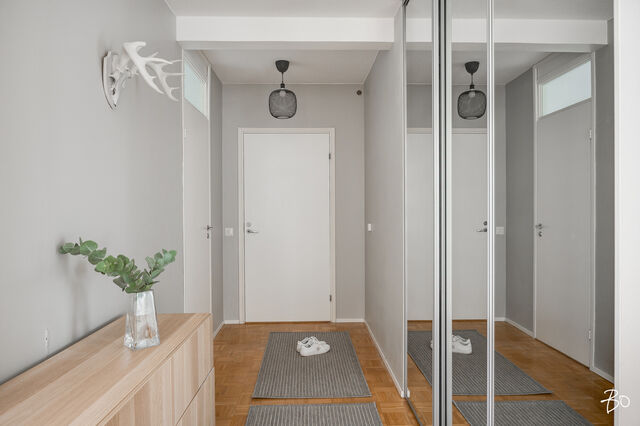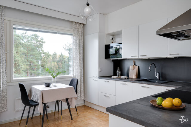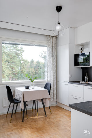 Etusivu / Varsinais-Suomi / Turku / Talikkokatu 8 F 1 / 1 Talikkokatu 8 F Hannunniittu, Turku | Kerrostalo | 2-3h + k + kph + wc + las.parveke 148 000 € Velaton hinta 77,0 m2 Asuinpinta-ala 354,20 €/kk Hoitovastike 1976 Rakennusvuosi Seuraava esittely: 15.10.2025 klo 17.30-18.00Lämpimästi tervetuloa tämän kodikkaan helmen ensiesittelyyn! Valmiiksi remontoitu viihtyisä läpitalon huoneisto rauhallisen ja vehreän Hannunniitun sydämessä odottaa uusia asukkaitaan!Asunnossa on lämminhenkinen tunnelma, jonka luovat hyvä pohjaratkaisu ja valoisat, tilavat huoneet. Olohuone on erityisen avara, ja tilaa on niin sohvaryhmälle kuin suuremmalle ruokapöydälle yhteisiä hetkiä varten. Olohuoneen jatkeena on lasitettu parveke vehreään metsään, joka kutsuu nauttimaan vuodenajan mukaan vaihtuvista näkymistä.Myös keittiöstä avautuu kivasti näkymä sisäpihan puiden välistä, kuitenkin peittäen suoran näkymän muihin rakennuksiin. Päämakuuhuoneen ikkuna on rentouttavan metsän suuntaan. Toisen makuuhuoneen seinä on avattu, päästäen ihanasti valon koko asunnon läpi. Seinä on tarvittaessa helposti rakennettavissa, tai päivitettävissä moderniin lasiseinään verhojen kanssa jakamaan tila, mutta säilyttäen olohuoneen valoisuuden.Hyvin hoidettu yhtiö, joka on lisäksi yltänyt harvinaiseen, parhaimpaan A-energialuokkaan, mikä tekee asumisesta sekä viihtyisää että energiatehokasta.Sijainti on erinomainen hyvät kulkuyhteydet vievät nopeasti keskustaan, Tyks sekä yliopisto ovat vain lyhyen matkan päässä ja läheltä löytyvät myös koulu, päiväkoti, liikuntapaikat ynnä muut arjen palvelut.Varaa yksityisesittely, ja ihastu!Viljami Ahtola | 040 738 7991 | viljami@bo.fiasuntomyyjä, BoAc, partnerig: viljami.bolkv Kiinnostaako tämä kohde?Ota meihin yhteyttä tai jätä viesti Viljami Ahtola asuntomyyjä, BoAc, partner 040 738 7991 viljami@bo.fi Tutustu välittäjään Varaa aika kalenteristani HuoneistoOsakkeet13265-13418HallintamuotoAsunto-osakeyhtiöHuoneluku2-3h + k + kph + wc + las.parvekeKerros/Kerroksia4/6Asuinpinta-ala77,0 m2Muut tilat0,0 m2Lisätietoja pinta-alasta(Yhtiöjärjestyksen mukaan 3h+k) Pinta-ala ei ole tarkistusmitattu. Mainittu pinta-ala saattaa tämän ikäisessä kohteessa (rakennettu ennen vuotta 1992) poiketa olennaisesti nykyisten standardien mukaan laskettavasta asuinpinta-alasta. Todellinen asuinpinta-ala voi tarkistusmittauksen jälkeen olla yhtiöjärjestyksessä, isännöitsijäntodistuksessa ja esitteessä mainittua pienempi tai suurempi. Yhtiöjärjestyksen mukainen. Isännöitsijäntodistuksen mukainen.NäkymätRauhallinen näkymä metsään.ParvekeLasitettuParvekkeen ilmansuuntaLänsiHissiTaloyhtiössä on hissiKeittiön kuvaus, lisätiedot ja varustusRemontoitu 2021 Integroitu astianpesukone, induktioliesi, liesituuletin, integroitu uuni, integroitu mikro, jääkaappi/pakastin.Keittiön työtasojen materiaaliLaminaattiKeittiön lattiamateriaaliParkettiKeittiön seinien materiaaliMaalattuPesutilojen kuvaus, lisätiedot ja varustusRemontoitu 2016. Lattialämmitys, suihku, käsipesuallas, pesukoneliitäntä, peili, kaapisto, pesukoneliitäntä.Kylpyhuoneen lattiamateriaaliLaattaKylpyhuoneen seinämateriaaliKaakeliWC-tilojen kuvausKäsipesuallas, peilikaappi, bidee-suihku, allaskaapisto.Lattiamateriaalit: laattaSeinämateriaalit: kaakeliSaunan kuvaus, lisätiedot ja varustus3 talon sauna G rapussa, remontoitu 2020.Makuuhuoneen kuvaus, lisätiedot ja varustusSeinät maalattu. Parkettilattia. 1-2 makuuhuonetta.Oleskelutilojen kuvaus, lisätiedot ja varustusSeinät maalattu. Parkettilattia. Kauppaan ei kuuluIrtaimistoMuutostyöt huoneistossa2021 Keittiö 2016 KylpyhuoneKuntoHyvä Kiinteistö- ja yhtiötiedotYhtiön nimiAsunto Oy PaaskunnanharjuTontin omistusOmaTontin koko10 239,30 m2Käyttöönottovuosi1976RakennusmateriaaliBetoniKattotyyppiHarjakattoKateHuopakateLämmitysjärjestelmäMaalämpöEnergiatodistusKylläLisätietoja energiatodistuksestaVoimassa 13.10.2032 astiEnergialuokkaA2018Tehdyt korjaukset ja remontit2023 Nopeat datayhteydet taloyhtiön omaan käyttöön, mm. valvontajärjestelmille 2023 Katoksellinen tupakointipaikka, tontin luoteiskulma 2023 Yleisten tilojen valokatkaisijat, liiketunnistimilla ja hämäräkytkimillä 2022 Kameravalvonta. Alueen huoltoyhtiö toteuttanut alueellisena (Vanha Hämeentie 110 ja Talikkokatu 4, 6 ja 8) 2022 As Oy Paaskunnanharjun kaikki kolme rakennusta parhaaseen A-luokkaan energiatehokkuudessa 2022 Aurinkopaneelit (Salo Mono) Arvioitu tuotto 83.840 kWh / v 2022 Leikkipaikan ja oleskelualueen välineiden ja kalusteiden uusiminen 2019 Lämmitysverkostoon automaattinen alipaineistuksella toimiva ilmanpoistaja 2019 Maalämpö 2019 Uusi sähköpääkeskus 2018 llmastointikoneet vaihdettu 2017 Välikaton eristystä parannettu 2017 Kakkostalon saunan peruskorjaus 2017 Kuuman käyttöveden lämmönrajoitin 2017 Huoneistokohtaisten, etäluettavien vesi- ja sähkömittareiden asennus 2016 Sisäpihan kunnostus 2016 Käyttöveden suodattimet (poistaa ainehiukkasia ennen taloverkkoa) 2013-2016 Kylmä- ja kuumanvesi sekä kuumanveden kierron pystylinjat sekä huoneistojen sisäiset kylmä- ja kuumavesiputket uusittu 2015 A- ja B-portaan kylmäsäilytystilojen koneistot 2013-2015 Hissikonehuoneiden seinät uusittu 2013-2014 Talojen väliset lämmitys- sekä kylmän- ja kuumanveden putket uusittu 2013 F-portaan yksiöiden pystylinjan muoviviemäri uusittu ja tutkittu kunnon tarkastamiseksi 2012 Parkkialueen, 1- ja 2-talon edustan korjaus, 2012 Huoneisto-ovien ja yleisten tilojen lukot on sarjoitettu ohjelmoitaville avaimille 2011 Rakennuksista ulos johtavat ovet uusittu sekä porraskäytävien ulko-ovien avaus automatisoitu 2011 Talot pinnoitettu itsepesevillä lasitetuilla keraamisilla laatoilla 2011 Rakennusten sisäkuori on tiivistetty sisäilman laadun varmistamiseksi 2011 Ulkoseinien eristeet uusittu, ennen 60 mm nyt 180 mm 2011 Parvekkeiden seinät ja katot paneloitu, lattiat vesieristetty, 