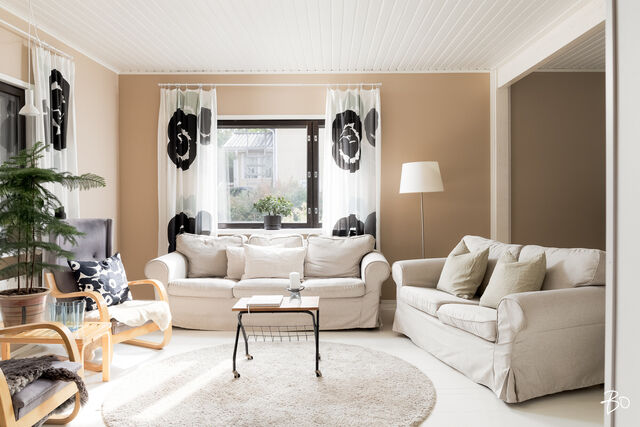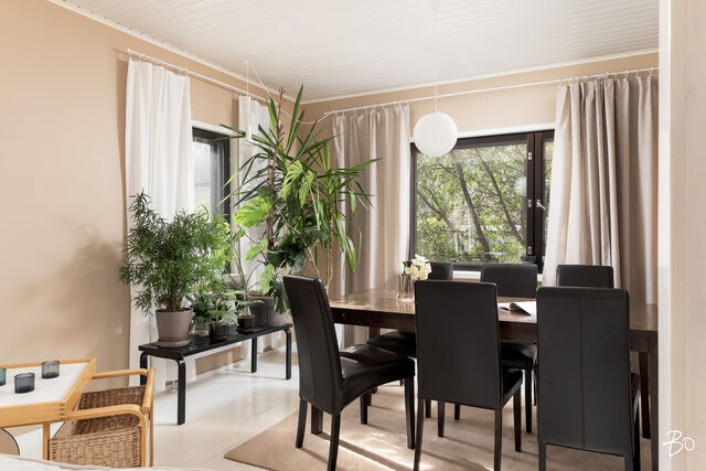 Etusivu / Keski-Suomi / Jyväskylä / Mattilankatu 47 1 / 1 Mattilankatu 47 Mattilanpelto, Jyväskylä | Omakotitalo | 4mh,oh,k,2wc,kph,s 229 000 € Velaton hinta 150,8 m2 Asuinpinta-ala 167,7 m2 Kokonaispinta-ala 1948 Rakennusvuosi Tervetuloa ihastumaan tähän viehättävään rintamamiestaloon, jossa yhdistyvät kodikas tunnelma ja modernit mukavuudet ainutlaatuisella tavalla! Asunnossa on tilavasti neljä makuuhuonetta, viihtyisä olohuone ja käytännöllinen keittiö, joka täyttää vaativankin kotikokin tarpeet. Sisätiloissa vallitsevat lämpimät sisustussävyt luovat rauhallisen ja kutsuvan ilmapiirin. Hyvin hoidettu kokonaisuus käsittää myös kaksi wc:tä, kylpyhuoneen ja saunan, jotka tuovat arkeen kaivattua toimivuutta. Makuuhuoneita talosta löytyy neljä. Kaksi yläkerrasta ja kaksi kellarikerroksesta. Käyttöönottovuodesta 1948 lähtien rakennusta on kunnostettu säännöllisesti, ja 2000-luvulla on tehty suuria remontteja, jotka tarkoittavat, että talo vastaa tämän päivän vaatimuksia. Talo seisoo omalla upealla tontillaan, jota koristaa kaunis piha-alue. Kesän parhaita hetkiä voi viettää pihan pergolassa. Rintamamiestalo henkii historiaa, mutta toistuvat kunnostukset, kuten kaukolämpöjärjestelmän lisääminen, tekevät siitä modernin ja energiatehokkaan. Kahden kerroksen talo tarjoaa perheelle runsaasti tilaa ja mahdollisuuksia mukauttaa tila elämäntilanteen mukaan. Mattilankatu 47 sijaitsee viehättävällä ja rauhallisella pientaloalueella, joka on erityisesti lapsiperheiden suosiossa. Lähistöltä löytyvät kaikki arjen palvelut ja koulut, mikä tekee alueesta ihanteellisen lapsiperheille. Jyväskylän keskustakin on helposti saavutettavissa, mikä täydentää sujuvaa arkea. Älä jätä tätä mahdollisuutta käyttämättä tule ja tutustu tähän ihastuttavaan kotiin paikan päällä!Veli-Matti Viljanmaaasuntomyyjä, BoAc, partner040 583 8723veli-matti.viljanmaa@bo.fi Kiinnostaako tämä kohde?Ota meihin yhteyttä tai jätä viesti Veli-Matti Viljanmaa asuntomyyjä, BoAc, partner 040 583 8723 veli-matti.viljanmaa@bo.fi Tutustu välittäjään Varaa aika kalenteristani RakennusRakennusvuosi (aloitettu)1948Käyttöönottovuosi1948RakennusmateriaaliPuuKattotyyppiHarjakattoKateTiilikateKaton kuntoUusittu 2023Asuinpinta-ala150,8 m2 (167,7 m2)Lisätietoja pinta-alastaPinta-alatiedot on saatu piirustuksista. Asuintilojen pinta-alaksi on ilmoitettu rakennuslupapiirutuksien mukainen huoneistoala (111,5m2), johon on lisätty kellarikerroksen asuinkäytössä olevat tilat. Muissa tiloissa ilmoitettu kellarikerroksen talouskellari, varasto ja tekninen tila.Kerrokset3Muut tilat16,9 m2Lämmitysjärjestelmän kuvausKaukoLämmön jakotapaVesikiertoinen patterilämmitys, vesikiertoinen lattialämmitys, uuni/takkaHuoneluku4mh,oh,k,2wc,kph,sKeittiön muut varusteetAstianpesukone, kiinteät valaisimet, liesituuletin / hormiLiesiKeraaminen liesiKeittiön työtasojen materiaaliLaminaattiKeittiön lattiamateriaaliLautaKeittiön seinien materiaaliMuuKylpyhuoneen varustusPesukoneliitäntä, kuivauskaappi, lattialämmitys, suihku, kiinteät valaisimet, asennettuja erikoisvarusteitaKylpyhuoneen lattiamateriaaliLaattaKylpyhuoneen seinämateriaaliKaakeliSaunaAsunnossa on saunaSaunan lattiamateriaaliLaattaSaunan seinämateriaaliPuuWC-tilojen kuvausVarustus: bidee-suihkuLukumäärä: 2Lattiamateriaalit: laattaSeinämateriaalit: kaakeli, maalattu, tapettiMakuuhuoneen kuvaus, lisätiedot ja varustusLukumäärä: 4Lattiamateriaalit: laatta, lautaSeinämateriaalit: kivi, muuOleskelutilojen kuvaus, lisätiedot ja varustusOlohuoneen lattian eriste purua Keittiön lattia eriste ekovillaLattiamateriaalit: lautaSeinämateriaalit: muuTulisijaPuuhellaTakkatiedotTakka, muuMuut säilytystilatVinttikomeroTehdyt korjaukset- Vuosina 20072008 taloon tehtiin perusteellinen remontti. Talo kytkettiin Alvan kaukolämpöverkostoon. Kaikki patterit ja niiden johdot uusittiin. Kellarikerrokseen rakennettiin kylpyhuone, sauna, vessa ja kaksi muuta huonetta sekä lattialämmitysjärjestelmä. Myös kellarikerroksen sisäpuolen seinät ja ikkunat uusittiin. Kaikki vesiputket ja viemärit uusittiin, myös talon ulkopuolelta. Keskikerroksen seinät uusittiin ja niiden taakse laitettiin ekovillaa. Keskikerroksen lattioista puolet uusittiin, toinen puoli maalattiin. Yläkerran yksi huone laajennettiin vintille, sen lattiaa madallettiin, lattiat ja kaikki seinät uusittiin. Yläkerran aula on uusittu: lattia, katto ja seinät. Yläkerran toinen huone vain maalattiin. Yläkertaan johtavan porraskäytävän katto ja seinät on uusittu, portaat on maalattu. - Talon seinien vierustalle ulkopuolelle rakennettiin veden keräävä salaoja järjestelmä sekä isommat kaivot jokaiseen nurkkaan. Vesi johdetaan noin kymmenen metrin päässä olevaan kaivoon, josta pumppu tarvittaessa pumppaa sen tontin rajalle (toisella puolella ei ole taloa). -Jääkaappi, pakastin ja kuivauskaappi hankittu 2007 -Liesi, pesukone ja astianpesukone 2020-luvun alkuvuosina. - Kattoremontti tehtiin 2022 (eliittikatot). Myös savupiippu pellitettiin. Vuoden 2024 kevättalvella laajennettu olohuonetta asentamalla palkin ja remontoimalla keskikerroksen. - Ulkolaudat maalattiin alun perin vaaleanpunaisella Uulalla. Alkuperäinen vihreä väri on kuitenkin tunkenut läpi. Laudat on kokonaan uusittu itäseinälle ja alle on laitettu myös lisäeristeitä sekä väli. Kesällä 2024 maalasimme eteläseinän Vinhalla, jonka pitäisi sopia Uulan päälle. (Yläkerran suunnitelma on, nykyisen vain maalatun huoneen kohdalle tulisi kaksi huonetta ottamalla vintit käyttöön. Lisäksi yläkertaankin tulisi vessa niin, että kattoa nostettaisiin ja seinään tulisi ikkuna. Viemärinputket on jo vedetty ylös.) 2025 molempien vessojen pöntöt uusittiin, samoin teknisen tilan harmaan veden pumppu. KuntoTyydyttäväLisätietoa kunnostaSähköt uusittu 2007EnergiatodistusKylläEnergialuokkaC2018 KiinteistötiedotKiinteistötunnus17900501230006Tyypp