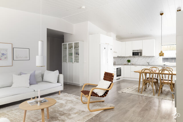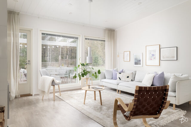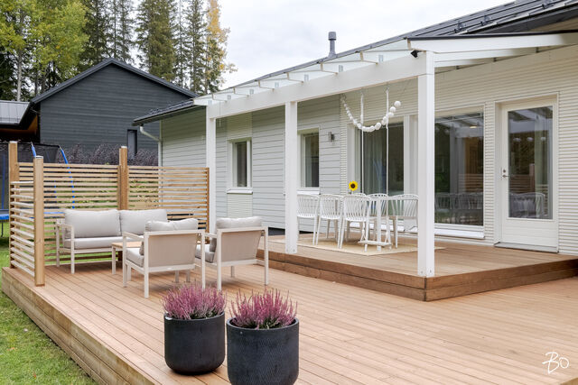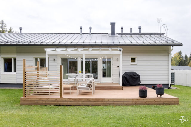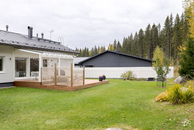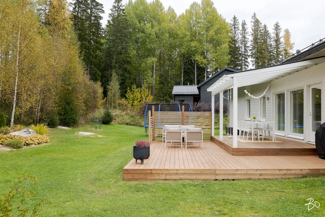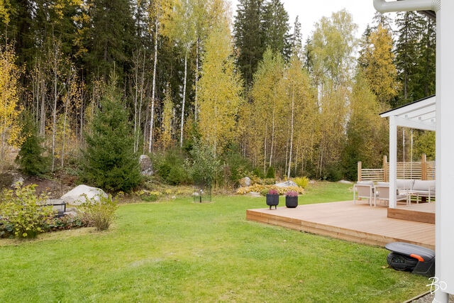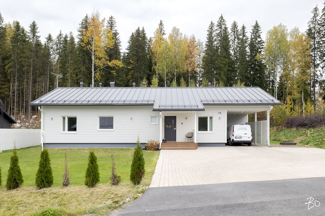 Etusivu / Keski-Suomi / Jyväskylä / Uunilinnuntie 15 1 / 1 Uunilinnuntie 15 Matinmäki, Jyväskylä | Omakotitalo | 5h,k,khh,k,s 365 000 € Velaton hinta 114,7 m2 Asuinpinta-ala 117,0 m2 Kokonaispinta-ala 2021 Rakennusvuosi Tyylikäs Desingtalo Matinmäestä!Tervetuloa tutustumaan modernin skandinaaviseen kotiin, jossa yhdistyy käytännöllisyys ja kodikkuus. Tässä vuonna 2021 valmistuneessa omakotitalossa on neljä makuuhuonetta, tilava olohuone ja tyylikäs keittiö, johon on kiva kokoontua viihtymään perheen ja ystävien kanssa. Omalla uloskäynnillä oleva, iso kodinhoitohuone helpottaa arjen sujuvuutta kaappeineen ja pöytätasoineen. Erityismaininnan ansaitsee iso arkieteinen, josta löytyy runsaasti säilytystilaa ja siellä on kätevä säilyttää esim. lastenvaunuja liukuoven takana. Talon pintamateriaalit ovat ajattoman vaaleat ja erittäin siistikuntoiset.Talo sijaitsee omalla, 1031 neliöisellä puutarhatontilla, joka rajoittuu takaosastaan puistoalueeseen. Tasaisella tontilla on lasten turvallista leikkiä sekä tulevan puutarhurin toteuttaa omia haaveitaan. Viihtyisä, yli 40 neliöinen terassi on osittain katettu tarjoten ihanan paikan kesäpäivien viettoon. Huoliteltu etupiha on laatoitettu ja siinä on tilaa pelailuun ja vieraiden autoille. Talon päädyssä on autokatos ja lämmin varasto. Tämän energiatehokkaan talon lämmitysmuotona toimii ilma-vesilämpöpumppu vesikiertoisella lattalämmityksellä. Asuminen on edullista, lämmityskulut ovat noin 111 e/kk.Matinmäen sijainti Jyväskylän halutulla pientaloalueella tarjoaa erinomaiset puitteet lapsiperheen arkeen sekä luonnossa liikkujille. Alueella on loistavat ulkoilumahdollisuudet. Lähellä sijaitsee puistoja ja kivoja lenkkipolkuja. Koulut ja päiväkodit ovat vain lyhyen matkan päässä ja kattavat Palokan palvelut löytyvät n.6,5 kilometrin päästä. Tilaa minulta oma esittelyaikasi ja tule paikan päälle kokemaan tämän kivan talon houkuttelevuus!Päivi Riuttamäkikiinteistönvälittäjä LKV, LVV, partner045 182 5863paivi@bo.fi Kiinnostaako tämä kohde?Ota meihin yhteyttä tai jätä viesti Päivi Riuttamäki kiinteistönvälittäjä LKV, LVV, partner 045 182 5863 paivi@bo.fi Tutustu välittäjään Varaa aika kalenteristani RakennusRakennusvuosi (aloitettu)2020Käyttöönottovuosi2021RakennusmateriaaliPuuKattotyyppiHarjakattoKatePeltikateKaton kuntoHyväAsuinpinta-ala114,7 m2 (117,0 m2)Lisätietoja pinta-alastaPinta-alatiedot on saatu rakennuslupapiirustuksista. Muihin tiloihin on laskettu tekninen tila. Asuintilojen pinta-alana on ilmoitettu rakennuspiirustusten mukainen huoneistoala. Talon kerrosala on 143 m2.Kerrokset1Muut tilat2,3 m2LämmitysVesikiertoinen lattialämmitys. Nibe, hyväLämmitysjärjestelmän kuvausIlmavesilämpöpumppuHuoneluku5h,k,khh,k,sKeittiön kuvaus, lisätiedot ja varustusTopikeittiöiden kalusteet, välitiassa Aluco-sisustuslevyt, messinkivetimet ja kaikki kodinkoneet Rosenlew.Keittiön muut varusteetAstianpesukone, kiinteät valaisimet, liesituuletin / hormiLiesiInduktioliesiKeittiön työtasojen materiaaliLaminaattiKeittiön lattiamateriaaliLaminaattiKeittiön seinien materiaaliMaalattuKylpyhuoneen varustusLattialämmitys, wc-istuin, suihku, kiinteät valaisimetKylpyhuoneen lattiamateriaaliLaattaKylpyhuoneen seinämateriaaliKaakeliSaunaAsunnossa on saunaSaunan kuvaus, lisätiedot ja varustusHarvian kivitorni, 9 kwSaunan lattiamateriaaliLaattaSaunan seinämateriaaliPuuWC-tilojen kuvausVarustus: lattialämmitys, bidee-suihkuLukumäärä: 2Lattiamateriaalit: laattaSeinämateriaalit: maalattuKodinhoitohuoneVarustus: pesukoneliitäntä, lattialämmitys, lattiakaivo, pöytätasoLattiamateriaalit: laattaSeinämateriaalit: maalattuMakuuhuoneen kuvaus, lisätiedot ja varustusLukumäärä: 4Lattiamateriaalit: laminaattiSeinämateriaalit: maalattu, tapettiOleskelutilojen kuvaus, lisätiedot ja varustusLattiamateriaalit: laminaattiSeinämateriaalit: maalattuMuut tilatArkieteinen (kiintokalusteet jää).TulisijaUuniseppien varaava takkaTakkatiedotTakkaKohteen kuvausKatettu terassi, terassia jatkettu v. 2024 (27 m2). Terassin koko n. 42 m2. Etupiha laatoitettu kesällä 2023, 173 m2. Pihavalaistus Pleid-kytkimellä.KuntoHyväEnergiatodistusKylläEnergialuokkaB2018 KiinteistötiedotKiinteistötunnus179-50-3-2TyyppiTonttiTontin tyyppiTasamaatonttiTontin koko1 031,00 m2Tontin omistusOmaPanttikirjat350 000,00 €Lisätietoja tontistaTasainen puutarhatontti, mansikkamaa, rapaerperia, kolme marjapensasta (karviainen, valkoheurukka ja mustaviinimarja), pionia, syyshortensiaa, kaksi omenapuuta ja tuija-aita.Tie perilleVesijohtoKunnanViemäriKunnanRakennusoikeus250,0 m2 AsumiskustannuksetSähkölämmitys111,00 €Kiinteistövero753,74 €Muut maksut / lisätietoa maksuistaKulutustiedot ovat vuodelta 2024 ja perustuvat neljän henkilön kulutukseen. Hybridiauto on ollut käytössä 9 kuukautta. HintaVelaton hinta365 000,00 €Myyntihinta365 000,00 € VapautuuSopimuksen mukaanMaksuehtoKäteinen. Sinua voisi kiinnostaa Asunnon hinta-arvio ja arviokäynti Asunnon hinta-arvio ja arviokäynti Mitä hinta-arvio maksaa tai miten arviokäyntiä varten kannattaa valmistautua? Katso vastauksemme usein kysyttyihin ky… Sneak Peek® Sneak Peek® Sneak Peek® -palvelumme on askeleen edellä! Löydä alueesi uusimmat ja upeimmat asunnot jo ennen kuin ne ilmestyvät as… Asuntovahti Asuntovahti Etsimässä uutta asuntoa? Aseta itsellesi Bo-asuntovahti. Saat tiedon heti, kun unelmiesi asunto tulee myyntiin. Bo Match Bo Match Kun asuntounelmat ja unelmien asunnot kohtaavat, syntyy Bo Match. Tutustu uudenlaiseen tapaan käydä asuntokauppaa.