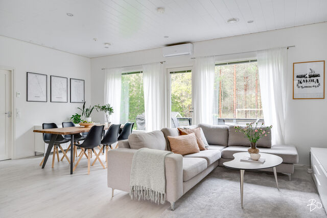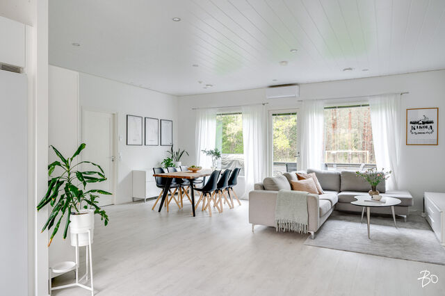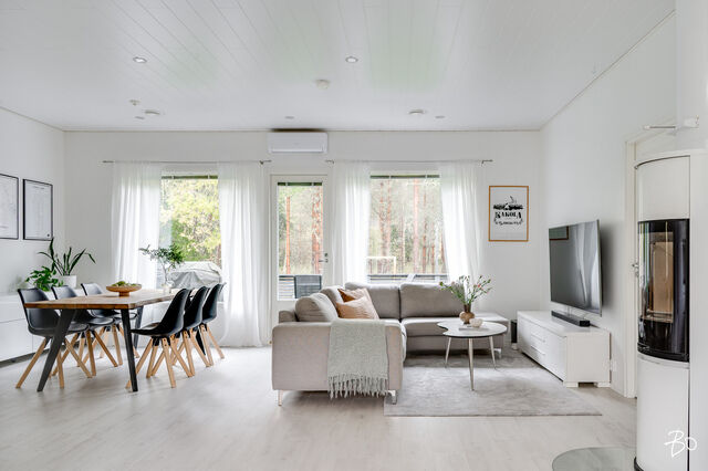 Etusivu / Varsinais-Suomi / Masku / Tanilanrinne 3 1 / 1 Tanilanrinne 3 Piuha, Masku | Omakotitalo | 4h,avok,kph/wc,khh,s,erill.wc 345 000 € Velaton hinta 108,0 m2 Asuinpinta-ala 124,0 m2 Kokonaispinta-ala 2018 Rakennusvuosi LÄMMINHENKINEN OMAKOTITALO MASKUSSAMaskun Piuhalla vuonna 2019 valmistunut yksitasoinen omakotitalo vapautuu joustavalla aikataululla uudelle asukkaalle. Tässä kodissa on kaunis vaaleansävyinen lattia, valkoinen keittiö ja marmorikuvioinen laatta wc:ssä. Kalusteilla ja tekstiileillä saat tuotua tarvittaessa lisää väriä tähän upeaan kokonaisuuteen. Huonekorkeus on normaalia isompi eli se tuo tilantuntua ja isoista ikkunoista luonnonvalo pääsee kauniisti sisään. Lämmönlähteenä vesikiertoinen lattialämmitys sekä ilmavesilämpöpumppu.Kodinhoitohuoneesta on käynti tulos takapihalle ja koiraperhe arvostaa varmasti läheisiä metsiä sekä peltomaisemia. Pihalta on ajomatkaa kuitenkin vain noin 15 minuutin verran Turun keskustaan ja toisaalta etätyötkin onnistuvat vaivatta valokuidun ansiosta. Takapihan puolella on iso terassi ja lapsille mukavasti leikkitilaa. Etupihalla on runsaasti tilaa jos haluat rakentaa autotallin tai katoksen, rakennusoikeutta tontilla on vielä hyvin jäljellä. Tontin suuruus on reilu 1400 m2 ja sen voi halutessaan lunastaa omaksi Maskun kunnalta. Myynti ja esittelytJenna Vuotinen LKV, kaupanvahvistaja0407041146 / jenna@bo.fi Kiinnostaako tämä kohde?Ota meihin yhteyttä tai jätä viesti Jenna Vuotinen kiinteistönvälittäjä LKV, kaupanvahvistaja, partner 040 704 1146 jenna@bo.fi Tutustu välittäjään Varaa aika kalenteristani RakennusRakennusvuosi (aloitettu)2018Käyttöönottovuosi2019RakennusmateriaaliPuuKattotyyppiMurrettu harjaKatePeltiAsuinpinta-ala108,0 m2 (124,0 m2)Lisätietoja pinta-alastaRakennuspiirustusten mukaan huoneistoala 108 m2 ja kerrosala 124 m2, ei tarkistusmitattuKerrokset1Muut tilat0,0 m2Lämmitysjärjestelmän kuvausIlmavesilämpöpumppuLämmön jakotapaVesikiertoinen lattialämmitysHuoneluku4h,avok,kph/wc,khh,s,erill.wcKeittiön kuvaus, lisätiedot ja varustusKaapistot, iso jääkappi, iso pakastin, induktioliesi, pyrolyysiuuni, mikro, integroitu astianpesukoneKylpyhuoneen varustusLattialämmitys, wc-istuin, suihkuKylpyhuoneen lattiamateriaaliLaattaKylpyhuoneen seinämateriaaliKaakeliSaunaAsunnossa on saunaWC-tilojen kuvausSeinä-wc. Seinämateriaalit: kaakeliKodinhoitohuoneVarustus: pesukoneliitäntä, lattialämmitysLattiamateriaalit: laattaMakuuhuoneen kuvaus, lisätiedot ja varustusLattioilla vinyyli, seinät maalattujaOleskelutilojen kuvaus, lisätiedot ja varustusLattioilla vinyyli, seinät maalattujaTulisijaKiertoilmatakkaTakkatiedotTakkaMuuta kauppaan kuuluvaaEtupihan puuvaja ja kylmä varasto, kasvihuone, hiekkalaatikko ja keinun runko, jätekatosKauppaan ei kuuluIrtaimisto, irralliset valaisimet, leikkimökki, keinut (voidaan myös neuvotella), kompostori, pimennysverhot, sähköauton latausasemaKohteen kuvausRakentajana Mäkelä Rakennus Oy.KuntoHyväEnergiatodistusKylläEnergialuokkaB2018Lisätietoja energiatodistuksestaVoimassa 28.4.2023 asti, tilataan uusi kuntotarkastuksen yhteydessä KiinteistötiedotKiinteistötunnus481-443-1-100TyyppiTilaTontin tyyppiTasamaatonttiTontin koko1 417,00 m2Tontin omistusVuokrattuTontin vuokra2 743,70 €Tontin vuokraajaMaskun kuntaPanttikirjat304 251,00 €Lisätietoja tontistaMaskun kunta Tontin lunastushinta noin 33 956 euroa (odotan tietoa kunnalta)Tie perilleVesijohtoKunnanViemäriKunnanRakennusoikeus, e-luku0.25 AsumiskustannuksetMuut maksut / lisätietoa maksuistaVesi- ja jätevesi kulutuksen mukaan, jäteastian tyhjennys noin 9e, valokuitu 39e/kk, kiinteistövero 324,62€ /v.2025, sähkönkulutus ilman auton lataussähköä noin 10 500 kWh/vuosi. Varainsiirtovero 3 % HintaVelaton hinta345 000,00 €Myyntihinta345 000,00 € VapautuuNoin 2 kk tai sopimuksen mukaanMaksuehtoKäteinen. Sinua voisi kiinnostaa Asunnon hinta-arvio ja arviokäynti Asunnon hinta-arvio ja arviokäynti Mitä hinta-arvio maksaa tai miten arviokäyntiä varten kannattaa valmistautua? Katso vastauksemme usein kysyttyihin ky… Sneak Peek® Sneak Peek® Sneak Peek® -palvelumme on askeleen edellä! Löydä alueesi uusimmat ja upeimmat asunnot jo ennen kuin ne ilmestyvät as… Asuntovahti Asuntovahti Etsimässä uutta asuntoa? Aseta itsellesi Bo-asuntovahti. Saat tiedon heti, kun unelmiesi asunto tulee myyntiin. Bo Match Bo Match Kun asuntounelmat ja unelmien asunnot kohtaavat, syntyy Bo Match. Tutustu uudenlaiseen tapaan käydä asuntokauppaa.