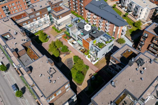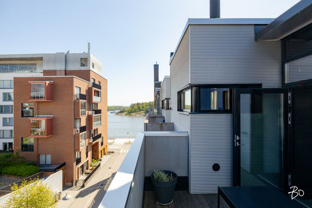 Etusivu / Uusimaa / Helsinki / Arcturuksenkatu 33 1 / 1 Arcturuksenkatu 33 Kalasatama, Helsinki | Omakotitalo | Oh, k, 2-3 mh, s, 2 kph, 2 wc, khh, vh, 2 terassia, parveke, at, 2 varasto 1 849 000 € Velaton hinta 183,0 m2 Asuinpinta-ala 227,5 m2 Kokonaispinta-ala 2016 Rakennusvuosi Tämä kerrassaan upea townhouse sijaitsee aivan Kalasataman sydämessä. Vuonna 2016 valmistunut Loft-henkinen asunto hurmaa ainutlaatuisilla materiaaleillaan ja sisutuksen yksityiskohdilla. Tämä koti sijaitsee halutulla alueella, jossa koulut ja päiväkodit ovat lähellä ja hyvät liikenneyhteydet takaavat sujuvan arjen. Tämä on kohde, joka täytyy nähdä ja kokea omin silmin paikan päällä, sillä tilojen avaruutta ja arkkitehtonista kokonaisuutta ei millään saa vangittua valokuviin. Kodin sydän on avara olohuone, joka yhdessä tyylikkään avokeittiön ja ruokailutilan kanssa muodostaa upean kokonaisuuden. Suuret ikkunat tuovat tilaan runsaasti luonnonvaloa. Näkymät olohuoneesta avautuvat omalle aidatulle sisäpihalle, joka kesäisin toimii kuin toisena olohuoneena. Kirsi Valantin suunnittelema avokeittiö, jossa tummanharmaat kaapistot ja musta graniittitaso yhdistyvät kauniisti rouheisiin betoniseiniin, on täydellinen paikka yhteisille ruokahetkille ja seurusteluun. Laadukkaat kodinkoneet ja runsaat laskutilat takaavat, että ruoanlaitto on nautinnollista ja tässä keittiössä viihdytään.Makuuhuoneet sijaitsevat seuraavassa kerroksessa, tarjoten asukkailleen rauhaa ja yksityisyyttä. Päämakuuhuoneen yhteydessä on vaatehuone, joka lisää asumismukavuutta. Päämakuuhuoneesta on käynti parvekkeelle, josta avautuvat maisemat suojaiselle sisäpihalle. Toisessa makuuhuoneessa on ranskalainen parveke. Mikäli uusi omistaja tarvitsee enemmän makuuhuoneita käyttöönsä, tai vaikkapa rauhallisen työhuoneen lisää, on päämakuuhuone helposti jaettavissa kahdeksi huoneeksi alkuperäisen suunnitelman mukaisesti. Arkielämä on sujuvaa kahdessa asuinkerroksessa. Talon yläkerrassa sijaitseva sauna- ja spa-osasto tarjoaa todellista luksusta arkeen. Täällä voit rentoutua porealtaassa, rentoutua sähkö- tai puukiukaan löylyissä ja sen jälkeen vilvoitella ja viettää vapaahetkiä kattoterassilla. Nämä yläkerran tilat ovat kuin pieni pala kesämökkiä keskellä Helsinkiä. Kattoterassi ja parvekkeet tarjoavat erinomaiset puitteet ulkoilmaelämään ja sosiaalisiin hetkiin perheen ja ystävien kesken.Upean ja uniikin arkkitehtuurin lisäksi myynnissä oleva talo tarjoaa modernit mukavuudet, kuten vesikiertoisen lattialämmityksen, koneellisen ilmanvaihdon lämmön talteenotolla ja valokuituyhteydet. Myös autoilijaa hemmotellaan täällä toden teolla. Autot saa kätevästi parkkiin oman asunnon alla olevaan kahden auton talliin, josta on suora yhteys taloon sisälle.Merellinen sijainti, palvelut ja mm. Mustikkamaan läheisyys tekee alueesta erityisen houkuttelevan perheelle tai pariskunnalle, jotka arvostavat kaupunkielämän mukavuuksia, mutta haluavat nopean pääsyn luontoon ja merellisille ulkoilureiteille. Tervetuloa tutustumaan tähän uniikkiin ja kauniiseen kotiin!Kysy lisätietoja ja varaa oma esittelyaikasi:Pekka Kujala, 040 832 8888, pekka@bo.fitaiRaya Virtanen, 040 820 7717, raya@bo.fiONKO ASUNNON MYYNTI AJANKOHTAISTA?Varaa minut alla olevan linkin kautta maksuttomalle arviokäynnille:https://bo.fi/henkilo/pekka-kujala/#kalenterihttps://bo.fi/henkilo/raya-virtanen/#kalenteri Kiinnostaako tämä kohde?Ota meihin yhteyttä tai jätä viesti Pekka Kujala kiinteistönvälittäjä LKV, partner 040 832 8888 pekka@bo.fi Tutustu välittäjään Varaa aika kalenteristani RakennusRakennusvuosi (aloitettu)2015Käyttöönottovuosi2016RakennusmateriaaliPuu, betoniRakennusmateriaalien kuvausBetonirakenteinen talo, ylimmän kerroksen kaksi ulkoseinää sekä katto puurakenteiset. Rakennus perustettu paalujen varaan.KattotyyppiTasakattoKateHuopaAsuinpinta-ala183,0 m2 (227,5 m2)Lisätietoja pinta-alastaTarkemittauksen (Talokatsastus 11.9.2024) mukaan on asuinpinta-ala yhteensä 183 m2. (1. krs 24 m2, 2.krs 61 m2, 3.krs 68m2, 4. krs 29,5m2) Muut tilat 44,5 m2 (varasto ja autotalli).Kerrokset4Muut tilat44,5 m2Lämmitysjärjestelmän kuvausKaukoLämmön jakotapaVesikiertoinen lattialämmitysHuonelukuOh, k, 2-3 mh, s, 2 kph, 2 wc, khh, vh, 2 terassia, parveke, at, 2 varastoKeittiön kuvaus, lisätiedot ja varustusTyylikäs tummanharmaa Kirsi Valantin suunnittelema avokeittiö mustine graniittitasoineen toimii täydellisesti betonipintaisten seinien ja lattioiden kanssa. Suuri saareke on keittiön katseenvangitsija, sen ympärille on mukava kokoontua seurustelemaan ruuanlaiton yhteydessä. Tasokkaiden ja monipuolisten kodinkoneiden ja runsaiden laskupintojen ansiosta työskentely keittiössä on sujuvaa. Keittiön yhteydessä on tilaa reilunkokoiselle ruokapöydälle.Keittiön muut varusteetMikroaaltouuni, astianpesukoneLiesiInduktioliesi, erillisuuniKeittiön lattiamateriaaliBetoniPesutilojen kuvaus, lisätiedot ja varustusToinen kylpyhuoneista sijaitsee makuuhuoneiden yhteydessä ja toinen yläkerrassa olevan saunan yhteydessä. Makuuhuoneiden yhteydessä oleva kylpyhuone on tilava, sen yhteydessä on liukuovella erotettuna iso erillinen wc-tila. Kylpyhuoneen seinät on päällystetty pehmeän sävyisellä mikrobetonilla ja lattia on sävyyn sopivaa keraamista laattaa. Yläkerrassa saunan yhteydessä on tyylikäs spa-osasto, jossa on suihkun lisäksi myös poreallas. Spa-osastolta on käynti isolle kattoterassille vilvoittelemaan ja nauttimaan maisemista. Myös täällä seinät on pinnoitettu mikrobetonilla ja lattiassa on väriin sointuvat keraamiset laatat.Kylpyhuoneen lattiamateriaaliLaattaSaunaAsunnossa on saunaSaunan kuvaus, lisätiedot ja varustusYläkerran sauna, kylpyhuone laudoitettuine kulkureitteineen ja suurine terasseineen antaa vaikutelman kuin pieni pala kesämökkiä olisi tuotu keskelle Helsinkiä. Tummaksi petsattu sauna on tilava ja se lämpiää hybridikiukaan avul