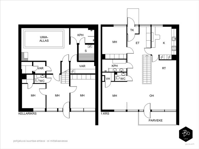 Etusivu / Uusimaa / Helsinki / Gunillankuja 2 1 / 1 Gunillankuja 2 Laajasalo, Helsinki | Rivitalo | 6h+k+sauna (yj. mukaan 6 h + k + sauna) 419 000 € Velaton hinta 201,5 m2 Asuinpinta-ala 725,40 €/kk Hoitovastike 1974 Rakennusvuosi Seuraava esittely: 02.11.2025 klo 12.00-12.30 Tervetuloa Gunillankujalle - tämä kodikas kaksikerroksinen rivitaloasunto hurmaa sinut heti sisään tultaessa valtavilla koko seinän levyisillä ikkunoillaan, jotka tulvivat valoa sisätiloihin ja tarjoavat upeat näkymät ympäröivään luontoon.Tässä asunnossa on paljon avaraa tilaa, neljä erillistä makuuhuonetta ja selkeästi suunnitellut huoneet, jotka soveltuvat erinomaisesti monen kokoisille perheille. Keittiö sekä kylpyhuoneet ja WC:t on joitakin vuosia sitten remontoitu, mikä antaa modernin ja raikkaan ilmeen koko asunnolle. Olohuoneen/ruokailutilan kaunis tiiliseinä tuo tilaan lämpöä ja persoonallista ilmettä, ja oma uima-allasosasto sekä takka tarjoavat mahdollisuuden viihtyisään oleiluun ja rentoutumiseen omassa kodissa. Kaksi erillistä vaatehuonetta, sekä alakerran kodinhoitohuoneena toimiva tila tarjoavat runsaasti säilytysmahdollisuuksia, sekä toimivuutta suuremmankin perheen arkeen.Asunnon pihalta avautuu kaunis metsänäkymä, joka tuo luonnon rauhaa arkeen. Taloyhtiön suojaisa pihapiiri tarjoaa myös runsaasti tilaa lasten leikkeihin ja yhteisölliseen ajanviettoon naapuruston kesken. Huoneiston edessä on oma parkkipaikka autolle.Taloyhtiöön on vuosien saatossa tehty useita merkittäviä kunnostuksia. Tulevia remontteja suunnitellaan ja tehdään järjestelmällisesti yhtiön arvon ja kunnon säilyttämiseksi. Tämä varmistaa myös asukkailleen miellyttävän asuinympäristön pitkälle tulevaisuuteen.Laajasalon saari on lapsiperheiden rakastama kotisaari, jossa on hyvä olla ja elää. Alueen harrastusmahdollisuudet aktiiviselle perheelle ovat erinomaiset ja seuratoiminta näiden puitteissa monipuolista. Laajasalon alueella on useita harraste- ja liikuntatiloja, uimarantoja, sekä upeat ulkoilumaastot ja merenrannan rantareitit, jotka lähtevät lähes kotiovelta. Lähistöltä, aivan kävelymatkan päästä, löytyvät koulut ja päiväkodit, ja tulevaisuudessa myös uusi ruotsinkielinen alakoulu sijoittuu alueelle. Kattavat päivittäispalvelut ovat kauppakeskus Saaressa, reilun kilometrin päässä.Linja-auto kulkee taloyhtiön välittömässä läheisyydessä vieden niin Saaren kauppakeskukseen kuin Herttoniemen metroasemalle hyvien jatkoyhteyksien äärelle. Tulevien Kruunusiltojen ansiosta liikenneyhteydet kantakaupunkiin paranevat entisestään, kun uusi pikaraitiotie Laajasalosta Hakaniemeen avataan 2027 aikana.Lämpimästi tervetuloa tutustumaan!Pia Lundenbergmyyntipäällikkö, asuntomyyjä, KED, partner040 522 1967pia.lundenberg@bo.fi Kiinnostaako tämä kohde?Ota meihin yhteyttä tai jätä viesti Pia Lundenberg myyntipäällikkö, asuntomyyjä, KED, partner 040 522 1967 pia.lundenberg@bo.fi Tutustu välittäjään Varaa aika kalenteristani HuoneistoOsakkeet81-100HallintamuotoAsunto-osakeyhtiöHuoneluku6h+k+sauna (yj. mukaan 6 h + k + sauna)Kerros/Kerroksia1-2/2Asuinpinta-ala201,5 m2Muut tilat0,0 m2Lisätietoja pinta-alastaMainittu pinta-ala saattaa tämän ikäisessä kohteessa (rakennettu ennen vuotta 1992) poiketa olennaisesti nykyisten standardien mukaan laskettavasta asuinpinta-alasta. Todellinen asuinpinta-ala voi tarkistusmittauksen jälkeen olla yhtiöjärjestyksessä, isännöitsijäntodistuksessa ja esitteessä mainittua pienempi tai suurempi. Pinta-alaa ei ole tarkistusmitattu. Isännöitsijäntodistuksen mukainen. Yhtiöjärjestyksen mukainen.NäkymätParvekenäkymät vehreälle takapihalle,ParvekeUlostyönnettyParvekkeen ilmansuuntaEteläKeittiön kuvaus, lisätiedot ja varustusKeittiö on uusittu 12/2007, työskentelytasot graniittia. Keittiön aputason yhteydessä saareke, joka tasot laminaattia.LiesiInduktioliesi, erillisuuniKeittiön työtasojen materiaaliKivi, laminaattiKeittiön lattiamateriaaliLaminaattiKeittiön seinien materiaaliMaalattuPesutilojen kuvaus, lisätiedot ja varustusYläkerran kylpyhuone uusittu v. 2008, allaskaapistossa kaksi allasta, kivitaso graniittia. Kattoikkuna. Alakerran kylpyhuone kahdella suihkulla.Kylpyhuoneen varustusSuihkuseinä, suihku, kiinteät valaisimetKylpyhuoneen lattiamateriaaliLaattaKylpyhuoneen seinämateriaaliKaakeliWC-tilojen kuvausErillis-WC:t yläkerrassa ja alakerrassa. Molemmat uusittu v. 2008, varusteina peili sekä allaskaapisto jossa graniittitasot. Seinät osin kaakelia, osin maalattu. Varustus: bidee-suihkuLukumäärä: 2Lattiamateriaalit: laattaSeinämateriaalit: maalattuKodinhoitohuoneVarustus: pesukoneliitäntäLattiamateriaalit: muoviSeinämateriaalit: maalattuSaunan lattiamateriaaliLaattaSaunan seinämateriaaliPuuMakuuhuoneen kuvaus, lisätiedot ja varustusMolemmissa yläkerran makuuhuoneissa tammiparkettilattia, osin tiiliseinää joka maalattu, katto paneloitu. Alakerran makuuhuoneissa mosaiikkiparketti, sekä osin tiiliseinää, joka maalattu, katto paneloitu.Lukumäärä: 4Lattiamateriaalit: parkettiSeinämateriaalit: maalattu, puuOleskelutilojen kuvaus, lisätiedot ja varustusOlohuoneen lattia tammiparkettia, osin tiiliseinää, joka maalattu, katto paneloitu.Lattiamateriaalit: parkettiSeinämateriaalit: maalattuKuntoTyydyttäväTakkatiedotTakka Kiinteistö- ja yhtiötiedotYhtiön nimiAsunto Oy Gunillankuja 2Tontin omistusVuokrattuTontin koko18 607,50 m2Tontin vuokraajaHelsingin kaupunkiTontin vuokrasopimus päättyy31.12.2030Tontin vuokra42 074,68 €Käyttöönottovuosi1974RakennusmateriaaliPuu, tiili, betoniKattotyyppiTasakattoKateHuopakateLämmitysjärjestelmäKaukoEnergiatodistusKylläLisätietoja energiatodistuksestaViimeinen voimassaolopäivä 4.10.2033 E-luku 246EnergialuokkaE2018Tehdyt korjaukset ja remontit2025 Antenniverkon kunnostus, sarjoitettiin lukitus uudelleen Abloyn Easy-avaimille 2022-2024 Julkisivuremontti, parvekkeiden peruskorjaus ja lämpö- sekä vesij
