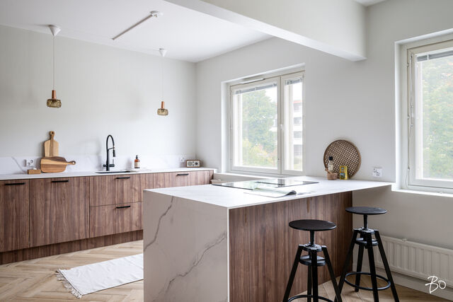 Etusivu / Pohjois-Savo / Kuopio / Valkeisenkatu 12 1 / 1 Valkeisenkatu 12 Niirala, Kuopio | Kerrostalo | 4h+k+kph+p (yht. jär. muk. 5h+k) 289 000 € Velaton hinta 107,0 m2 Asuinpinta-ala 620,00 €/kk Hoitovastike 1961 Rakennusvuosi Täydellisesti remontoitu koti Valkeisenlammen kauneimmilla näkymilläTämä 107m2 läpitalon huoneisto hurmaa heti ensi hetkestä. Toisen kerroksen kotiin saavutaan joko portaita tai hissiä käyttämällä, jossa jokainen pinta, jokainen yksityiskohta kertoo laadusta ja harkitusta tyylistä. Kodin kaikki pinnat on remontoitu kokonaisvaltaisesti, ja uunituore kylpyhuone valmistui nyt lokakuussa 2025. Kolme makuuhuonetta ja tilava olohuone mahdollistaa perheelle arjessakin toimivan kokonaisuuden ja iso ikkuna kehystää näkymän suoraan rauhoittavalle Valkeisenlammelle. Pähkinän- sävyinen keittiö saarekkeineen ja aamiaiskaappeineen toimii kodin sydämenä ja on materiaalivalinnoiltaan kuin suoraan sisustuslehden sivuilta. Lattiat on kauttaaltaan trendikästä kalanruotokuvioista vinyyliä ja tyylikkäiden pintojen lisäksi kodissa on uusittu mm. kaikki sähköjohdot. Kotiin on asennettu bonuksena Plejd- valaistusjärjestelmä, joka mahdollistaa valojen ohjauksen suoraan omasta puhelinsovelluksesta.Parvekkeelta avautuu esteetön puistomaisema Valkeisenlammen ylle. Kaikki palvelut, kahvilat ja ulkoilumahdollisuudet ovat kävelyetäisyyden päässä. Tämä koti on sinulle, joka etsit vaivattomuutta, tyyliä ja sijaintia, jossa voi nauttia kaupungin sykkeestä ja luonnonläheisyydestä samanaikaisesti.Valmis muuttamaan? valmis hurmaantumaan? Nähdään esittelyssä.Laura AiraksinenLKV, LVV, KiAT, partner0405515800Bo LKV Kiinnostaako tämä kohde?Ota meihin yhteyttä tai jätä viesti Laura Airaksinen kiinteistönvälittäjä LKV, LVV, KiAT, partner 040 551 5800 laura.airaksinen@bo.fi Tutustu välittäjään Varaa aika kalenteristani HuoneistoOsakkeet6331-6726HallintamuotoAsunto-osakeyhtiöHuoneluku4h+k+kph+p (yht. jär. muk. 5h+k)Kerros/Kerroksia2/4Asuinpinta-ala107,0 m2Muut tilat0,0 m2Lisätietoja pinta-alasta Isännöitsijäntodistuksen mukainen. Yhtiöjärjestyksen mukainen. Toimeksiantajan ilmoittama.NäkymätParvekkeen näkymät Valkeisenlammelle!ParvekeUlostyönnettyHissiTaloyhtiössä on hissiKeittiön kuvaus, lisätiedot ja varustusV. 2023 Keittiö uusittu runkoineen ja kodinkoneineen. RT-kaluste. Varustus: Aamiaiskaappi, indukioliesi integroidulla liesituulettimella (Siemens) erillisuuni (Siemen), integroitu astianpesukone (Gram) integroitu jääkaappi (Gram) tasot: kompaktilaminaatti Keittiön lattiamateriaaliVinyyliKeittiön seinien materiaaliMaalattuPesutilojen kuvaus, lisätiedot ja varustusKylpyhuone remontti valmistunut 10/2025. Epäsuoravalaistus. Varustus: suihku, suihkuseinä, peilikaappi, allaskaappi, pesukoneliitäntä, kiinteä kaapisto, wc-istuin, pyyhekuivainKylpyhuoneen lattiamateriaaliLaattaKylpyhuoneen seinämateriaaliKaakeliMakuuhuoneen kuvaus, lisätiedot ja varustusLukumäärä: 3Lattiamateriaalit: vinyyliSeinämateriaalit: maalattuOleskelutilojen kuvaus, lisätiedot ja varustusLattiamateriaalit: vinyyliSeinämateriaalit: maalattuSeinämateriaalitSeinät maalattu 2023LattiamateriaalitVinyylilattia uusittu 2023Muuta kauppaan kuuluvaaKiinteät kaapistot, kiinteät valaisimet, olemassa olevat sälekaihtimet, plejd-valaistusjärjestelmä, eteisen kalusteet, vaatehuoneen sovella hyllyt, irtohylly ja tangot, eteisen mattoMuutostyöt huoneistossaKaikki sähköjohdot uusittu 2025KuntoHyvä Kiinteistö- ja yhtiötiedotYhtiön nimiAsunto Oy Kuopion Valkeisenkatu 10-12Tontin omistusVuokrattuTontin koko3 174,80 m2Tontin vuokraajaKuopion kaupunkiTontin vuokrasopimus päättyy31.12.2045Tontin vuokra35 374,00 €Käyttöönottovuosi1961RakennusmateriaaliTiili, betoniKattotyyppiHarjakattoKatePeltikateLämmitysjärjestelmäKaukoEnergiatodistusKylläEnergialuokkaE2018Tehdyt korjaukset ja remontitPalovaroittimet uusittu huoneistoihin ja yleisiin tiloihin 10-vuoden pattereilla 2025, Ullakon ja pyörävaraston tyhjennys tarpeettomista tavaroista, A1 ja A7 viemärivuoto vahingonkorvaus ja viemärin haaran korjaus 2024, Huoneistojen kylpyhuoneiden ja keittiöiden alakaapistojen kuntokartoitus 2023, Vesikattoremontti 2022, Piharemontti, salaojat 2021-2022, sokkeleiden pinnoitus 2021, Huoneiston B 16 kosteusvauriokorjaus 2020 ja B2 ja B7 2021. B2 sisäilmakorjaus 2021, kattilahuoneen purku 2021, sähkösaneerauksen maanalaiset valmistelevat työt 2021, Vesikatteiden korjauksia 2020 ja 2021. Viemäreiden peruskorjaus sukittamalla (niiltä osin mitä oli korjaamatta) 2019. Räystäskourujen saattolämmitys (kadun puoli) 2019. Pystyviemäreiden peruskorjauksen suunnittelu 2018. Pohjakerroksen porrashuoneiden lattialaattojen uusinta 2017. Ilmanvaihtokanavien puhdistus 2016. Hissien asennus jälkiasennuksena 2016. Kulkusiltojen asennus vesikatoille 2015. Huoneiston B 15 kylpyhuoneen viemäri pinnoitettu 2015. A-talon (B-talon vastaisen) päädyn sadevesien ohjaus 2014. Huoneiston B 6 linjan keittiön pystyviemäri on uusittu 2014. Huoneistojen A 13 ja A 14 kylpyhuoneiden viemärit pinnoitettu 2014. Lämmönsiirrin laitteiden uusinta 2013. Julkisivujen mineriittilevyjen ja eristyksen uusiminen parvekeseiniltä 2012. Parvekkeiden korjaus ja sisäänkäyntien katokset 2012. Viemäreiden huuhtelu 2009. B-talon lumiesteet uusittu 2009. A1-A2 huoneiston lattian oikaisu 2009. Jätekatos 2009. Väestönsuojan kunnostus 2009. Seuraavien huoneistojen kylpyhuoneiden viemärit uusittu: A1, A2, A3, A4, A8, A9, A12, A18, A19, B1, B2, B3, B4, B6, B16, B17, B19 2008-2009. Pohjaviemärien uusinta (+ 7 kylpyhuonetta remontoitu täysin, lattiat, seinät) 2008. Pohjakerroksen lämpöjohtojen uusinta 2008. Käyttövesijohtojen uusinta 2008. B-talon kylmäkellarin kompressori 2007. Huoneiston A3 viemäri + kph uusittu, vesivahinkokorjaus 2007. Vesikatteen kunnostus 2007. Iv-kanavien puhdistus 2005. Linjasäätö ja patteriventtiilien uusinta 2004. Ikkunoiden ja parvekeovien uu
