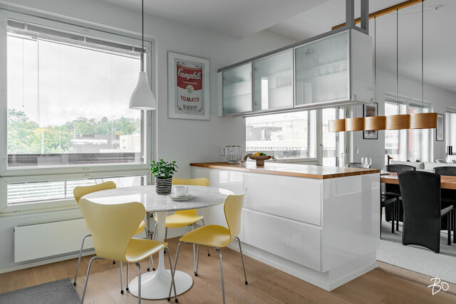 Etusivu / Varsinais-Suomi / Turku / Puistokatu 1a 1 / 1 Puistokatu 1a Keskusta, Turku | Kerrostalo | 4-5h+k+kph+s+lasitettu parveke (Yhtiöjärjestyksen mukaan 4-5 h+k+s) 795 000 € Velaton hinta 155,5 m2 Asuinpinta-ala 637,55 €/kk Hoitovastike 2012 Rakennusvuosi Ylimmän kerroksen arvohuoneisto upeat maisemat ja avarat tilat.Tervetuloa tutustumaan tähän upeaan ylimmän kerroksen kotiin, josta avautuvat hulppeat näkymät niin Aurajoelle kuin Kakolan mäelle. Tämä ainutlaatuinen asunto tarjoaa tilaa, tyylikkyyttä ja käytännön mukavuuksia vaativaan makuun.Huoneiston sydän on keittiön, ruokailutilan ja suuren oleskelutilan muodostama yhtenäinen ja avara kokonaisuus. Täällä valo kulkee esteettä ja näkymät ulottuvat molemmille puolille taloa. Suuret ikkunat päästävät luonnonvalon kauniisti sisään ja maisemat tarjoavat upeat puitteet elämiseen. Tämä tila sopii täydellisesti niin arjen yhteisiin hetkiin kuin suurempien juhlien järjestämiseen.Lasitettu parveke, joka ulottuu koko asunnon leveydelle, tarjoaa täydellisen paikan nauttia Aurajoen maisemista ympäri vuoden. Parvekkeelta voit ihailla sekä rauhallista jokimaisemaa, että Kakolan mäen luonnonkauneutta.Asunnossa on myös kesän kuumia päiviä ajatellen asennettu viilennysjärjestelmä, joka tuo merkittävää asumismukavuutta helteillä ja tekee tästä kodista viihtyisän kaikissa sääolosuhteissa.Kolme tilavaa makuuhuonetta sijaitsevat rauhallisen sisäpihan puolella ja tarjoavat runsaasti tilaa ja omaa rauhaa. Jokaisessa huoneessa on tilavat vaatekaapistot, ja eteisen suuret liukuovikaapistot lisäävät säilytysratkaisuja. Rentoutumiseen löytyy tyylikäs saunaosasto. Lisäksi käytännöllinen kodinhoitohuone helpottaa arjen sujumista. Wc-tiloja on kaksi, joista toinen sijaitsee kodinhoitohuoneessa ja toinen eteistilan yhteydessä.Ylimmän kerroksen asuminen tuo mukanaan rauhan sekä yksityisyyden ja asunnosta avautuvat upeat maisemat. Halutessasi voit hankkia myös erillisen autotallin yhtiön parkkihallista, joka tuo lisämukavuutta säilytystilojen ja liikkumisen suhteen. Mahdollisuus myös vuokrata hallipaikka. Vuonna 2012 valmistunut taloyhtiö sijaitsee omalla tontilla ja sen suojaisa, hyvin hoidettu piha-alue tuo lisämukavuutta asumiseen. Keskeinen sijainti tarjoaa kaupungin parhaat palvelut, ravintolat, kahvilat ja kulttuurikohteet aivan käden ulottuvilla eikä jokirannan viehättävää kävelyreittiä kannata unohtaa.Tämä upea koti on täydellinen yhdistelmä tilaa, tyylikkyyttä ja henkeäsalpaavia maisemia. Varaa oma esittelyaikasi ja tule kokemaan tämä kaunis koti paikan päällä!Lisätiedot ja esittelyt:Miika Salmelap. 0500 533 582miika.salmela@bo.fiJohanna Lipponenp. 0400 561 315johanna.lipponen@bo.fiAutamme mielellämme myös sinua oman kotisi myynnissä ja asuntounelmiesi toteuttamisessa!Ota yhteyttä ja saat arvion asunnostasi sekä kuulla yksilöllisistä palveluistamme juuri sinun asuntosi myyntiin, kanssani saat koko Bo:n ainutlaatuisen myyntikonseptin käyttöösi, mikä mahdollistaa nopeamman myyntiajan sekä parhaan mahdollisen hinnan Kiinnostaako tämä kohde?Ota meihin yhteyttä tai jätä viesti Miika Salmela asuntomyyjä, partner 0500 533 582 miika.salmela@bo.fi Tutustu välittäjään HuoneistoOsakkeet76075-80284HallintamuotoAsunto-osakeyhtiöHuoneluku4-5h+k+kph+s+lasitettu parveke (Yhtiöjärjestyksen mukaan 4-5 h+k+s)Kerros/Kerroksia6/6Asuinpinta-ala155,5 m2Muut tilat0,0 m2Lisätietoja pinta-alastaPinta-ala ei ole tarkistusmitattu. Yhtiöjärjestyksen mukainen. Isännöitsijäntodistuksen mukainen.NäkymätUpea koko huoneiston levyinen parveke AurajokinäkyminParvekeLasitettuHissiTaloyhtiössä on hissiKeittiön kuvaus, lisätiedot ja varustusHyvin varusteltu keittiö, mistä löytyy erillinen jääkaappi ja pakastin, viinikaappi, integroitu mikroaaltouuni, erillisuuni, induktioliesi, liesituuletin/suodatin ja integroitu astianpesukone. Keittiön tasot lieden ympärillä ovat kivipuristetta ja saarekkeen taso puinen. Keittiön lattiamateriaaliParkettiKeittiön seinien materiaaliMaalattuPesutilojen kuvaus, lisätiedot ja varustusPesualtaat ja allaslaatikosto.Kylpyhuoneen varustusLattialämmitys, wc-istuin, suihku, peiliKylpyhuoneen lattiamateriaaliLaattaKylpyhuoneen seinämateriaaliKaakeliWC-tilojen kuvausEteisessä erillinen wc. Toinen wc kodinhoitohuoneen yhteydessä.Varustus: lattialämmitysLukumäärä: 1Lattiamateriaalit: laattaSeinämateriaalit: kaakeliKodinhoitohuoneTilava khh kylpyhuoneen vieressä. Varustus: pesukoneliitäntä, pesuallas, pyykkikaapit, pöytätasoLattiamateriaalit: laattaSeinämateriaalit: kaakeliSaunan kuvaus, lisätiedot ja varustusHuoneistossa oma ikkunallinen sauna.Saunan lattiamateriaaliLaattaSaunan seinämateriaaliPuuMakuuhuoneen kuvaus, lisätiedot ja varustusKaikissa makuuhuoneissa vaatekaapistot.Lukumäärä: 3Lattiamateriaalit: parkettiSeinämateriaalit: maalattuOleskelutilojen kuvaus, lisätiedot ja varustusOlohuoneen päädyssä kirjastohuone, joka nyt yhdistetty osaksi olohuonetta.Lattiamateriaalit: parkettiSeinämateriaalit: maalattuKauppaan ei kuuluIrtain.KuntoHyvä Kiinteistö- ja yhtiötiedotYhtiön nimiAsunto Oy RannankulmaTontin omistusOmaTontin koko1 779,00 m2Käyttöönottovuosi2012RakennusmateriaaliBetoniKattotyyppiTasakattoKateBitumihuopaLämmitysjärjestelmäKaukoEnergiatodistusKylläLisätietoja energiatodistuksestaEnergiatodistuksen voimassaolopäivä on umpeutunut 12.06.2024. Yhtiöllä ei ole olemassa voimassa olevaa energiatodistusta.EnergialuokkaE2013Tehdyt korjaukset ja remontitRakennus 2, 2012 (Puistokadun puolella): 2024: Takuukorjauksia (parvekelasit/-kaiteet) 2022-23: Sähköautojen latausinfra 2023: Paloilmaisimien uusiminen 2023: Kumibitumikermin kunnostus 2018-19: Takuukorjauksia (autohallin joen puoleinen seinä ja parvekelasit/-kaiteet) 2017: Pihalle johtavaan porttiin asennettu käyntiovi + ohjauspäivityksiä 2017: Varmennusparistot uusittu paloilmaisimin Rakennus 1, 1954 (Linnankadun puolell