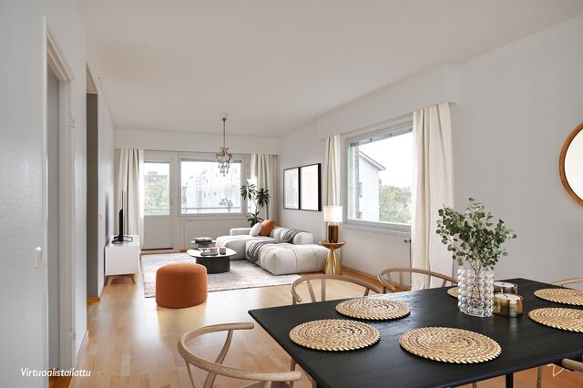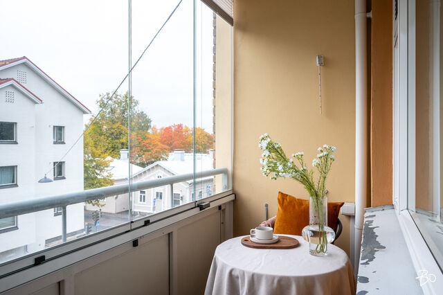 Etusivu / Varsinais-Suomi / Turku / Sairashuoneenkatu 13 1 / 1 Sairashuoneenkatu 13 Keskusta, Port Arthur, Turku | Kerrostalo | 3-4h, k, kph/s, wc, et, lasit.parv. (yj:ssä 4h+k) 246 000 € Velaton hinta 82,5 m2 Asuinpinta-ala 375,38 €/kk Hoitovastike 1966 Rakennusvuosi Upea mahdollisuus kodiksi Turun sydämessä: valoisa päätyhuoneisto, jonka näkymät Mikaelinkirkolle ja Portsan idyllisiin puutaloihin hurmaavat ensisilmäyksellä.60-luvulle tyypillisten isojen ikkunapintojen kautta valoa tulvii sisään läpi talon. Neljännen kerroksen kodin harmoninen värimaailma yhdessä luonnonvalon kanssa tarjoavat erinomaiset puitteet viihtyiseen asumiseen. Koti on täydellinen valinta niin yksin asuvalle, pariskunnalle tai jopa pienelle perheelle. Kahden makuuhuoneen omaava koti on itseasiassa muuntautumiskykyinen tarpeidesi mukaan, sillä olohuone/ruokailutila on muokattavissa niin, että tilan voi jakaa lisämakuuhuoneeksi tai työhuoneeksi (näin on aikoinaan ollutkin).Vuonna 2018 uusitussa Unique Homen keittiössä on modernit ratkaisut ja runsaasti työskentelytilaa, mikä tekee tämän päivän mukavuuksin ruoanlaitosta mieluisaa. Tilava olohuone on monipuolisesti sisustettavissa, ja käynti lasitetulle parvekkeelle lisää viihtyisyyttä. Arjen keskellä rentoutumisen takaa oma sauna, jonka löylyjen välissä on mukava nauttia parvekkeen tarjoamista maisemista kohti pastellin sävyisiä puutaloja.Asunto-Oy Sairashuoneenkatu 13 on rakentunut omalle tontilleen Sairashuoneenkadun ja Puutarhakadun kulmaukseen vuonna 1966. Kaukolämmöllä lämpiävä talo koostuu 35 asunnosta, ja vuosien aikana isoimpia kunnostustöitä on ollut mm.- Hissien saneeraus - Vesi- ja sähköjohtosaneeraus- Lukituksen uusinta- Viemäreiden pinnoitus (ruiskuvalu) - Perustusten suihkupaalutus- SalaojaremonttiSairashuoneenkadun loistava sijainti tarkoittaa, että kaikki keskeiset palvelut ovat aivan käden ulottuvilla. Kaupat, kahvilat, koulut ja päiväkodit ovat vain kävelymatkan päässä, ja liikenneyhteydet kaupungin muihin osiin ovat erinomaiset. Keskeinen sijainti yhdistettynä aluetta ympäröivään historiaan tekee tästä kohteesta ainutlaatuisen helmen.Tämä asunto on täydellinen valinta niille, jotka arvostavat keskusta-asumisen mukavuutta sekä kauniita ja toimivia sisätiloja. Älä missaa tätä tilaisuutta tule tutustumaan tähän hurmaavaan kotiin ja tee siitä omasi!KATRI LAGRÉN | 044 519 9421 | katri@bo.fifacebook: Katri Lagrén, asuntomyyjä, partnerinstagram: katrilagrenbolkvHarkitsetko oman asuntosi myyntiä? Pyydä minut sitoumuksetta maksuttomalle arviokäynnille. Kerron samalla lisää tämänhetkisestä asuntomarkkinatilanteesta, palveluistani ja Bo:n loistavasta välityskonseptista sekä miten asunnonvaihdon suhteen kannattaa edetä. Autan mielelläni! Kiinnostaako tämä kohde?Ota meihin yhteyttä tai jätä viesti Katri Lagrén asuntomyyjä, partner 044 519 9421 katri@bo.fi Tutustu välittäjään Varaa aika kalenteristani HuoneistoOsakkeet2339-2936HallintamuotoAsunto-osakeyhtiöHuoneluku3-4h, k, kph/s, wc, et, lasit.parv. (yj:ssä 4h+k)Kerros/Kerroksia4/8Asuinpinta-ala82,5 m2Muut tilat0,0 m2Lisätietoja pinta-alastaPinta-aloja ei ole tarkistusmitattu. Edellä mainittu pinta-ala saattaa tämän ikäisessä kohteessa poiketa olennaisestikin huoneiston nykyisen ja rakentamisaikaisen mittaustapojen ja standardien mukaan laskettavista pinta-alasta. Huoneiston todellinen pinta-ala voi siis olla yhtiöjärjestyksessä, isännöitsijäntodistuksessa ja esitteessä mainittua pienempi tai suurempi. Yhtiöjärjestyksen mukainen. Isännöitsijäntodistuksen mukainen.NäkymätOlohuoneesta upeat ja esteettömät näkymät kohti Mikaelinkirkkoa ja Portsan puutaloja, keittiöstä näkymät sisäpihan suuntaan ja makuuhuoneet Sairashuoneenkadulle päin.ParvekeLasitettuParvekkeen ilmansuuntaEteläHissiTaloyhtiössä on hissiKeittiön kuvaus, lisätiedot ja varustusVaalea Unique Homen keittiö on remontoitu tähän päivään vuonna 2018. Keittiön varustelu: aamiaiskaappi valaistuksella, jääkaappipakastin (9/2025), induktioliesi, erillisuuni, liesituuletin, astianpesukone (45cm), allas.Pesutilojen kuvaus, lisätiedot ja varustusSuihkuseinä, suihku, käynti saunaan.WC-tilojen kuvausWc-istuin, allas, allaskaapit, peilikaapit, liitäntä ja paikka päältä täytettävälle pyykinpesukoneelle.Lukumäärä: 1Makuuhuoneen kuvaus, lisätiedot ja varustusLukumäärä: 2Oleskelutilojen kuvaus, lisätiedot ja varustusOlohuoneesta käynti lasitetulle parvekkeelle. Olohuoneen yhteydessä ollut aikoinaan yksi huone.SeinämateriaalitOleskelutiloissa maalattu (isolta osin 9/2025), kylpyhuoneessa, saunassa ja wc:ssä laatta.LattiamateriaalitOleskelutiloissa parketti, kylpyhuoneessa, saunassa ja wc:ssä laatta. Parketti kaipaa hiomista paikoittain tai uusiminen kokonaan.Muutostyöt huoneistossa- 9/2025 seiniä maalattu - 2018 keittiön kalusteet ja kodinkoneita uusittu - wc:n kaapistoja uusittuKuntoHyväLisätietoa kunnostaParketti kaipaa hiomista paikoittain tai uusiminen kokonaan. Kiinteistö- ja yhtiötiedotYhtiön nimiAsunto-Oy Sairashuoneenkatu 13Tontin omistusOmaTontin koko1 705,00 m2Käyttöönottovuosi1966RakennusmateriaaliBetoniKattotyyppiHarjakattoKateProfiilipeltiLämmitysjärjestelmäKaukoEnergiatodistusKylläLisätietoja energiatodistuksestaVoimassa 27.9.2034 saakka.EnergialuokkaD2018Tehdyt korjaukset ja remontit1997-98 Julkisivun lisälämmöneristys ja rappaus, 1997 Ikkunoiden ja parvekeovien uusinta, 2001 Perustusten suihkupaalutus, 2001 Salaojitus, valaistuksen uusinta ja pihan asfaltointi, 2001 Autopaikkojen sähköistys ja jäteaseman uusinta, 2007 Lukituksen ja ulko-ovien uusinta, 2008 Tonttiaitojen uusinta, 2008 Viemärit kuvattu ja pesty, 2009 Lämmönjakokeskus, 2010 Peruskuntoarvio, 2014-15 Viemäreiden pinnoitus (ruiskuvalu) LVIS-saneerauksen vaihe 1, 2016 poistoilmakoneiden uusinta, 2017 Lukituksen uusinta, iloq, 2018 Vesi- ja sähköjohtosaneeraus, LVIS-saneerauksen vaihe 2, 2018 