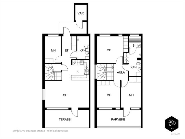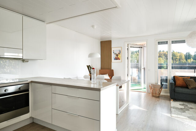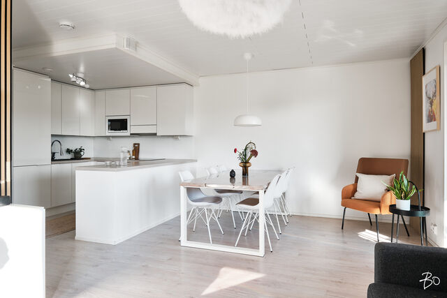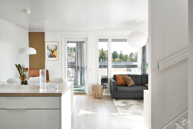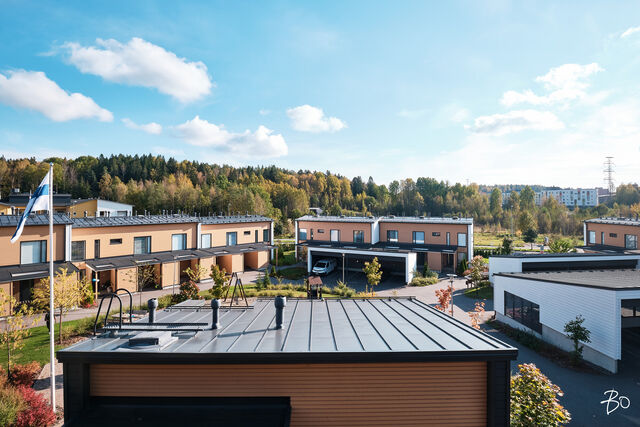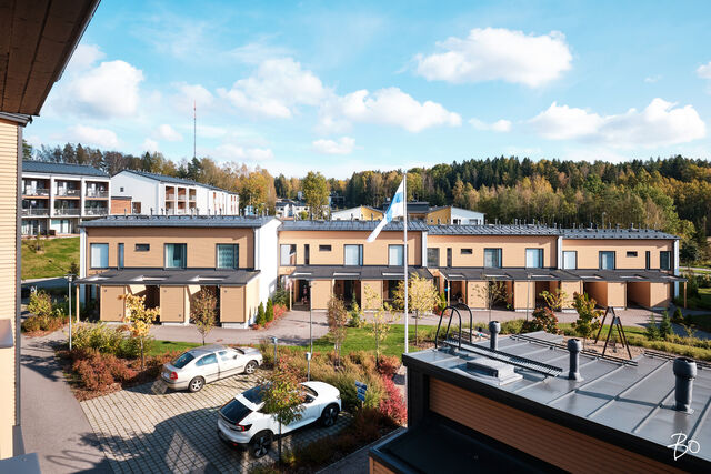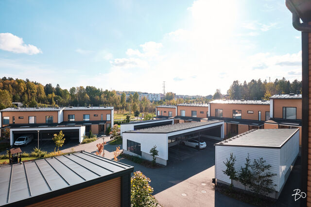 Etusivu / Uusimaa / Espoo / Harmaaniityntie 4 1 / 1 Harmaaniityntie 4 Harmaalaakso, Kurttila, Vanttila, Espoo | Rivitalo | 5h, avok, 2 kph/wc, s, lasitettu terassi/parveke, parveke, varasto (yj. 5h+kt+s+terassi+parveke) 368 000 € Velaton hinta 97,0 m2 Asuinpinta-ala 271,60 €/kk Hoitovastike 2019 Rakennusvuosi Seuraava esittely: 19.10.2025 klo 15.10-15.40Voit tilata myyntiesitteen ennakkoon 040-1202701 tai mari@bo.fi. Tervetuloa esittelyyn. Kaunis ja valoisa rivitalon päätyhuoneisto sinulle, joka arvostat helppoa muuttoa uudehkoon taloyhtiöön sekä kodin käytännöllisiä tilaratkaisuja suuremmankin perheen arkeen. Täällä tulet viihtymään pitkään. Kaksikerroksisen huoneiston sisääntulokerroksessa on olohuoneen, ruokailutilan ja avokeittiön muodostamana skandinaavisen vaaleasävyinen ja yhtenäinen kokonaisuus. Keittiö on käytännöllinen runsaan työskentelytilansa ansiosta ja säilytystilaa löytyy hyvin kaapistoista sekä portaiden alla olevasta varastosta, joka palvelee nykyisiä omistajia ruokavarastona eli pantryna. Olohuone ja ruokailutila on yhtenäinen ja ruokailutilaan mahtuu hyvin reilun kokoinen ruokailuryhmä. Olohuoneesta on käynti tilavalle huoneiston levyiselle lasitetulle terassiparvekkeelle, joka on mainio lisätila pitkälle syksyyn. Tästä kerroksesta löytyy myös yksi makuuhuone, joka on oivallinen työtilaksi sekä toinen kodin kahdesta kylpyhuoneesta. Yläkertaan sijoittuu kolme makuuhuonetta, joista kaksi voisi kokonsa takia toimia päämakuuhuoneena. Pienemmästä makuuhuoneesta on käynti tilavalle parvekkeelle. Yläkerran kylpyhuoneen yhteydessä on sauna sekä hyvä tila pyykkihuollolle. Säilytystilaa löytyy makuuhuoneiden sekä eteisen kaapistoista, portaiden alla olevasta varastosta, sisäänkäynnin vieressä olevasta kylmästä varastosta sekä yhtiön tiloissa sijaitsevasta lämpimästä irtaimistovarastosta. Huoneiston parhaita puolia on ehdottomasti käytännöllinen pohja, suuret kolmeen suuntaan olevat ikkunapinta-alat sekä vaaleasävyinen pohja sisustaa kodista oman mielensä mukainen kokonaisuus. Materiaalivalintoihin on kiinnitetty huomiota jo rakennusvaiheessa, ja muutamia alkuperäisiä ratkaisuja on jo rakennusvaiheessa vaihdettu käytännöllisempiin ja kauniimpiin vaihtoehtoihin. Kauniita yksityiskohtia ovat myös akustiikkalevyt seinillä, jotka tuovat myös äänimaailmaan rauhallisuutta. Tähän huoneistoon on helppo ihastua ja tehdä siitä omansa. Yhtiön autopaikat ovat osakkeina ja nyt myynnissä olevan huoneiston yhteydessä myydään kauppaan kuuluvana, mutta erillisenä kauppahintana kaksi autopaikkaa. Toinen autopaikoista on katoksessa, johon asennettu sähköautonlatauspistoke (max 22 KWh) 12 000€ ja toinen on sähköpistokkeellinen avopaikka 5 000€, joten tässä on oivallinen tilaisuus kahden auton perheelle. Asunto Oy Espoon Harmaahaikara on valmistunut 2019 - 2020 ja yhtiössä on 45 huoneistoa. Yhtiöllä on suojaisa piha-alue, jossa on lapsille leikkipaikka. Osakkaiden yhteisessä käytössä on myös kerhohuone, jossa on keittotilat ja wc. Yhtiö sijaitsee valinnaisella vuokratontilla ja myytävän huoneiston osuutta tontista ei ole lunastettu. Tonttiosuuksien lunastukset on mahdollista tehdä vuosittain, ja näin luopua tonttivuokravastikkeen maksusta. Lisätietoja tontin lunastuksesta saat välittäjältä. Olisiko se tässä? Otathan yhteyttä ja varaa itsellesi sopiva esittelyaika. Mari Rautio LKV, LVV, KiAT, Partner040-1202701mari@bo.fi Kiinnostaako tämä kohde?Ota meihin yhteyttä tai jätä viesti Mari Rautio kiinteistönvälittäjä LKV, LVV, KiAT, partner 040 120 2701 mari@bo.fi Tutustu välittäjään Varaa aika kalenteristani HuoneistoOsakkeet4488-4681HallintamuotoAsunto-osakeyhtiöHuoneluku5h, avok, 2 kph/wc, s, lasitettu terassi/parveke, parveke, varasto (yj. 5h+kt+s+terassi+parveke)Kerros/Kerroksia1-2/2Asuinpinta-ala97,0 m2Muut tilat0,0 m2Lisätietoja pinta-alastaPinta-alaa ei ole tarkistusmitattu, joten pinta-ala voi olla suurempi tai pienempi kuin ilmoitettu. Toimeksiantajan ilmoittama. Yhtiöjärjestyksen mukainen. Isännöitsijäntodistuksen mukainen.NäkymätHuoneistolla on yhtiöjärjestyksen mukaan terassi ja parveke. Alakerran terassiparveke on lasitettu ja yläkerran makuuhuoneesta on käynti lasittamattomalle parvekkeelle. Molemmat parvekkeet ovat todella tilavia ja näkymät ovat taloyhtiön pihalle noin kaakon suuntaan. Terassilasien huolto on yhtiön vastuulla. ParvekeLasitettuParvekkeen ilmansuuntaKaakkoKeittiön kuvaus, lisätiedot ja varustusJääkaappi/pakastin, induktioliesi, erillisuuni, integroitu astianpesukone, liesituuletin, mikro. Työtaso laminaatti. Kaapistojen välitila lasi, muuten seinät maalattu. Lattia laminaatti. Portaiden alle tehty käytännöllinen ruokakomero, joka tuo keittiölle huomattavasti lisää säilytystilaa. Pesutilojen kuvaus, lisätiedot ja varustusAlakerran kph/wc: suihku, wc-istuin, allaslaatikosto, valopeili, käsisuihku, kaappi, lattialämmitys. Lattia ja seinät laatoitettu. Yläkerran kph/wc/khh: suihku, wc-istuin, käsisuihku, allaslaatikosto, pesukoneliitäntä, laminaattitaso, kaapistoa, lattialämmitys. Lattia ja seinät laatoitettu. Saunan kuvaus, lisätiedot ja varustusSähkökiuas, lattia laatoitettu ja seinät puupaneli. Makuuhuoneen kuvaus, lisätiedot ja varustusMH1:(alakerta) seinät maalattu, lattia laminaatti, kaapisto. MH2:seinät maalattu, lattia laminaatti, kaapisto. MH3: seinät maalattu, lattia laminaatti, kaapisto. MH4: seinät maalattu, lattia laminaatti, kaapisto. Käynti parvekkeelle. Lukumäärä: 4Oleskelutilojen kuvaus, lisätiedot ja varustusSeinät maalattu ja lattia laminaatti. Olohuoneessa ja ruokailutilassa seinillä akustiikkapaneelia. Muuta kauppaan kuuluvaaOlemassa olevat sälekaihtimet, seinillä olevat akustiikkapaneelit, Kauppaan ei kuuluPesukone ja kuivausrumpuKuntoHyväLisätietoa kunnostaHuoneisto on muuttovalmiissa kunnossa. Kiinteistö- ja yhtiötiedotYhtiön nimiAsunto Oy Espoon Harmaah