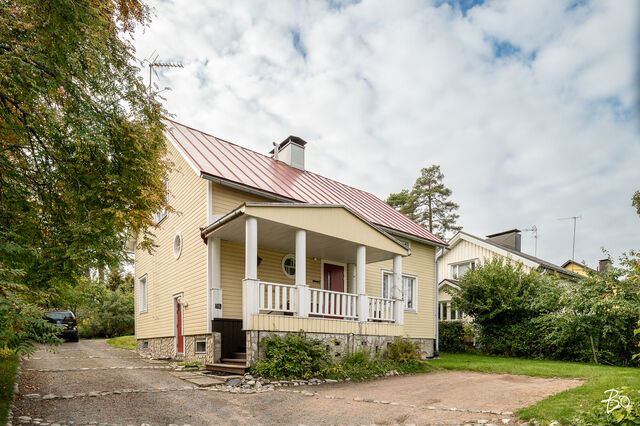 Etusivu / Pohjois-Savo / Kuopio / Kaikukatu 16 1 / 1 Kaikukatu 16 Niirala, Kuopio | Omakotitalo | 5h+k+s 159 000 € Velaton hinta 112,0 m2 Asuinpinta-ala 250,0 m2 Kokonaispinta-ala 1952 Rakennusvuosi Unelmiesi koti odottaa sinua Kaikukatu 16:ssa Kuopiossa - omakotitalo, joka yhdistää perinteisen suomalaisen arkkitehtuurin ja viehättävän sijainnin rauhallisella alueella!Tämä vuonna 1952 rakennettu rintamamiestalo tarjoaa tilavat ja käytännölliset sisätilat, jotka kaipaavat rakastavaa kunnostusta. Viisihuoneisessa kodissa on keittiö ja sauna, jotka odottavat päivitystä nykyaikaiseen ilmeeseen. Talossa on tiloja kolmessa kerroksessa, joten avaruutta ja tilaa riittää useammallekin perheenjäsenelle. Koska asunto on peruskuntoinen, on sinulla oiva tilaisuus remontoida se täysin oman makusi mukaiseksi.Pihalla on reilusti tilaa lasten leikeille ja mahdollisuus toteuttaa unelmien puutarha. Kiinteistössä on vanhan ajan charmia, joka on ominaista rintamamiestaloille. Talo, vaikkakin remontoitava, tarjoaa tukevan kivijalan tällaiselle projektille. Tämä on upea tilaisuus toteuttaa omannäköinen koti perinteisten seinien suojaan.Kaikukatu 16 sijaitsee idyllisellä alueella Niiralassa Kuopiossa, joka on erityisesti lapsiperheiden suosiossa. Ympäristö on rauhallinen ja turvallinen, ja se tarjoaa erinomaiset puitteet niin arkipäivän kulkemiselle kuin viikonlopun ulkoiluhetkille. Alueelta löytyy monipuoliset palvelut, kuten päiväkodit, koulut ja kaupat, jotka tekevät arjesta sujuvaa ja vaivatonta. Tämä on paikka, jossa voit nauttia rauhasta ja yhteisöllisyydestä.Tule itse kokemaan tämä ainutlaatuinen mahdollisuus ja tutustu tähän potentiaalia täynnä olevaan kotiin Kaikukadulla!Riku Niemeläasuntomyyjä, partner040 534 9236riku.niemela@bo.fi Kiinnostaako tämä kohde?Ota meihin yhteyttä tai jätä viesti Riku Niemelä asuntomyyjä, partner 040 534 9236 riku.niemela@bo.fi Tutustu välittäjään Varaa aika kalenteristani RakennusRakennusvuosi (aloitettu)1951Käyttöönottovuosi1952RakennusmateriaaliPuu, betoniKattotyyppiHarjakattoKatePeltikateKaton kuntoHyväAsuinpinta-ala112,0 m2 (250,0 m2)Lisätietoja pinta-alastaPinta-alaa ei ole tarkistusmittattu. Kerrokset3Muut tilat138,0 m2LämmitysSähköpatterilämmitys, uuni/takka. TyydyttäväLämmitysjärjestelmän kuvausPuu, sähkö, muuHuoneluku5h+k+sKeittiön kuvaus, lisätiedot ja varustusVanhahko keittiö.Keittiön muut varusteetAstianpesukone, kiinteät valaisimet, liesituuletin / hormiLiesiSähköliesiKeittiön työtasojen materiaaliLaminaattiKeittiön lattiamateriaaliMuoviKeittiön seinien materiaaliMaalattuPesutilojen kuvaus, lisätiedot ja varustusRetroKylpyhuoneen varustusSuihku, kiinteät valaisimetKylpyhuoneen lattiamateriaaliLaattaKylpyhuoneen seinämateriaaliKaakeliSaunaAsunnossa on saunaSaunan lattiamateriaaliLaattaSaunan seinämateriaaliPuuWC-tilojen kuvausVarustus: bidee-suihkuLukumäärä: 2Lattiamateriaalit: muoviSeinämateriaalit: maalattuKodinhoitohuoneVarustus: pesukone, pesukoneliitäntä, pesuallasLattiamateriaalit: muoviSeinämateriaalit: puuMakuuhuoneen kuvaus, lisätiedot ja varustusLukumäärä: 2Lattiamateriaalit: muovi, korkkiSeinämateriaalit: tapettiOleskelutilojen kuvaus, lisätiedot ja varustusLattiamateriaalit: parkettiSeinämateriaalit: tapettiMuut tilatTekninentila, jossa lämminvesivaraaja.TakkatiedotTakkaMuut säilytystilatVinttikomeroTehdyt korjauksetRakennukseen tehdyt perusparannuksen painottuvat 1970-luvulle, jolloin rakennuksen lisälämmöneristys on tehty sisä- ja ulkopuolelle. Samalla rakennuksen sisäpinnat on uusittu sekä viemärin päärunkoputki on uusittu talon alakerrasta kaupungin verkkoon asti. Rakennuksen länsi- ja pohjoissivuille on 1990-luvulla tehty salaojitus ja katto on uusittu. 2014 on tehty julkisivukorjaus (ilmoitus tehty rakennusvalvontaan) ja vuonna 1988 tehdystä katteen muutoksesta on rakennusvalvonnassa rakennuslupa, joka on lopputarkastettu 1989.KuntoTyydyttäväLisätietoa kunnostaPeruskuntoinen rintamiestalo.EnergiatodistusKylläEnergialuokkaE2018Lisätietoja energiatodistuksestaVoimassa 09.02.2034 KiinteistötiedotKiinteistötunnus297-7-41-6Kortteli/Kiinteistön nimi41TyyppiOmakotitaloTontin tyyppiTasamaatonttiTontin koko400,00 m2Tontin omistusOmaPanttikirjat244 749,00 €Lisätietoja tontistaTontti on hallinnanjakosopimuksella jaettu kahteen osaan A ja B. Tontin yhteenlaskettu kokonaispinta-ala on 800 m2. Molemmat osapuolet hallitsevat 400 m2 määräosaa. Katso hallinnanjakosopimuksen karttaliite. Määräosa tontista 400m2.Tie perilleVesijohtoKunnanVeden laatu ja riittävyysHyväViemäriKunnan AsumiskustannuksetKiinteistövero408,78 €Muut maksut / lisätietoa maksuistaJätekukon perusmaksu 29,99€/kv, kimppa+biokimppa13,34€/kk, Vesimaksu kulutuksen mukaan. HintaVelaton hinta159 000,00 €Myyntihinta159 000,00 € VapautuuSopimuksen mukaanMaksuehtoKäteinen. Sinua voisi kiinnostaa Asunnon hinta-arvio ja arviokäynti Asunnon hinta-arvio ja arviokäynti Mitä hinta-arvio maksaa tai miten arviokäyntiä varten kannattaa valmistautua? Katso vastauksemme usein kysyttyihin ky… Sneak Peek® Sneak Peek® Sneak Peek® -palvelumme on askeleen edellä! Löydä alueesi uusimmat ja upeimmat asunnot jo ennen kuin ne ilmestyvät as… Asuntovahti Asuntovahti Etsimässä uutta asuntoa? Aseta itsellesi Bo-asuntovahti. Saat tiedon heti, kun unelmiesi asunto tulee myyntiin. Bo Match Bo Match Kun asuntounelmat ja unelmien asunnot kohtaavat, syntyy Bo Match. Tutustu uudenlaiseen tapaan käydä asuntokauppaa.