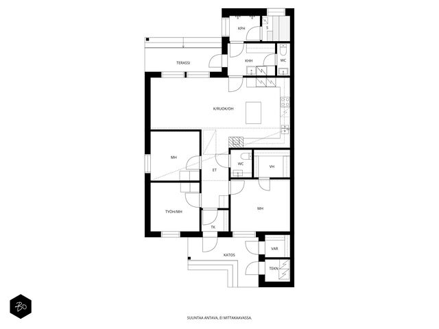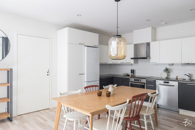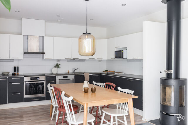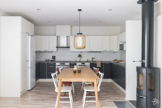 Etusivu / Pirkanmaa / Tampere / Kalkunkulma 19 A 1 / 1 Kalkunkulma 19 A Kalkku, Tampere | Paritalo | 4h, k, khh, kph, s, 2wc, vh, tk, var 295 000 € Velaton hinta 90,3 m2 Asuinpinta-ala 94,4 m2 Kokonaispinta-ala 2016 Rakennusvuosi Tervetuloa tutustumaan tähän kodikkaaseen perheasuntoon Tampereen Kalkussa!Tämä vuonna 2016 valmistunut paritalokoti sijaitsee yhdessä tasossa, tarjoten järkevän pohjaratkaisun. Olohuone, ruokailutila ja keittiö ovat yhtenäistä tilaa. Keittiössä on runsaasti lasku- ja kaappitilaa ja olohuoneen isoista ikkunoista tulvii runsaasti luonnonvaloa asuntoon. Ruokapöydälle on loistava paikka keittiön ja olohuoneen välissä. Tunnelmallinen takka lämmittää pimenevissä syysilloissa.Kahden makuuhuoneen yhteydessä on kaappitilaa ja suurimman makuuhuoneen säilytystilasta vastaa vaatehuone. Kaksi erillistä wc:tä helpottaa arkea, kuten myöskin kodinhoitohuone, josta pääsee suoraan ulos. Tyylikkäässä kylpyhuoneessa on kaksi suihkua ja saunassa otat makoisat löylyt päivän päätteeksi. Vilvoittelemaan pääset takapihan katetulle terassille, josta aukeaa metsämaisema.Kiinteistö sijaitsee omalla tontilla, joka on jaettu hallinnanjakosopimuksella. Isolla takapihalla on tilaa lasten peleille ja leikeille. Etupihalle mahtuu useampikin auto. Lisäksi asuntoon kuuluu ulkovarasto ja tekninen tila. Lämmityksen hoitaa poistoilmalämpöpumppu vesikiertoisella lattiälämmityksellä ja ilmanvaihdosta vastaa koneellinen tulo ja poisto lämmön talteenotolla ja viilennyksellä.Kalkku on rauhallinen asuinalue Tampereen länsipuolella, joka on erityisesti lapsiperheiden suosiossa. Päiväkodit ja muut arjen palvelut löytyvät läheltä, helpottaen perheen arkea huomattavasti. Kulkuyhteydet ovat hyvät, mikä mahdollistaa sujuvan liikkumisen niin autolla kuin julkisillakin. Tämä on koti, jonne on helppo tulla ja asettua aloilleen.Tule tutustumaan ja ihastumaan. Varaa oma esittelyaikasi jo tänään!Henri MajuriKiinteistönvälittäjä LKV, KiAT, partner040 812 1957henri@bo.fiKotisivut: henrimajuri.fiInstagram: henrimajuriFacebook: henrimajuribolkv#majurimyy Kiinnostaako tämä kohde?Ota meihin yhteyttä tai jätä viesti Henri Majuri kiinteistönvälittäjä LKV, KiAT, partner 040 812 1957 henri@bo.fi Tutustu välittäjään Varaa aika kalenteristani RakennusKäyttöönottovuosi2016RakennusmateriaaliPuuKattotyyppiHarjakattoKateTiilikateAsuinpinta-ala90,3 m2 (94,4 m2)Lisätietoja pinta-alastaAsuinpinta-ala on laskettu pohjapiirustuksesta. Muihin tiloihin on laskettu varasto sekä tekninen tila.Muut tilat4,1 m2Lämmitysjärjestelmän kuvausPoistoilmalämpöpumppuLämmön jakotapaVesikiertoinen lattialämmitysHuoneluku4h, k, khh, kph, s, 2wc, vh, tk, varKeittiön kuvaus, lisätiedot ja varustusMuut koneet vaihdettu paitsi uuni on alkuperäinen.Keittiön muut varusteetAstianpesukone, liesituuletin / hormiLiesiInduktioliesi, erillisuuniKeittiön työtasojen materiaaliLaminaattiKeittiön lattiamateriaaliLaminaattiKeittiön seinien materiaaliMaalattuPesutilojen kuvaus, lisätiedot ja varustusLattia ja seinät laattaaKylpyhuoneen varustusLattialämmitys, suihkuSaunaAsunnossa on saunaSaunan lattiamateriaaliLaattaSaunan seinämateriaaliPuuWC-tilojen kuvausVarustus: lattialämmitys, lattiakaivo, peilikaappi, bidee-suihkuLukumäärä: 2Lattiamateriaalit: laattaSeinämateriaalit: maalattuKodinhoitohuoneVarustus: pesukoneliitäntä, pesuallas, lattialämmitys, pyykkikaapit, pöytätasoLattiamateriaalit: laattaSeinämateriaalit: maalattuMakuuhuoneen kuvaus, lisätiedot ja varustusLukumäärä: 3Lattiamateriaalit: laminaattiSeinämateriaalit: maalattu, tapettiOleskelutilojen kuvaus, lisätiedot ja varustusLattiamateriaalit: laminaattiSeinämateriaalit: maalattu, tapettiTakkatiedotTakkaMuut säilytystilatVaatehuone, ulkovarastoKuntoHyväEnergiatodistusKylläEnergialuokkaC2013Lisätietoja energiatodistuksestaVoimassa 19.04.2026 saakka. KiinteistötiedotKiinteistötunnus837-230-3521-4TyyppiTonttiTontin tyyppiTasamaatonttiTontin koko1 491,00 m2Tontin omistusOmaPanttikirjat250 000,00 €Rasitukset ja rasitteetHallinnanjakosopimus, 10.6.2016Lisätietoja tontistaTie perilleVesijohtoKunnanViemäriKunnanLisätietoja rakennusoikeudesta-Sallittu kerrosoikeus 180+40 m2. -Uusi kerrosala 214+12 m2. -Käyttämätön rakennusoikeus 0 m2. Lisätiedot Tampereen kaupunki, rakennusvalvonta Muita tietojaPalvelutK-Market Kalkku n. 300 mKouluTesoman koulu Kalkun koulutalo n. 350 mPäiväkotiKalkun päiväkoti n. 250 mLiikenneyhteydetBussipysäkki n. 350 mLisätietoa palveluistaLeikkipuisto ja urheilukenttä n. 150 m AsumiskustannuksetKiinteistövero325,50 €Muut maksut / lisätietoa maksuistaSähkönkulutus noin 12 000 kwh/vuosi. HintaVelaton hinta295 000,00 € (3 266,89 €/m2)Myyntihinta295 000,00 € (3 266,89 €/m2)Vapautuu31.10.2025MaksuehtoKäteinen/vaihto Sinua voisi kiinnostaa Asunnon hinta-arvio ja arviokäynti Asunnon hinta-arvio ja arviokäynti Mitä hinta-arvio maksaa tai miten arviokäyntiä varten kannattaa valmistautua? Katso vastauksemme usein kysyttyihin ky… Sneak Peek® Sneak Peek® Sneak Peek® -palvelumme on askeleen edellä! Löydä alueesi uusimmat ja upeimmat asunnot jo ennen kuin ne ilmestyvät as… Asuntovahti Asuntovahti Etsimässä uutta asuntoa? Aseta itsellesi Bo-asuntovahti. Saat tiedon heti, kun unelmiesi asunto tulee myyntiin. Bo Match Bo Match Kun asuntounelmat ja unelmien asunnot kohtaavat, syntyy Bo Match. Tutustu uudenlaiseen tapaan käydä asuntokauppaa.