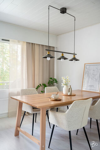 Etusivu / Päijät-Häme / Lahti / Karhunkatu 39 1 / 1 Karhunkatu 39 Jalkaranta, Lahti | Rivitalo | 3h, k, rt, erill. wc, kph/wc, s, parveke, terassi + varasto 168 000 € Velaton hinta 86,0 m2 Asuinpinta-ala 292,40 €/kk Hoitovastike 1980 Rakennusvuosi Tervetuloa tutustumaan unelmien rivitalokotiin Karhunkadulla, jossa skandinaavinen tyylikkyys ja kodikkuus yhdistyvät täydellisesti. Tässä valoisassa asunnossa on kauniit vaaleat sisustussävyt, jotka luovat raikkaan ja ajattoman ilmeen.Huonejärjestys on äärimmäisen toimiva: kolme huonetta, keittiö, ruokailutila, erillinen wc sekä kylpyhuone/wc ja sauna tarjoavat kaikki tarvittavat mukavuudet. Yläkerran tilavalta parvekkeelta ja alakerran suurelta terassilta avautuvat mukavat näkymät, jotka tekevät kodista todellisen rauhan tyyssijan. Tämän kodin raikas ja kodikas tyyli jatkuu läpi koko kodin.Asunto kuuluu hyvin hoidettuun taloyhtiöön, jossa on oma tontti, mikä lisää sekä viihtyisyyttä että arvoa asumiseen. Piha-alueella on vehreät luontonäkymät ja viehättävä puutarha sekä taloyhtiön piha-alueella on paikka, missä lasten on turvallista leikkiä ja yhtiön osakkaat voivat viettää yhteistä aikaa ulkona. Sijainti Karhunkadulla on ideaali, erityisesti lapsiperheille. Alueella on palvelut suhteellisen lähellä. Julkiset liikenneyhteydet ovat loistavat, joten liikkuminen on vaivatonta. Lisäksi näin talven tullen Messilän laskettelukeskus löytyy pienen kävelymatkan päästä, missä myös kesäisin löytyy hyvät uimarannat. Tämä koti tarjoaa ihanteelliset puitteet jokapäiväiseen arkeen tämä koti on ehdottomasti nähtävä ja tunnelma on koettava paikan päällä, joten lämpimästi tervetuloa tutustumaan uuteen kotiisi!Varaa oma yksityisesittelyaika.Myynti ja esittely:Bo LKV LahtiToni MäenpääKiinteistönvälittäjä LKV040 709 9009toni.maenpaa@bo.fiTHIS IS WHERE THE STORY BEGINS. Kiinnostaako tämä kohde?Ota meihin yhteyttä tai jätä viesti Toni Mäenpää kiinteistönvälittäjä LKV, partner 040 709 9009 toni.maenpaa@bo.fi Tutustu välittäjään HuoneistoOsakkeet87-172HallintamuotoAsunto-osakeyhtiöHuoneluku3h, k, rt, erill. wc, kph/wc, s, parveke, terassi + varastoKerros/Kerroksia1/2Asuinpinta-ala86,0 m2Muut tilat0,0 m2Lisätietoja pinta-alasta Yhtiöjärjestyksen mukainen.Parvekkeen ilmansuuntaLänsiLiesiSähköliesiKeittiön työtasojen materiaaliLaminaattiKeittiön lattiamateriaaliLaminaattiKeittiön seinien materiaaliMaalattu, osalaatoitusKylpyhuoneen varustusSuihkuseinä, wc-istuin, suihku, peili, kiinteät valaisimetKylpyhuoneen lattiamateriaaliLaattaKylpyhuoneen seinämateriaaliKaakeliWC-tilojen kuvausLukumäärä: 2Lattiamateriaalit: laattaSeinämateriaalit: kaakeli, puuMakuuhuoneen kuvaus, lisätiedot ja varustusLukumäärä: 2Lattiamateriaalit: laminaattiSeinämateriaalit: maalattu, puuOleskelutilojen kuvaus, lisätiedot ja varustusLattiamateriaalit: laminaattiSeinämateriaalit: maalattuMuutostyöt huoneistossaPientä pintaremonttia yläkerran wc-tila on remontoitu v. 2023.KuntoHyvä Kiinteistö- ja yhtiötiedotYhtiön nimiAsunto Oy KarhukumpuTontin omistusOmaTontin koko4 520,00 m2Käyttöönottovuosi1980RakennusmateriaaliPuu, tiiliKattotyyppiHarjakattoKateHuopakateLämmitysjärjestelmäKaukoEnergiatodistusKylläLisätietoja energiatodistuksestaViimeinen voimassaolopäivä 18.4.2033EnergialuokkaC2018Tehdyt korjaukset ja remontitPihan asfaltointi -84, julkisivun maalaus -88, vesikate uusittu -00, tulipalon vaurioittamien huoneistojen korjaukset A-talossa -03, julkisivun korjausta -04, A-talon maapaineseinän eristys ja salaojitus -08, piha-alueen kunnostus, sadevesijärjestelmä -09, huoneistokohtaiset vesimittarit uusittu -09, ilmanvaihtokanavien nuohous -12, vastakkaisten C ja D päätyjen saneeraus -12, LJH-saneeraus ja patteriventtiilien uusiminen -14, piha-aitojen kunnostusta -14, ulko-ovien, varastonovien ja lukituksen uusiminen -15, homekoiratutkimus -16, leikkikentän kunnostus -17, sokkelien vesieristys huoneistot -17, sokkeleiden vesieristys talojen päädyt -18, antennijärjestelmän uusiminen -18, takapihan aitojen jatkot -19, radonkaivot B/C, C/D, D pääty -20 A/B -22, käyttövesiputkien, tonttivesijohdon, lämpörunkolinjan ja pihakanaalien uusiminen -22, radonkaivon lisäys B-talo -24.Tiedossa olevat tulevat korjaukset/remontitKunnossapitotarve yhtiökokousta seuraavien viiden vuoden aikana: pihavarastojen laudoitusten uusiminen ja maalaus, autokatoksen saneeraus.Autokatokset22Lainat191 533,25 €Kiinnitykset525 136,91 €IsännöitsijäEero Vesanen/Lahden Team-Isännöinti Oyk, Vesijärvenkatu 27, 15140 Lahti, puh. (03) 524 2100KiinteistönhoitoHuoltoyhtiöYhtiön tilat ja varusteluKaapeli-tv. Taloyhtiön laajakaista Muita tietojaLisätietoa kaavoituksestaLahden kaupunki, puh. (03) 814 2355Vapautuu2kk kaupanteosta AsumiskustannuksetHoitovastike292,40 €/kk (3,40 €/m2)Rahoitusvastike103,20 €/kk (1,20 €/m2)Yhtiövastike yhteensä395,60 €Vesimaksun perusteOma mittariAutopaikka5,00 €/kkMuut maksut / lisätietoa maksuistaVesimaksu on kulutuksen mukaan, hinnat: lämmin vesimaksu 10 €/m3 ja kylmä vesimaksu 5 €/m3. Autokatosmaksu 7 €/kk. Varainsiirtovero 1,5 %. HintaMyyntihinta155 438,16 € (1 807,42 €/m2)Velkaosuus12 561,84 € (146,07 €/m2)Velaton hinta168 000,00 € (1 953,49 €/m2)MaksutapaKäteinen. Sinua voisi kiinnostaa Asunnon hinta-arvio ja arviokäynti Asunnon hinta-arvio ja arviokäynti Mitä hinta-arvio maksaa tai miten arviokäyntiä varten kannattaa valmistautua? Katso vastauksemme usein kysyttyihin ky… Sneak Peek® Sneak Peek® Sneak Peek® -palvelumme on askeleen edellä! Löydä alueesi uusimmat ja upeimmat asunnot jo ennen kuin ne ilmestyvät as… Asuntovahti Asuntovahti Etsimässä uutta asuntoa? Aseta itsellesi Bo-asuntovahti. Saat tiedon heti, kun unelmiesi asunto tulee myyntiin. Bo Match Bo Match Kun asuntounelmat ja unelmien asunnot kohtaavat, syntyy Bo Match. Tutustu uudenlaiseen tapaan käydä asuntokauppaa.