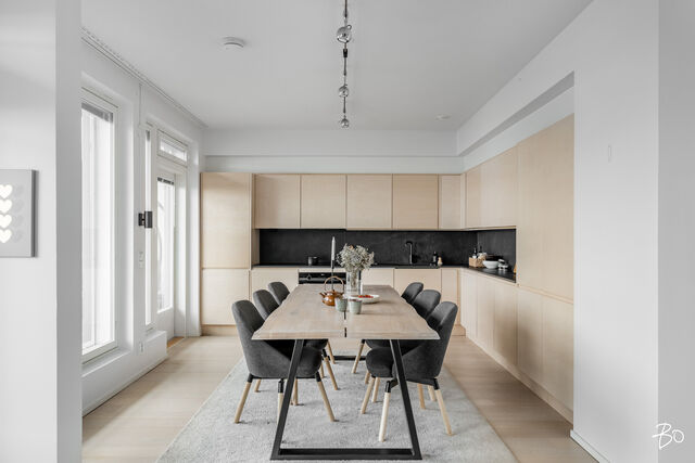 Etusivu / Uusimaa / Helsinki / Thomas Byströminkuja 2 1 / 1 Thomas Byströminkuja 2 Jätkäsaari, Helsinki | Kerrostalo | 3h, avok, kh, s, wc, lasitettu terassi ja parveke (yj. 3h+kt+s) 895 000 € Velaton hinta 79,5 m2 Asuinpinta-ala 421,35 €/kk Hoitovastike 2015 Rakennusvuosi Upea terassikolmio Jätkäsaaren parhaalla paikalla!Valoisa avokeittiö ja olohuone muodostavat avaran, yhtenäisen kokonaisuuden, josta avautuu käynti suurelle, osin lasitetulle terassille. Terassilla voit nauttia poreammeen lämmöstä ja huikeista merinäkymistä - täydelliset puitteet rentoutumiseen ja viihtymiseen. Asunnon sijainti ylimmässä, 7. kerroksessa takaa yksityisyyden ja esteettömät näkymät.Keittiö on remontoitu vuonna 2021, ja se on toteutettu laadukkailla materiaaleilla ja hyvällä maulla. Kaksi makuuhuonetta tarjoavat käytännöllistä mukavuutta, ja molemmissa on säilytystilaa. Saunaosastolta on suora käynti lasitetulle etelälänsisuuntaiselle parvekkeelle, jossa voit nauttia auringosta aamusta iltaan.Keväällä terassi herää eloon aikaisin ja kutsuu nauttimaan ulkoilmasta pitkälle syksyyn saakka. Autohallipaikka myydään omilla osakkeillaan, ja hissillä pääsee kätevästi suoraan alas halliin.Sijainti Jätkäsaaren Saukonpaadessa on vertaansa vailla - meri, ranta ja upea Saukonpaaden puisto ovat aivan vieressä. Läheltä löytyvät myös Ruoholahden Citymarket sekä useita päiväkoteja ja kouluja, mikä tekee alueesta ihanteellisen niin pariskunnille kuin perheillekin.Tämä koti tarjoaa parhaat puolet kaupunkielämästä ja merellisestä rauhasta yhdistettynä - paikka, jossa arki tuntuu lomalta.Varaa oma esittelyaikasi,Katariina AhlbäckLKV, KiAT, partner050 521 2508kata@bo.fiIG @katalkv_living Kiinnostaako tämä kohde?Ota meihin yhteyttä tai jätä viesti Katariina Ahlbäck kiinteistönvälittäjä LKV, KiAT, partner 050 521 2508 katariina.ahlback@bo.fi Tutustu välittäjään Varaa aika kalenteristani HuoneistoOsakkeet3291-3370HallintamuotoAsunto-osakeyhtiöHuoneluku3h, avok, kh, s, wc, lasitettu terassi ja parveke (yj. 3h+kt+s)Kerros/Kerroksia7/7Asuinpinta-ala79,5 m2Muut tilat0,0 m2Lisätietoja pinta-alastaPinta-ala ei ole tarkistusmitattu. Isännöitsijäntodistuksen mukainen. Yhtiöjärjestyksen mukainen.NäkymätAvoimet ylimmän kerroksen etelä ja länsinäkymät merelle.ParvekeLasitettuHissiTaloyhtiössä on hissiKeittiön kuvaus, lisätiedot ja varustusTyylikkäästi remontoitu keittiö. Integroidut kodinkoneet. Varustus: jääkaappi/pakastin, astianpesukone, induktio liesi, kalusteuuni, liesituuletin, kivitasot, tilaa isommallekin ruokapöydälle.Pesutilojen kuvaus, lisätiedot ja varustusTilavat pesutilat, jonka yhteydessä kodinhoitotila, käynti lasitetulle parvekkeelle. Varustus:suihku, suihkuseinä, allas/allaskaappi, peilikaappi, wc-istuin, pesukoneliitäntä, tila pesutornille, pyyhekuivain, pyykkikaappi, laatoitettu, lattialämmitys. WC-tilojen kuvausVarustus: wc-istuin, bideesuihku, allas/allaskaappi, peilikaappi, laatoitettu, lattialämmitys.Saunan kuvaus, lisätiedot ja varustusSaunassa sähkökiuas, lasiovi.Makuuhuoneen kuvaus, lisätiedot ja varustusAsunnossa on kaksi valoisaa makuuhuonetta, joissa molemmissa on reilusti säilytystilaa kaapistoissa. Päämakuuhuoneen ja olohuoneen välinen lasiseinä tuo tilaan modernia ilmettä ja tekee kokonaisuudesta avaran ja yhtenäisen. Suuret ikkunat ja lasipinnat päästävät valon virtaamaan kauniisti huoneesta toiseen, luoden lämpimän ja kutsuvan tunnelman koko kotiin.Oleskelutilojen kuvaus, lisätiedot ja varustusAvokeittiön yhteydessä avautuu valoisa olohuone, joka kutsuu viihtymään. Sekä keittiöstä että olohuoneesta on käynti hulppealle terassille, josta osa on lasitettu mukavaan oleskeluun ympäri vuoden. Terassilla on myös poreamme rentouttaviin hetkiin. Upeat, avarat merelliset näkymät kruunaavat kokonaisuuden.SeinämateriaalitMaalattuLattiamateriaalitParkettiMuutostyöt huoneistossaKeittiö, lasiseinä ja valoja uusittu 2021.KuntoHyvä Kiinteistö- ja yhtiötiedotYhtiön nimiAsunto Oy Helsingin RuoriTontin omistusOmaTontin koko1 829,00 m2Käyttöönottovuosi2015RakennusmateriaaliBetoniKattotyyppiTasakattoKateHuopaLämmitysjärjestelmäKauko, muuEnergiatodistusKylläLisätietoja energiatodistuksestaViimeinen voimassaolopäivä 25.03.2030EnergialuokkaE2018Tehdyt korjaukset ja remontit2025 väestönsuojan paineistuskoe 2024-2025 10 v tarkastukset 2024 A-B pihan puolen parvekkeiden saumat korjattu (YIT), sadevesivimäri- ja salaojakuvaus, IV kanavien puhdistus 2022 Pihakannen vuotokohtien korjaukset YIT 2018-2022 2022 Kattoterassien viemärit tarkistettu 2021 Aurinkovoimalan hankinta 2020 Pihamuurin korjaus rakennuttajan toimesta 2019 Jalkakäytävän kivetyksen korjauksia rakennuttajan toimesta 2018 asuntojen huoltoluukkujen laajennuksia ja jäähdytys-konvektoreiden korjaus Lemminkäisen toimesta 2018-2022 Pihakannen vuotokohtien korjaukset ovat jatkuneet YIT:n toimesta. 2018 kaikkien lukkojen sarjoitus tehty huoltoyhtiön toimesta 2018 märkätilojen lämmityksen vuoto paikallistettu ja korjattu 2018 Ilmavaihdon heikko teho kartoitettu ja mittauksia tehty. On todettu, että ilmanvaihdon automatiikka ei ollut oikein säädetty/asennettu. Kaikissa asunnoissa suoritettiin uudet mittaukset ja säädöt 2017 märkätilojen lämmityksen toimilaitteet asennettu paikoilleen 2017 autohallin seinien sadevesivuotoja korjattu. YIT jatkaa vielä projektia, kunnes todetaan, että kaikki vuodot ovat korjattu 2016 As Oy Ruorin ja Merituulen yhteinen kerhotila on kalustettu ja sisustettu tammikuun aikana 2016 As Oy Ruorin saunatila on kalustettu ja sisustettu tammikuun aikana 2016 Piharampin lämmityksen/sulana-pidon sähkösyöttöön asennettu oma sähkömittari, jotta kulut voidaan Rasite- ja Yhteisjärjestelysopimuksen mukaan jakaa As Oy Merituulen kanssa. Asennuksen hoiti ja maksoi Lemminkäinen koska asennus oli alun perin väärin tehtyTiedossa olevat tulevat korjaukset/remontit2025 IV-ka