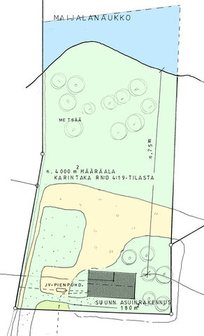 Etusivu / Varsinais-Suomi / Vehmaa / Asutustie 500 1 / 1 Asutustie 500 Kaivoinen, Vehmaa | Vapaa-ajan tontti 79 000 € Velaton hinta 4 000,00 m2 Koko Haluatko itsellesi ja perheellesi omaa rauhaa ja samalla haluat yhdistää arjen ja vapaa-ajanasumisen? Haluat omien ulkoilumaastojesi alkavan tonttisi rajalta? Tässä loistava vaihtoehto projektiksi. Nyt myydään Vehmassalmen rannalta 4000m2 omakotitalon rakennuspaikka. Kunnan myöntämän poikkeamisluvan turvin saat rakennusoikeutta 180m2 kodille. Lisäksi sinulle on tarjolla mahdollisuus ostaa lisämaata. Kohteelle on autotie perille ja sähköt sekä osuuskunnan vesi ovat rajalla. Turusta taitat matkan n. 50 minuutissa, Uudestakaupungista noin puolessatunnissa. Tule visioimaan!Tied. Malmberg 0400260150, petri.malmberg@bo.fi Kiinnostaako tämä kohde?Ota meihin yhteyttä tai jätä viesti Petri Malmberg myyntipäällikkö, LKV, YKV, AKA, KHK, ETM julkinen kaupanvahvistaja, partner 0400 260 150 petri.malmberg@bo.fi Tutustu välittäjään KiinteistötiedotKiinteistötunnus918-427-4-19TyyppiMääräalaTontin tyyppiRantatonttiTontin koko4 000,00 m2Tontin omistusOmaLisätietoja tontistaTie perilleVesijohtoKunnan Muita tietojaRakennusoikeus180,0 m2Lisätietoja rakennusoikeudestaHuom!!! Vehmaan kunta myöntänyt poikkeamisluvan rakentamiseenRantaOma rantaOmaa rantaviivaa, metriä45 m AsumiskustannuksetMuut maksut / lisätietoa maksuistaKiinteistövero määrätään, kun myytävästä määräalasta on tehty kauppa HintaVelaton hinta79 000,00 €Myyntihinta79 000,00 €VapautuuHeti Sinua voisi kiinnostaa Asunnon hinta-arvio ja arviokäynti Asunnon hinta-arvio ja arviokäynti Mitä hinta-arvio maksaa tai miten arviokäyntiä varten kannattaa valmistautua? Katso vastauksemme usein kysyttyihin ky… Sneak Peek® Sneak Peek® Sneak Peek® -palvelumme on askeleen edellä! Löydä alueesi uusimmat ja upeimmat asunnot jo ennen kuin ne ilmestyvät as… Asuntovahti Asuntovahti Etsimässä uutta asuntoa? Aseta itsellesi Bo-asuntovahti. Saat tiedon heti, kun unelmiesi asunto tulee myyntiin. Bo Match Bo Match Kun asuntounelmat ja unelmien asunnot kohtaavat, syntyy Bo Match. Tutustu uudenlaiseen tapaan käydä asuntokauppaa.