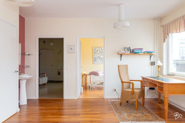 Etusivu / Satakunta / Pori / Eteläkauppatori 2 1 / 1 Eteläkauppatori 2 Keskusta, Pori | Kerrostalo | 2h+k (YJ: 3h) 85 000 € Velaton hinta 52,0 m2 Asuinpinta-ala 109,20 €/kk Hoitovastike 1961 Rakennusvuosi Poikkeuksellinen ja historiallinen toisen kerroksen kaksio Asunto Oy Porin Airionkulmassa Porin ytimessä. Mikä tämän asunnon erottaa muista?TUNNELMA & HILJAISUUSPaksut kiviseinät luovat tunnelman, jossa rauhoittuminen on taattu ja jota ei voi kuvin välittää. Torin ja kaupungin äänet eivät kantaudu sisään, vaan ikkunoista avautuva näkymä on kuin hiljainen elokuva kaupungin elämästä.UPEAT YKSITYISKOHDAT JA HISTORIAAsunnon historia Airionkulman konttorina tekee siitä ainutlaatuisen yksilön. Olohuoneen ja eteisaulan alkuperäiset valaisimet, vanha kassaholvi, erityisen paksut kiviseinät ja huoneiston tavanomaisesta poikkeava pohjaratkaisu henkivät historiaa.EDULLISET KUUKAUSIKULUTHuoneiston hoitovastike vain 109,20 €/kk, mikä tarjoaa upean mahdollisuuden sekä asumiseen että pienyrittäjälle toimitilaksi aivan keskustan ytimeen. Yhtiöjärjestyksen mukaan huoneistoa saa käyttää molempiin tarkoituksiin.HYVÄ TALOYHTIÖTaloyhtiötä on laajalti remontoitu ja huollettu vuosien varrella ja mm. perinteinen putkiremontti sekä ikkunoiden vaihto on jo tehty. SOPII SEKÄ ASUIN- ETTÄ LIIKEHUONEISTOKSIHuoneiston soveltuvuus sekä asuin- että liiketilaksi avaa mahdollisuuksia monenlaiseen eri käyttötarkoitukseen. Hyvällä visiolla varustettu ja remonttia pelkäämätön uusi omistaja saisi tästä asunnosta uniikin kaupunkikodin, jollaista ei ole toista.Sellaisenaan se palvelee rauhallisena ja toimivana toimitilana pienyrittäjälle aivan kaupungin ytimessä, johon kulkeminen on helppoa ja kuukausikustannukset ovat poikkeuksellisen edulliset.Tämä ainutlaatuinen asunto ja sen seesteinen tunnelma on tultava aistimaan paikan päälle.Varaa oma yksityisesittelysi nyt,Eula Wessbergkiinteistönvälittäjä LKV, LVV, julkinen kaupanvahvistaja, partner040 519 9625 | eula@bo.fi | @lkv.eulawee Kiinnostaako tämä kohde?Ota meihin yhteyttä tai jätä viesti Eula Wessberg kiinteistönvälittäjä LKV, LVV, julkinen kaupanvahvistaja, partner 040 519 9625 eula@bo.fi Tutustu välittäjään Varaa aika kalenteristani HuoneistoOsakkeet2406-2509HallintamuotoAsunto-osakeyhtiöHuoneluku2h+k (YJ: 3h)Kerros/Kerroksia2/7Asuinpinta-ala52,0 m2Muut tilat0,0 m2Lisätietoja pinta-alastaYhtiön huoneistojen pinta-alatietoja ei ole tarkistusmitattu, tämän vuoksi pinta-alat saattavat poiketa olennaisestikin nykystandardien mukaan laskettavasta huoneistoalasta. Huoneiston todellinen asuinpinta-ala voi siten olla yhtiöjärjestyksessä ja esitteessä ilmoitettua suurempi tai pienempi. Yhtiöjärjestyksen mukainen. Isännöitsijäntodistuksen mukainen.NäkymätHuoneistosta näkymä torille.HissiTaloyhtiössä on hissiLiesiSähköliesi, erillisuuniKeittiön työtasojen materiaaliLaminaattiKeittiön lattiamateriaaliMuuKeittiön seinien materiaaliTapettiWC-tilojen kuvausLukumäärä: 1Lattiamateriaalit: laattaSeinämateriaalit: maalattuSeinämateriaalitSeinissä tapetti-/maalipinta.LattiamateriaalitKahdessa huoneessa parkettilattia, eteisessä ja keittiössä käytetty julkisiin tiloihin tarkoitettua korkkia.Muutostyöt huoneistossaPintaremontti nykyisen omistajan toimesta 2004. Siivouskomeron rakennus (ilmoitettu taloyhtiölle). Huoneistoon tehdyistä muutostöistä ei ole dokumentaatiota yhtiöllä tai omistajalla, eikä lopputarkastuksia ole tehty. Yhtiö on tietoinen tehdyistä muutostöistä.KuntoHyvä Kiinteistö- ja yhtiötiedotYhtiön nimiAsunto Oy Porin AirionkulmaTontin omistusOmaTontin koko1 757,00 m2Käyttöönottovuosi1961RakennusmateriaaliBetoniKattotyyppiTasakattoKateKuparipeltiLämmitysjärjestelmäKaukoEnergiatodistusKylläLisätietoja energiatodistuksestaEnergiatodistus voimassa 25.2.2035. EnergialuokkaD2018Tehdyt korjaukset ja remontitVesijohtojen, viemärien ja jakelulaitteistojen uusiminen 2002-2003 Kellarikäytävät maalattu 2007 Ikkunat ja parvekeovet uusittu 2007 Ylimpien tuuletusparvekkeiden ja asuntoparvekkeiden katot 2008 Kojattu vesikaton alempi osa ja uusittu kate 2009 Uusittu matalan liikesiiven viemäriputket 2014 Uusittu kellarikäytävän viemäriputkea, ILV-järjestelmän puhdistus ja säätö, käyntiportit uusittu 2016 Porraskäytävien ulko-ovien uusiminen, palovaroitinjärjestelmä vintille 2017 Jätevesipumpaamo saneeraus, lämmöntalteenoton asennus, uusi lämmönjako- ja sähköpääkeskus, asennettu sisäpihan portti 2018 Kylmiö purettu ja korvattu varastoilla 2020 Ikkunoiden ja parvekeovien huoltokierros 2021 Palovaroittimien asennus asuntoihin 2024Tiedossa olevat tulevat korjaukset/remontitSeuraavan 5 vuoden kunnossapitosuunnitelmassa: - sisäpihan vedeneristyksen ja asfaltoinnin uusiminen - parvekkeiden seinien ja kattojen huoltomaalaus - liikehuoneistojen ulko-ovien uusiminen - hissien uusiminen - summeri- ja ovipuhelinjärjestelmän uusiminen - sadevesiviemäröinnin saneeraus - sähköjärjestelmän saneeraus, aurinkopaneelien asennus - lukituksen uusiminenLainat50 000,00 €Kiinnitykset452 503,36 €IsännöitsijäIsännöinti ja Tilipalvelu Balanssi Ky, Jarno Norgård, p. 02 630 8500 KiinteistönhoitoHuoltoyhtiöYhtiön tilat ja varusteluSauna, urheiluvälinevarasto, väestönsuoja, huoneistokohtaiset varastot. Koneellinen poisto Muita tietojaLisätietoa kaavoituksestaKaavoitus.pori.fiVapautuuSopimuksen mukaanMuut kaupan kannalta merkittävät tiedotHuoneisto on ollut toimitilakäytössä. Huoneiston muuttaminen asuinkäyttöön (mm. kylpyhuoneremontti) vaatii luvanvaraisia toimenpiteitä. AsumiskustannuksetHoitovastike109,20 €/kk (2,10 €/m2)Yhtiövastike yhteensä109,20 €Vesi23,00 €/hlö/kkMuut maksut / lisätietoa maksuistaVarainsiirtovero 1,5 %. Taloyhtiön osakeluettelo on ennen kaupantekoa siirretty huoneistotietojärjestelmään, ostajan tulee hakea omistusoikeuden rekisteröintiä Maanmittauslaitokselta. Ostaja vastaa omistuso