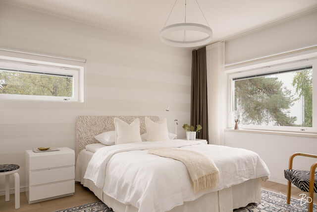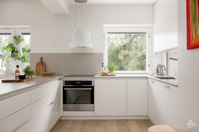 Etusivu / Uusimaa / Espoo / Otsolahdentie 7 1 / 1 Otsolahdentie 7 Tapiola, Espoo | Kerrostalo | 3 h, avok, rt, parveke (yj. 4h+k) 534 000 € Velaton hinta 87,0 m2 Asuinpinta-ala 476,00 €/kk Hoitovastike 1957 Rakennusvuosi Tervetuloa tutustumaan Otsolahdessa sijaitsevaan todella kauniiseen läpitalon huoneistoon, joka yhdistää skandinaavisen tyylin ja laadukkaat materiaalit täydelliseksi kokonaisuudeksi.Tämä 1957 rakennettu kerrostaloasunto on saanut uuden modernin ilmeensä muutama vuosi sitten arkkitehdin suunnittelemassa, koko huoneiston kattavassa huolellisessa remontissa. Laadukkaat materiaalit ja tarkoin harkitut toiminnallisuudet tekevät tästä kulmahuoneistosta erinomaisen valinnan pienen perheen tarpeisiin.Kolmeen eri suuntaan avautuvat ikkunat kuljettavat valoa esteettä asuntoon, korostaen vaalean ja hienostuneen värimaailman luomaa avaruuden tunnetta.Keittiötä suunniteltaessa on huomioitu sekä esteettisyys, että vaativan kotikokin tarpeet. Säilytystilaa on runsaasti, laadukkaat kodinkoneet ovat integroidut ja vaalea keraaminen työtaso täydentää kokonaisuuden. Eteisen ja makuuhuoneen kaapistot ovat puusepän tekemät ja juuri tähän kotiin ajatuksella suunnitellut. Toisen makuuhuoneen yhteydessä on lisäksi vaatehuone. Tilavasta olohuoneesta on käynti etelän puoleiselle parvekkeelle. Huoneistossa on vesikiertoinen lattialämmitys, joten sisustus on helppoa, koska perinteisiä lämpöpattereita ei ole.Asunnosta avautuvat avoimet näkymät piha-alueelle, eikä vastapäisistä taloista ole suoraa näkymää. Tämä kolmannessa kerroksessa sijaitseva koti tarjoaa modernia asumista, jossa on hyödynnetty toiminnallisia ratkaisuja ja harkittuja yksityiskohtia.Taloyhtiö, joka sijaitsee omalla tontillaan, on arvostettu ja erinomaisen hyvin hoidettu. Suurista remonteista on tehtyinä putki-, ikkuna-, parveke- sekä julkisivuremontti. Vuonna 2023 yhtiössä on otettu käyttöön energiatehokas ja taloudellinen maalämpö.Otsolahti alueena on vuodesta toiseen suosittu ja haluttu. Liikenneyhteydet ovat erinomaiset, ja Tapiolan monipuoliset päivittäispalvelut ovat aivan vieressä. Kattavat ja monipuoliset ulkoilumahdollisuudet ovat aivan käden ulottuvilla ja meren läheisyys tekee tästä sijainnista ihanteellisen luonnossa liikkuvalle.Lämpimästi tervetuloa paikan päälle ihastumaan ja kokemaan itse tämä upea koti.Esittelemme asuntoa vain yksityisesti, joten ota rohkeasti yhteyttä ja sovi oma henkilökohtainen esittelyaikasi!Lisätiedot ja esittelypyynnöt:Pia Lundenberg040 522 1967 | pia.lundenberg@bo.fiOLETKO MYYMÄSSÄ ASUNTOASI?Varaa minut helposti kalenterini kautta arvioimaan kotiasi.https://bo.fi/henkilo/pia-lundenberg/#kalenteri Kiinnostaako tämä kohde?Ota meihin yhteyttä tai jätä viesti Pia Lundenberg myyntipäällikkö, asuntomyyjä, KED, partner 040 522 1967 pia.lundenberg@bo.fi Tutustu välittäjään Varaa aika kalenteristani HuoneistoOsakkeet9195-9754HallintamuotoAsunto-osakeyhtiöHuoneluku3 h, avok, rt, parveke (yj. 4h+k)Kerros/Kerroksia3/4Asuinpinta-ala87,0 m2Muut tilat0,0 m2Lisätietoja pinta-alastaMainittu pinta-ala saattaa tämän ikäisessä kohteessa (rakennettu ennen vuotta 1992) poiketa olennaisesti nykyisten standardien mukaan laskettavasta asuinpinta-alasta. Todellinen asuinpinta-ala voi tarkistusmittauksen jälkeen olla yhtiöjärjestyksessä, isännöitsijäntodistuksessa ja esitteessä mainittua pienempi tai suurempi. Pinta-alaa ei ole tarkistusmitattu. Isännöitsijäntodistuksen mukainen. Yhtiöjärjestyksen mukainen.NäkymätLäpitalon kulmahuoneisto, näkymät olohuoneesta ja toisesta makuuhuoneesta etelään, toinen makuuhuone, ruokailutila sekä keittiö pohjoiseen yhtiön sisäpihan suuntaan. Ikkunoiden edessä ei ole taloja vastapäätä.ParvekeSisäänvedettyParvekkeen ilmansuuntaEteläLiesiIntegroitu liesi, induktioliesi, erillisuuni, liesitasoKeittiön työtasojen materiaaliKiviKeittiön lattiamateriaaliParkettiKeittiön seinien materiaaliMaalattuKylpyhuoneen varustusSuihkuseinä, pesukoneliitäntä, wc-istuin, suihku, peilikaappi, kiinteät valaisimet, kylpyhuonekaapistoKylpyhuoneen lattiamateriaaliLaattaKylpyhuoneen seinämateriaaliMuuMakuuhuoneen kuvaus, lisätiedot ja varustusLukumäärä: 2Lattiamateriaalit: parkettiSeinämateriaalit: maalattuOleskelutilojen kuvaus, lisätiedot ja varustusLattiamateriaalit: parkettiSeinämateriaalit: maalattuKuntoHyvä Kiinteistö- ja yhtiötiedotYhtiön nimiAsunto-osakeyhtiö Karhunpojat Tontin omistusOmaTontin koko5 594,00 m2Käyttöönottovuosi1957RakennusmateriaaliTiili, betoniKattotyyppiPulpettikattoKatePeltikateLämmitysjärjestelmäMaalämpöEnergiatodistusKylläLisätietoja energiatodistuksestaViimeinen voimassolopäivä 4.4.2034 E-Luku 157EnergialuokkaD2018Tehdyt korjaukset ja remontit1997-1998 Kaukolämmön alajakokeskus uusittu 1999 Julkisivukorjaus ja -saneeraus 2001 Vesikattojen maalaus 2003 Porrashuoneiden maalaus 2005-2006 Linjasaneerauksen hankesuunnittelu 2006-2007 Linjasaneerauksen toteutuksen suunnittelu 2007-2008 Vesi- ja viemärijohtojen sekä sähkö- ja antenniverkon uusintatyö = linjasaneeraus 2010 B-talon liiketilan saneeraus 2010 B-talon länsipäädyn salaojitus 2010 Asuntojen ja yleisten tilojen lukituksen uusintatyö 2011 Porrashuoneiden seinien ja ikkunoiden maalaus 2012 Ikkunoiden peruskunnostus ja huoltomaalaus 2013 C-D talon eteläsivun rappauskorjauksia 2014 Kattojen huoltomaalaus 2015 Asuntojen ikkunoiden kunnostus 2017-2018 A-talon liiketilan saneeraus 2017 A-talon pohjoispuolen sadevesiviemäröinnin kunnostusta 2017 Parvekkeiden ja julkisivujen korjauksien suunnittelu, työselitysten laadinta ja kilpailutus 2017 IV-järjestelmän nuohous ja kuntoarvio 2018 Parvekkeiden kunnostus ja julkisivujen maalaus 2020 Kellarikäytävien pintojen kunnostus 2021 Pyyhepattereiden tiivisteiden uusinta 2021 Liiketilan keittiön uusinta 2022 Ikkunoiden perusteellinen kunnostus 2022 Maalämpöhankkeen toteutusTiedossa olevat tulevat korjaukset/remontitKor