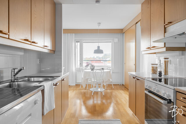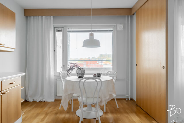 Etusivu / Varsinais-Suomi / Turku / Kankurinkatu 5 1 / 1 Kankurinkatu 5 Keskusta, Turku | Kerrostalo | 3-4h, k, kh, s, erillinen wc, lasitettu parveke 325 000 € Velaton hinta 111,0 m2 Asuinpinta-ala 471,75 €/kk Hoitovastike 1990 Rakennusvuosi Tilava saunallinen koti arvostetusta Asunto Oy Tervanahkurista Tervatori, joka sijaitsee muutaman korttelin päässä Kauppatorista sopii erinomaisesti sinulle, joka haluat asua lähellä keskustaa, mutta samalla nauttia Aurajokimiljööstä ja upeista kulttuurimaisemista ja hiljaisuudesta.Astuessaan sisään asuntoon huomio kiinnittyy asunnon avaruuteen ja käytännölliseen pohjaratkaisuun. Olohuone on tilava, jossa on kunnon tilat oleskeluun ja tilaa löytyy myös isolle ruokapöydälle. Suuret ikkunat tarjoavat hienot näkymät Aurajoen vastarannalle. Tilasta on käynti lisäksi kodin lasitetulle parvekkeelle.Valoisa keittiö sijoittuu myös maisemapuolelle, jonka ansiosta keittiössä voi viettää tunnelmallisia kokkaushetkiä. Keittiössä on reilusti kaappi- ja laskutilaa ja lisäksi oma tila ruokapöydälle.Makuuhuoneita on tällä hetkellä kaksi. Molemmat makuuhuoneet ovat tilavia. Toisen yhteydessä on kiinteää säilytystilaa ja vaatehuone. Toinen makuuhuoneista on yhdistetty aikoinaan kahdesta makuuhuoneesta, mutta on eriytettävissä takaisin kahdeksi erilliseksi makuuhuoneeksi. Myös tässä huoneessa on kiinteää säilytystilaa.Tilavassa kylpyhuoneessa on pesutilojen lisäksi oma sauna, wc-istuin sekä tilat pyykkihuollolle. Erillinen wc sijoittuu eteistilan yhteyteen.Yhtiössä on otettu huomioon esteettömyys, joten kohde sopii hyvin myös liikuntarajoitteisille. Asunto sijaitsee aitiopaikalla, sillä keskustan palvelut ovat kävelyetäisyydellä. Ovesta ulos astuttaessa pääsee hetkessä jokirannan promenadille mihin on mukava lähteä vaikkapa aamu- ja iltakävelylle. Turun Yliopisto ja Kauppakorkeakoulu sekä keskustan palvelut ja jokirannan upeat ulkoilureitit sijaitsevat kaikki vain kävelymatkan päässä.Mahdollisuus ostaa lisäksi kaksi vierekkäistä autotallia. Autotallit sijaitsevat sisäänkäynnin vieressä katutasossa. Molemmissa talleissa on sähköauton latausvalmius. Autotallien velaton hinta on 25.000 euroa/talli.Tervetuloa ihastumaan paikan päälle tämä koti on nähtävä itse!Esittelyt ja lisätiedotMiika Salmela | 0500 533 582 | miika.salmela@bo.fi________________________________________________Harkitsetko oman asuntosi myyntiä? Pyydä minut sitoumuksetta maksuttomalle arviokäynnille. Kerron samalla lisää tämänhetkisestä asuntomarkkinatilanteesta, palveluistani ja Bo:n loistavasta välityskonseptista sekä miten asunnonvaihdon suhteen kannattaa edetä. Autan mielelläni! Kiinnostaako tämä kohde?Ota meihin yhteyttä tai jätä viesti Miika Salmela asuntomyyjä, partner 0500 533 582 miika.salmela@bo.fi Tutustu välittäjään HuoneistoOsakkeet1955-2176HallintamuotoAsunto-osakeyhtiöHuoneluku3-4h, k, kh, s, erillinen wc, lasitettu parveke Kerros/Kerroksia5/7Asuinpinta-ala111,0 m2Muut tilat0,0 m2Lisätietoja pinta-alastaPinta-aloja ei ole tarkistusmitattu, edellä mainittu pinta-ala saattaa tämän ikäisessä kohteessa poiketa olennaisestikin huoneiston nykyisen ja rakentamisaikaisen mittaustapojen ja standardien mukaan laskettavista pinta-alasta. Huoneiston todellinen pinta-ala voi siis olla yhtiöjärjestyksessä, isännöitsijäntodistuksessa ja esitteessä mainittua pienempi tai suurempi. Yhtiöjärjestyksen mukainen. Isännöitsijäntodistuksen mukainen.NäkymätOlohuoneesta, keittiöstä ja parvekkeelta avautuu hienot näkymät Nahkurinpihan talojen yli aina Aurajoen vastarannalle. Makuuhuoneet sijoittuvat Verkahovin suuntaan.ParvekeLasitettuHissiTaloyhtiössä on hissiKeittiön kuvaus, lisätiedot ja varustusAlkuperäiset kaapistot. Keittiön varustukseen kuuluu: Jääkaappi, pakastin, astianpesukone, keraaminen liesi, uuni, liesituuletin, pesuallas. Lattia parkettia. Keittiön yhteydessä on kunnon ruokailutila arkiruokailuun.Pesutilojen kuvaus, lisätiedot ja varustusTilava kylpyhuone, jonka varustukseen kuuluu suihku, pesuallas, peilikaappi, wc-istuin ja pesukoneliitäntä. Lattia ja seinät laattaa. WC-tilojen kuvausEteisen yhteydessä erillinen wc. WC:n varustukseen kuuluu wc-istuin, pesuallas, peili ja bidee-suihku. Lattia ja seinät laattaa.Lukumäärä: 2Saunan kuvaus, lisätiedot ja varustusOma sauna kylpyhuoneen yhteydessä. Sähkökiuas. Lattia laattaa ja seinät paneloituja. Makuuhuoneen kuvaus, lisätiedot ja varustusHuoneistossa on tällä hetkellä kaksi todella tilavaa makuuhuonetta, jotka sijoittuvat Verkahovin suuntaan. Toisen makuuhuoneen yhteydessä on tilava vaatehuone ja kiinteät kaapistot. Toinen makuuhuone valtavan kokoinen ja se on yhdistetty aikoinaan kahdesta makuuhuoneesta. Huoneessa on kiinteät kaapistot. Huoneet on mahdollista eriyttää kahdeksi erilliseksi huoneeksi. Oleskelutilojen kuvaus, lisätiedot ja varustusTilava olohuone, jossa on kunnot tilat oleskeluun ja isolle ruokapöydälle. Olohuoneesta on kulku myös lasitetulle parvekkeelle. Lattia parkettia. Kauppaan ei kuuluIrtain.KuntoTyydyttävä Kiinteistö- ja yhtiötiedotYhtiön nimiAsunto Oy TervanahkuriTontin omistusOmaTontin koko1 842,00 m2Käyttöönottovuosi1990RakennusmateriaaliBetoniKattotyyppiHarjakattoKatePeltiLämmitysjärjestelmäKauko, muuEnergiatodistusKylläEnergialuokkaE2013Tehdyt korjaukset ja remontit2006: Ulkoportaiden korjaukset (Portaat A ja B). 2007: Lukkojen uudelleen sarjoitus. 2010: Ilmanvaihdon puhdistus ja säätö. 2011: Parvekkeiden alustava kuntoarvio. Julkisivusaumausten uusiminen. 2012: Julkisivuikkunoiden maalaus ja kittaus. Ajonestotolpat on huoltomaalattu. 2013: Jätepisteen uusiminen naapuriyhtiön As Oy Tervaporvarin kanssa. Takapihan viheristutustyöt ja leikkivälineiden huolto. Lämmönvaihtimen uusiminen. 2014: Kylmäkellareiden koneikko ja höyrystimet on uusittu ja lisätty poistoilmaputki koneikolle. Leikkipaikan peruskunnostus. Porras- ja yleistentilojen