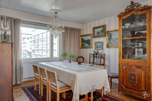 Etusivu / Varsinais-Suomi / Turku / Yliopistonkatu 13 1 / 1 Yliopistonkatu 13 Keskusta, Turku | Kerrostalo | 5h+k+kph+s+wc+vh+parveke (yj 5h+k+s) 550 000 € Velaton hinta 117,0 m2 Asuinpinta-ala 351,00 €/kk Hoitovastike 1970 Rakennusvuosi Ylimmän kerroksen kattohuoneisto valoisa koti kaupungin sydämessä!Tervetuloa tutustumaan tähän upeaan Yliopistonkadulla sijaitsevaan kattohuoneistoon, joka tarjoaa 117 m² tyylikästä ja avaraa asumista aivan keskustan ytimessä. Kahdeksannen kerroksen koti yhdistää rauhan ja yksityisyyden urbaaniin elämänmenoon.Huoneisto hurmaa harkituilla yksityiskohdillaan ja laadukkailla materiaaleilla. Putkiremontin yhteydessä täysin uusittu kylpyhuone ja erillinen wc on viimeistelty kauniilla beigen sävyisellä marmorilla, joka tuo tiloihin ylellisyyttä ja ajattomuutta. Kylpyhuoneen yhteydessä on myös oma sauna, joka kutsuu rentoutumaan päivän päätteeksi.Kolme makuuhuonetta tarjoavat tilaa ja monipuolisia mahdollisuuksia niin perheelle kuin työskentelyllekin. Olohuone on suuri ja valoisa, ja sen jatkeena oleva ruokailutila luo täydellisen ympäristön yhteisiin hetkiin. Ruokailutilasta on käynti erilliseen keittiöön, jossa on runsaasti työskentely- ja säilytystilaa. Keittiöön mahtuu hyvin myös ruokapöytä tai saareke, mikä tekee siitä toimivan ja viihtyisän tilan arkeen.Asunnon ehdoton helmi on koko huoneiston levyinen lasitettu parveke, jolta on kulku kattoterassilla sijaitsevaan kesähuoneeseen. Kesähuoneesta avautuvat upeat näkymät kaupungin ylle paikka, jossa voi nauttia aamuhetkistä, illanvalosta ja ympäröivästä kaupunkimaisemasta.Talo on valmistunut vuonna 1970 ja sen asukkaiden käytössä on monipuoliset yhteiset tilat. Yhtiön hallinnassa on muun muassa ulkoiluvälinevarasto, varastohuone sekä sauna- ja uima-allasosasto, jotka lisäävät asumisen mukavuutta. Yliopistonkatu 13 sijaitsee ihanteellisella paikalla aivan Turun keskustassa, missä kaikki palvelut, ravintolat, kulttuurielämykset ja yliopisto ovat kävelyetäisyydellä. Liikenneyhteydet ovat erinomaiset ja arki sujuu vaivattomasti.Tämä asunto tarjoaa yhdistelmän tilaa, laatua ja sijaintia, jota on harvoin tarjolla. Täydellinen valinta sinulle, joka haluat elää mukavasti keskellä kaupunkia, mutta nauttia myös yksityisyydestä ja kattoterassin ainutlaatuisesta tunnelmasta. Kiinnostaako tämä kohde?Ota meihin yhteyttä tai jätä viesti Minna Stude kiinteistönvälittäjä LKV, partner 045 131 2886 minna@bo.fi Tutustu välittäjään HuoneistoOsakkeet15331-16838HallintamuotoKiinteistöosakeyhtiöHuoneluku5h+k+kph+s+wc+vh+parveke (yj 5h+k+s)Kerros/Kerroksia8/8Asuinpinta-ala117,0 m2Muut tilat0,0 m2Lisätietoja pinta-alastaPinta-aloja ei ole tarkistusmitattu, huoneiston todellinen pinta-ala voi siis olla yhtiöjärjestyksessä, isännöitsijäntodistuksessa ja esitteessä mainittua pienempi tai suurempi. Mainittu pinta-ala saattaa tämän ikäisessä kohteessa (rakennettu ennen vuotta 1992) poiketa olennaisesti nykyisten standardien mukaan laskettavasta asuinpinta-alasta. Isännöitsijäntodistuksen mukainen. Yhtiöjärjestyksen mukainen.HissiTaloyhtiössä on hissiKeittiön kuvaus, lisätiedot ja varustusKeittiö remontoitu 1995 Puustellin keittiöLiesiSähköliesiKeittiön lattiamateriaaliParkettiKeittiön seinien materiaaliMaalattu, tapettiPesutilojen kuvaus, lisätiedot ja varustusRemontoitu putkiremontin yhteydessäKylpyhuoneen varustusSuihkuseinä, pesukoneliitäntä, lattialämmitys, wc-istuin, suihku, kiinteät valaisimetKylpyhuoneen lattiamateriaaliLaattaKylpyhuoneen seinämateriaaliKaakeliWC-tilojen kuvausRemontoitu putkiremontin yhteydessäVarustus: peilikaappi, bidee-suihkuLukumäärä: 1Lattiamateriaalit: laattaSeinämateriaalit: kaakeliSaunan kuvaus, lisätiedot ja varustusRemontoitu putkiremontin yhteydessäSaunan lattiamateriaaliLaattaSaunan seinämateriaaliPuuMakuuhuoneen kuvaus, lisätiedot ja varustusLukumäärä: 3Lattiamateriaalit: parkettiSeinämateriaalit: tapettiOleskelutilojen kuvaus, lisätiedot ja varustusLattiamateriaalit: parkettiSeinämateriaalit: tapettiKuntoHyvä Kiinteistö- ja yhtiötiedotYhtiön nimiKiinteistö Oy SatulaseppäTontin omistusOmaTontin koko1 903,90 m2Käyttöönottovuosi1970RakennusmateriaaliBetoniKattotyyppiTasakattoKateHuopaLämmitysjärjestelmäKauko, muuLisätietoja energiatodistuksestaYhtiöstä ei ole saatavilla lain vaatimaa energiatodistusta. Uusi tilattu.Tehdyt korjaukset ja remontit2024-2025: Perinteisellä menetelmällä, uusittu vesi- ja viemäriputket, sähköjohtojen nousut ja ryhmäkeskukset sekä lisätty tietoliikennekaapelointi. Lisäksi lisätty lämmöntateenttojärjestelmä ja lukitus uusittu ILoQ järjestelmään 2023: Linjasaneerauksen toteutussuunnittelu 2022: Linjasaneerauksen hankesuunnitelma 2021: Autohallin valaistuksen uusiminen 2017: Autohallien kolmen nosto-oven uusiminen 2015: Ulkomaalaustöitä katto osilla, IV kanavien nuohous ja säätö, viemärien pesu, lukituksen uusiminen Abloy Sento- järjestelmään 2013: Paloilmoitinlaitteiden uusiminen 2012: Lämmityksen alajakokeskuksen uusiminen ja lämmitysjärjestelmän perussäätö, huoneistojen patteriventtiilien sisäosien uusiminen, liiketiloja palvelevan IV-koneen uusiminen 2010: Hissin modernisointi 2009: Julkisivu, ikkunat, parvekeovet 2005: IV-kanavien nuohous Pihan vesieristys, siivousparvekkeen kunnostus Tiedossa olevat tulevat korjaukset/remontitKunnossapito-ohjelma: 2025: Jäteaseman ulkoseinien maalaus 2026: Autohallin lattioiden pinnoitus esim. epoksimassalla, autohallin ylimmän kerroksen vesieristeen ja pinnoitteen uusiminen, sekä yliopistonkadun puolen ikkunoiden ja ovien uusimisen hankesuunnittelu 2027: Autohallin ylimmän kerroksen vesieristeen ja pinnoitteen uusiminen, autohallin ikkunoiden uusinta, sekä kiinteistön huopakatteen uusiminenLainat2 081 954,14 €Kiinnitykset1 300 000,00 €IsännöitsijäIsännöitsijä Ilpo Hanhinen 0207229958 ilpo.hanhinen@isannointitalo.fi PL 257 20101 TURKUKiin