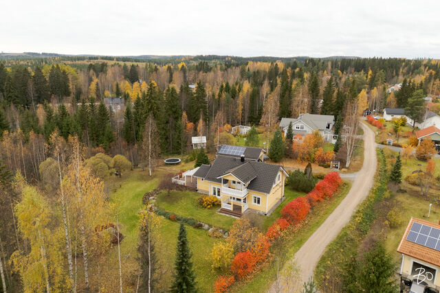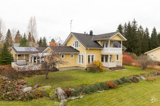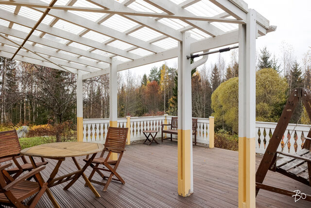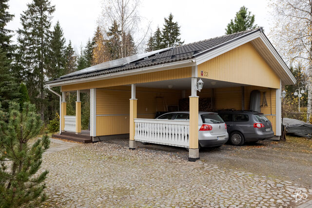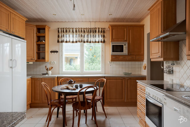 Etusivu / Keski-Suomi / Jyväskylä / Lapamutka 23 1 / 1 Lapamutka 23 Puuppola, Jyväskylä | Omakotitalo | 6h,k,khh,kph,s,2xwc,vh,rt,teras.ak,var. 318 000 € Velaton hinta 175,0 m2 Asuinpinta-ala 2004 Rakennusvuosi Tervetuloa tutustumaan tähän viehättävään kaksikerroksiseen omakotitaloon Puuppolan suositulla alueella! Lapamutka 23 yhdistää modernin mukavuuden ja kodikkaan tunnelman ihanteellinen koti perheelle, joka arvostaa tilaa ja rauhaa. Talon kaksikerroksinen pohjaratkaisu takaa, että jokainen perheenjäsen löytää oman rauhallisen paikkansa.Vuonna 2004 valmistunut kuuden huoneen koti on suunniteltu toimivaksi ja viihtyisäksi. Avarassa olohuoneessa ja keittiössä viihdyt yhdessä perheen ja ystävien kanssa. Keittiössä on runsaasti säilytystilaa, ja perinteinen leivinuuni mahdollistaa kätevän ruoanlaiton ja luo kodikkaan tunnelman. Arkea helpottavat erillinen kodinhoitohuone, josta on oma kätevä uloskäynti, sekä kaksi wc:tä. Kylpyhuone ja sauna tarjoavat toimivat puitteet rentoutumiseen ja arjen hyvinvointiin.Oma, kauniisti hoidettu tontti tarjoaa rauhallisen puitteen asumiselle. Vehreä puutarha, iso terassi ja autokatos tekevät arjesta mukavaa. Ekologinen maalämpö huolehtii asumisen tehokkuudesta ja lämmön tasaisuudesta ympäri vuoden.Puuppola hurmaa maalaismaisemillaan ja turvallisilla kouluteillään. Lähistöltä löytyvät sekä koulu että päiväkoti, ja hyvät kulkuyhteydet Palokan ja Jyväskylän keskustan palveluihin tekevät arjesta sujuvaa.Varaa oma esittelyaikasi.Ismo Nieminenasuntomyyjä, KiLAT, partner040 962 2473ismo.nieminen@bo.fi@bolkvismo Kiinnostaako tämä kohde?Ota meihin yhteyttä tai jätä viesti Ismo Nieminen asuntomyyjä, KiLAT, partner 040 962 2473 ismo.nieminen@bo.fi Tutustu välittäjään Varaa aika kalenteristani RakennusRakennusvuosi (aloitettu)2003Käyttöönottovuosi2004RakennusmateriaaliPuuKattotyyppiHarjakattoKateTiiliKaton kuntoHyväAsuinpinta-ala175,0 m2 (175,0 m2)Lisätietoja pinta-alastaPinta-alatiedot on saatu rakennuslupa-asiakirjosita. Asuinrakennuksen kokonaisala on 198 m2. Asuintilojen pinta-ala 175 m2 ei sisällä yläkerrassa olevien huoneiden alle 1600 mm korkuisia tiloja. Autokatos/ varasto 17 m2 Kerrokset2Muut tilat0,0 m2IlmanvaihtojärjestelmäIlmalämpöpumppu viilennykseenLämmitysVesikiertoinen lattialämmitys. HyväLämmitysjärjestelmän kuvausPuu, maalämpö, muuHuoneluku6h,k,khh,kph,s,2xwc,vh,rt,teras.ak,var.Keittiön kuvaus, lisätiedot ja varustusSaarekkeen pöytätaso kivi, muut laminaattia. Keittiön muut varusteetAstianpesukone, kiinteät valaisimet, liesituuletin / hormiLiesiIntegroitu liesi, erillisuuniKeittiön työtasojen materiaaliKivi, laminaattiKeittiön lattiamateriaaliLaattaKeittiön seinien materiaaliMaalattuKylpyhuoneen varustusLattialämmitys, suihku, kiinteät valaisimetKylpyhuoneen lattiamateriaaliLaattaKylpyhuoneen seinämateriaaliKaakeliSaunaAsunnossa on saunaSaunan lattiamateriaaliLaattaSaunan seinämateriaaliPuuWC-tilojen kuvausYläkerran Wc:ssä ei lattiakaivoa. Varustus: lattialämmitys, lattiakaivo, bidee-suihkuLukumäärä: 2Lattiamateriaalit: laattaSeinämateriaalit: kaakeli, lasikuitutapettiKodinhoitohuoneKodinhoitohuoneen välitila laatta. Varustus: pesukoneliitäntä, pesuallas, lattialämmitys, lattiakaivo, pyykkikaapit, kurapiste, pöytätaso, keskuspölynimuriLattiamateriaalit: laattaSeinämateriaalit: lasikuitutapettiMakuuhuoneen kuvaus, lisätiedot ja varustusLukumäärä: 5Lattiamateriaalit: parkettiSeinämateriaalit: tapettiOleskelutilojen kuvaus, lisätiedot ja varustusLattiamateriaalit: parkettiSeinämateriaalit: tapettiMuut tilatTuulikaapissa laatta lattia ja maalattu seinät. TulisijaPaikalle muurattu varaavatakka/leivinuuniTakkatiedotTakkaMuut säilytystilatVaatehuone, ulkovarastoKuntoTyydyttäväLisätietoa kunnostaMaalämpöpumppu vaihdettu uuteen 2023 keväällä. CTC- merkkinen. KiinteistötiedotKiinteistötunnus179-403-14-40Kortteli/Kiinteistön nimiLapakiviTyyppiTilaTontin tyyppiTasamaatonttiTontin koko3 310,00 m2Tontin omistusOmaPanttikirjat150 000,00 €Rasitukset ja rasitteetLapapolun yksityistien tieoikeus rasite kiinteistölle: MMLm/52320/33/2005 Lisätietoja tontistaPuistoon rajoittuva rauhallinen rinnetontti. Tie perilleVesijohtoKunnanViemäriKunnanLisätietoja rakennusoikeudestaJyväskylän kaupunki Muita tietojaPalvelutPalokan palvelut n. 8 km, Jyväskylän keskusta n. 14 km. KouluPuuppolan koulu n. 1,8 km, PäiväkotiPuuppolan päiväkoti n. 2,3 km AsumiskustannuksetPuhtaanapito18,00 €Kiinteistövero752,82 €Tiemaksut199,99 €Muut maksut / lisätietoa maksuistaVeden vuosikäyttöarvio 56 m3 vuodessa, Hinta Alvan hinnaston mukaan. Sähkönkulutus n. 12-13.000 kWh/vuosi, sisältäen lämmityksen sekä kotitaloussähkön. Leivinuunissa poltettu n. 2 mottia puita. HintaVelaton hinta318 000,00 €Myyntihinta318 000,00 € VapautuuSopimuksen mukaanMaksuehtoKäteinen. Sinua voisi kiinnostaa Asunnon hinta-arvio ja arviokäynti Asunnon hinta-arvio ja arviokäynti Mitä hinta-arvio maksaa tai miten arviokäyntiä varten kannattaa valmistautua? Katso vastauksemme usein kysyttyihin ky… Sneak Peek® Sneak Peek® Sneak Peek® -palvelumme on askeleen edellä! Löydä alueesi uusimmat ja upeimmat asunnot jo ennen kuin ne ilmestyvät as… Asuntovahti Asuntovahti Etsimässä uutta asuntoa? Aseta itsellesi Bo-asuntovahti. Saat tiedon heti, kun unelmiesi asunto tulee myyntiin. Bo Match Bo Match Kun asuntounelmat ja unelmien asunnot kohtaavat, syntyy Bo Match. Tutustu uudenlaiseen tapaan käydä asuntokauppaa.