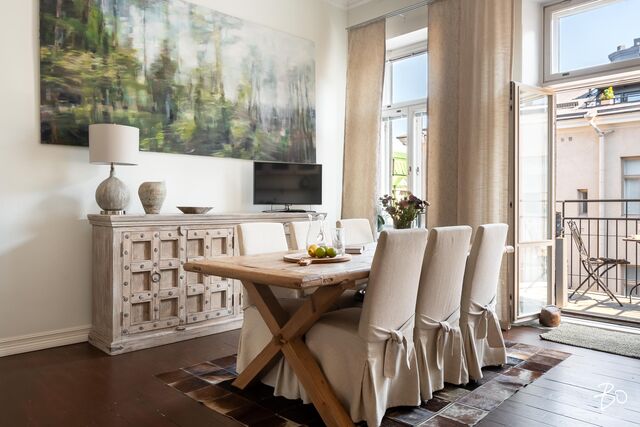Etusivu / Uusimaa / Helsinki / Merimiehenkatu 6 1 / 1 Merimiehenkatu 6 Punavuori, Helsinki | Kerrostalo | 2h+k+kph+wc+p ja 1h+kk+wc/kph (yj: 3h+ k ja 1h+ tk) 1 198 000 € Velaton hinta 137,0 m2 Asuinpinta-ala 698,70 €/kk Hoitovastike 1894 Rakennusvuosi Ylimmän kerroksen kahden huoneiston kokonaisuus!Ullanlinna ja Punavuoren rajalla, kolmen kadun ympäröimään kolmioon vuonna 1894 rakennettu komea uusrenessanssityylinen arvokiinteistö- nimenä tunnettu talo Wuorinen.Valoisat rappukäytävät, huoneistojen lähes neljän metrin huonekorkeus, isot ikkunat ja leveät ikkunalaudat kuvantavat rakennuksen tyyliä ja aikakautta.Myytävä kokonaisuus koostuu kahdesta erillisestä huoneistosta: 108 m2 kaksio ja 29 m2 yksiö. Yksiö on aikojen saatossa ollut osana isompaa huoneistoa. Kokonaisuus palvelee perheen käyttötarpeiden tai elämänvaiheen mukaan, joko erillisinä omilla sisäänkäynneillään tai avattuna yhdeksi huoneistoksi. 108m2:- ylimmän kerroksen läpitalon huoneisto: sisäpiha ja Fredrikinkatu- parveke sisäpihan puolelle- valoisat isot huoneet, huonekorkeus n 3,8m- hyvällä suunnittelulla muokattavissa - huoneistoon käynti kahden rapun kautta (C ja F, kummassakaan ei hissiä)- ei hissiä29 m2:- valoisa kulmahuoneisto: näkymä Fredalle ja Merimiehenkadulle- huonekorkeus n 3,8m- hyvin varusteltu keittiönurkkaus- tilava kylpyhuonePunavuori on yksi Helsingin halutuimmista asuinalueista. Alue yhdistää urbaanin elämän sykkeen ja kodikkaan kylätunnelman ainutlaatuisella tavalla.Viiskulman ympäristöstä löydät viehättävät pienet kahvilat, ravintolat ja taidegalleriat. Vieressä olevat puistot ja meren läheisyys tarjoavat ulkoaktiviteettejä niin kesällä kuin talvella. Julkisen liikenteen käyttäjän unelmana ratikkapysäkki taloyhtiön edessä.Olethan yhteydessä ja varaa itsellesi sopiva esittelyaika.Raila Perttilä LKV, partner0500 775488 // raila@raila@bo.fi Kiinnostaako tämä kohde?Ota meihin yhteyttä tai jätä viesti Raila Perttilä kiinteistönvälittäjä LKV, LVV, partner 050 077 5488 raila@bo.fi Tutustu välittäjään HuoneistoOsakkeet3792-3899, 3950-3978HallintamuotoAsunto-osakeyhtiöHuoneluku 2h+k+kph+wc+p ja 1h+kk+wc/kph (yj: 3h+ k ja 1h+ tk)Kerros/Kerroksia5/5Asuinpinta-ala137,0 m2Muut tilat0,0 m2Lisätietoja pinta-alastaAlkuperäinen 187m2:n huoneisto on vuosien saatossa jaettu kolmeksi huoneistoksi, joista nykyinen omistaja hallinnoi nykyisellään kahta huoneistoa ja ovat yj:n mukaan: Huoneisto C30: 108 m2 Huoneisto C30b: 29 m2 Myydään kokonaisuutena. Isännöitsijäntodistuksen mukainen. Yhtiöjärjestyksen mukainen.NäkymätParveke 3,5 m2. Sisäpiha- ja kattonäkymä.ParvekeUlostyönnettyHissiTaloyhtiössä on hissiKeittiön kuvaus, lisätiedot ja varustusC30: Moderni, tilava ja valoisa keittiö, jossa laadukkaat kodinkoneet: Smegin induktioliesitaso, uuni sekä mikroaaltouuni, AEG:n jääkaappi-pakastin yhdistelmä ja iso viinikaappi. Tilavaan keittiöön mahtuu iso ruokapöytä ja sieltä avautuvat ovet ihastuttavalle parvekkeelle, jossa voi nauttia kahvin aamuauringossa. C30b: Toiminnallinen keittiönurkkaus, joka huoneen jatkeena. - kahden levyn keraaminen liesitaso - erillinen sähköuuni - valkoiset kaapistot - taso laminaatti - lattia laattaKeittiön työtasojen materiaaliPuu, metalliKeittiön lattiamateriaaliLautaKeittiön seinien materiaaliKaakeli, maalattuPesutilojen kuvaus, lisätiedot ja varustusC 30: Tilava kylpyhuone, jonne mahtuu hyvin pesukone. C 30b: - suihku, suikuseinä - allas, allaslaatikosto, peili - wc- istuin - pesukoneliitäntä, tila pesukoneelle - lattia laatta (lattialämmitys), seinät kaakeliKylpyhuoneen varustusSuihkukaappi, pesukone, lattialämmitys, wc-istuin, suihkuKylpyhuoneen lattiamateriaaliLaattaKylpyhuoneen seinämateriaaliKaakeliWC-tilojen kuvausC30: Erillinen Wc. - wc- istuin - allas, peilikaappi Lattia laatta. Seinät laatta.Varustus: peilikaappiLattiamateriaalit: laattaSeinämateriaalit: kaakeliSaunan kuvaus, lisätiedot ja varustusYhtiössä viihtyisä saunaosasto, jonne kulku sisäpihalta.Makuuhuoneen kuvaus, lisätiedot ja varustusC 30:Iso ja tilava makuuhuone, jossa paljon säilytystilaa. Huonekorkeus noin 3,7m. C 30b: Huoneessa noin 120cm parvi, jonne helposti noustavat portaat.Oleskelutilojen kuvaus, lisätiedot ja varustusC 30: Iso ja valoisa olohuone, jonka huonekorkeus noin 3,7m ja isot ikkunat Fredalle kattonäkymin. Lattia lauta. Seinät maalattu. C 30b: Valoisa kulmahuone, josta näkymä niin Fredalle kuin Merimiehenkadulle. Huoneessa parvi, jonka alle jää tilaa työpisteelle ja muutoin huonetila mahdollistaa oleskelun ja pienen ruokapöydän. Lattia laminaatti. Seinät maalattu. KuntoHyvä Kiinteistö- ja yhtiötiedotYhtiön nimiAsunto Oy Helsingin Fredrikinkatu 19Tontin omistusOmaTontin koko2 087,00 m2Käyttöönottovuosi1894RakennusmateriaaliTiiliKattotyyppiHarjakattoKatePeltiLämmitysjärjestelmäKauko, muuEnergiatodistusKylläLisätietoja energiatodistuksestaViimeinen voimassaolopäivä 31.8.2028EnergialuokkaF2018Tehdyt korjaukset ja remontit1974 Pohjaviemärin korjaus pihakaivosta lämpökeskuksen ohi kellariin 1976 B-portaan sähkönousu uusittu 1989 A-rapun maalausentisöinti 1989 Julkisivun katutason rappauskorjaus 1990 F-portaan nousukotelot ja sähköt uusittu 1990 Ulko-ovien, parvekeovien ja parvekkeiden maalaustyöt, parvekekorjaus 1991 Kattoikkunoiden maalaus 1992 Putkisto uusittu Fredrikinkadun puoleiselta osalta 1993 Putkisto uusittu osin Laivurinrinteen puolelta 1997 Kuntoarvio 1999 Julkisivun kuntotutkimus 1999 Jätehuone rakennettu pihasiiven varastotilaan 2000 C-, D- ja F -portaiden maalaus ja lattioiden hionta 2001 Viiskulman parvekkeiden korjaus 2003 Putkistosaneerauksen loppuunsaattaminen = A-(osittain, B-(osittain) ja E-portaan asunnot 2005 Saunanosaston siirto E-portaan kellariin, pihan peruskunnostus ja ullakkorakentaminen 2007 E-portaan maalaus 2007-2008 Vesikaton uusiminen 2009 Julkisivun kunnostus paikkarappausmenetelmällä ja maalaus 2010 B-portaan 