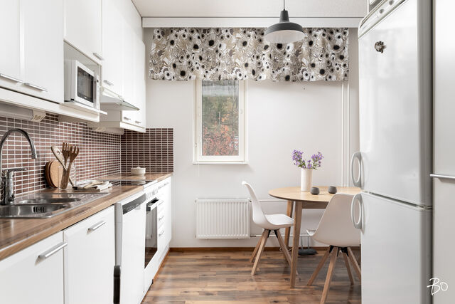 Etusivu / Keski-Suomi / Jyväskylä / Tanhukaari 2 1 / 1 Tanhukaari 2 Ainolanranta, Jyväskylä | Kerrostalo | 2h,kt,s 144 000 € Velaton hinta 53,0 m2 Asuinpinta-ala 185,50 €/kk Hoitovastike 2007 Rakennusvuosi Tämä viehättävä asunto Jyväskylän Tanhukaaressa tarjoaa asumista parhaimmillaan: vaaleat ja modernit sisustussävyt yhdistettynä kätevään pohjaratkaisuun tekevät tästä kodista todellisen helmen kaupungin sykkeessä.Tervetuloa tutustumaan tähän kauniiseen, kaksioon, joka sijaitsee kerrostalon ensimmäisessä kerroksessa, mutta ei suoraan maan tasalla, tarjoten mukavasti yksityisyyttä ja helppokulkuisuutta. Asunnon sisätilat ovat avarat ja vaaleiksi sisustetut, mikä korostaa luonnonvalon määrää ja luo ilmavan tunnelman. Tilava olohuone yhdistyy saumattomasti nykyaikaiseen keittiöön, jossa kokkaaminen on ilo. Asuntoon kuuluu myös oma sauna, jossa pääset nauttimaan rentouttavista löylyistä omassa rauhassa.Taloyhtiö on rakennettu omalle tontille ja se on hyvin hoidettu, mikä kertoo vakaasta ja huolellisesta ylläpidosta. Asunto sijaitsee toisessa kerroksessa neljästä ja tarjoaa upeat kaupunkinäkymät lasitetulta parvekkeelta, joka toimii erinomaisena lisätilana kesäpäivistä nauttimiseen tai vaikkapa kahvihetkiin ympäri vuoden. Parvekkeen lasitus mahdollistaa ympärivuotisen käytön ja luo viihtyisän tilan lisätä mukavuutta arkeen.Tanhukaaren alue Jyväskylässä tunnetaan rauhallisesta ja puistomaisesta ympäristöstään, jossa ulkoilumahdollisuudet ovat loistavat. Alueella on paljon vehreitä puistoja ja polkuja, jotka kutsuvat kävelylenkeille tai pyöräretkille luonnossa. Lisäksi alue tarjoaa kattavat palvelut, joten arki sujuu mutkattomasti. Älä jätä tätä tilaisuutta väliin tule tutustumaan uuteen kotiisi ja ihastu!Veli-Matti Viljanmaaasuntomyyjä, BoAc, partner040 583 8723veli-matti.viljanmaa@bo.fi Kiinnostaako tämä kohde?Ota meihin yhteyttä tai jätä viesti Veli-Matti Viljanmaa asuntomyyjä, BoAc, partner 040 583 8723 veli-matti.viljanmaa@bo.fi Tutustu välittäjään Varaa aika kalenteristani HuoneistoOsakkeet2824-3936HallintamuotoAsunto-osakeyhtiöHuoneluku2h,kt,sKerros/Kerroksia2/4Asuinpinta-ala53,0 m2Muut tilat0,0 m2Lisätietoja pinta-alasta Yhtiöjärjestyksen mukainen. Isännöitsijäntodistuksen mukainen.ParvekeLasitettuHissiTaloyhtiössä on hissiLiesiKeraaminen liesiKeittiön työtasojen materiaaliLaminaattiKeittiön lattiamateriaaliLaminaattiKeittiön seinien materiaaliKaakeli, maalattuKylpyhuoneen varustusSuihkuseinä, pesukoneliitäntä, lattialämmitys, wc-istuin, suihku, peilikaappi, kiinteät valaisimetKylpyhuoneen lattiamateriaaliLaattaKylpyhuoneen seinämateriaaliKaakeliSaunan lattiamateriaaliLaattaSaunan seinämateriaaliPuuMakuuhuoneen kuvaus, lisätiedot ja varustusLukumäärä: 1Lattiamateriaalit: laminaattiSeinämateriaalit: maalattu, tapettiOleskelutilojen kuvaus, lisätiedot ja varustusLattiamateriaalit: laminaattiSeinämateriaalit: maalattu, tapettiMuutostyöt huoneistossaAstianpesukone uusittu 2023KuntoHyvä Kiinteistö- ja yhtiötiedotYhtiön nimiAsunto Oy Jyväskylän DekaaniTontin omistusOmaTontin koko2 457,00 m2Käyttöönottovuosi2007RakennusmateriaaliBetoniKattotyyppiTasakattoKateKumibitumiLämmitysjärjestelmäKaukoEnergiatodistusKylläEnergialuokkaD2018Tehdyt korjaukset ja remontit2016 Koodilukot ulko-oviin 2016 Ilmastointihormien nuohous 2017 Ilmastointilaitteiden ilmamäärien mittaukset ja säätämiset 2019 Hälytykset GSM-kortillisiksi 2022 Elementtisaumat uusittu 2022 Lämmönsiirrinlaitteet modernisoitu 2022 Katolta poistettu sammal ja laitettu sammaleen esto aine Tiedossa olevat tulevat korjaukset/remontitYhtiön rakennuksessa ja kiinteistössä tehdään taloyhtiölle laaditun huoltokirjan mukaisia huolto- ja kunnostustöitä - LTO-koneiden suodattimet vaihdetaan kaksi kertaa vuodessa - Parvekelasien huolto - Salaoja putkien tarkastus/kuvaus - Ilmastointihormien nuohous - Akkukäyttöisten palovaroittimien asennus. - Talon seinustalla olevien puiden kaataminen.Sähköpistokepaikkoja20Lainat27 870,95 €IsännöitsijäJyvässeudun Kiinteistöpaletti Kari Friman 020 740 1763 kari.friman@jskipa.fiKiinteistönhoitoHuoltoyhtiöYhtiön tilat ja varusteluKuivaushuone, urheiluvälinevarasto, väestönsuoja. Koneellinen ilmanvaihto Määräyksiä kunnossapitovastuusta yhtiöjärjestys 16§ Muita tietojaVapautuuN.1-2kk kaupoista AsumiskustannuksetHoitovastike185,50 €/kk (3,50 €/m2)Yhtiövastike yhteensä185,50 €Vesi27,00 €/hlö/kk HintaMyyntihinta144 000,00 € (2 716,98 €/m2)Velaton hinta144 000,00 € (2 716,98 €/m2)MaksutapaKäteinen. Sinua voisi kiinnostaa Asunnon hinta-arvio ja arviokäynti Asunnon hinta-arvio ja arviokäynti Mitä hinta-arvio maksaa tai miten arviokäyntiä varten kannattaa valmistautua? Katso vastauksemme usein kysyttyihin ky… Sneak Peek® Sneak Peek® Sneak Peek® -palvelumme on askeleen edellä! Löydä alueesi uusimmat ja upeimmat asunnot jo ennen kuin ne ilmestyvät as… Asuntovahti Asuntovahti Etsimässä uutta asuntoa? Aseta itsellesi Bo-asuntovahti. Saat tiedon heti, kun unelmiesi asunto tulee myyntiin. Bo Match Bo Match Kun asuntounelmat ja unelmien asunnot kohtaavat, syntyy Bo Match. Tutustu uudenlaiseen tapaan käydä asuntokauppaa.