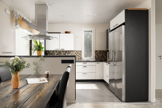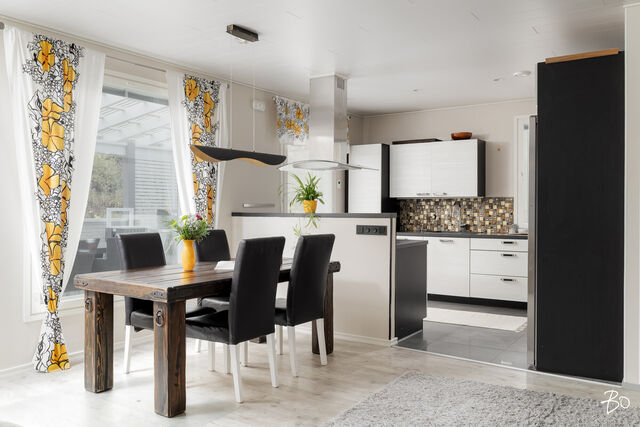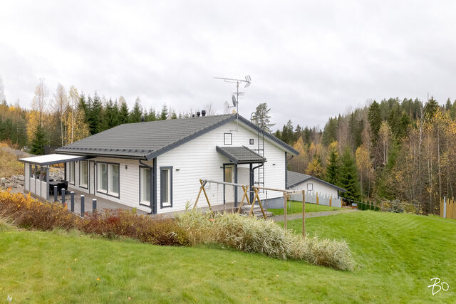 Etusivu / Keski-Suomi / Jyväskylä / Majajärvenrinne 12 1 / 1 Majajärvenrinne 12 Palokka, Jyväskylä | Omakotitalo | 5h + k + khh + 2 wc + s + terassi 432 000 € Velaton hinta 139,7 m2 Asuinpinta-ala 141,7 m2 Kokonaispinta-ala 2016 Rakennusvuosi Tervetuloa tutustumaan tähän upeaan omakotitaloon rauhalliselle asuinalueelle Palokassa kodikas koti, jossa neljä tilavaa makuuhuonetta ja energiatehokas maalämpö tuovat mukavuutta elämään!Tämä vuonna 2016 valmistunut yksitasoinen koti on suunniteltu tarjoamaan viihtyisää asumista suurellekin perheelle. Talon sisätiloissa yhdistyvät moderni muotoilu ja kodikas tunnelma. Kodissa on uskallettu käyttää värejä ja se erottaa tämän kodin ja luo pirteän ja kodikaan vaikutelman. Avarasta olohuoneesta ja keittiöstä muodostuu kodin sydän, jossa on helppo kokoontua viettämään aikaa perheen ja ystävien kanssa. Kodinhoitohuoneen ja kahden wc:n ansiosta arjen askareet sujuvat mutkattomasti, ja oma sauna tarjoaa rentoutushetkiä kiireisen päivän päätteeksi. Kodinhoitohuoneesta on kulku tilavalle terassille.Kiinteistössä on panostettu ympärivuotiseen asumismukavuuteen ja energiatehokkuuteen maalämmön avulla. Kaunis ja hoidettu pihapiiri tarjoaa vehreät ja rauhoittavat näkymät ympäröivään luontoon, ja suurella terassilla voit nauttia auringosta ja grillata kesäisin perheen ja ystävien kanssa. Omalla tontilla sijaitsevalla pihalla on istutuksia, jotka ilahduttavat kotipuutarhuria kesän jokaisena aikana. Pihassa on myös todella tilava lämmin kahden auton autotalli, joka pitää huolta, että autosi ovat suojassa säänvaihteluilta. Autotallissa on myös vesipiste sekä erillinen iso lämmin varastotila. Tämä alue tarjoaa asukkailleen rauhallisen ja luonnonläheisen elinympäristön. Lähistöltä löytyvät monipuoliset ulkoilumahdollisuudet takaavat, että reippailla kävelylenkeillä tai pyöräretkillä pääsee nauttimaan kauniista maisemista. Alueen rauhallisuus ja turvallisuus tekevät siitä ihanteellisen niin lapsiperheille kuin rauhaa rakastaville asukkaille. Kaikki tarvittavat palvelut, kuten koulut, päiväkodit ja kaupat, sijaitsevat myös kätevästi lähietäisyydellä. Tule paikan päälle katsomaan ja ihastumaan tähän kodikkaaseen kotiin ja idylliseen asuinympäristöön täällä unelmasi voivat toteutua! Ota yhteyttä ja varaa oma esittelyaikasi.Anna Humalajokiasuntomyyjä, partner040 831 1087anna.humalajoki@bo.fi Kiinnostaako tämä kohde?Ota meihin yhteyttä tai jätä viesti Anna Humalajoki asuntomyyjä, partner 040 831 1087 anna.humalajoki@bo.fi Tutustu välittäjään Varaa aika kalenteristani RakennusRakennusvuosi (aloitettu)2015Käyttöönottovuosi2016RakennusmateriaaliPuuRakennusmateriaalien kuvausMaanvarainen laatta, kivivilla, ekovillaKattotyyppiHarjakattoKateTiiliKaton kuntoHyväAsuinpinta-ala139,7 m2 (141,7 m2)Lisätietoja pinta-alastaPinta-alatiedot on saatu rakennuslupapiirustuksista. Muihin tiloihin on ilmoitettu tekninen tila. Kerrosala 157m2. Myyjän ilmoituksen mukaan terassin pinta-ala 50m.Kerrokset1Muut tilat2,0 m2Lämmitysjärjestelmän kuvausMaalämpöLämmön jakotapaVesikiertoinen lattialämmitysHuoneluku5h + k + khh + 2 wc + s + terassiKeittiön kuvaus, lisätiedot ja varustusKodinkoneet Siemens, liesitaso MieleKeittiön muut varusteetMikroaaltouuni, astianpesukone, kiinteät valaisimet, liesituuletin / hormiLiesiErillisuuni, liesitasoKeittiön työtasojen materiaaliLaminaattiKeittiön lattiamateriaaliVinyylikorkkiKeittiön seinien materiaaliMaalattuKylpyhuoneen varustusLattialämmitys, wc-istuin, suihkuKylpyhuoneen lattiamateriaaliLaattaKylpyhuoneen seinämateriaaliKaakeliSaunaAsunnossa on saunaSaunan kuvaus, lisätiedot ja varustusSun sauna, kiuas Magnum lite malja Lämpökäsitelty tervaleppä ja haapaSaunan lattiamateriaaliLaattaSaunan seinämateriaaliPuuWC-tilojen kuvausVarustus: lattialämmitys, lattiakaivo, peilikaappiLukumäärä: 2Lattiamateriaalit: laattaSeinämateriaalit: kaakeliKodinhoitohuoneSeinät osittain laatoitettu, kurapisteen tausta ja välitilaVarustus: lattialämmitys, lattiakaivo, pyykkikaapit, kurapiste, pöytätaso, keskuspölynimuriLattiamateriaalit: laattaSeinämateriaalit: kaakeli, maalattuMakuuhuoneen kuvaus, lisätiedot ja varustusLukumäärä: 4Lattiamateriaalit: vinyylikorkkiSeinämateriaalit: maalattu, tapettiOleskelutilojen kuvaus, lisätiedot ja varustusLattiamateriaalit: vinyylikorkkiSeinämateriaalit: maalattu, tapettiTakkatiedotTakkavarausMuut säilytystilatVaatehuoneTehdyt korjauksetTerassi uusittu kokonaan 2025.Muuta kauppaan kuuluvaaKiipeilytelineKuntoHyväLisätietoja energiatodistuksestaUusitaan kuntotarkastuksen yhteydessä KiinteistötiedotKiinteistötunnus179-404-13-49Kortteli/Kiinteistön nimiPuolenhehtaarinmetsäTyyppiTilaTontin tyyppiRinnetonttiTontin koko5 040,00 m2Tontin omistusOmaPanttikirjat400 000,00 €Lisätietoja tontistaRinnetontti, pengerretty, istutuksia, marjapensaat , karviaiset, päärynäpuu, kukkaniittyalue, kukkaistutukset rinteessä 2 liittymää pihaan, autotallille omaTie perilleVesijohtoKunnanViemäriKunnanRakennusoikeus350,0 m2 Muita tietojaPalvelutPalokan marketit n. 5km, Palokan terveysasema n. 6,8km.KouluSavulahden päiväkotikoulu n. 3,4km, Mankolan yhtenäiskoulu n. 7,3km.LiikenneyhteydetJyväskylän paikallisliikenne, lähin pysäkki n. 300m, linja 37.Lisätietoa palveluistaTaksikuljetus Savulahden koululle 1-4 luokat ja ylemmät luokat Mankolassa AsumiskustannuksetVesi ja jätevesi70,00 €Puhtaanapito9,00 €Kiinteistövero760,00 €Muut maksut / lisätietoa maksuistaOsakassopimus tienhoidosta HintaVelaton hinta432 000,00 €Myyntihinta432 000,00 € VapautuuSopimuksen mukaanMaksuehtoKäteinen. Sinua voisi kiinnostaa Asunnon hinta-arvio ja arviokäynti Asunnon hinta-arvio ja arviokäynti Mitä hinta-arvio maksaa tai miten arviokäyntiä varten kannattaa valmistautua? Katso vastauksemme usein kysyttyihin ky… Sneak Peek® Sneak Peek® Sneak Peek® -palvelumme on askeleen edellä! Löydä