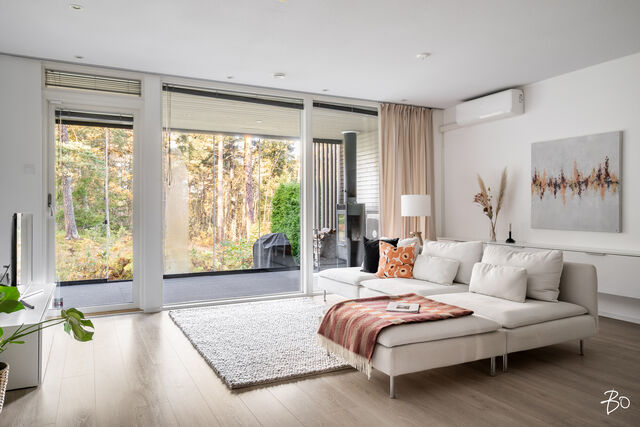 Etusivu / Varsinais-Suomi / Turku / Arolankaari 17 1 / 1 Arolankaari 17 Hirvensalo, Turku | Rivitalo | 4h, avok, kh, s, erill.wc, varasto, katettu terassi 385 000 € Velaton hinta 103,0 m2 Asuinpinta-ala 107,5 m2 Kokonaispinta-ala 2014 Rakennusvuosi Skandinaavinen koti HirvensalossaLaadukasta asumista meren läheisyydessä ja luonnon ympäröimänä vuonna 2014 valmistuneessa As Oy Turun Black Swan I:ssä. Turun Hirvensalon Arolassa. Pikisaaren kupeeseen rakennettu asuinalue on suunniteltu ympäröivää maastoa mukailevaksi. Leikkipuistot, laajat urheilumahdollisuudet ja meren välitön läheisyys tekevät asuinalueesta monelle mieluisan, sillä täällä luonto yhdistyy aidosti lähellä oleviin palveluihin. Yksitasoinen, selkeälinjainen maalämmöllä varusteltu rivitalokoti toimii moneen elämäntilanteeseen. Metsään rajoittuva tontti tuo asukkailleen oman rauhansa. Asunnonlevyisten ikkunoiden ansiosta metsäisät näkymät jatkuvat saumattomasti sisälle asti tuoden arkeen oman tunnelmansa. Neliöt jatkuvat takapihan lasitetulle terassille, jossa riittää tilaa niin oleskeluun kuin ruokailuillekin. Iso katettu terassi sijoittuu länteen. Lisäksi etupihan puolelta löytyy pienempi terassi. Lisätunnelmaa oleskeluun tuo terassille asennettu takka. Kolmesta makuuhuoneesta rakentuva koti avautuu näyttävästi avokeittiölliseksi, avaraksi tilaksi. Keittiön saareke jakaa ruuanlaittoa omaksi alueekseen, kun taas oleskelulle jää oma paikkansa takkatulen äärelle. Tilavan pesuhuoneen yhteyteen on ratkaistu ruhtinaalliset tilat myös arjen pyykkihuollolle. Kylpyhuone ja tummanpuhuva sauna tuovatkin materiaalivalinnoillaan asuntoon ylellisyyttä ja ryhtiä. Kokonaisuuden viimeistelee tarkkaan suunniteltu valaistus.Sisäänkäynnin puolelta löytyy lämmin varasto. Lisäksi huoneistoon kuuluu autokatospaikka ja pihapaikka asunnon edustalla. Esittelyt ja lisätiedotMikko AholaKiinteistönvälittäjä, LKV, LVV, PartnerBo LKV Oy040 553 2121 | mikko.ahola@bo.fiAutan mielelläni myös oman asuntosi myynnissä Kiinnostaako tämä kohde?Ota meihin yhteyttä tai jätä viesti Mikko Ahola kiinteistönvälittäjä LKV, LVV, partner 040 553 2121 mikko.ahola@bo.fi Tutustu välittäjään Varaa aika kalenteristani HuoneistoOsakkeet584-686HallintamuotoAsunto-osakeyhtiöHuoneluku4h, avok, kh, s, erill.wc, varasto, katettu terassiKerros/Kerroksia1/1Asuinpinta-ala103,0 m2Muut tilat4,5 m2Lisätietoja pinta-alastaYhtiöjärjestyksen mukaan 4h+avok+wc+s+var. Pinta-alaa ei ole tarkistusmitattu. Muihin tiloihin laskettu varasto. Isännöitsijäntodistuksen mukainen. Yhtiöjärjestyksen mukainen.NäkymätTakapihalta rauhaisat metsäiset näkymät. Suuri katettu terassi, johon mahtuu ruokailuryhmän lisäksi hienosti myös oleskeluryhmä. Terassin varustukseen kuuluu kevyttakka. Asunnon oleskelupiha on länteenpäin. Keittiön kuvaus, lisätiedot ja varustusModerni avokeittiö saarekkeella ja kiiltävän valkoisilla kaapistoilla. Integroidut Siemensin kodinkoneet. Varustus: jääkaappi, pakastin, mikroaaltouuni, astianpesukone, liesituuletin, upotettu keraaminen liesitaso ja kalusteisiin sijoitettu uuni. Lattia laminaattia.Pesutilojen kuvaus, lisätiedot ja varustusKylpyhuoneen yhteydessä kodinhoitopiste, runsaalla lasku- ja kaappitilalla. Varustus: suihku, lasinen suihkuseinä, wc-istuin, pyykinpesukone ja kuivausrumpu. Seinät ja lattia laattaa. Halogeenivalot. WC-tilojen kuvausVarustus: valkoinen allaskaapisto, valopeili, wc-istuin ja halogeenivalot. Seinät laattaa/puupaneelia, lattia laattaa. Saunan kuvaus, lisätiedot ja varustusSaunan ovi savunharmaata lasia. Sähkökiuas. Makuuhuoneen kuvaus, lisätiedot ja varustusKaikissa makuuhuoneissa reilusti säilytystilaa liukuovikaapistoiden ansiosta. Lattia laminaattia.Lukumäärä: 3Oleskelutilojen kuvaus, lisätiedot ja varustusOlohuoneen suuret lattiasta kattoon ulottuvat ikkunat avautuvat metsäiseen luontoon. Olohuoneeseen tunnelmaa lisää kevyttakka. Olohuoneessa ilmalämpöpumppu. Lattia laminaattia. Muuta kauppaan kuuluvaaHalogeenivalot.Kauppaan ei kuuluIrtain.KuntoHyväTakkatiedotTakka Kiinteistö- ja yhtiötiedotYhtiön nimiAs Oy Turun Black Swan ITontin omistusVuokrattuTontin koko3 348,00 m2Tontin vuokraajaTurun kaupunkiTontin vuokrasopimus päättyy31.12.2061Tontin vuokra6 886,21 €Käyttöönottovuosi2014RakennusmateriaaliPuuKattotyyppiPulpettiKateHuopaLämmitysjärjestelmäMaalämpöEnergiatodistusKylläLisätietoja energiatodistuksestaEnergiatodistuksen viimeinen voimassaolopäivä on 20.01.2035EnergialuokkaC2018Tehdyt korjaukset ja remontitKestopäällyste 2015 Maalämmön etähälytysjärjestelmä 2016 Etuterassin valojen parantamistoimia 2016 Leikkipaikka 2016 Ilmanvaihdon puhdistus, mittaus ja säätö. 2021 Julkisivun mustien osien huoltomaalaus 2023 Paloilmaisimet uusittu 2024 Huoneiston 8 vedeneristekorjaus 2025Tiedossa olevat tulevat korjaukset/remontitEi yhtiökokouksessa päätettyjä suurempia korjauksia. Yhtiön hallitus käsittelee vuosittain oman näkemyksensä yhtiön kunnossapitotarpeesta seuraavan viiden vuoden aikana. Julkisivut: Vaaleiden puuosien huoltomaalaus Ikkunat ja Ulko-ovet: Ulko-ovien korjaukset/huollot Vesi- ja viemärijärjestelmä: Viemärien huuhtelut Autokatokset8Pihapaikkoja9Kiinnitykset1 815 500,00 €IsännöitsijäTurun Seudun Kiinteistöpiste Oy Uhrilähteenkatu 2 A, 20250 Turku Ilmari Hiltunen 0400 237529 / 020 7669380 ilmari.hiltunen@ts-kiinteisto.fiKiinteistönhoitoHuoltoyhtiöTaloyhtiössä muutaVarasto, tekninen tila, roskakatos, kaapeli-tv, laajakaista, atk-kaapelointi. Taloyhtiöllä on Telian kiinteistölaajakaistasopimus. Jokaisella huoneistolla on käytössään 10M perusnopeuksinen laajakaistayhteys. Lisänopeuksia voi tilata Telian asiakaspalvelusta. Taloyhtiön kunnossapitovastuu määräytyy asunto-osakeyhtiölain luvun 4 mukaisesti. Osakkeenomistaja vastaa huoneistoterassin terassilasituksen, terassiverhojen ja/tai muiden vastaavien sekä ulko-altaan kunnossapidosta ja puutteellisuuden
