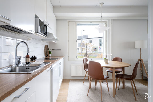 Etusivu / Pohjois-Savo / Kuopio / Messuportinkatu 4 1 / 1 Messuportinkatu 4 Lehtoniemi, Kuopio | Kerrostalo | 3h,k,s 159 000 € Velaton hinta 74,5 m2 Asuinpinta-ala 295,02 €/kk Hoitovastike 2015 Rakennusvuosi Arvostetulla Lehtoniemen alueella kaunis kerrostalokoti vesistön ja palveluiden äärellä.Tässä kauniissa 74,5 neliön kodissa silmä lepää vaaleissa skandinaavisen tyylikkäissä sisustussävyissä. Tilavan olohuoneen kruunaa avokeittiö, joka luo viihtyisän yhteisen tilan kokkailulle, ruokailulle ja oleskelulle. Pohjaratkaisultaan koti on sujuva ja kolmeen suuntaan olevista ikkunoista tulvii luonnon valoa. Olohuoneesta on kulku tilavalle lasitetulle parvekkeelle, joka tarjoaa lisää oleskelutilaa. Parvekkeen jatkona on pieni avoin terassi, jossa voit toteuttaa vaikka pieniä puutarhaunelmiasi.As Oy Lehtoniemen Kimallus tarjoaa asukkailleen miellyttävän ympäristön, jossa on helppo viihtyä. Ensimmäisessä kerroksessa asuminen tuo mukavuutta niin liikuntarajoitteisille kuin lapsi- ja eläinperheillekin. Autolle on mahdollisuus ostaa hallipaikka viereistä parkkitalosta .Lehtoniemen alue on erityisen viehättävä lapsiperheille, sillä alakoulu ja päiväkoti on aivan vieressä. Laajat ulkoilumahdollisuudet metsäisillä poluilla ja läheisellä uimarannalla sekä Eino Leinon liikuntopuistolla tarjoavat loistavat puitteet aktiivisille perheille ja luonnon ystäville. Alueen keskeinen sijainti takaa, että kaikki tarvittavat palvelut ovat käden ulottuvilla ja liikenneyhteydet kaupungin keskustaan ovat erinomaiset. Kiinnostaako tämä kohde?Ota meihin yhteyttä tai jätä viesti Maria Keinänen kiinteistönvälittäjä LKV, kaupanvahvistaja, partner 044 989 3404 maria@bo.fi Tutustu välittäjään Varaa aika kalenteristani HuoneistoOsakkeet1-346HallintamuotoAsunto-osakeyhtiöHuoneluku3h,k,sKerros/Kerroksia1/6Asuinpinta-ala74,5 m2Muut tilat0,0 m2Lisätietoja pinta-alasta Yhtiöjärjestyksen mukainen. Isännöitsijäntodistuksen mukainen.ParvekeLasitettuParvekkeen ilmansuuntaLänsiHissiTaloyhtiössä on hissiLiesiKeraaminen liesi, erillisuuniKeittiön työtasojen materiaaliLaminaattiKeittiön lattiamateriaaliParkettiKeittiön seinien materiaaliMaalattuKylpyhuoneen varustusSuihkuseinä, lattialämmitys, wc-istuin, suihku, peilikaappi, kylpyhuonekaapistoKylpyhuoneen lattiamateriaaliLaattaKylpyhuoneen seinämateriaaliKaakeliWC-tilojen kuvausBidee-suihku, peilikaappi, kaapistotLattiamateriaalit: laattaSeinämateriaalit: maalattuSaunan lattiamateriaaliLaattaSaunan seinämateriaaliPuuMakuuhuoneen kuvaus, lisätiedot ja varustusLukumäärä: 2Lattiamateriaalit: parkettiSeinämateriaalit: maalattuOleskelutilojen kuvaus, lisätiedot ja varustusLattiamateriaalit: parkettiSeinämateriaalit: maalattuMuutostyöt huoneistossaParketti hiottu ja lakattu, kaikki listat uusittu 2025KuntoHyvä Kiinteistö- ja yhtiötiedotYhtiön nimiAsunto Oy Lehtoniemen KimallusTontin omistusVuokrattuTontin koko5 929,00 m2Tontin vuokraajaKuopion kaupunkiTontin vuokrasopimus päättyy31.12.2072Tontin vuokra13 703,00 €Käyttöönottovuosi2015RakennusmateriaaliBetoniKattotyyppiHarjakattoKateHuopaLämmitysjärjestelmäKaukoTiedossa olevat tulevat korjaukset/remontitMerkittäviä korjauksia ei ole tiedossaLainat1 674 697,73 €Kiinnitykset5 900 000,00 €IsännöitsijäOiva Isännöinti Kuopio/ Antti Korhonen 0504493194 Maaherrankatu 21 A 3krs., 70100 KuopioKiinteistönhoitoHuoltoyhtiöYhtiön tilat ja varusteluKuivaushuone, kellarikomero, urheiluvälinevarasto, väestönsuoja, kaapeli-tv, lastenvaunuvarasto. Yhtiötä sitoo kiinteistöllä 297-33-35-1 sijaitsevien kahden muun asunto-osakeyhtiön, sekä parkkitaloyhtiön välillä tehty sopimus hallinnanjaosta ja rasiteluontoisista oikeuksista, sekä 29.3.2016 pidetyn yhtiökokouksen päätetyn kiinteistö Oy Lehtoniemenparkki 2:sen autopaikkojen lisäystarpeen johdosta olevien kiinteistöjen sopimuksen muuttamisesta hallinnanjaosta ja rasiteluontoisista oikeuksista. Viilennyskäyttöön asennettaviin ilmalämpöpumppuihin olemassa osakkeenomistajille ohjeistus. Muita tietojaLisätietoa kaavoituksestaLisätietoa kartta.kuopio.fi tai Kuopion kaupunki/ Kaavoitus.VapautuuSopimuksen mukaan AsumiskustannuksetHoitovastike295,02 €/kk (3,96 €/m2)Yhtiövastike yhteensä295,02 €Vesimaksun perusteOma mittariMuut maksut / lisätietoa maksuistaTaloyhtiön osakeluettelo on siirretty huoneistotietojärjestelmään. Ostajan tulee hakea omistusoikeuden rekisteröintiä Maanmittauslaitokselta. Ostaja vastaa tällöin omistusoikeuden rekisteröintikustannuksista, mahdollisista osakekirjan mitätöinnistä aiheutuvista kustannuksista sekä mahdollisesta hakemusmaksun korotuksesta. Ostajan pankin ostajalta mahdollisesti veloittamista kaupantekoon, omistusoikeuden rekisteröintiin tai panttausmerkinnän hakemiseen liittyvistä kustannuksista ostaja saa tiedon pankiltaan. HintaMyyntihinta159 000,00 € (2 134,23 €/m2)Velaton hinta159 000,00 € (2 134,23 €/m2)MaksutapaKäteinen. Sinua voisi kiinnostaa Asunnon hinta-arvio ja arviokäynti Asunnon hinta-arvio ja arviokäynti Mitä hinta-arvio maksaa tai miten arviokäyntiä varten kannattaa valmistautua? Katso vastauksemme usein kysyttyihin ky… Sneak Peek® Sneak Peek® Sneak Peek® -palvelumme on askeleen edellä! Löydä alueesi uusimmat ja upeimmat asunnot jo ennen kuin ne ilmestyvät as… Asuntovahti Asuntovahti Etsimässä uutta asuntoa? Aseta itsellesi Bo-asuntovahti. Saat tiedon heti, kun unelmiesi asunto tulee myyntiin. Bo Match Bo Match Kun asuntounelmat ja unelmien asunnot kohtaavat, syntyy Bo Match. Tutustu uudenlaiseen tapaan käydä asuntokauppaa.