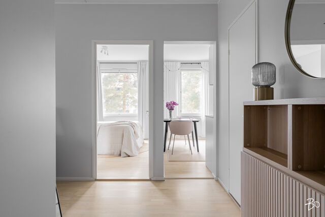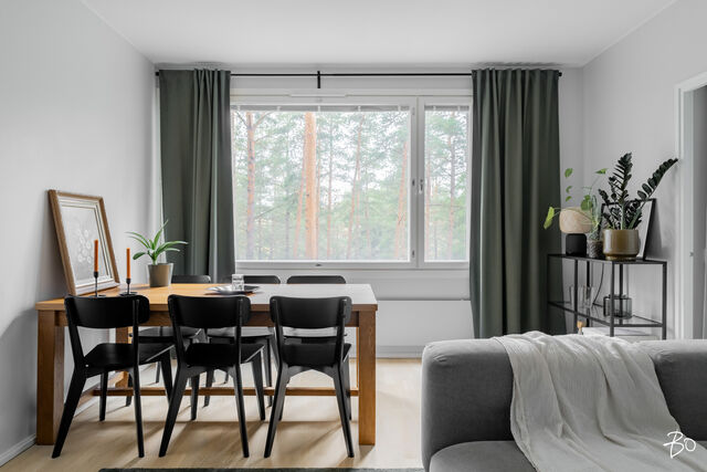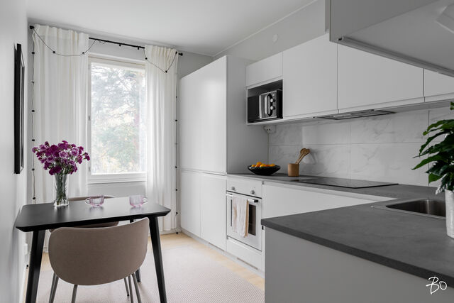Etusivu / Varsinais-Suomi / Turku / Talinkorventie 10 1 / 1 Talinkorventie 10 Suikkila, Turku | Kerrostalo | 3h+k+kph+vh+lasitettu parveke (yj:n mukaan 3h+k) 189 000 € Velaton hinta 66,0 m2 Asuinpinta-ala 240,90 €/kk Hoitovastike 1968 Rakennusvuosi Upea muuttovalmis kolmio rauhallisessa Suikkilassa skandinaavista tyyliä ja luonnonläheistä asumista!Tervetuloa ihastumaan tähän kauniisti remontoituun ja täysin muuttovalmiiseen kolmioon, joka sijaitsee arvostetulla ja suositulla alueella. Tämä päätyhuoneisto hurmaa vaalealla, skandinaavisella ilmeellään, toimivalla pohjaratkaisullaan ja rauhallisella sijainnillaan luonnon helmassa silti vain lyhyen matkan päässä Turun keskustasta.Tämä valoisa ja avara kolmio tarjoaa modernin keittiön, ison olohuoneen ja kaksi makuuhuonetta sekä tyylikkään kylpyhuoneen ja käytännöllisen vaatehuoneen eteisen yhteydessä. Vaaleat pinnat ja harmoniset sävyt luovat ilmavan tunnelman ja tarjoavat täydellisen pohjan monenlaisille sisustusratkaisuille. Lasitettu parveke jatkaa oleskelutiloja ulos täydellinen paikka nauttia aamukahvista, ilta-auringosta tai vuodenajan vaihteluista suojassa säältä.Tämä koti on osa hyvin hoidettua taloyhtiötä, jossa remontit on tehty ajallaan ja asuminen on huoletonta. Omalla tontilla sijaitseva yhtiö tarjoaa vehreän pihapiirin, metsänäkymän ja mahdollisuuden viettää aikaa ulkona perheen ja ystävien kanssa.Suikkila on alue, jossa viihtyvät niin perheet kuin rauhallista asumista arvostavat. Läheltä löytyvät koulut, päiväkodit, kaupat ja erinomaiset liikenneyhteydet Turun keskustaan. Luonto on lähellä mutta palvelut ja kaupungin syke ovat vain hetkessä saavutettavissa.Tämä koti on täydellinen valinta sinulle, joka arvostat laatua, vaivattomuutta ja viihtyisää asumista.Lisätiedot ja esittelyt:Johanna Lipponen Kiinteistönvälittäjä, LKV, LVV, Partnerp. 0400 561 315 johanna.lipponen@bo.fiAutan mielelläni myös sinua oman kotisi myynnissä ja asuntounelmiesi toteuttamisessa! Ota yhteyttä ja saat arvion asunnostasi sekä kuulla yksilöllisistä palveluistamme juuri sinun asuntosi myyntiin, kanssani saat koko Bo:n ainutlaatuisen myyntikonseptin käyttöösi, mikä mahdollistaa nopeamman myyntiajan sekä parhaan mahdollisen hinnan. Kiinnostaako tämä kohde?Ota meihin yhteyttä tai jätä viesti Johanna Lipponen kiinteistönvälittäjä LKV, partner 0400 561 315 johanna.lipponen@bo.fi Tutustu välittäjään Varaa aika kalenteristani HuoneistoOsakkeet2382-2447HallintamuotoAsunto-osakeyhtiöHuoneluku3h+k+kph+vh+lasitettu parveke (yj:n mukaan 3h+k)Kerros/Kerroksia2/7Asuinpinta-ala66,0 m2Muut tilat0,0 m2Lisätietoja pinta-alastaPinta-aloja ei ole tarkistusmitattu, edellä mainittu pinta-ala saattaa tämän ikäisessä kohteessa poiketa olennaisestikin huoneiston nykyisen ja rakentamisaikaisen mittaustapojen ja standardien mukaan laskettavista pinta-alasta. Huoneiston todellinen pinta-ala voi siis olla yhtiöjärjestyksessä, isännöitsijäntodistuksessa ja esitteessä mainittua pienempi tai suurempi. Yhtiöjärjestyksen mukainen. Isännöitsijäntodistuksen mukainen.NäkymätParveke länteen ja metsään päin ParvekeLasitettuHissiTaloyhtiössä on hissiKeittiön kuvaus, lisätiedot ja varustusKaikki kodinkoneet integroitu kalusteisiin. Kvik-keittiö ja Boschin kodinkoneet Keittiö remontoitu 2021 ja kodinkoneet uusittu tällöinLiesiInduktioliesi, erillisuuniKeittiön työtasojen materiaaliLaminaattiKeittiön lattiamateriaaliParkettiKeittiön seinien materiaaliMaalattuPesutilojen kuvaus, lisätiedot ja varustusKPH remontoitu LVIS-saneerauksen yhteydessäKylpyhuoneen varustusPesukoneliitäntä, lattialämmitys, wc-istuin, suihku, peilikaappiKylpyhuoneen lattiamateriaaliLaattaKylpyhuoneen seinämateriaaliKaakeliSaunan kuvaus, lisätiedot ja varustusTaloyhtiön sauna B-rapussa Makuuhuoneen kuvaus, lisätiedot ja varustusMolemmissa makuuhuoneissa kaapistotLukumäärä: 2Lattiamateriaalit: parkettiSeinämateriaalit: maalattuOleskelutilojen kuvaus, lisätiedot ja varustusLattiamateriaalit: parkettiSeinämateriaalit: maalattuMuuta kauppaan kuuluvaaParvekkeen lattian laudoitus kuuluu kauppaan. Häkkivarastossa oleva kaappi kuuluu kauppaan.Muutostyöt huoneistossaAiemman omistajan aikana koko huoneisto remontoitu pl. kph mikä remontoitu yhtiön toimesta linjasaneerauksen yhteydessä.KuntoHyväLisätietoa kunnostaTodella hyväkuntoinen muuttovalmis asunto Kiinteistö- ja yhtiötiedotYhtiön nimiAsunto Oy KaksoskariTontin omistusOmaTontin koko7 683,40 m2Käyttöönottovuosi1968RakennusmateriaaliMuuKattotyyppiTasaKateHuopaLämmitysjärjestelmäKaukoEnergiatodistusKylläLisätietoja energiatodistuksestaViimeinen voimassaolopäivä: 25.02.2035EnergialuokkaD2018Tehdyt korjaukset ja remontit1989 Julkisivu levytetty. 1996 Ikkunat uusittu (ei parvekeikkunoita tai ovia). 2004 Ilmanvaihto poistoilmakanavien nuohous ja tasapainoitus. 2010 Katon vesieristys uusittu. 2011 Julkisivujen pesu ja sokkelin maalaus. 2012 Lämmönvaihdin uusittu, Termostaattisten patteriventtiilien asentaminen, Lämmitysverkoston tasapainoitus. 2012-2013 käyttövesi-ja viemäriputkiremontin hankesuunnittelu. 2016 Linjasaneeraus: vesi-viemäriputket uusittu, kylpyhuoneet uusittu, sähköt uusittu yleiset tilat ja huoneistot talojakamoon asti + porraskäytävät + poistoilmakanavien nuohous ja tasapainoitus. 2017 yleisten tilojen lukistusta uusittu. 2018 Pihapäällysteet ja valaistus uusittu. 2019 Patteriverkosto huuhtelu Airsepex-tekniikka, Ikkunoiden rakoventtiilit suodattimien vaihto. 2020 Palovaroittimien patterien vaihto/huoneistot, Sokkelien maalaus. 2021 Parvekkeet kunnon tarkastus ja korjausten toteutussuunnittelu. 2022 Parvekekorjaus / Tupocon Oy ja parvekeikkunoiden, ovien ja parvekelasituksien uusiminen. 2025 Patteriverkosto huuhtelu ja tasapainotus. Palo- ja savunpoistojärjestelmän huolto ja päivitys. 2025 Tonttiviemärin uusiminenTiedossa olevat tulevat korjaukset/remontit2025-2026 Lukitusjärjestelmän uudis