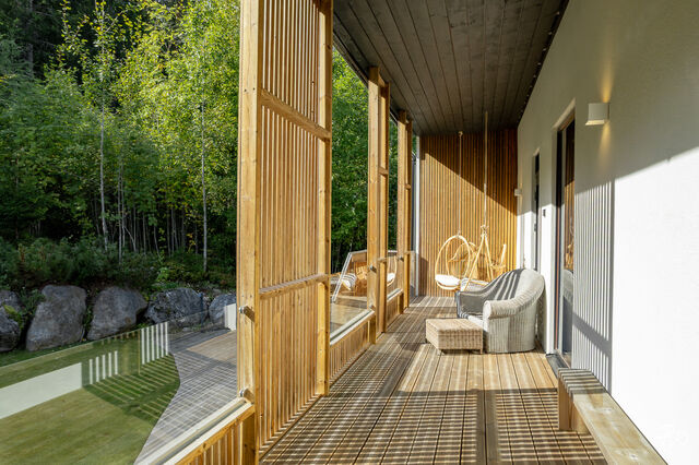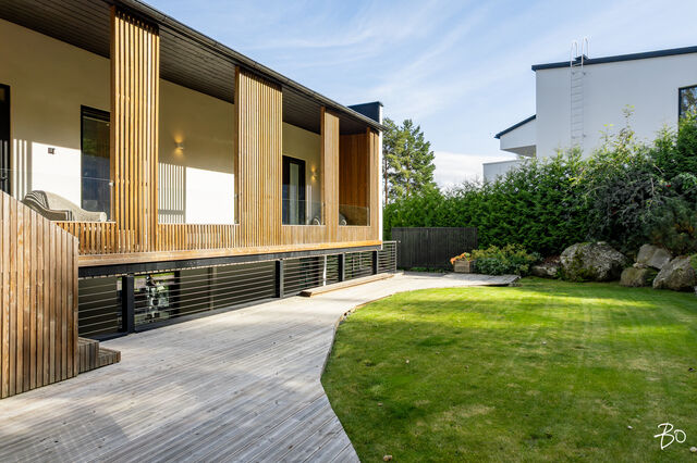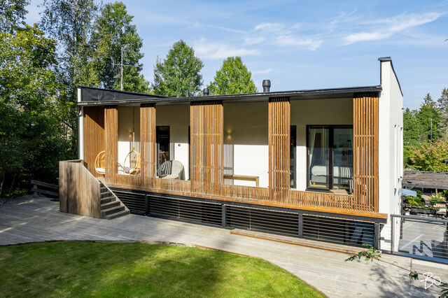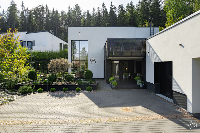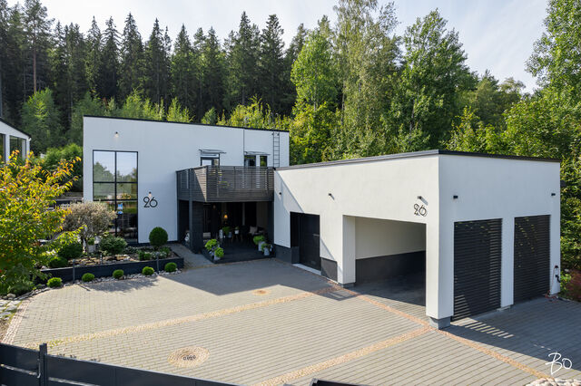 Etusivu / Pirkanmaa / Tampere / Nirvankatu 26 1 / 1 Nirvankatu 26 Nirva, Tampere | Omakotitalo | 6h, k, 2x kph/wc, erill. wc, khh, vh, parveke, terassi, autotalli/autokatos 798 000 € Velaton hinta 143,0 m2 Asuinpinta-ala 179,5 m2 Kokonaispinta-ala 2017 Rakennusvuosi Suositulta Nirvan alueelta omatonttinen harvinaisen upea kokonaisuus!Tämä kaksitasoinen omakotitalo on kaunis ja käytännöllinen kokonaisuus. Alakerrassa sijaitsevat olohuone ja keittiö, yksi makuuhuone, wc suihkuineen sekä kodinhoitohuoneen ja arkieteisen yhdistelmä. Olohuone on korkeaa tilaa, jossa lattiasta kattoon ylettävät ikkunat tuovat tilaan upeasti luonnonvaloa. L-mallisessa keittiössä on suuri saareke omalla vesipisteellä. Kaappi- ja laskutilaa on reilusti sujuvaan ruoanlaittoon. Olohuoneen kautta pääsee kulkemaan taloa kiertävälle terassille. Terassi on viihtyisä kokonaisuus, jonka ansiosta oleskelutilat jatkuvat myös talon ulkopuolella. Sisääntulon yhteydessä on lisäksi katettu oleskelutila.Kauniit valaistut portaat johdattavat yläkertaan, josta löytyy neljä makuuhuonetta, erillinen wc sekä kylpyhuone ja sauna. Päämakuuhuoneen yhteydessä on walk in closet -tyylinen vaatehuone sekä kauniisti lasiseinän takana olevat suihku ja wc. Päämakuuhuoneen yhteydessä on myös parveke talon sisäpihan suuntaan. Tyylikkään kylpyhuoneen ja saunan yhteydessä on pieni pukeutumistila, jonka kautta pääsee kulkemaan suurelle parvekkeelle, ja siellä olevalle porealtaalle. Myös vieressä olevasta makuuhuoneesta on käynti tälle parvekkeelle. Tontti on tietenkin oma, kooltaan yli 1100m². Piha on aidattu ja suojaisa rajautuen vehreään metsään. Etupihalta löytyy lämmin autotalli ja -katos. Pihaportti toimii sähköisesti, joten autosta ei tarvitse nousta porttia availemaan. Talo lämpiää maalämmöllä. Viilennys onnistuu maaviileän ja ilmalämpöpumpun avulla.Talo sijaitsee suositulla ja rauhallisella Nirvan alueella, loistavalla paikalla, myös kulkuyhteyksien kannalta. Moottoritieltä pääsee nopeasti suuntaan kuin suuntaan, eikä Tampereen keskustaankaan ole kuin muutama kilometri. Alueelta löytyy paljon puistoja eivätkä Särkijärven, Vuoreksen ja Hervannan alueen upeat metsäpolutkaan ole kaukana. Lahdesjärven uimaranta sijaitsee vain parin kilometrin päässä. Lähikauppana palvelee Koivistonkylän Prisma.Tätä upeaa kohdetta esitellään vain yksityisesittelyin. Varaa oma esittelysi vaikka heti!------------------------------------------------------------------------------------------A rare gem in the popular Nirva area with its own plot!This elegant two-storey home combines style, comfort, and practicality.The ground floor features a bright living area with soaring ceilings and impressive floor to ceiling windows that flood the space with light. The L-shaped kitchen includes a large island with its own sink. From the living room, you can step out to a spacious terrace that wraps around the house, creating a seamless flow between indoor and outdoor living areas. The floor also features one bedroom, a shower room with WC, and a convenient utility and mudroom combination.Upstairs offers four bedrooms, a separate WC, a beautiful bathroom with sauna, and access to a large balcony terrace with a hot tub. The master bedroom includes a walk-in closet, ensuite with glass wall, and a private balcony facing the inner yard.The property sits on its own plot of over 1100 m². A private and peaceful setting with an electric fence enclosing the area. The house is heated and cooled with geothermal energy.Located in a peacefull and popular area with great transport links just a few kilometres from Tampere city centre. The surrounding area offers lovely parks, forest trails, and easy access to the Lahdesjärvi beach. Koivistonkylä Prisma's large grocery store is located nearby. Private viewings only book yours today!Kohdetta myyvät:Valtteri Lampinen | 044 0778988 | valtteri@bo.fi#valtterivälittääAleksi Lehtinen | 044 2355964 | aleksi@bo.fihttp://www.aleksilehtinen.fiTiesithän että osaava ja aktiivinen välittäjä sekä laadukas brändi ja vaikuttava markkinointi ovat avainasemassa matkalla kohti onnistunutta asuntokauppaa. Kutsu meidät maksuttomalle arviokäynnille, ja luodaan yhdessä paras mahdollinen suunnitelma juuri teidän kotinne myyntiin. Kiinnostaako tämä kohde?Ota meihin yhteyttä tai jätä viesti Valtteri Lampinen kiinteistönvälittäjä LKV, partneryrittäjä | Valtteri Lampinen LKV Oy 044 077 8988 valtteri@bo.fi Tutustu välittäjään Varaa aika kalenteristani Katso video RakennusRakennusvuosi (aloitettu)2016Käyttöönottovuosi2017RakennusmateriaaliElementti, betoniRakennusmateriaalien kuvausKantavilta rakenteiltaan betonielementti rakenteinen. Betonin päällä elementti villa. Villan päällä rappaus. Autotalli on osin puurakenteinen.KattotyyppiPulpettiKateHuopaAsuinpinta-ala143,0 m2 (179,5 m2)Lisätietoja pinta-alastaAsuinrakennuksen rakennusoikeuden mukainen kerrosala 159 m², josta käytetty 143 m². Talousrakennus 36,5 m², josta käyttämättä 0 m². Pinta-alaa ei ole mitattu SFS 5139 standardin mukaisesti. Mitattaessa pinta-ala saattaa olla myyntiesitteellä pienempi taikka suurempi. Kauppahinta ei ole osaksikaan pinta-alaan sidonnainen. Kerrokset2Muut tilat36,5 m2Lämmitysjärjestelmän kuvausMaalämpöLämmön jakotapaVesikiertoinen lattialämmitysHuoneluku6h, k, 2x kph/wc, erill. wc, khh, vh, parveke, terassi, autotalli/autokatosKeittiön kuvaus, lisätiedot ja varustusJääkaappi, pakastin, uuni, induktioliesi, liesituuletin, astianpesukone, integroitu kahvikone, integroitu mikroaaltouuni, integroitu Bluetooth -kaiutin 1 kpl. Kaksi vesipistettä, valtava saareke.Keittiön työtasojen materiaaliKiviKeittiön lattiamateriaaliLaattaKeittiön seinien materiaaliMaalattuPesutilojen kuvaus, lisätiedot ja varustusPäämakuuhuoneen yhteydessä oma suihku ja wc-istuin. Lisäksi alakerran erillisen wc:n yhteydessä suihku.Kylpyhuoneen varustusLattialämmitys